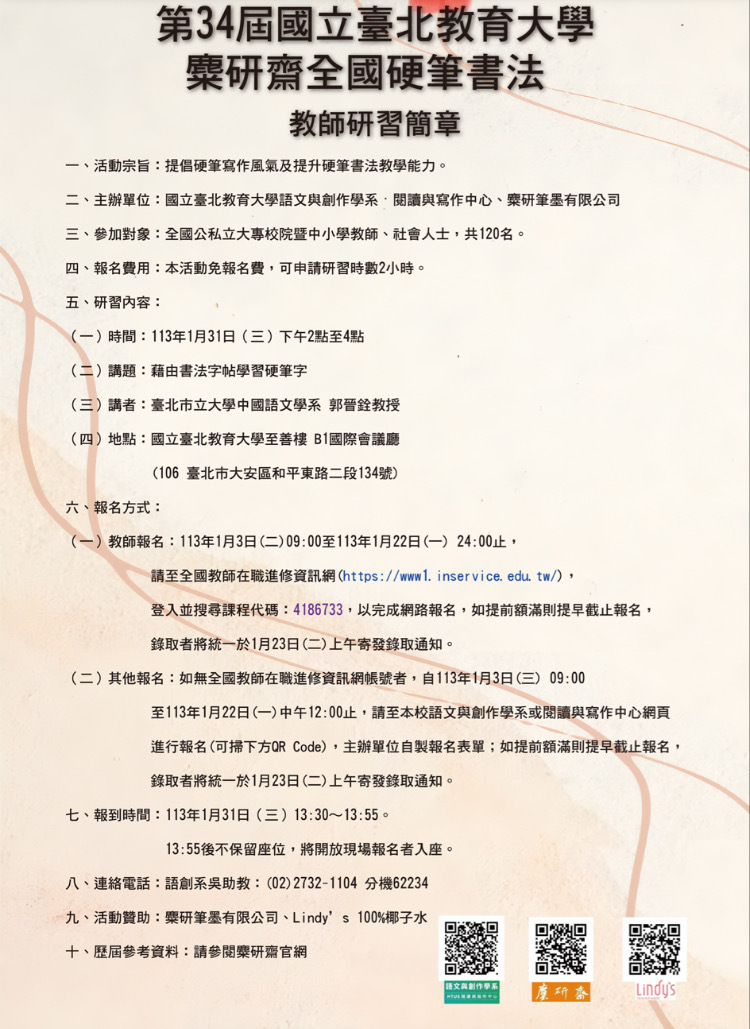 二、主辦單位:國立臺北教育大學語文與創作學系・閱讀與寫作中心、麋研筆墨有限公司