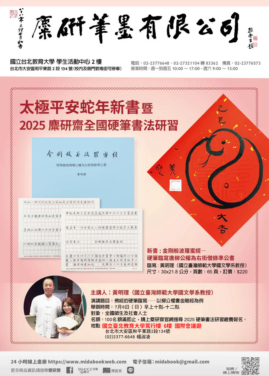 五、報名方式:請至麋研齋官網搜尋2025硬筆書法研習 下單繳費劃位
