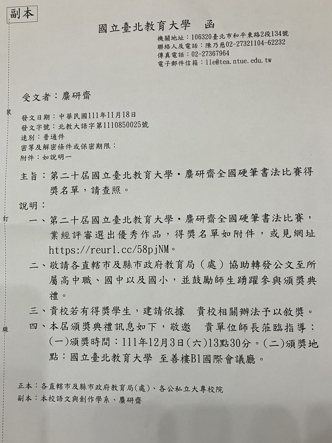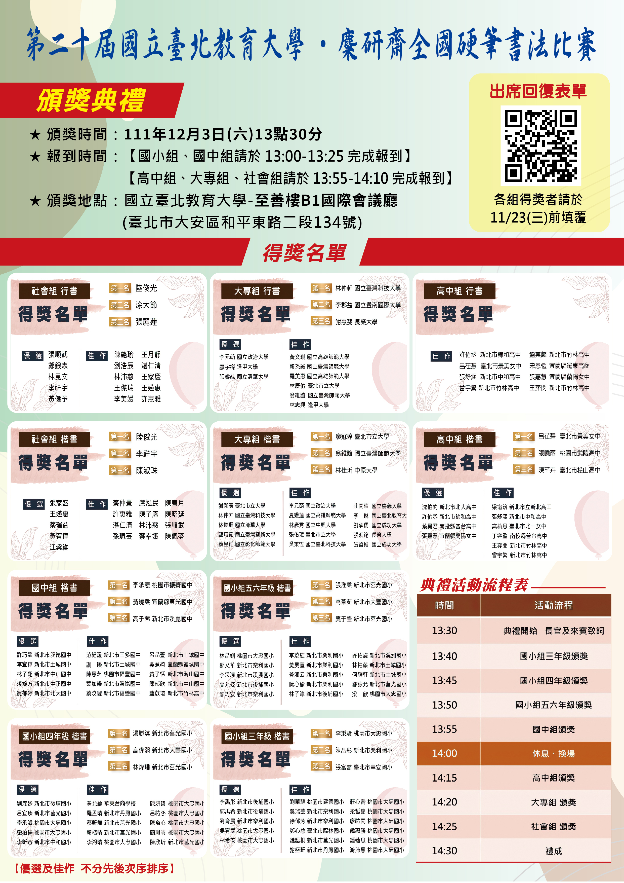 ★ 頒獎時間:111年12月3日(六)13點30分