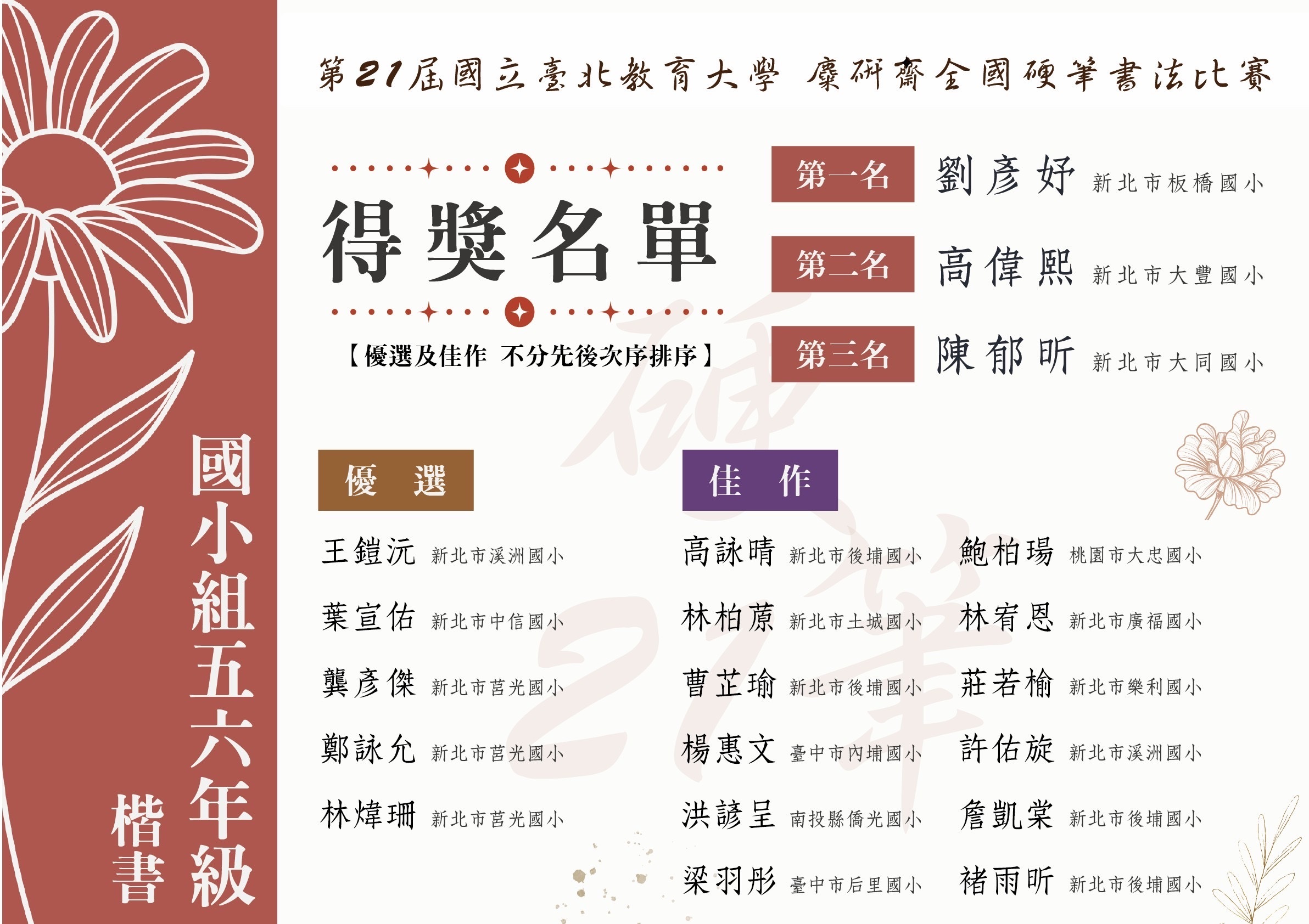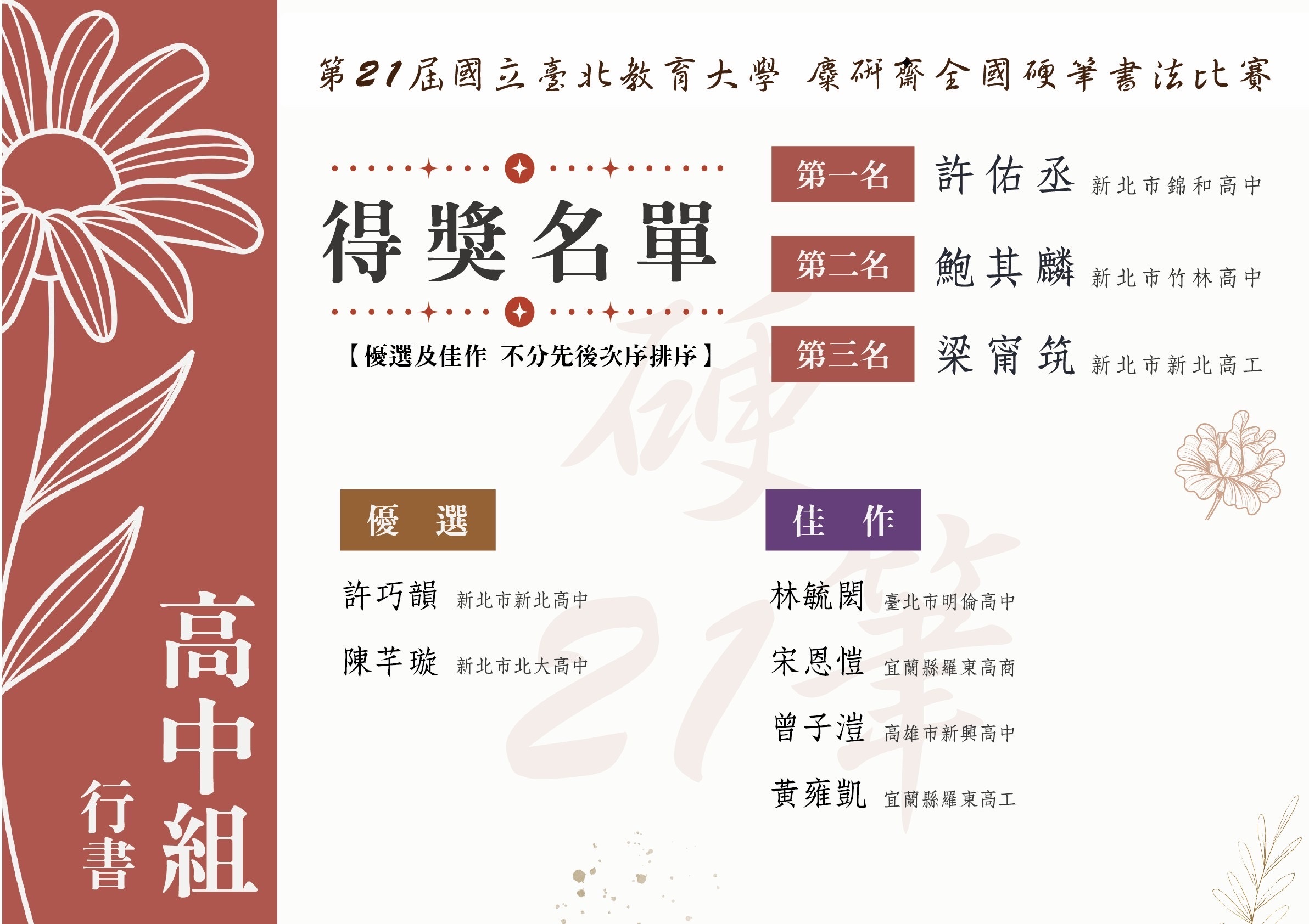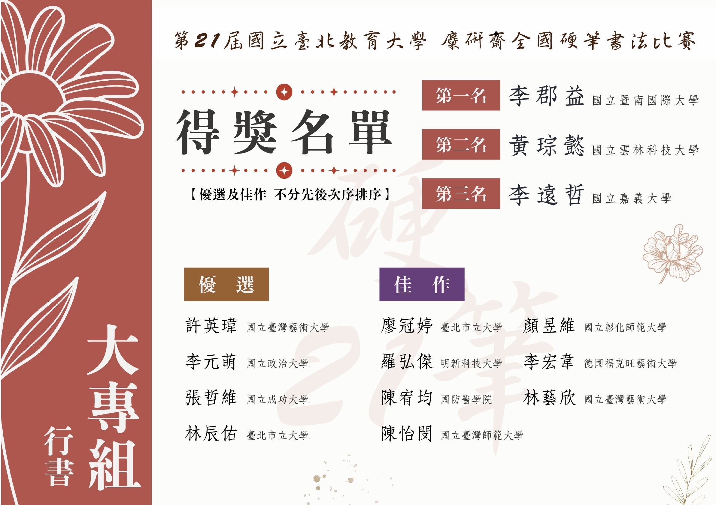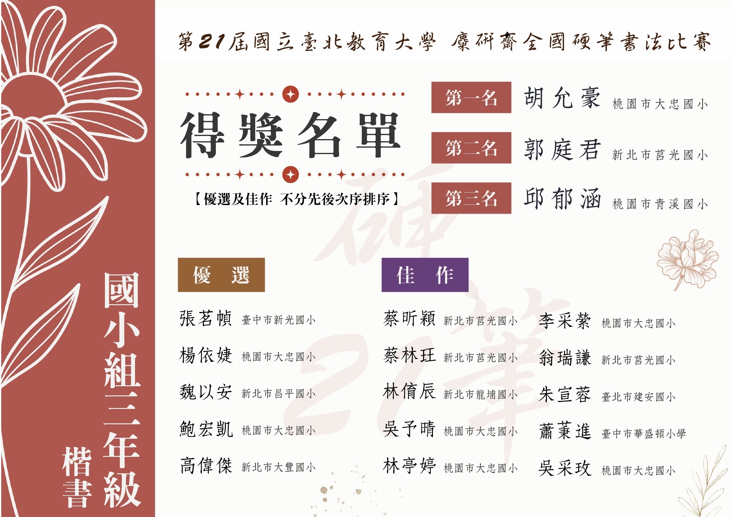 【第二十一屆國立台北教育大學.麋研齋全國硬筆書法比賽】