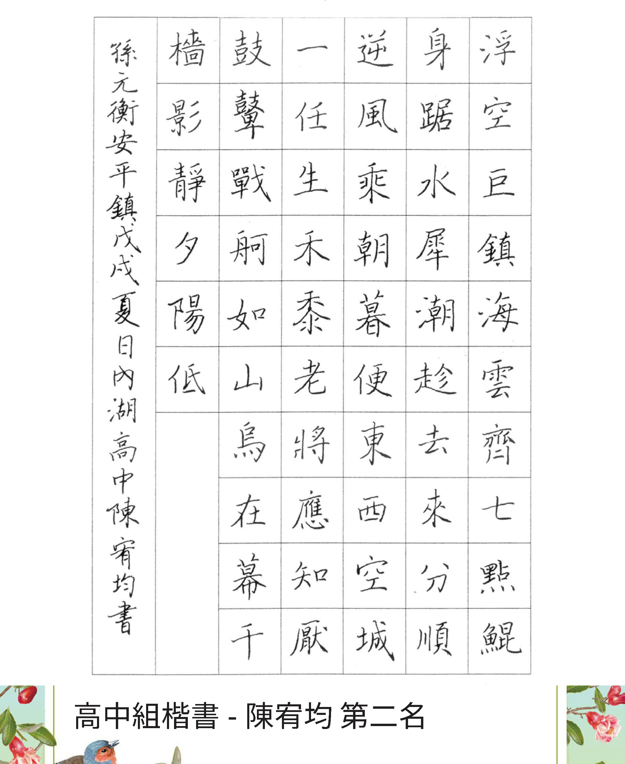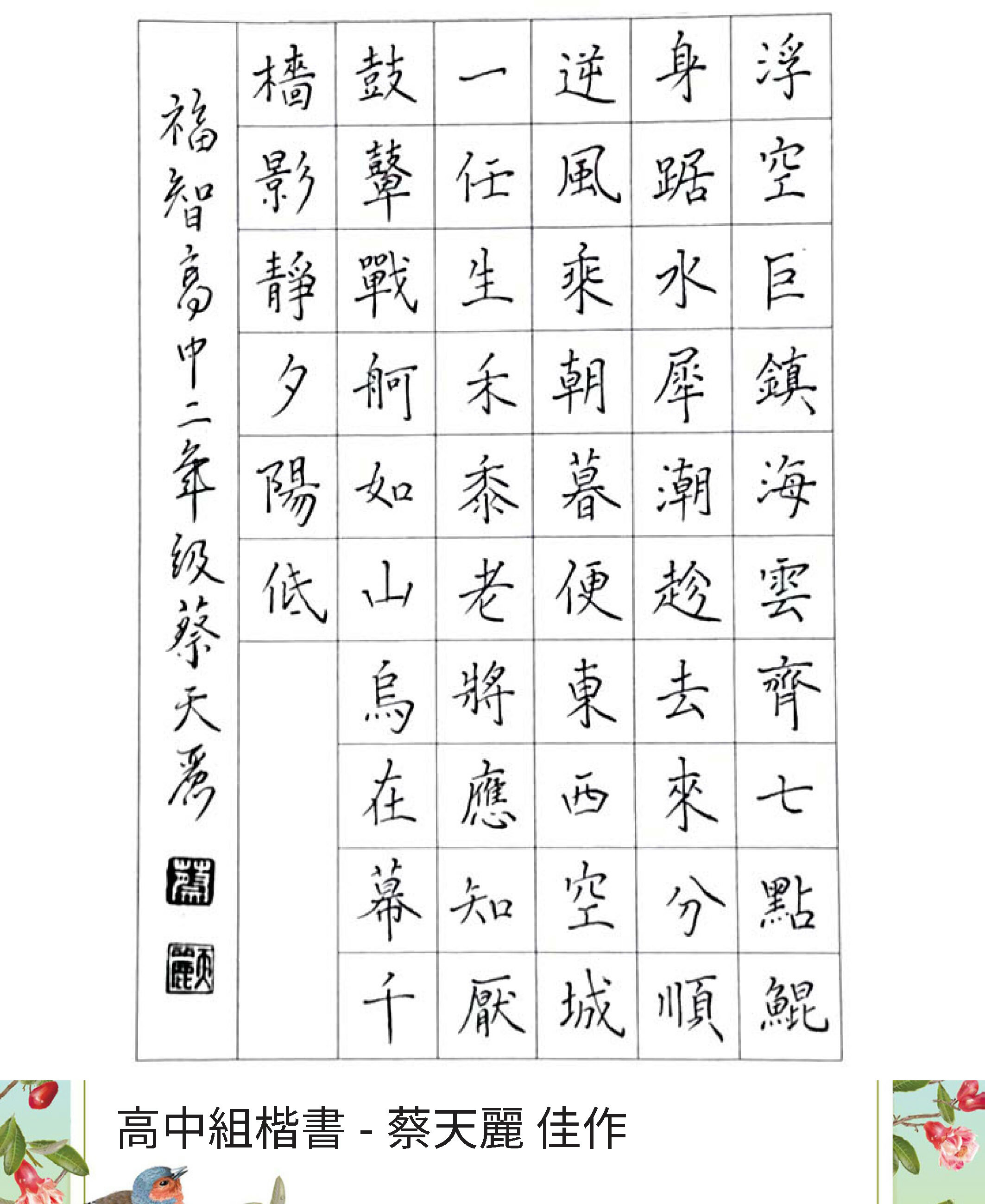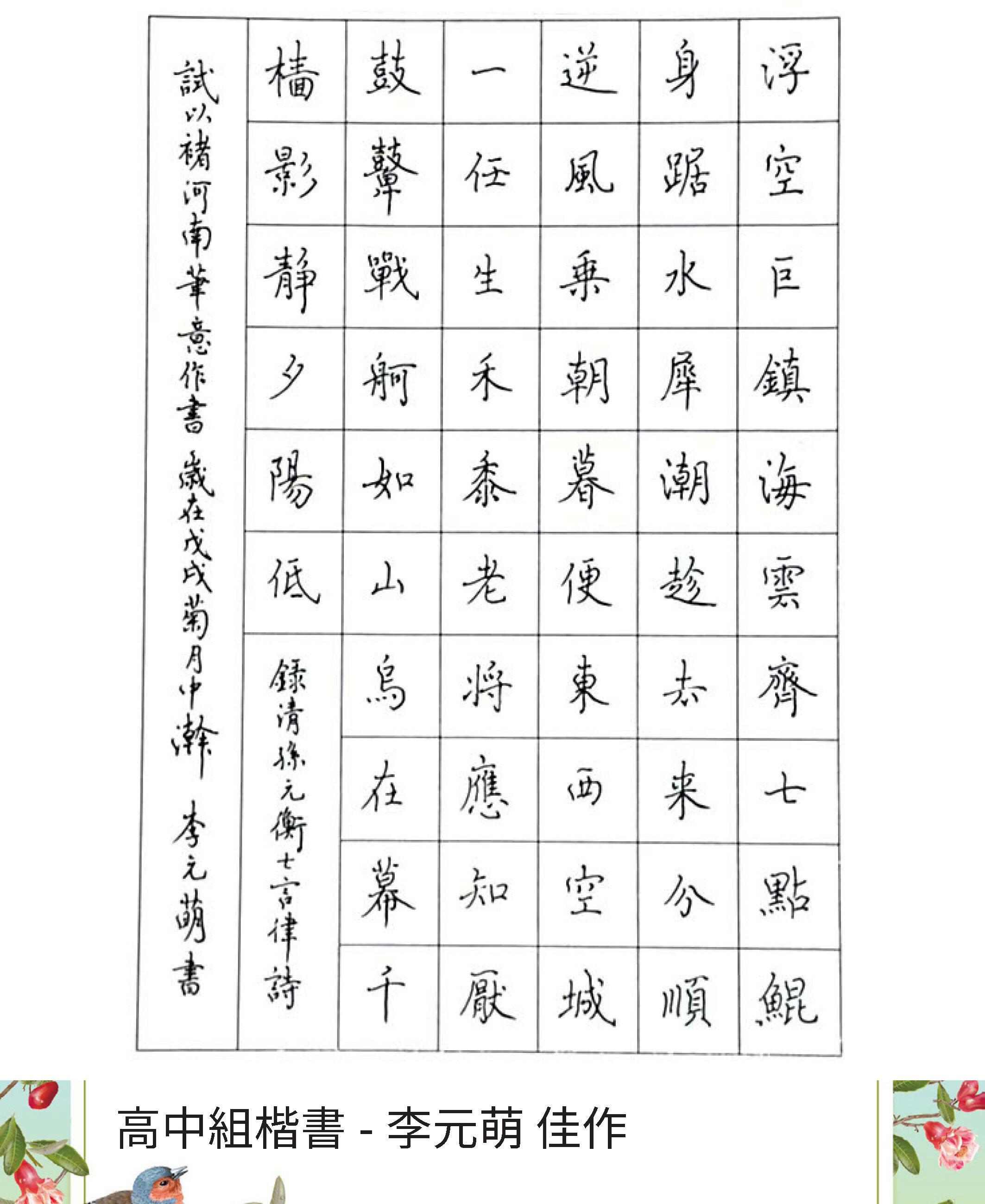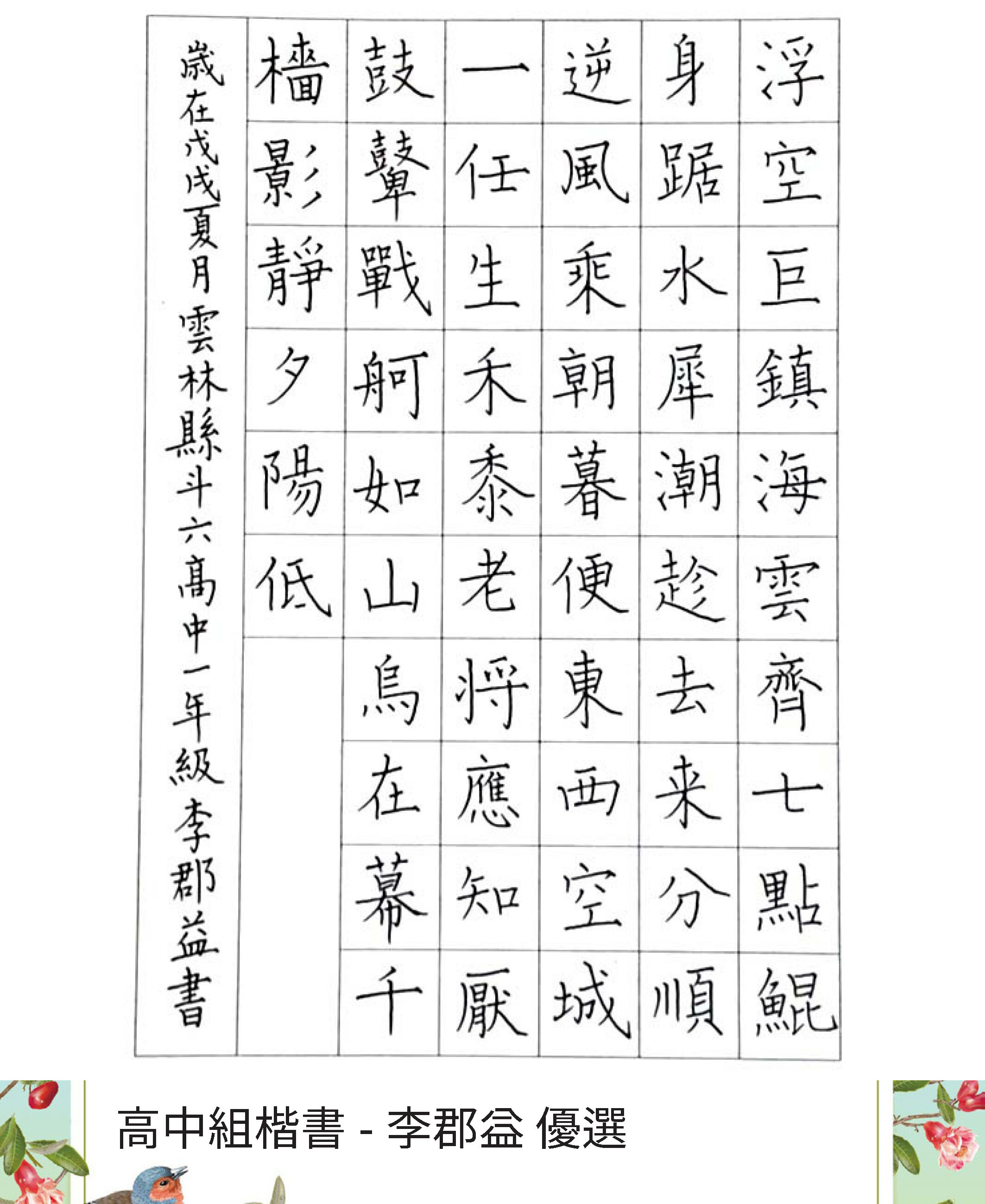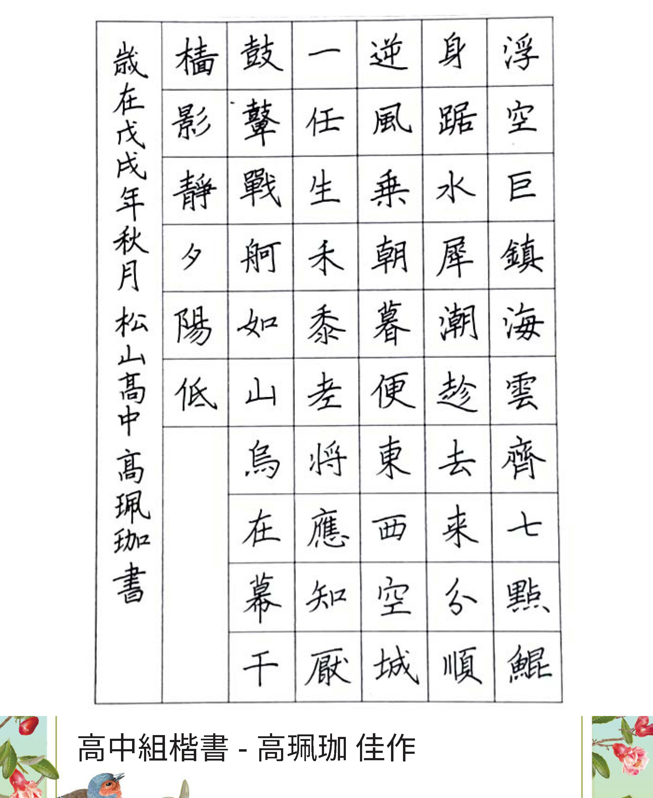 高中組楷書