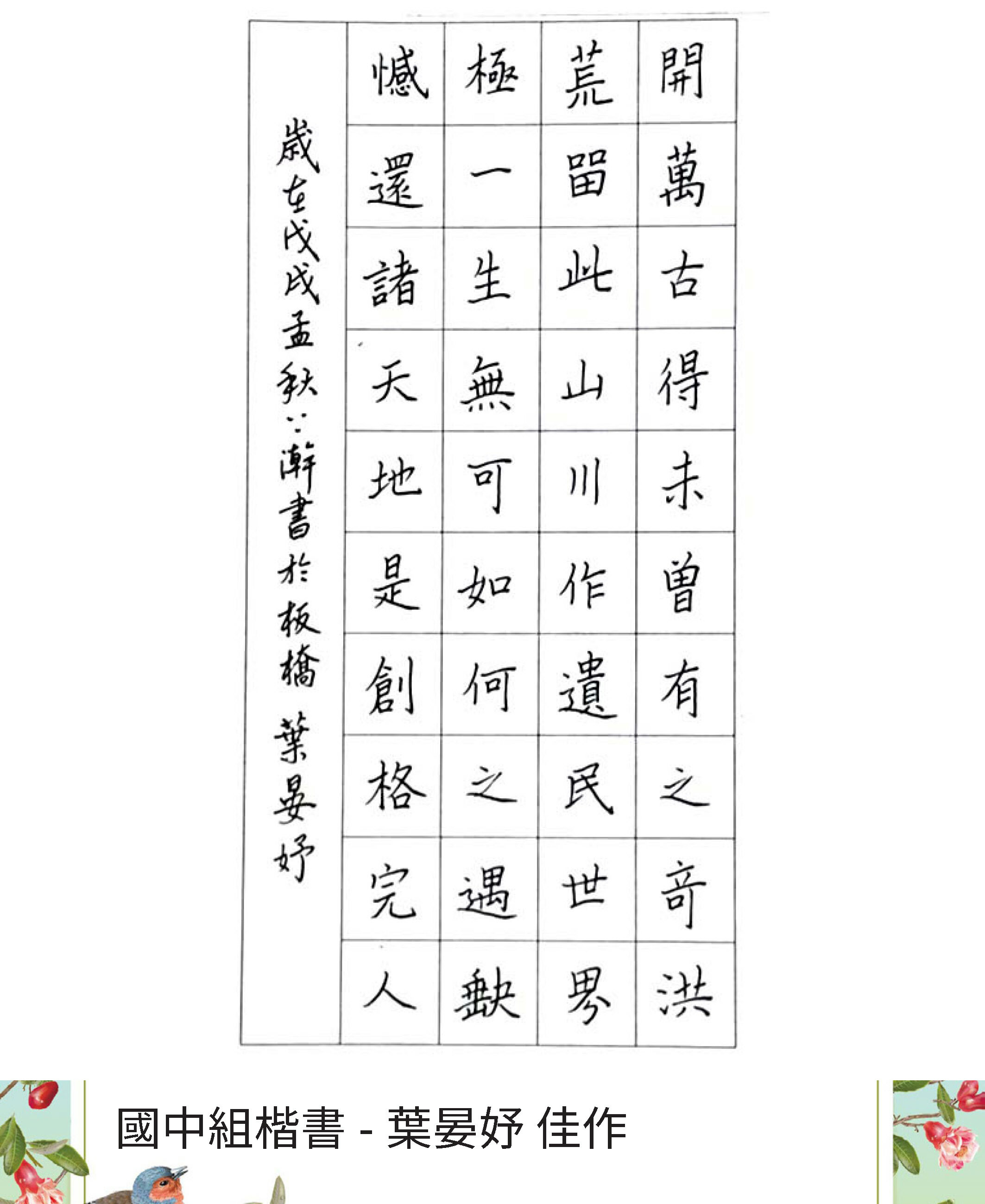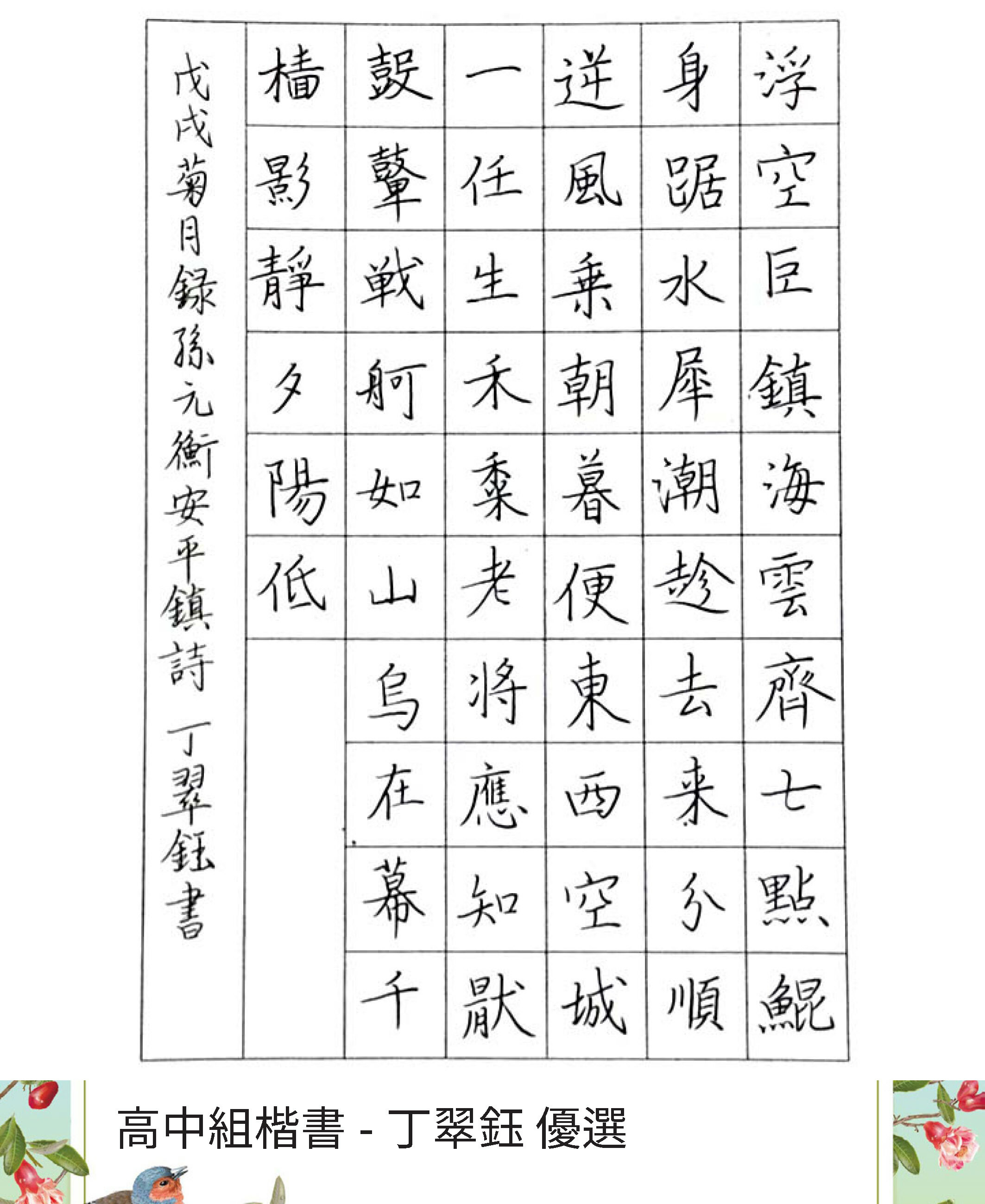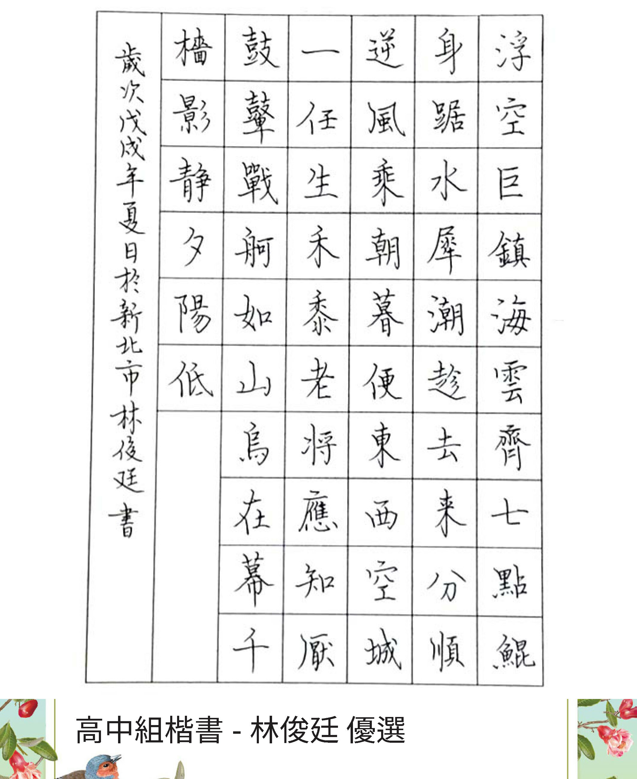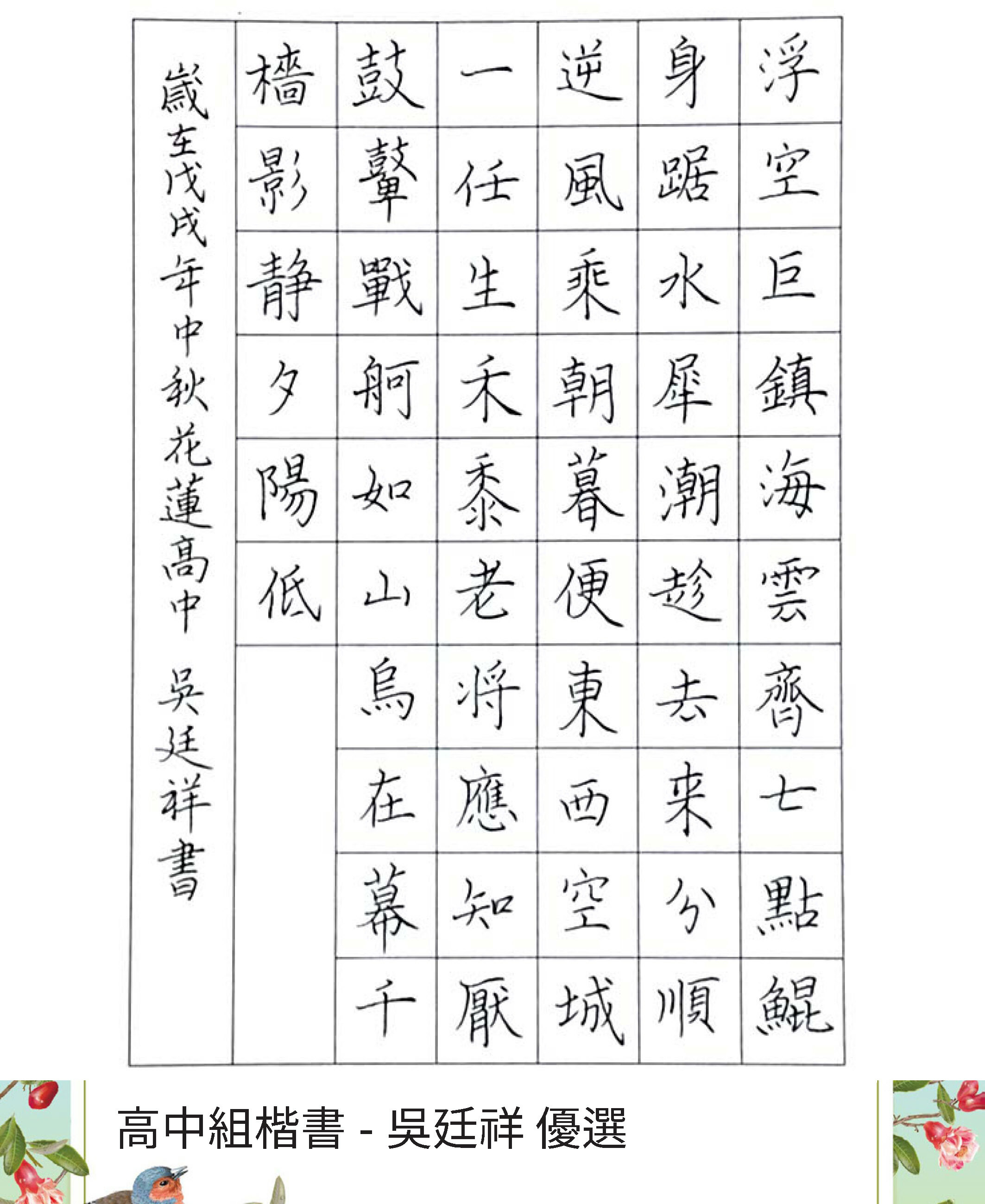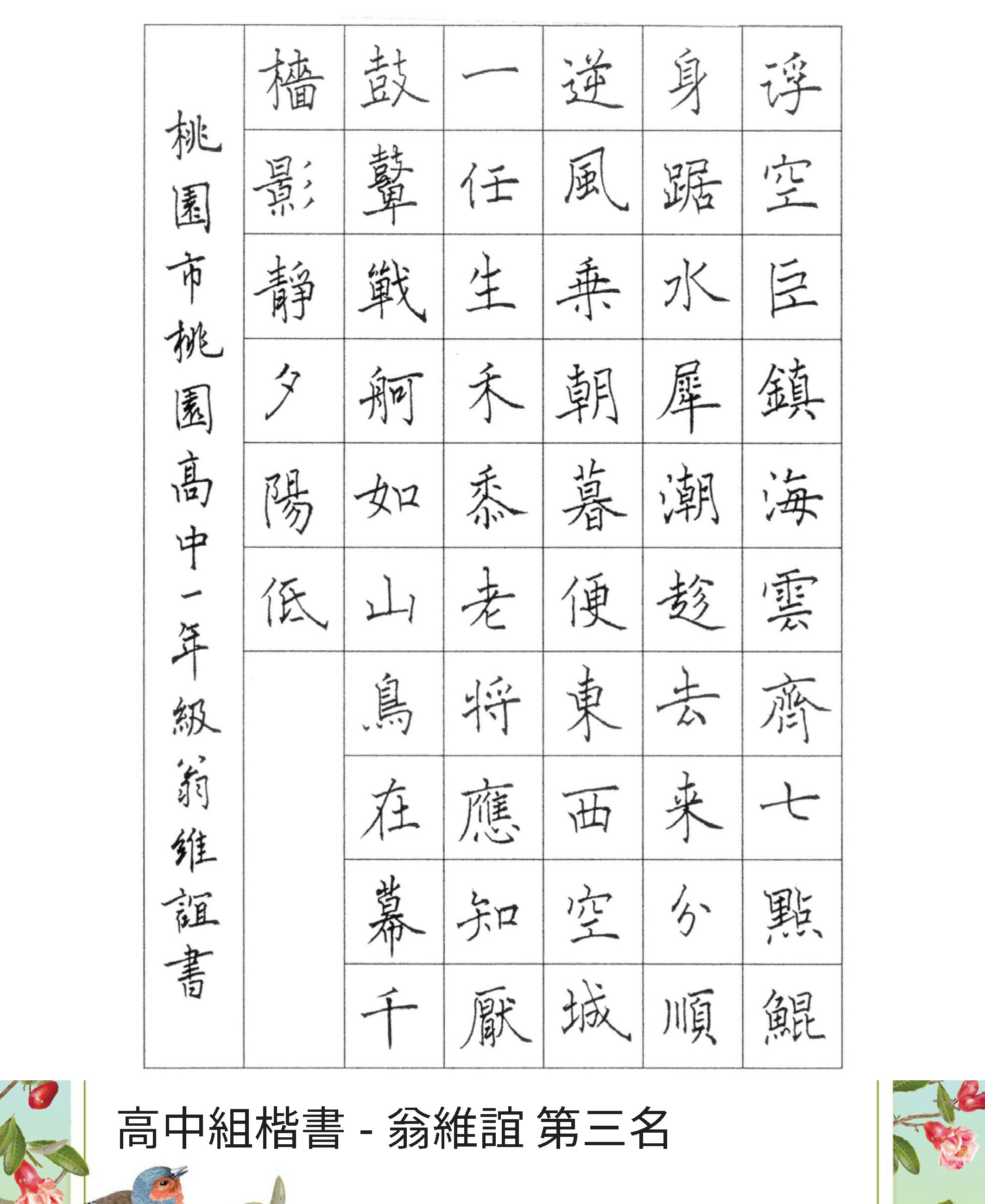 高中組楷書