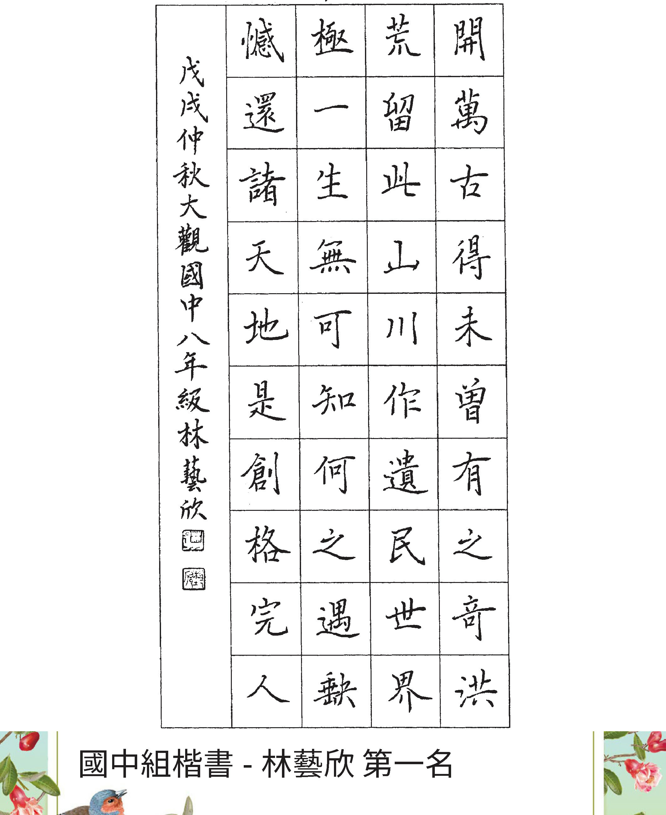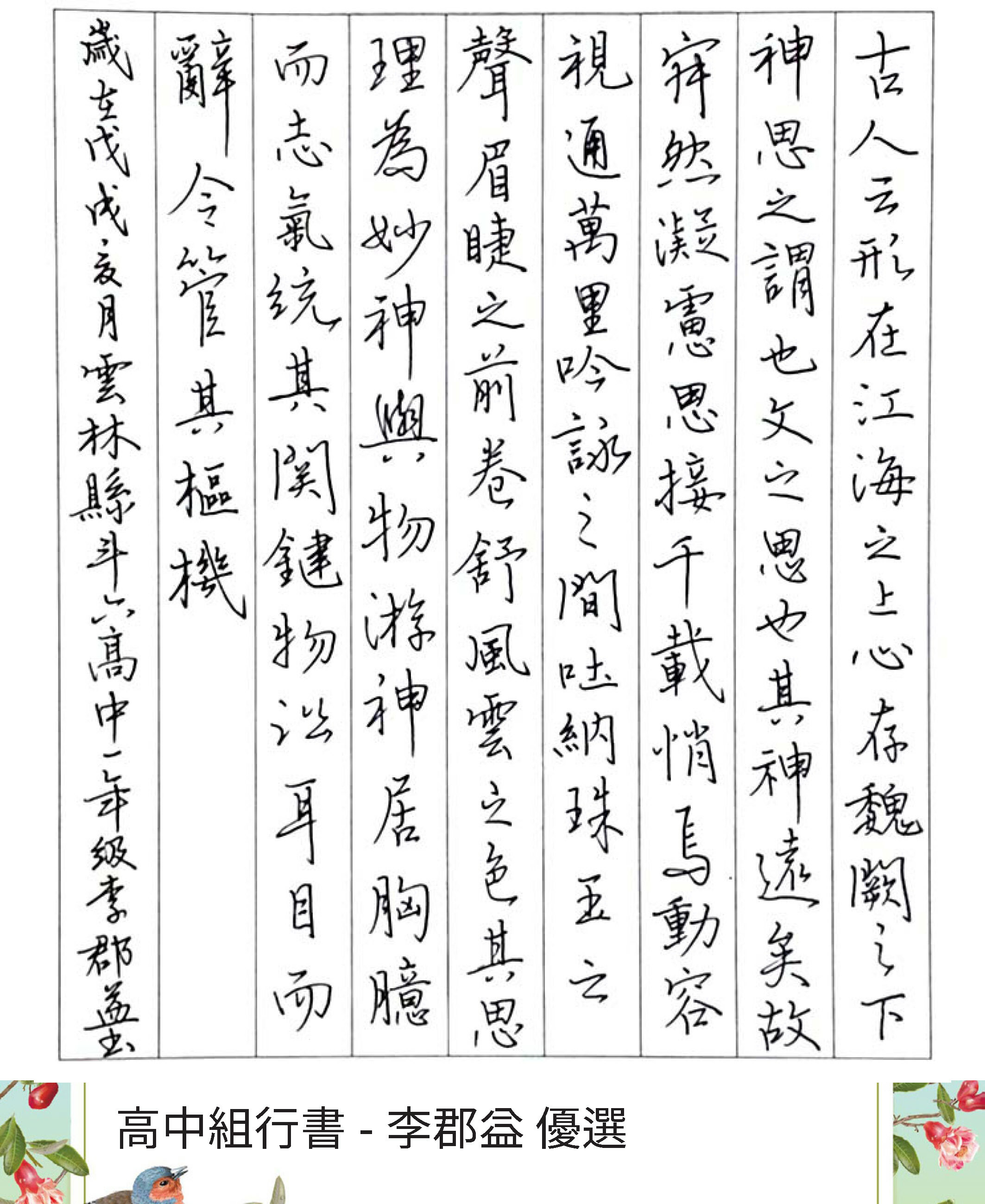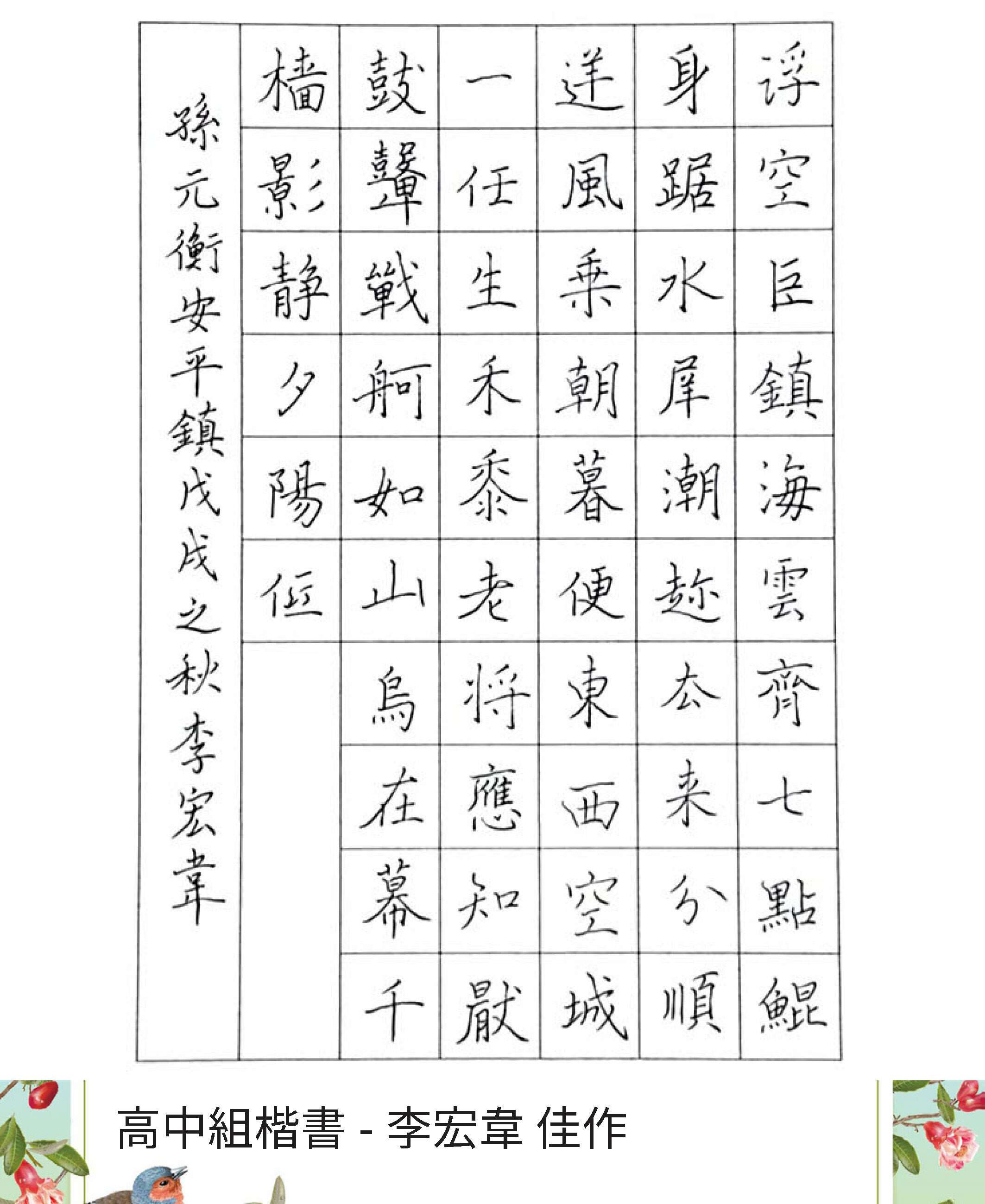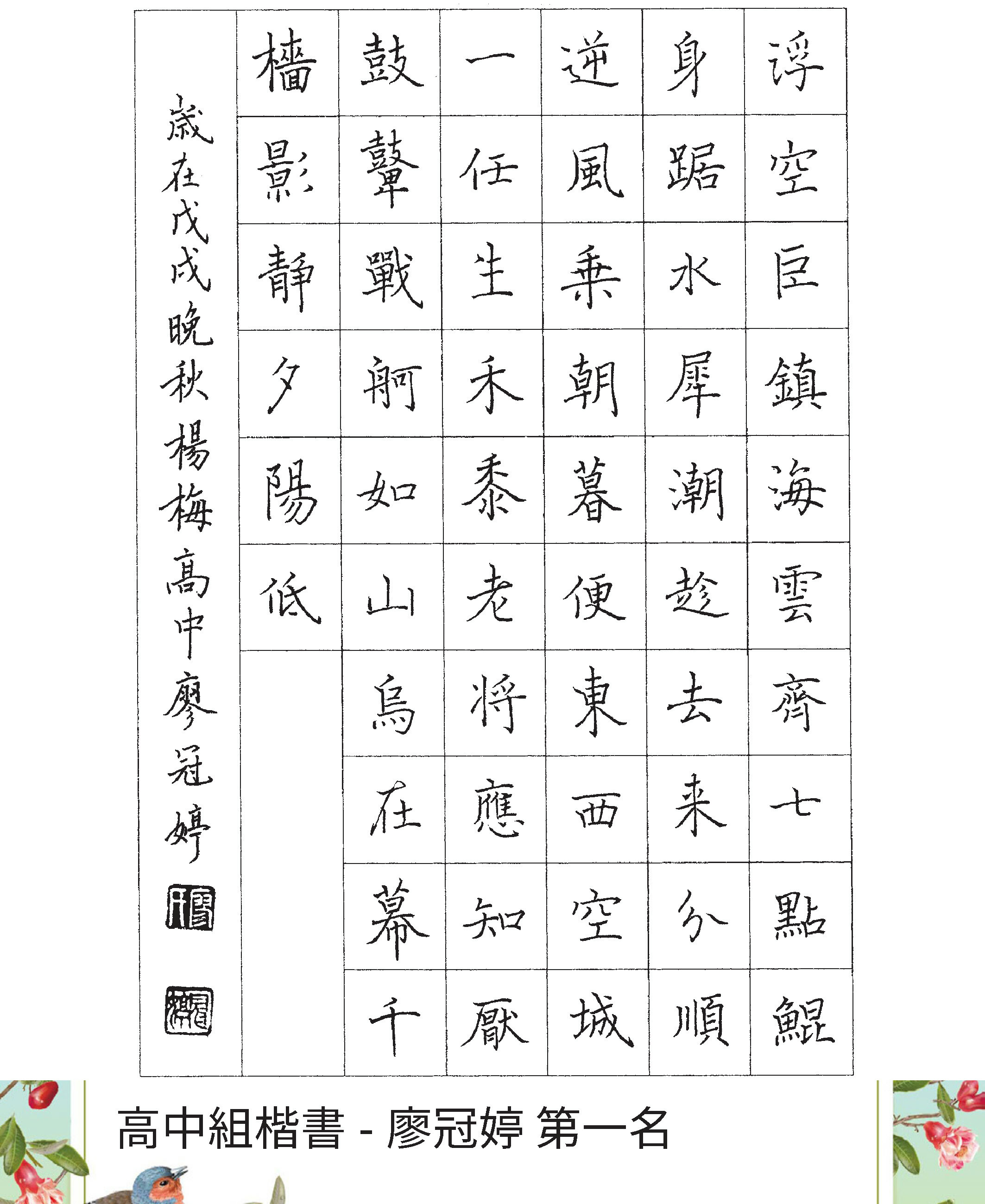 高中組楷書