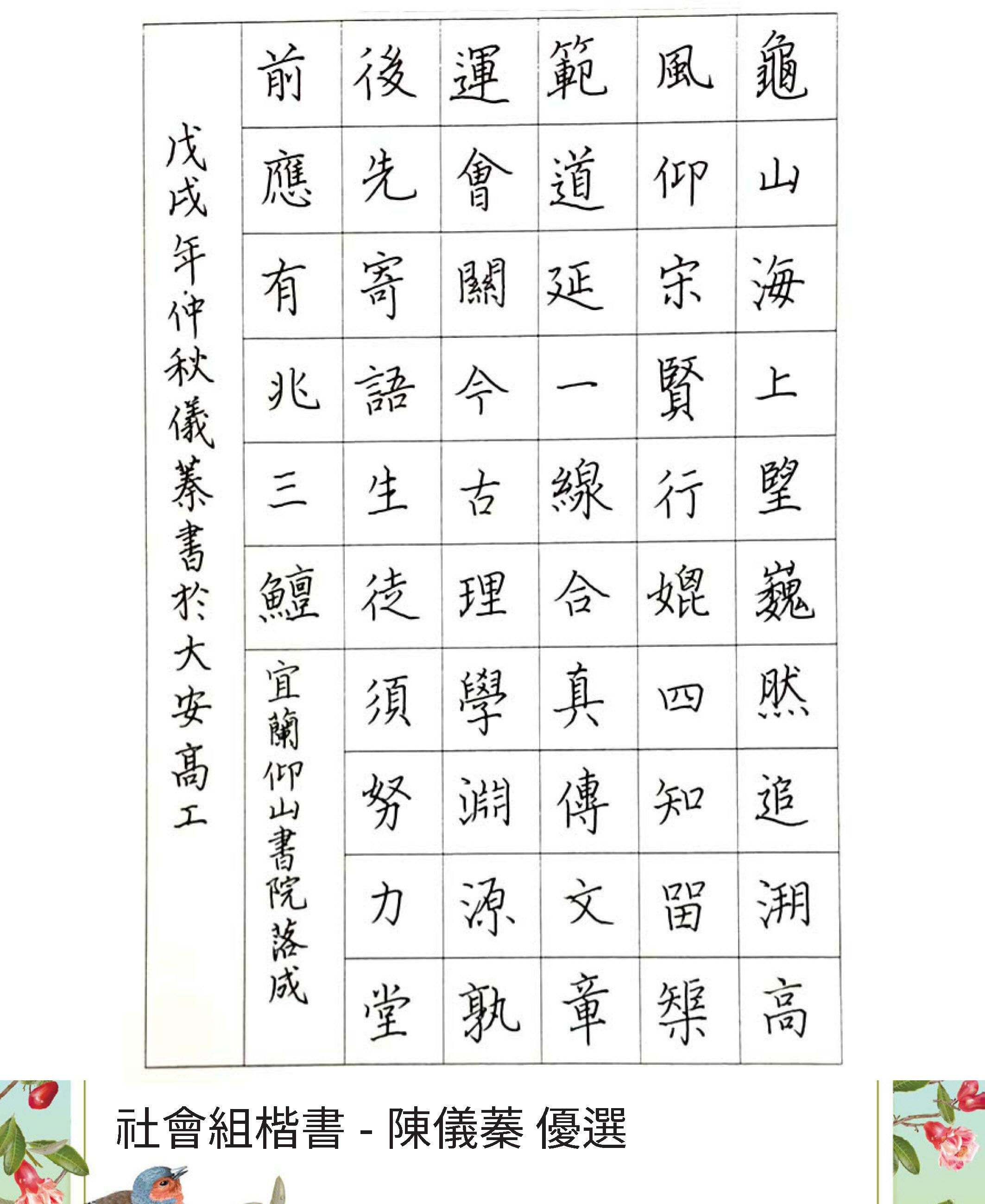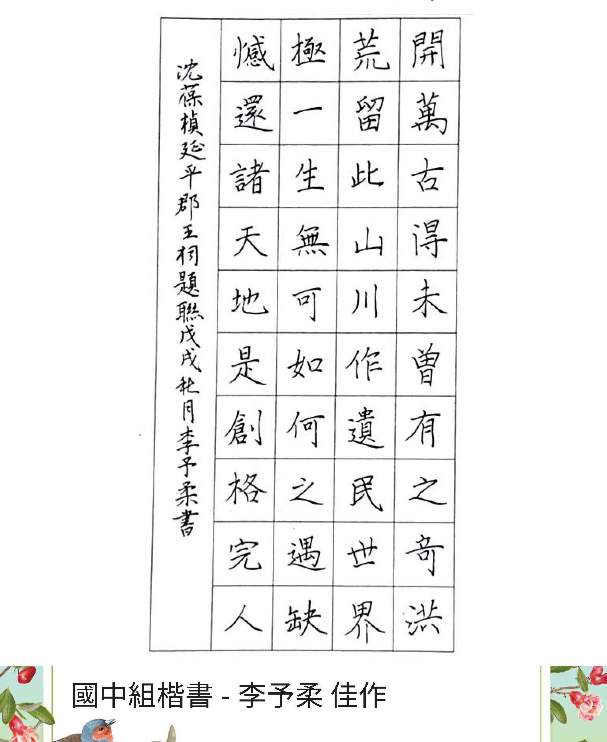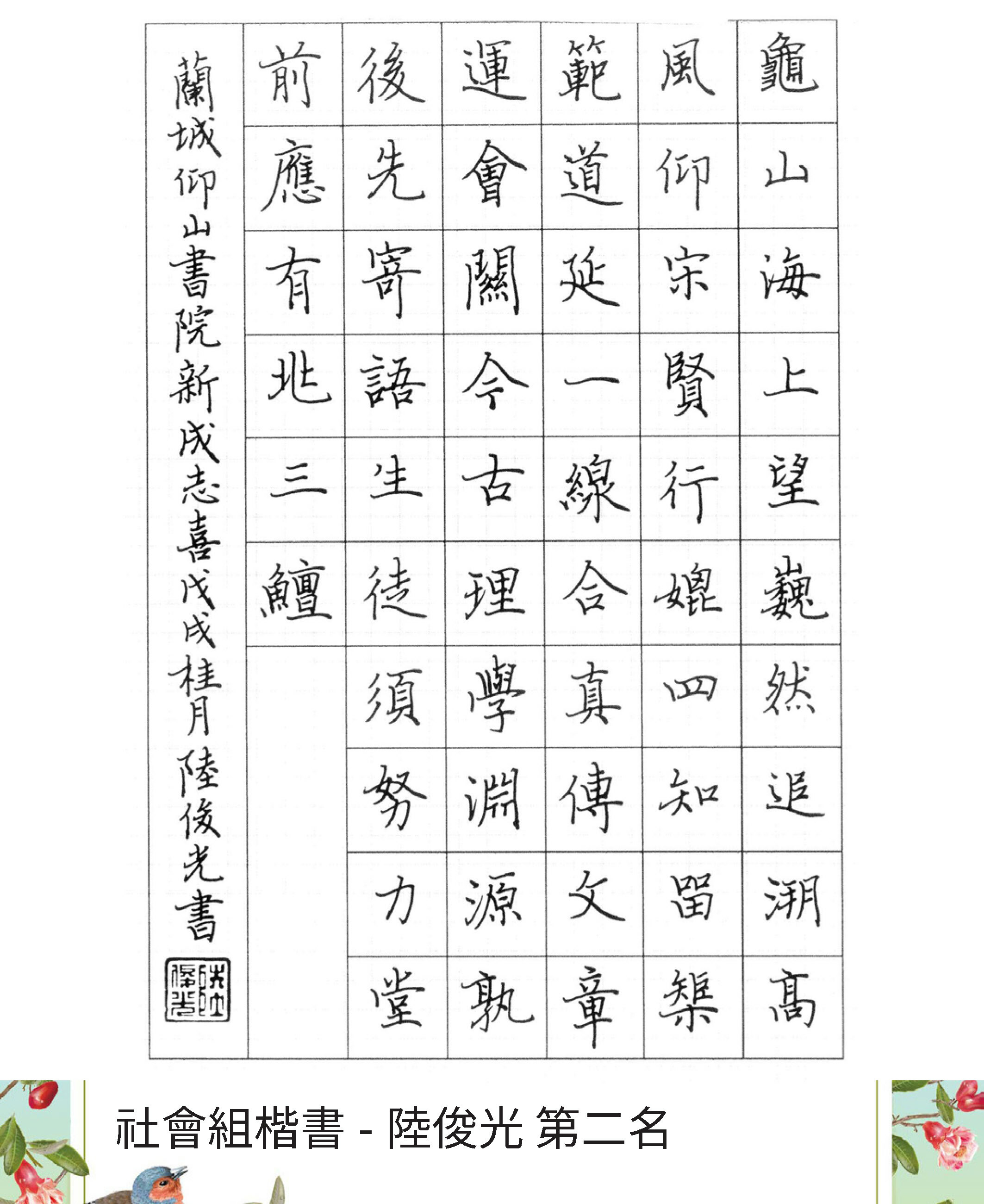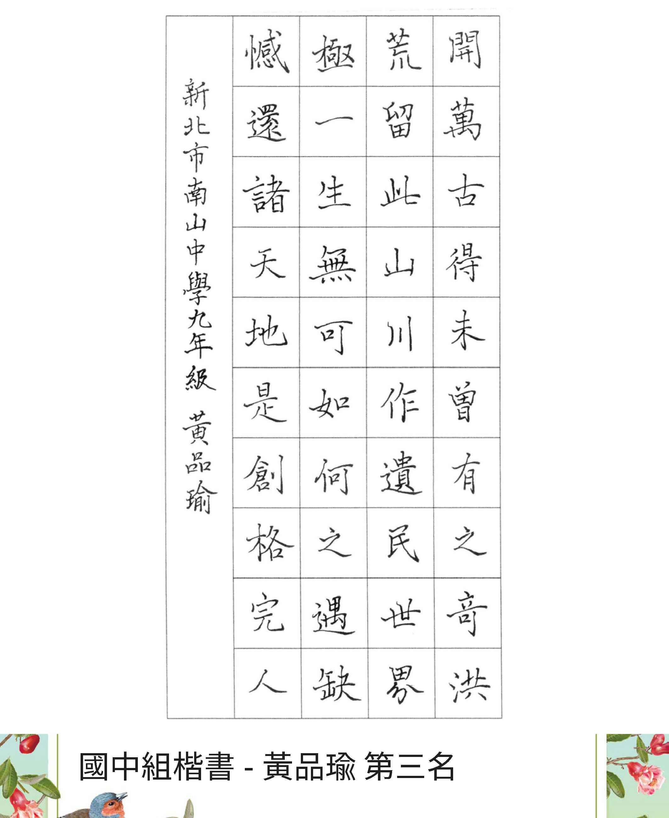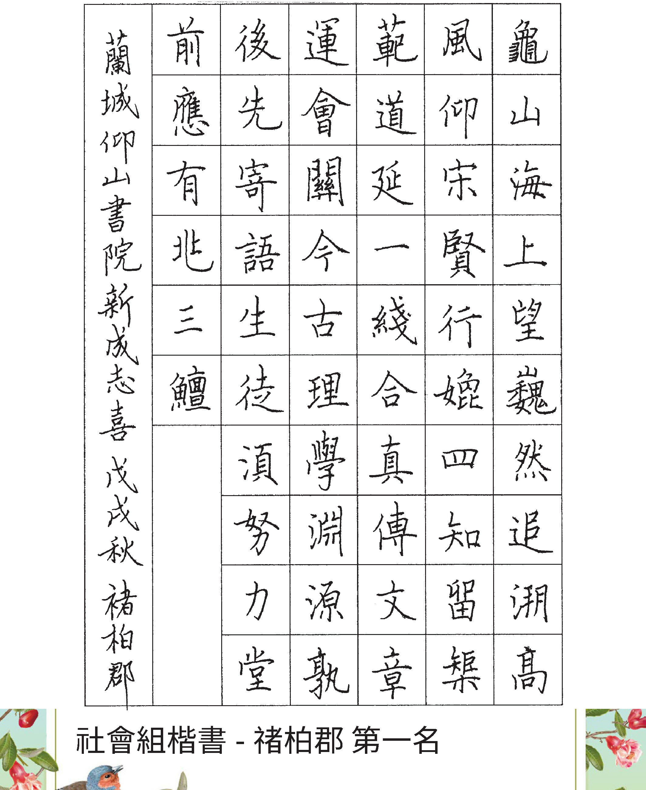 高中組楷書