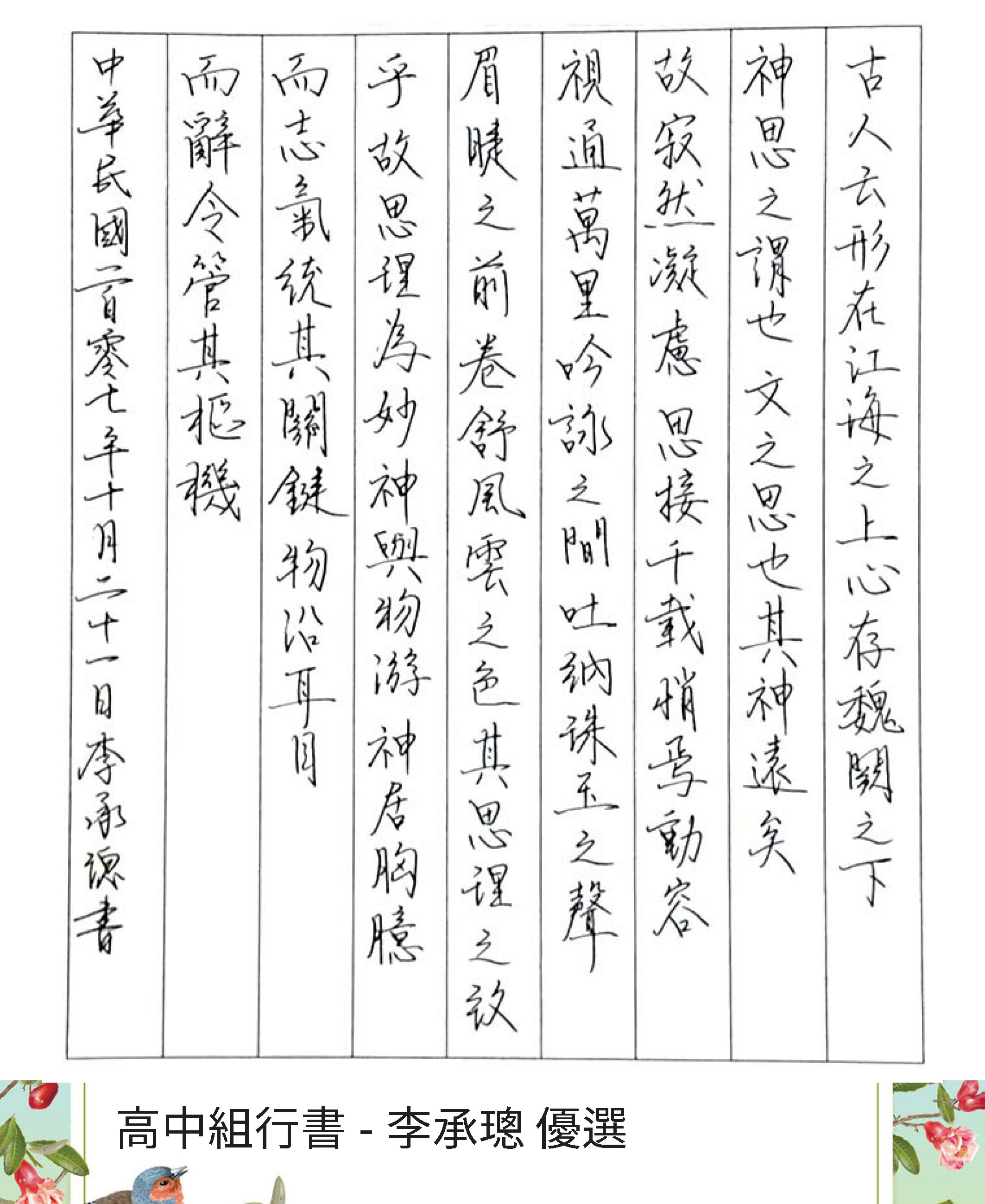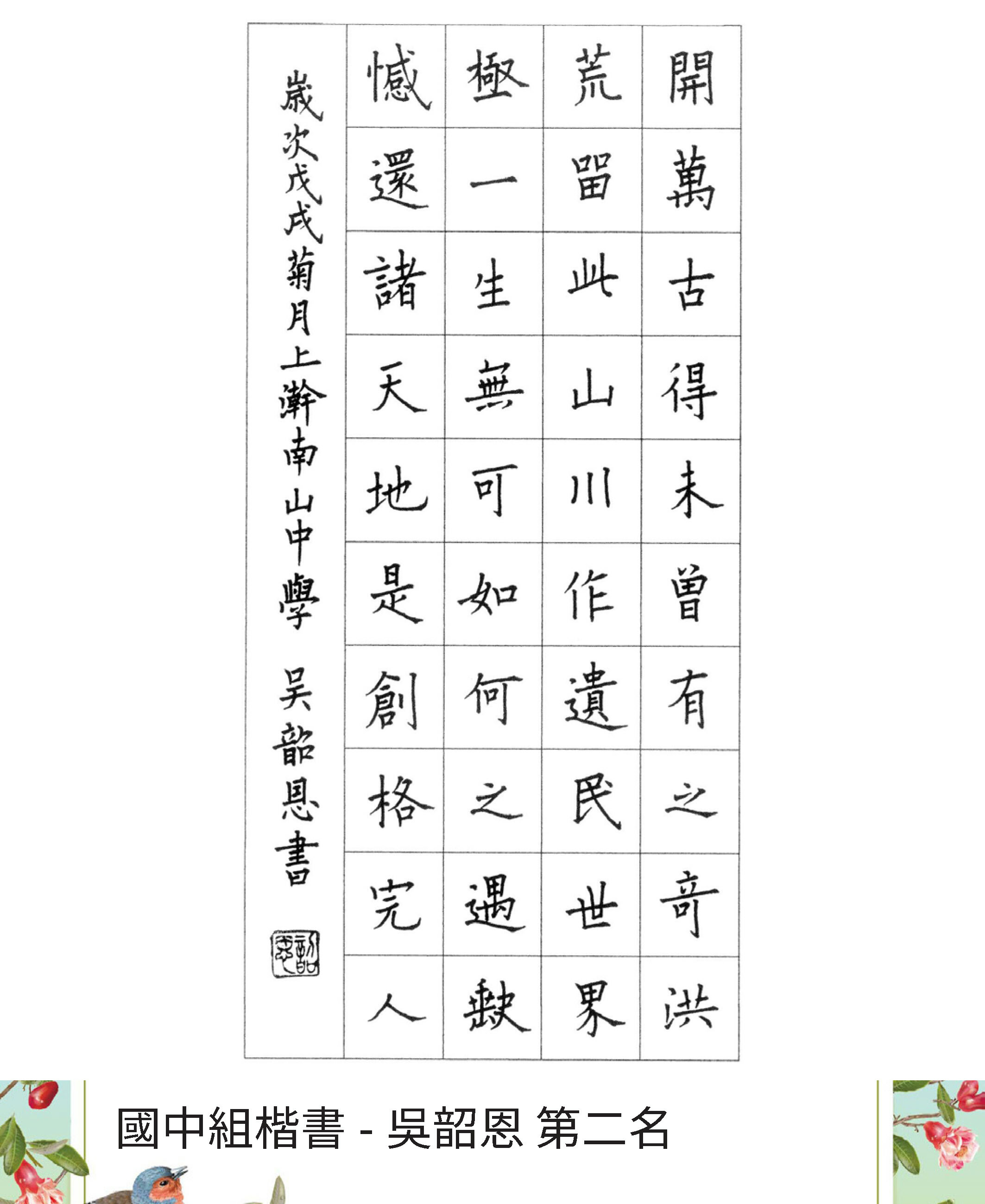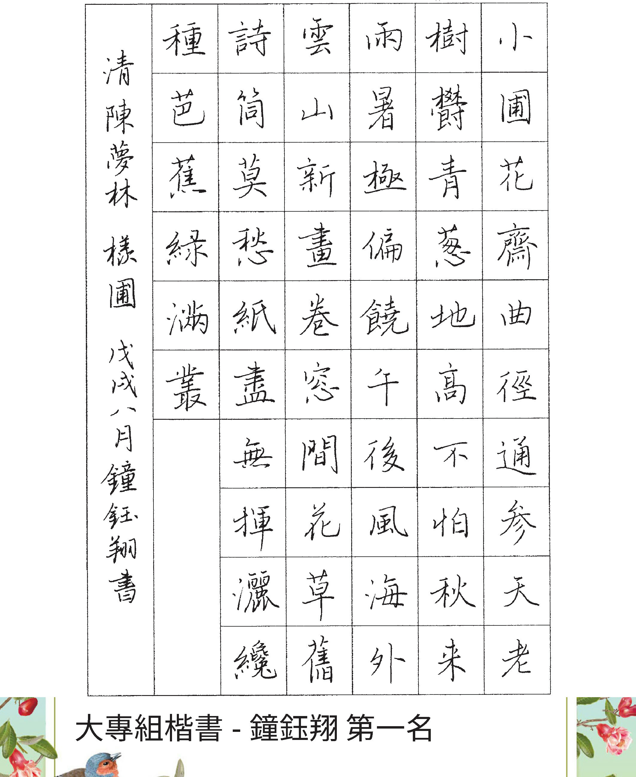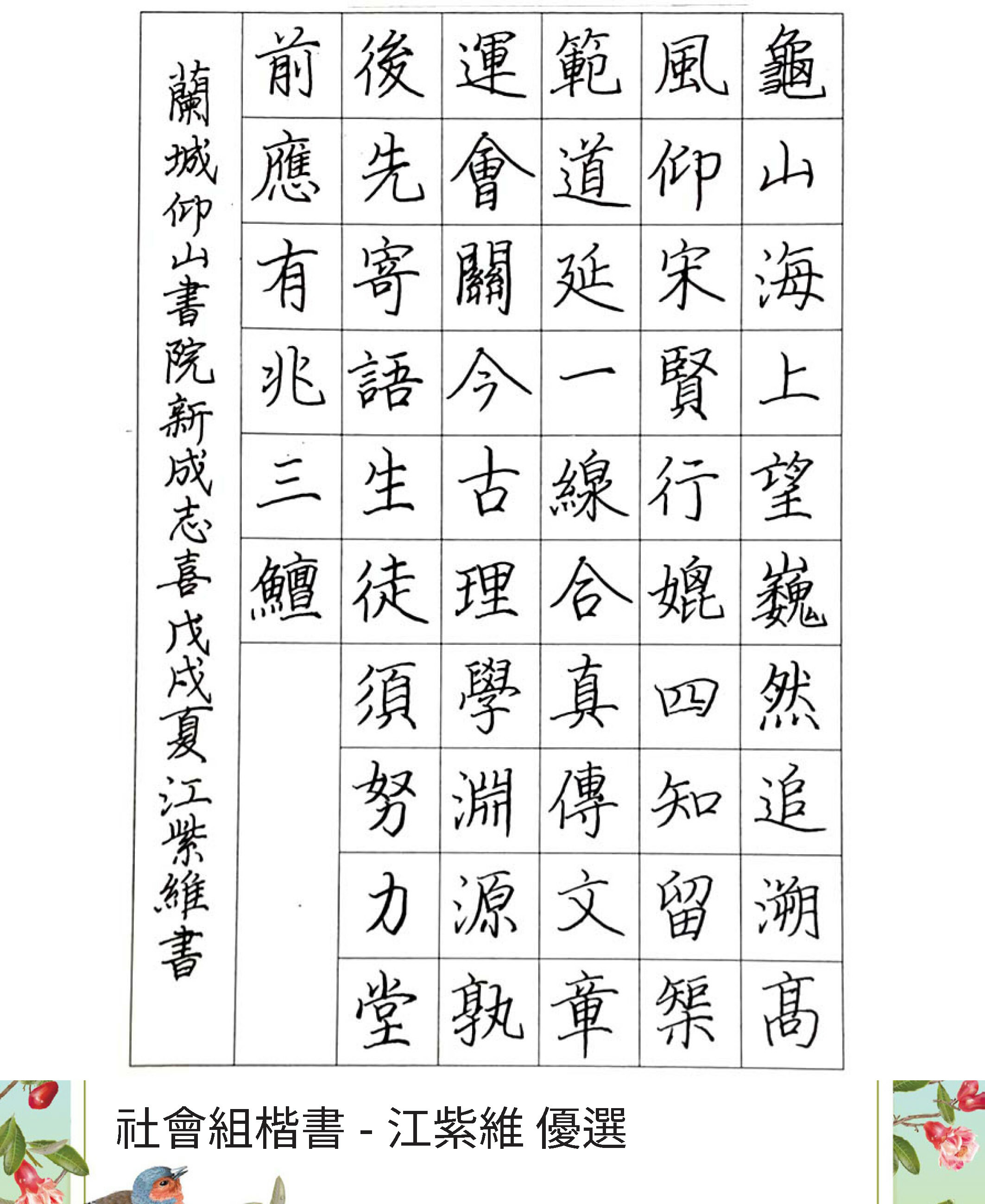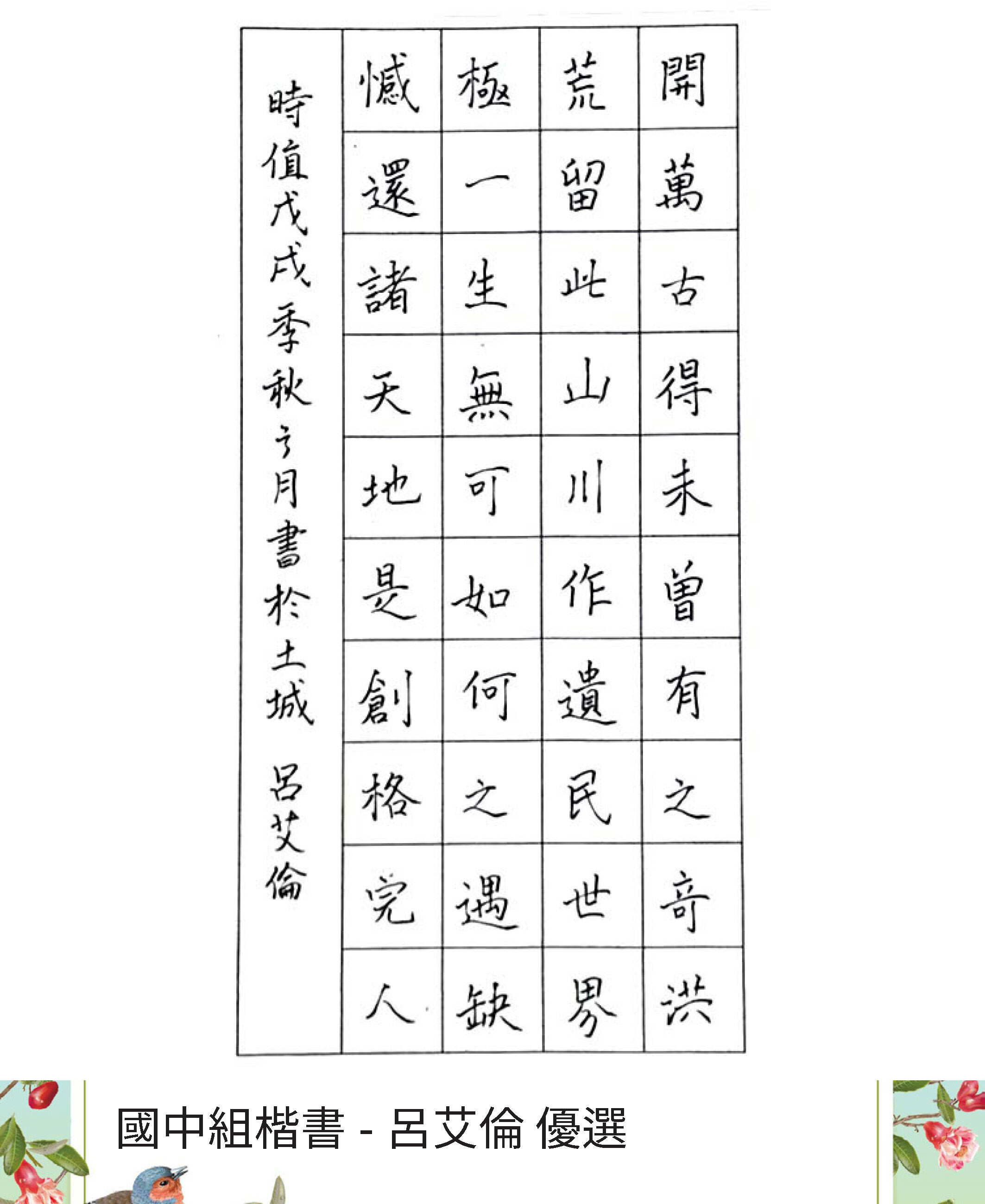 高中組楷書