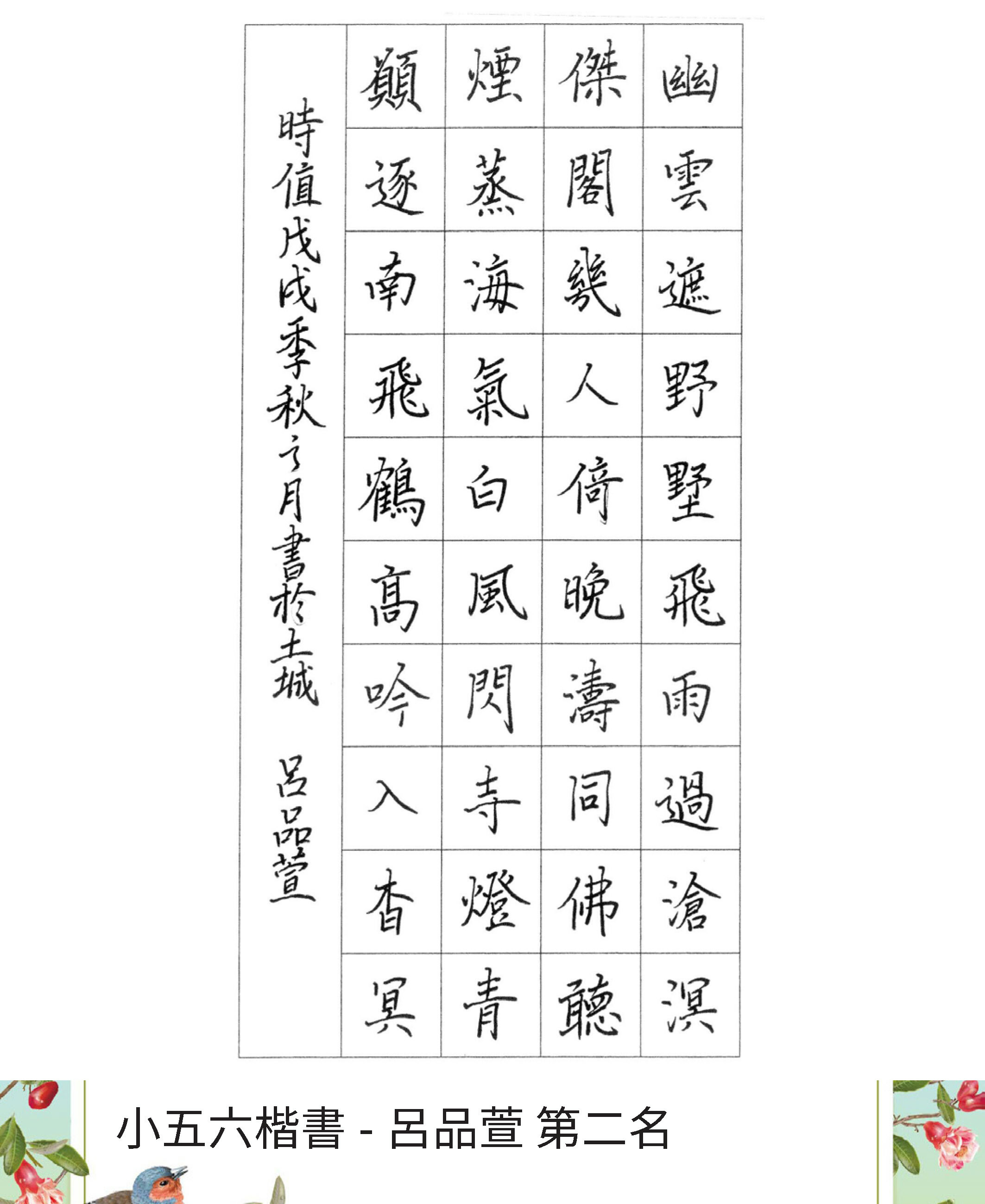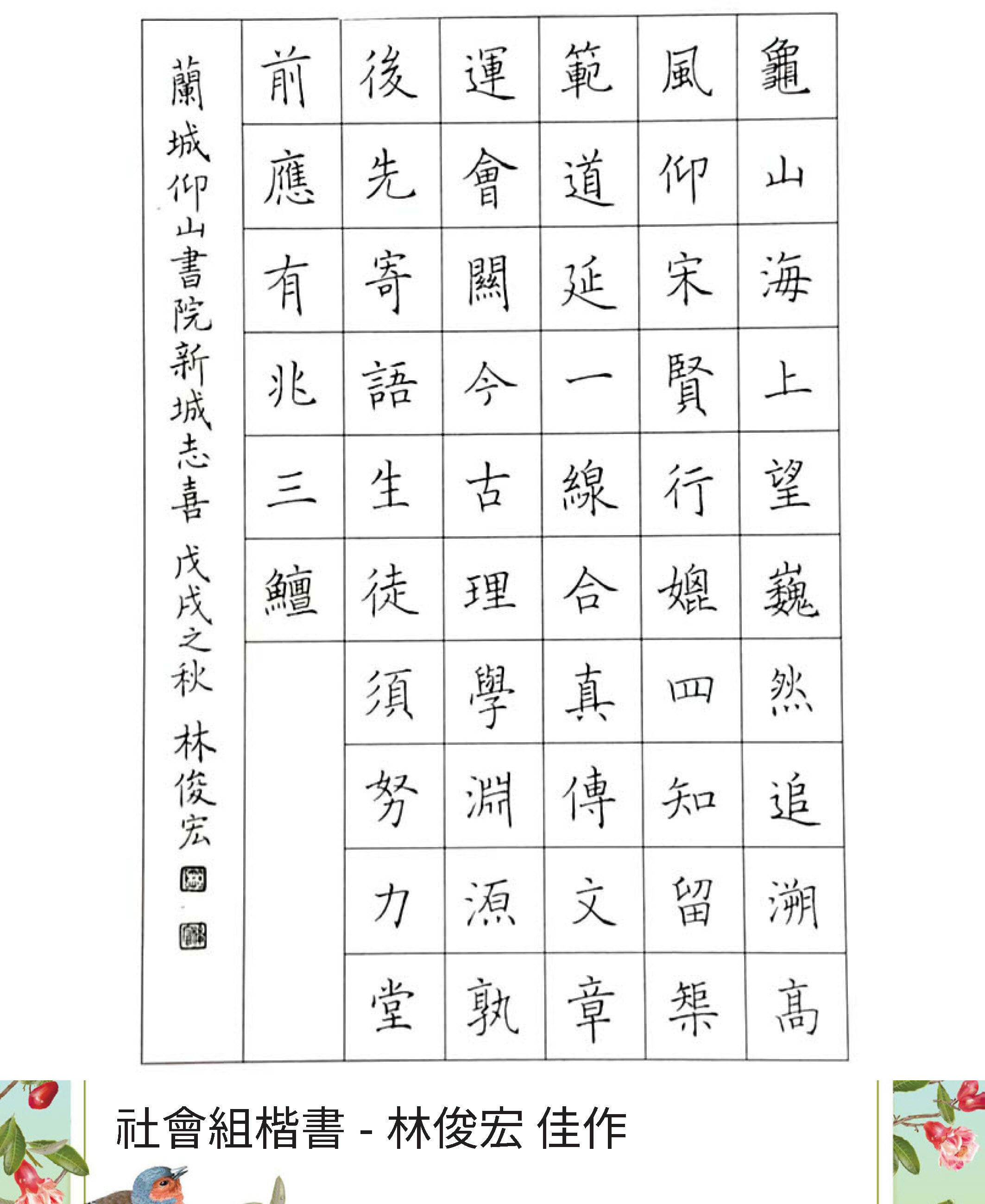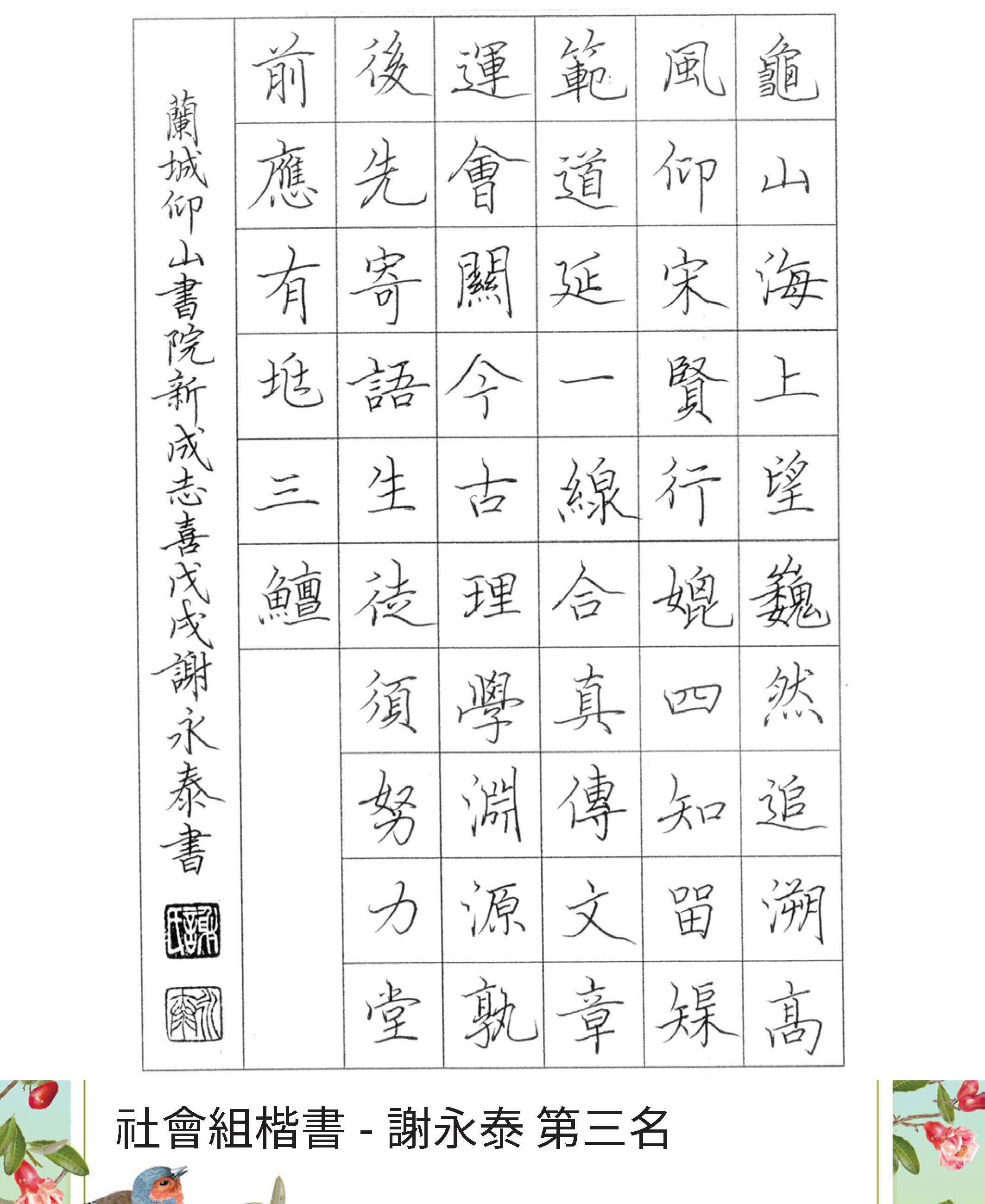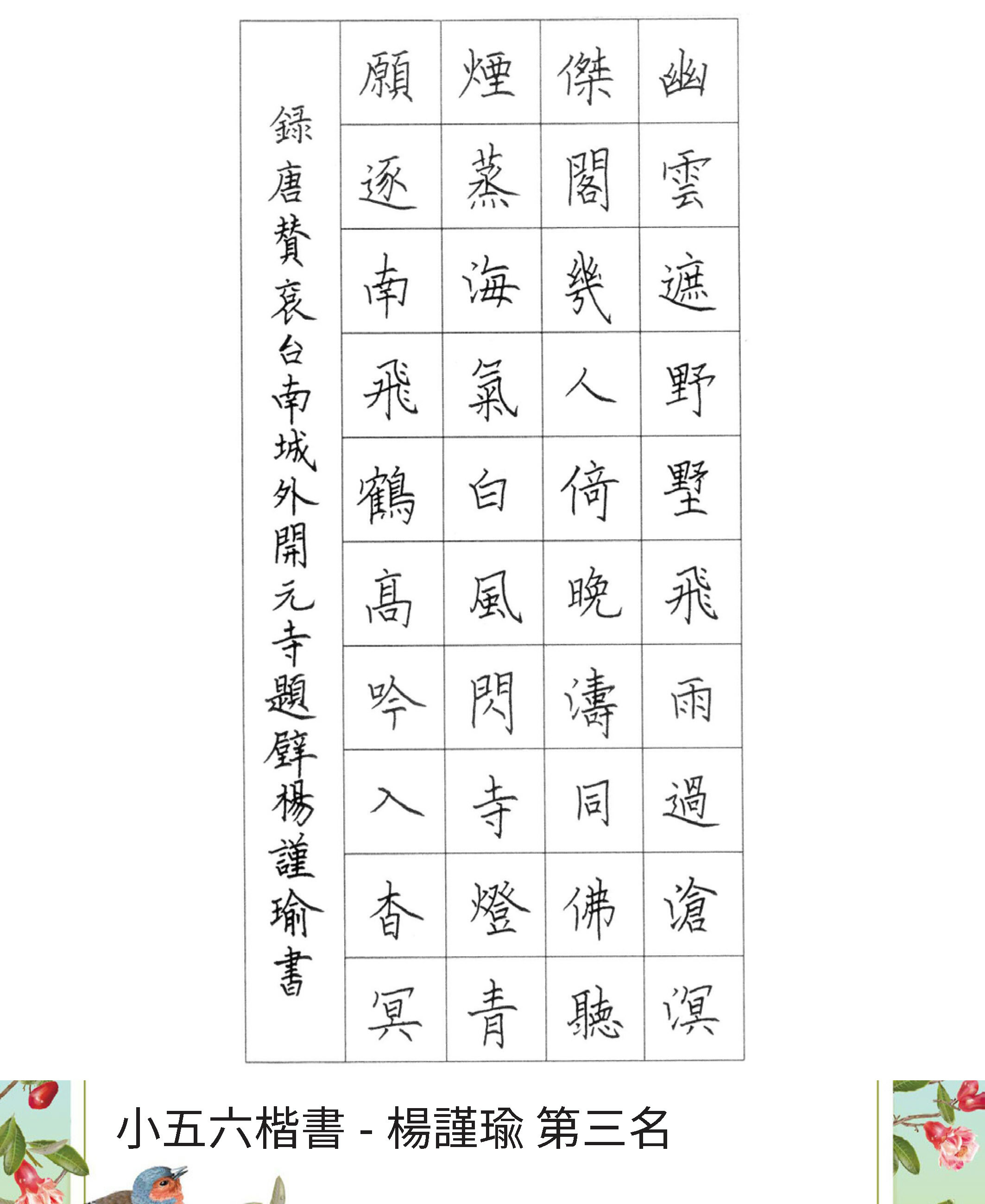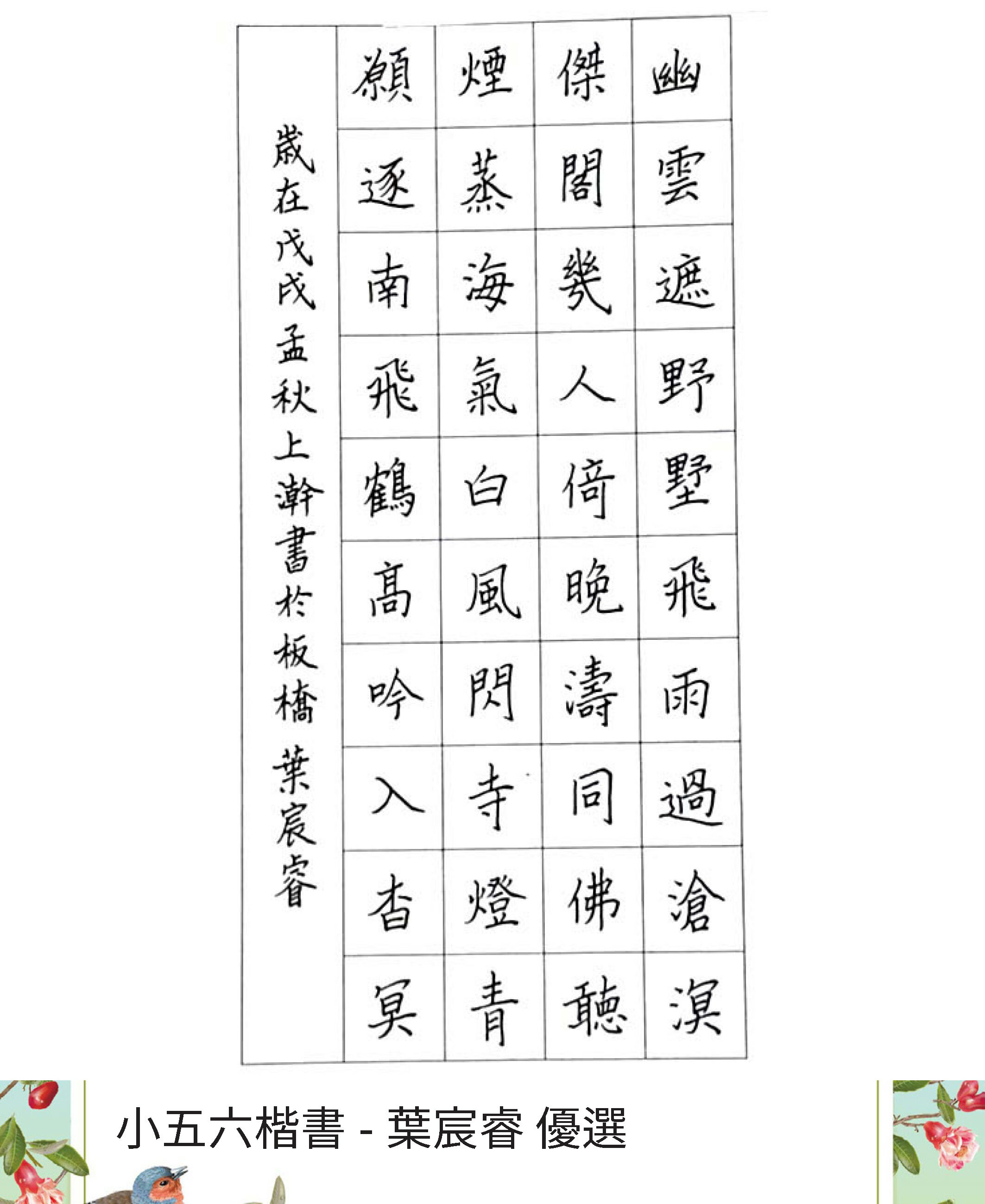 高中組楷書