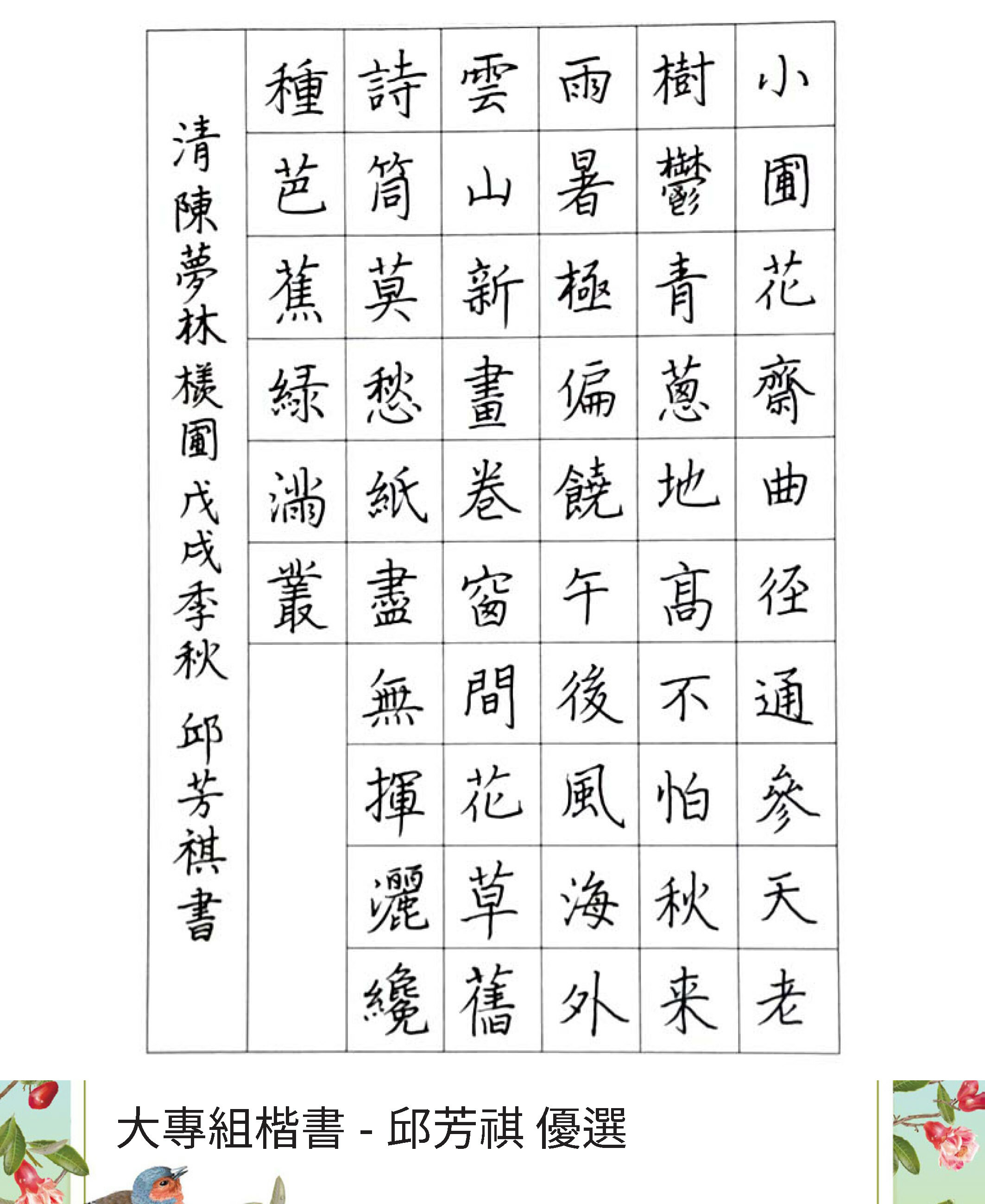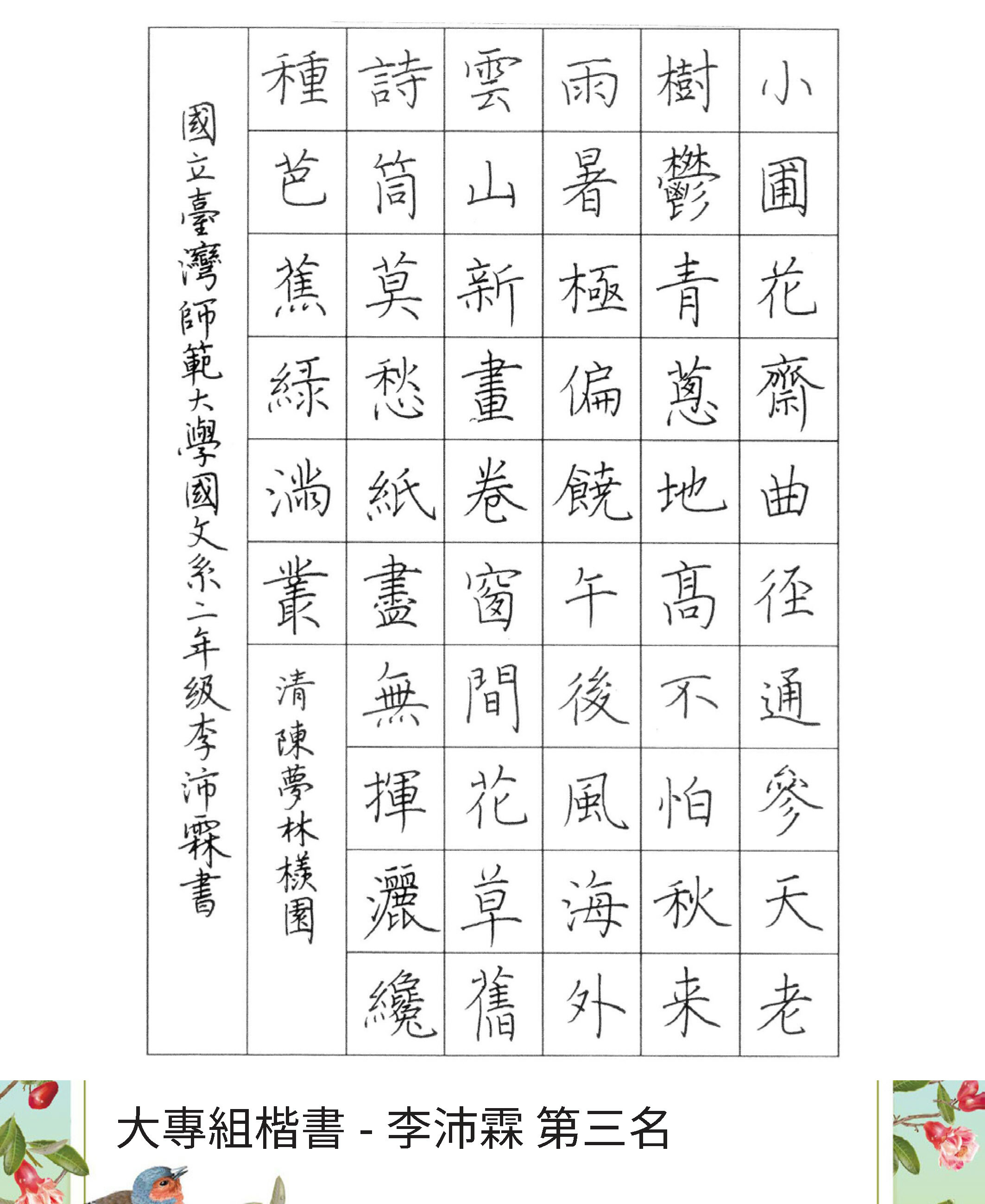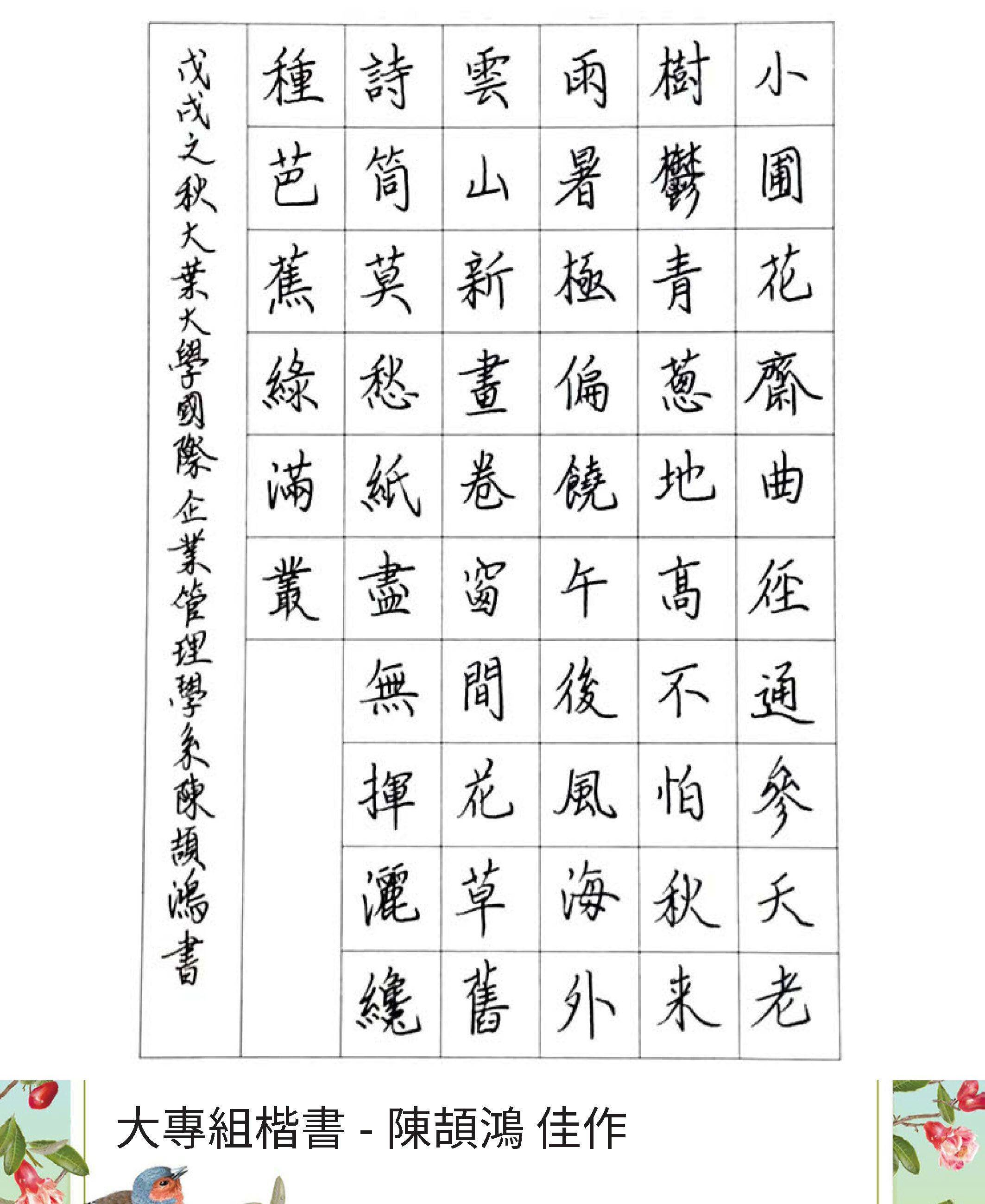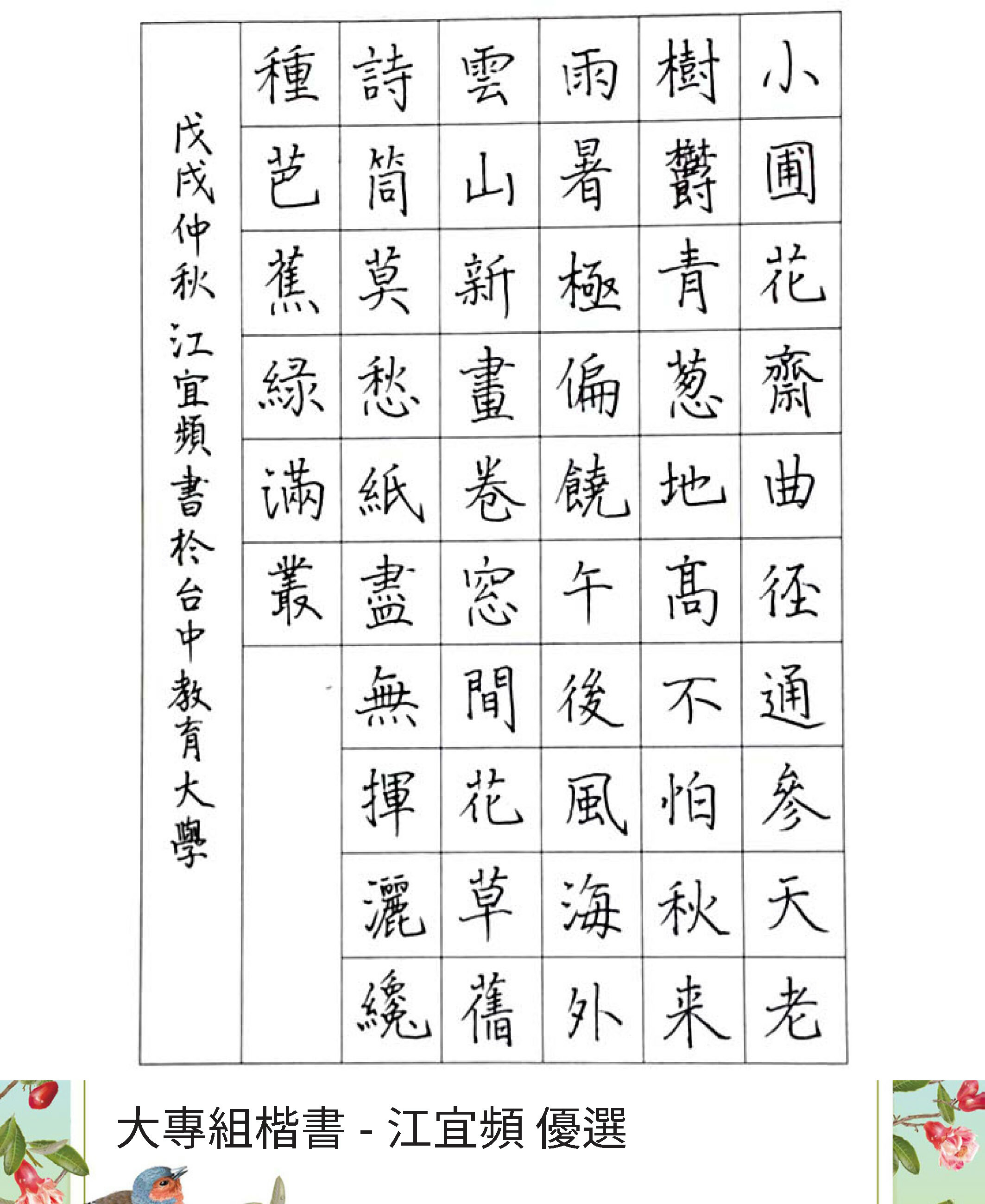大專組楷書