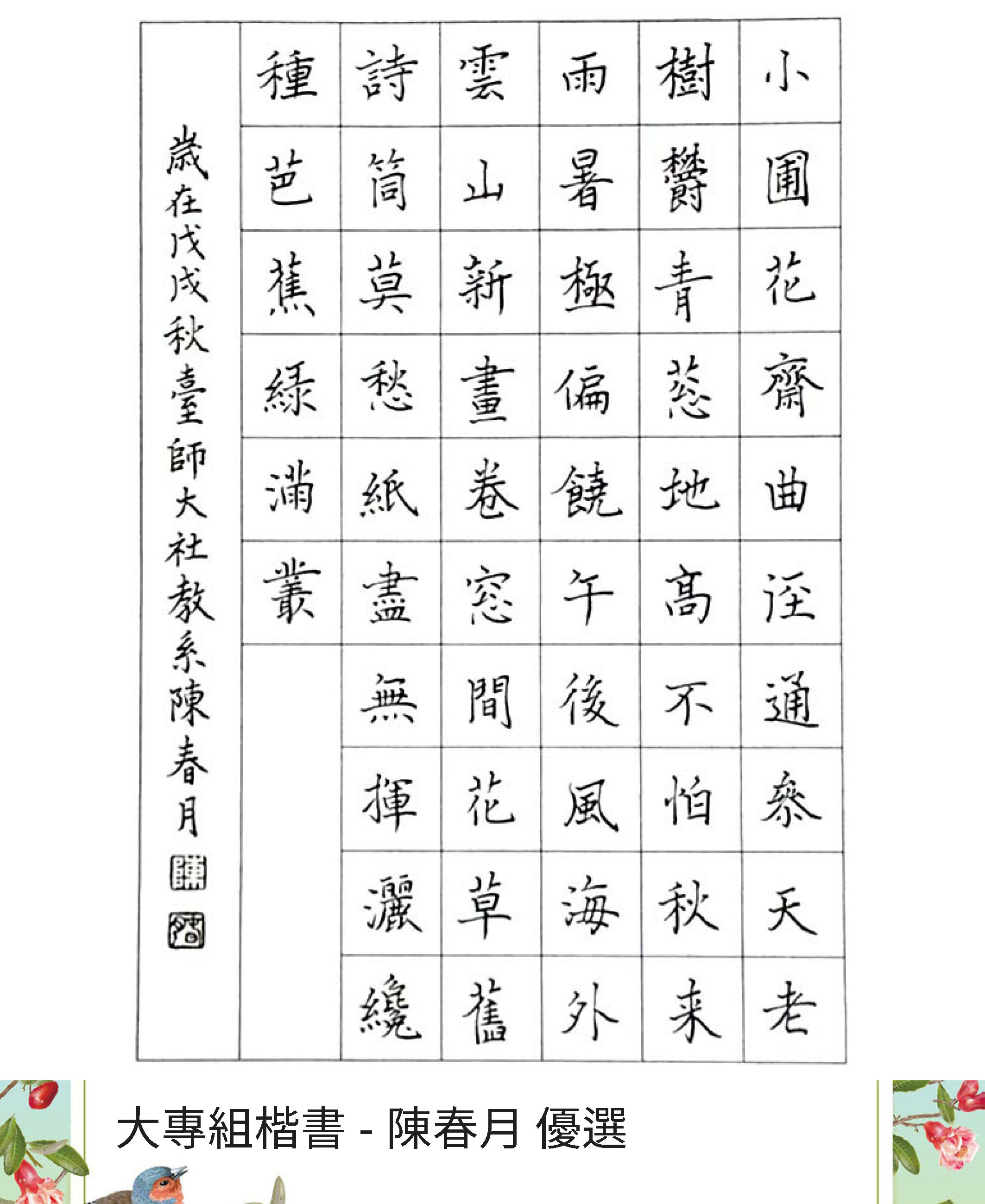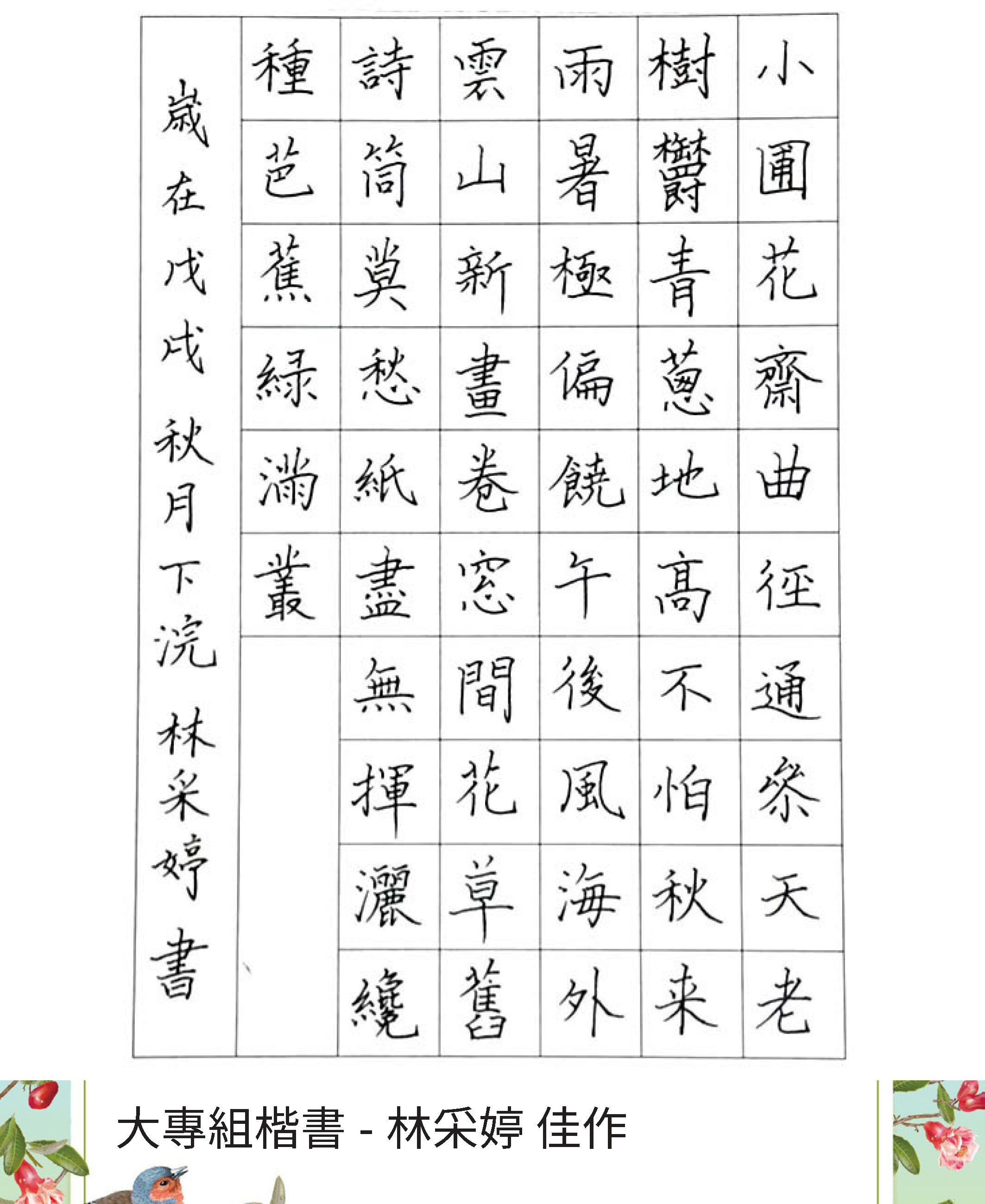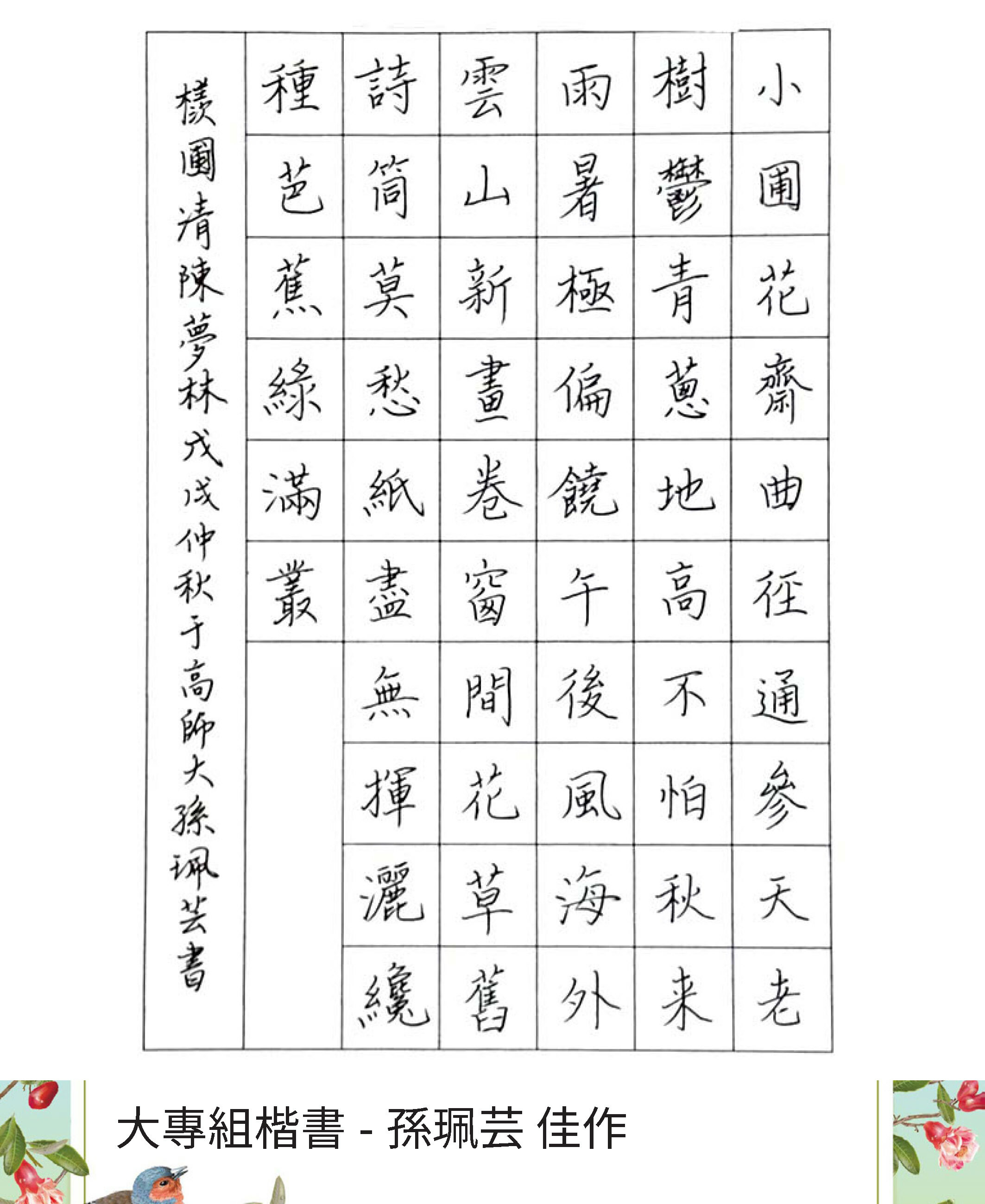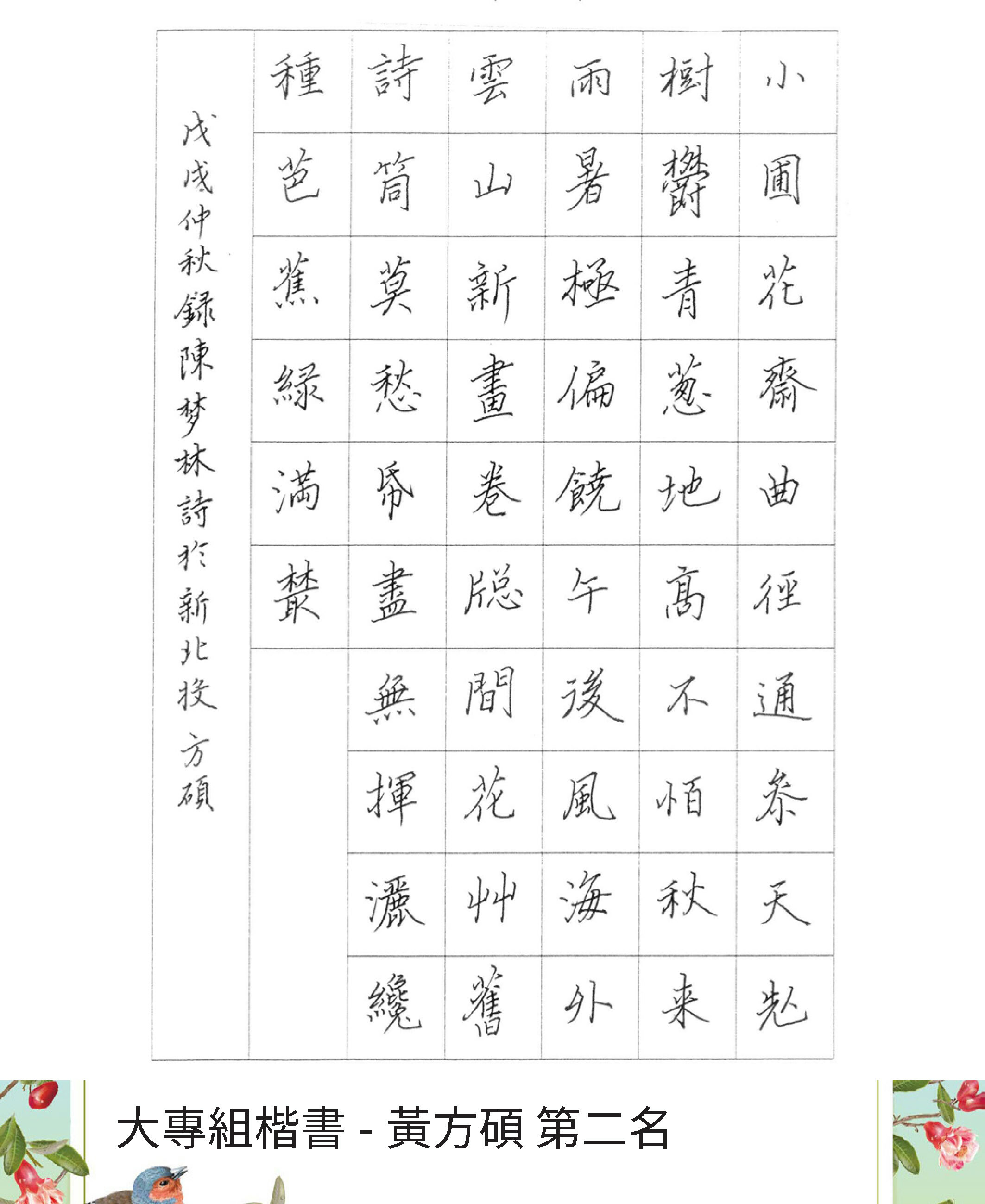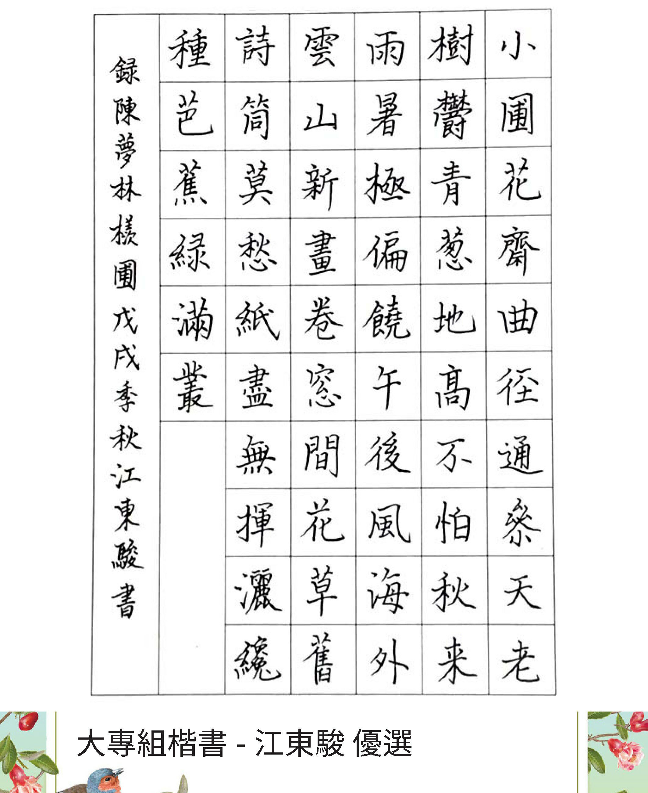 大專組楷書