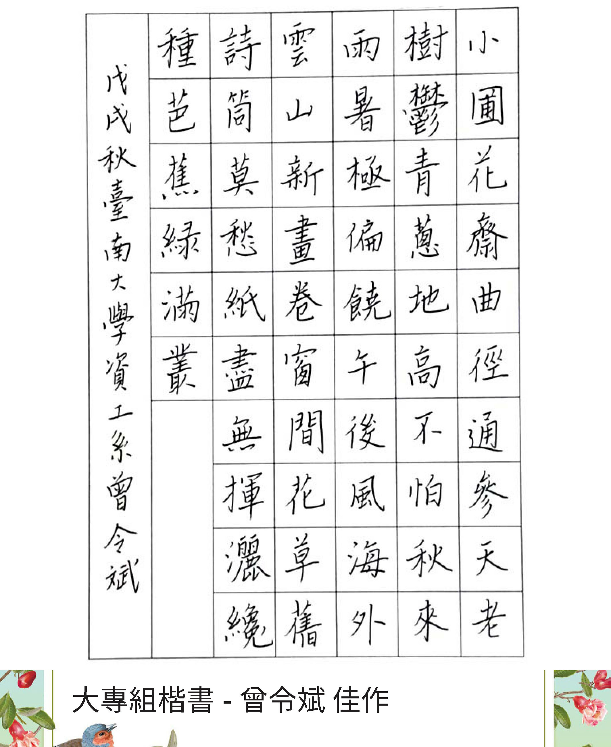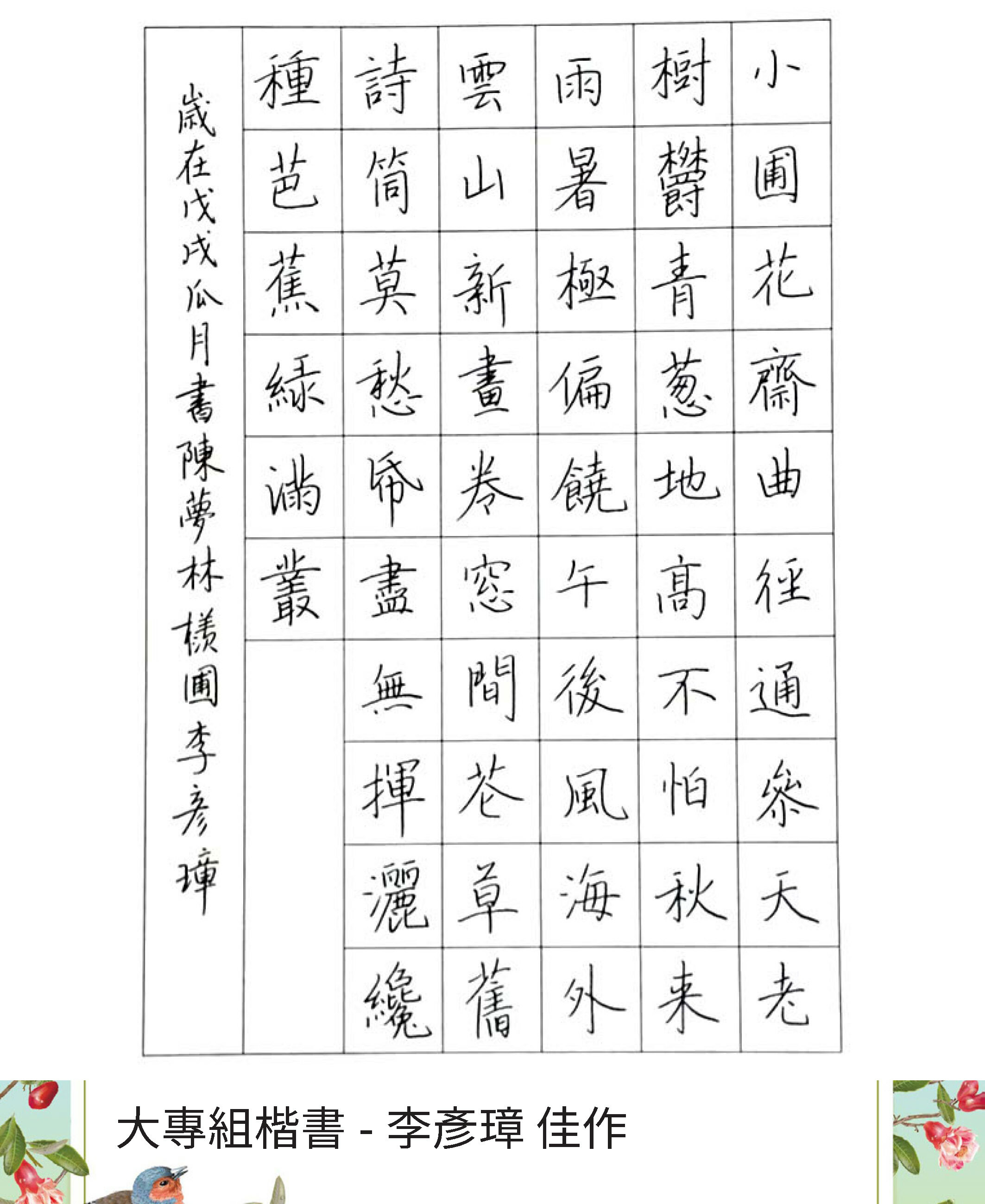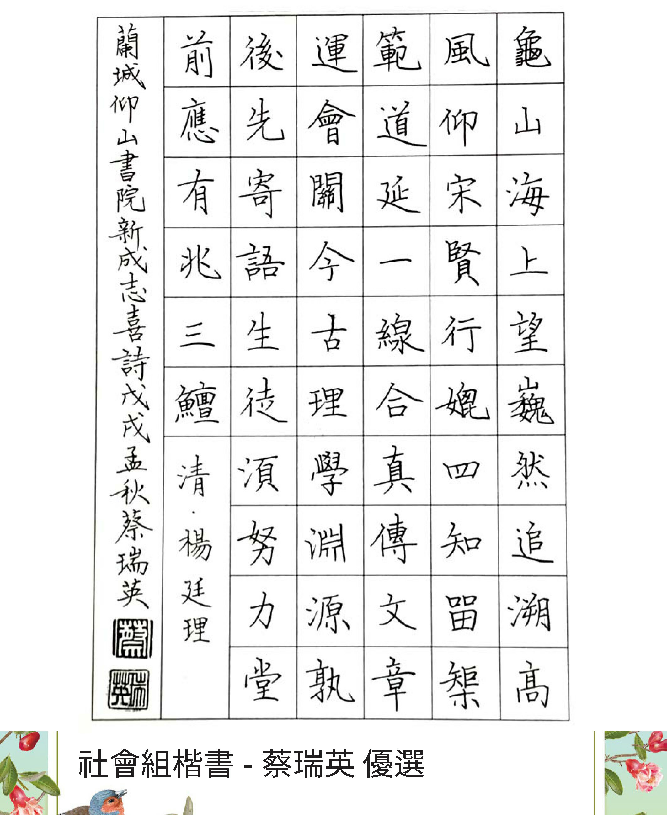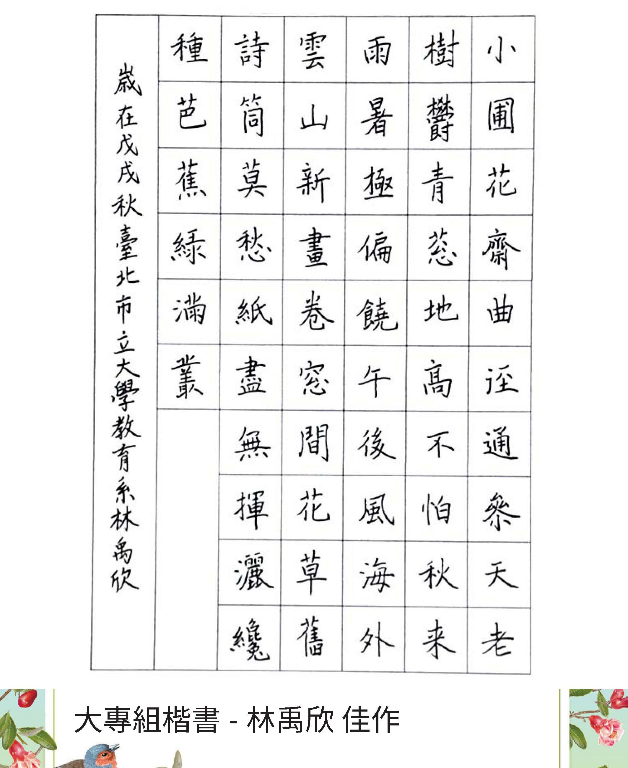 大專組楷書