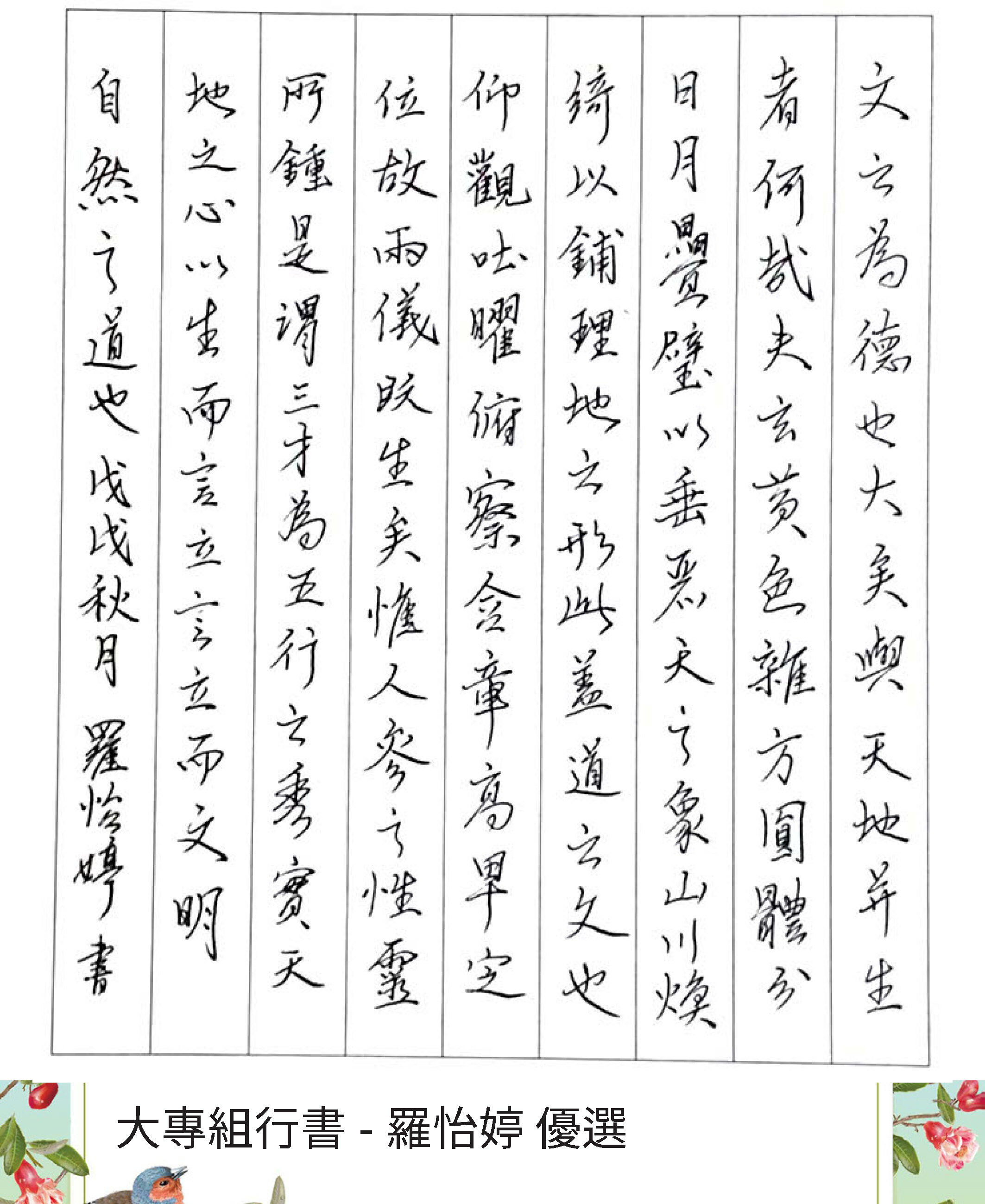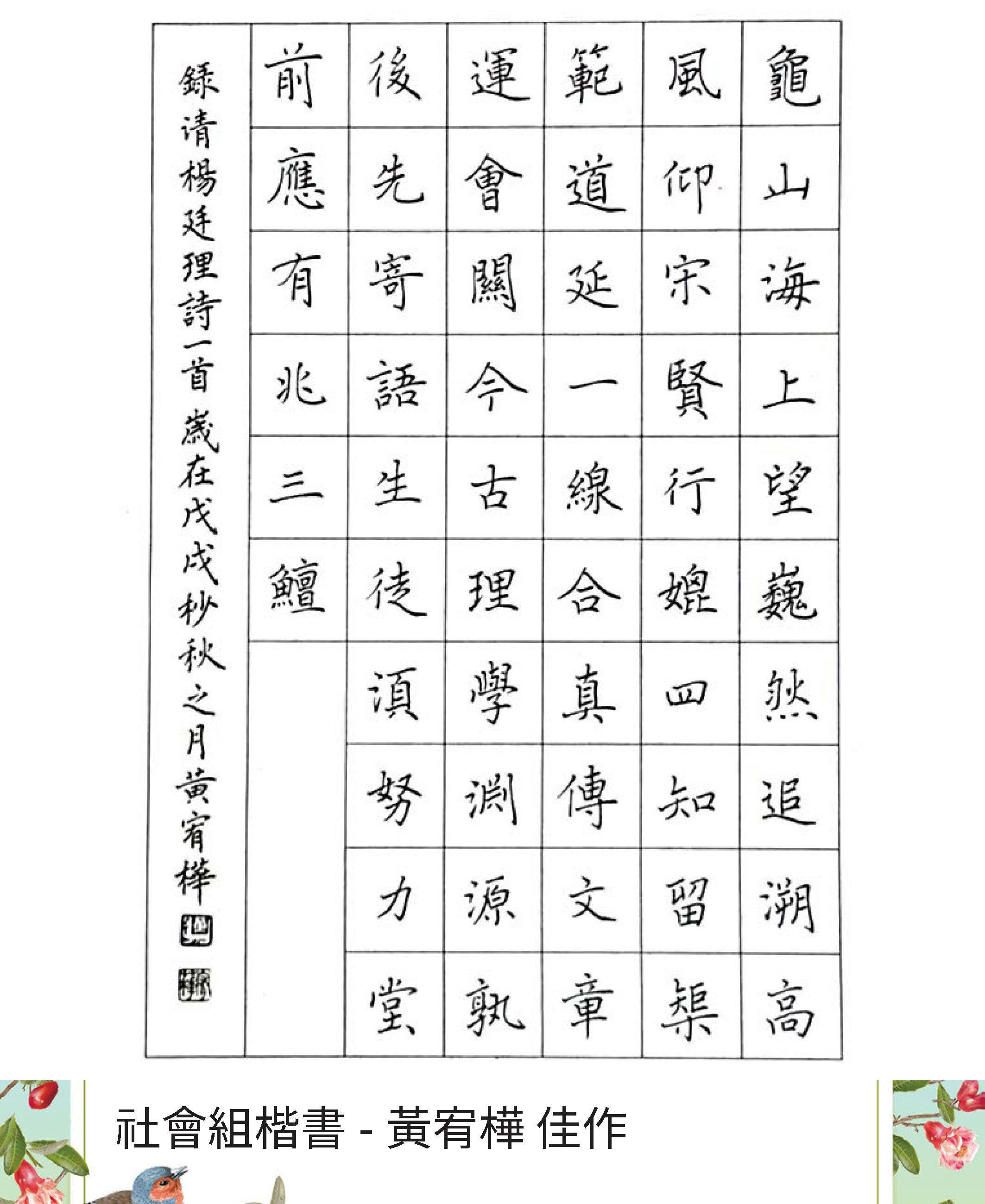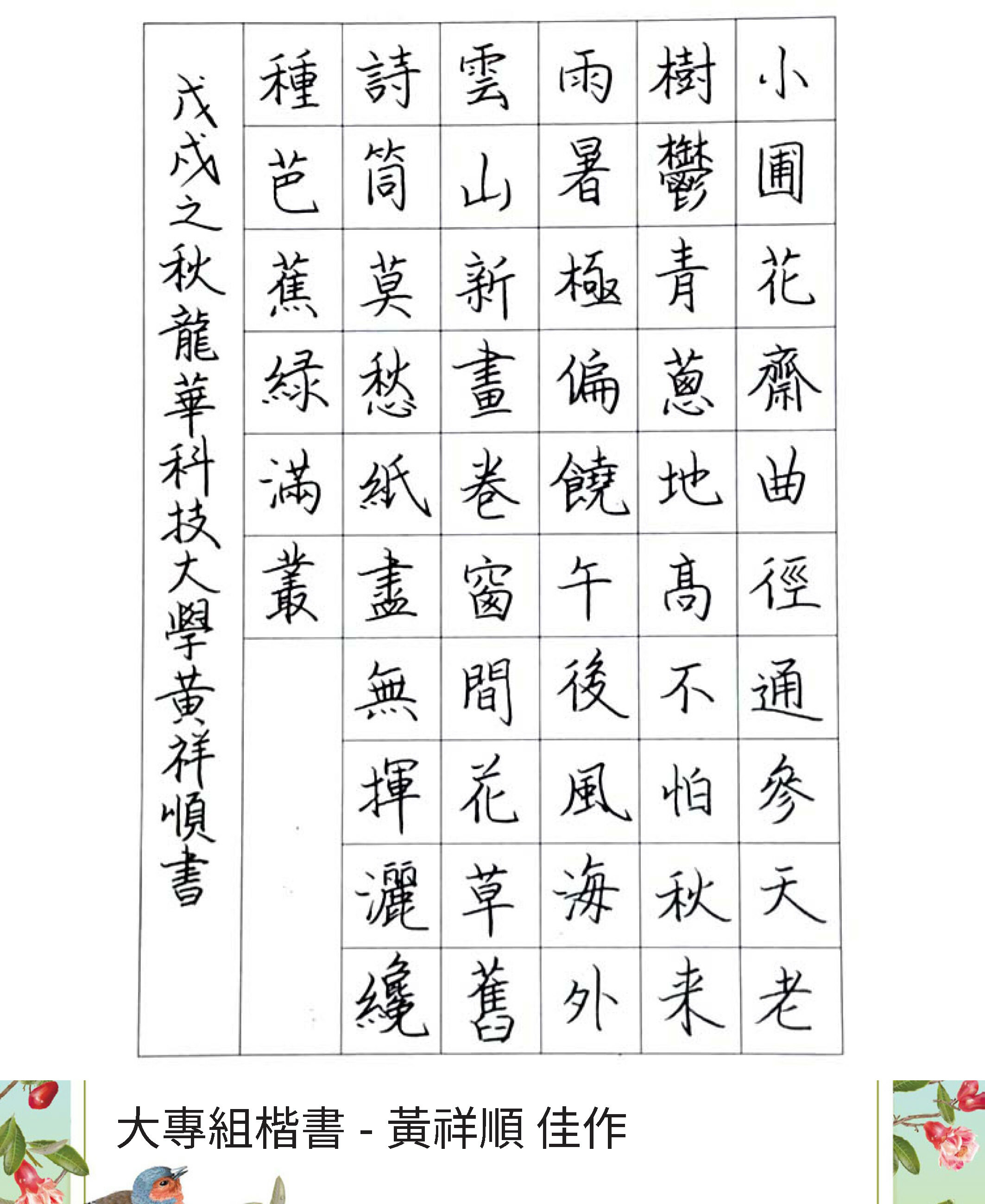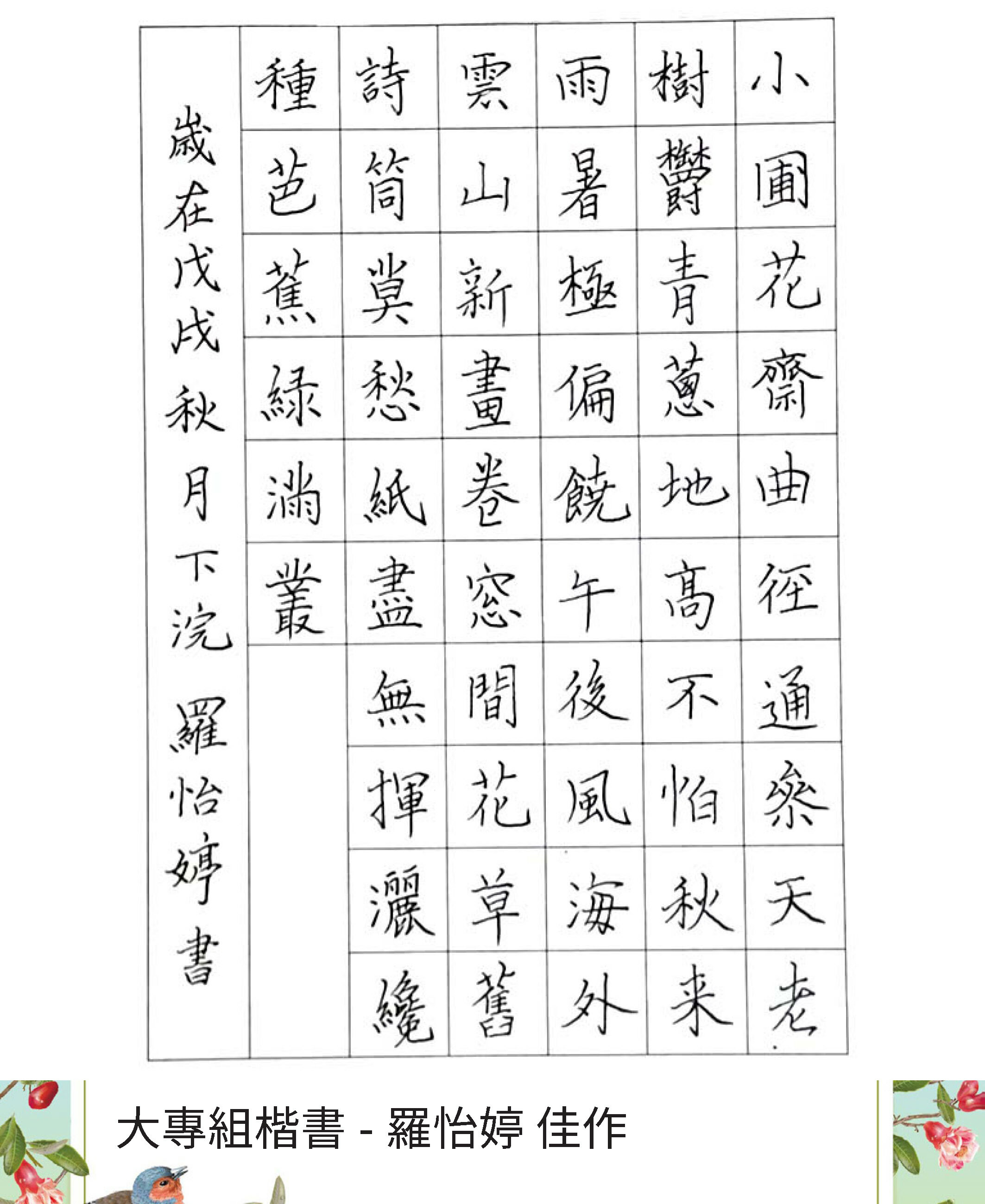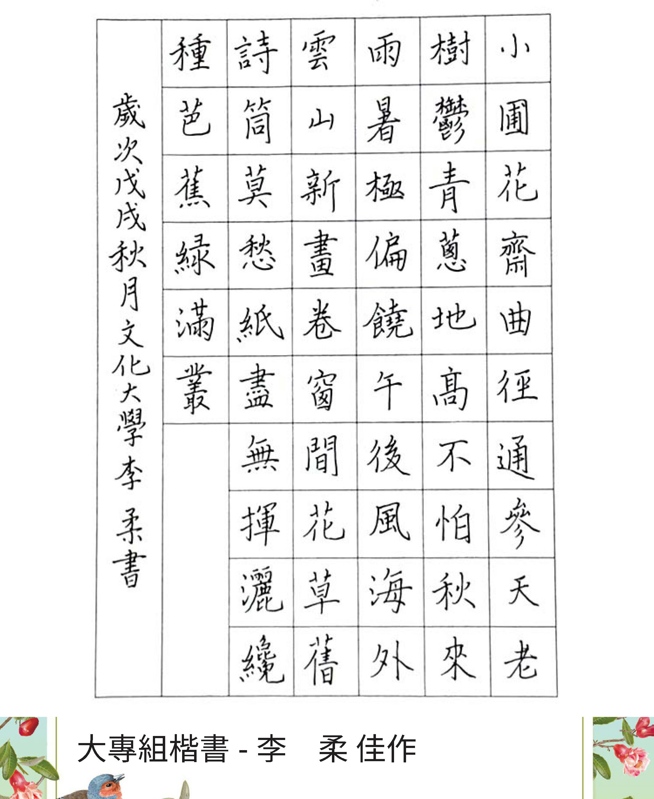 大專組楷書