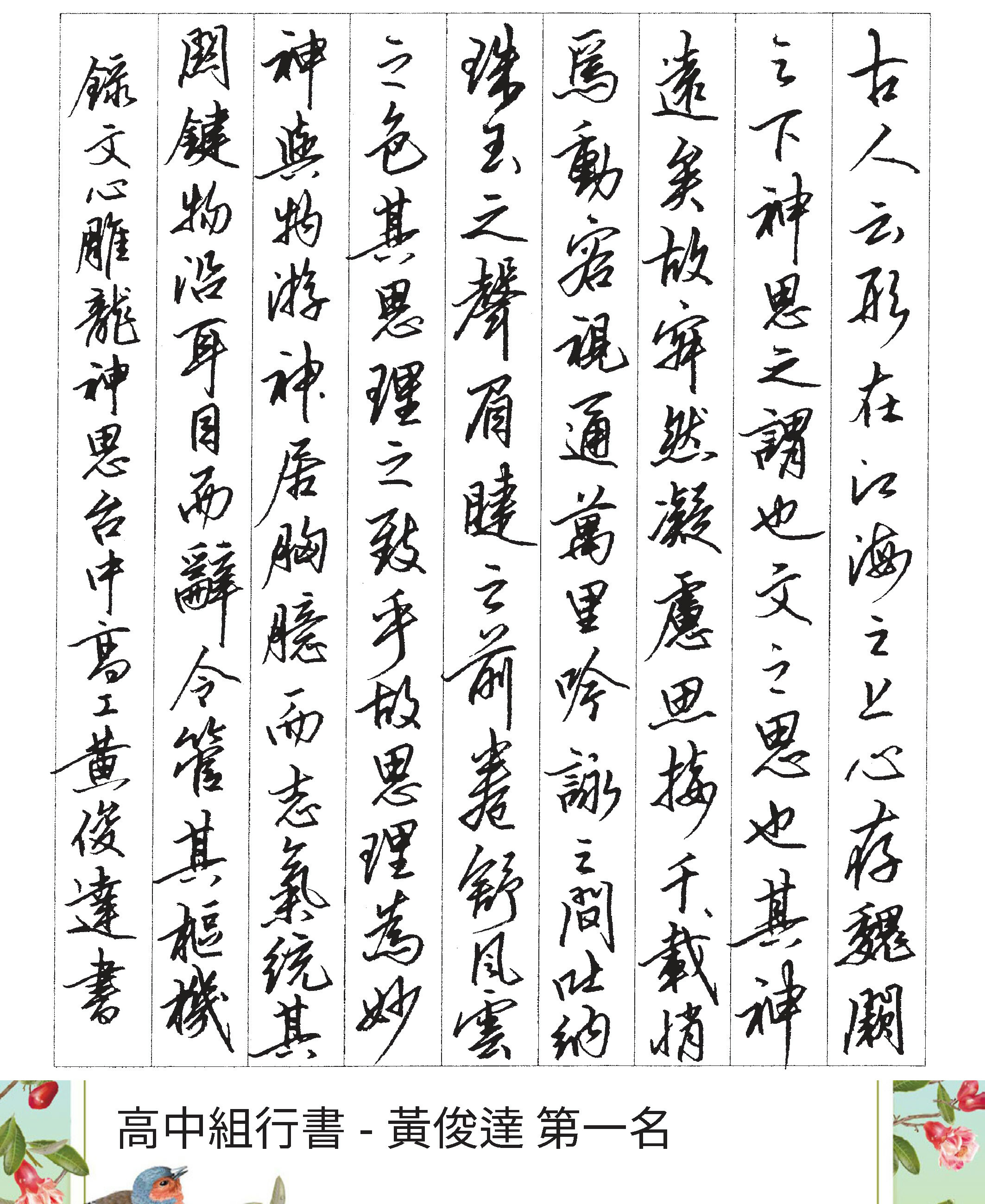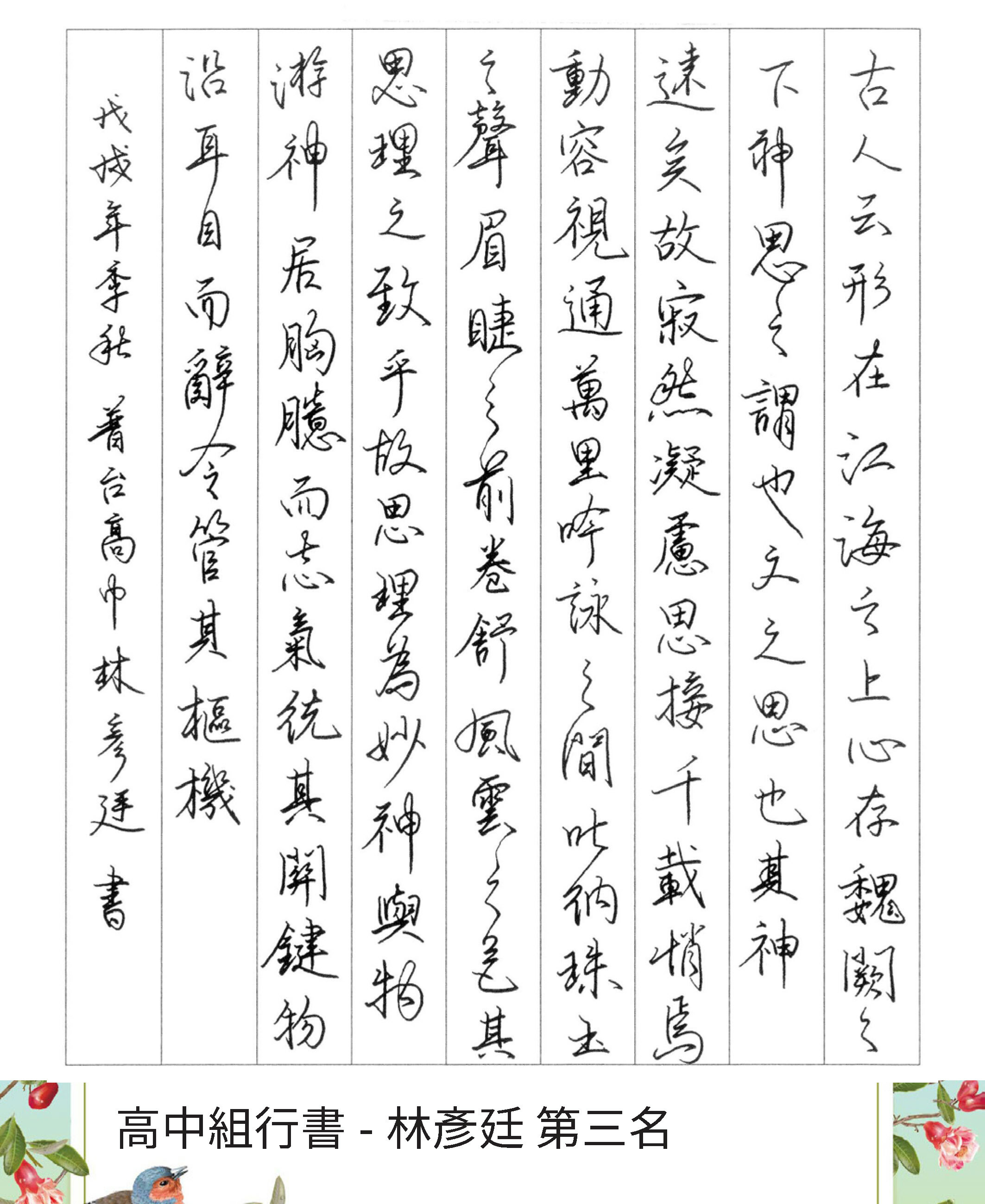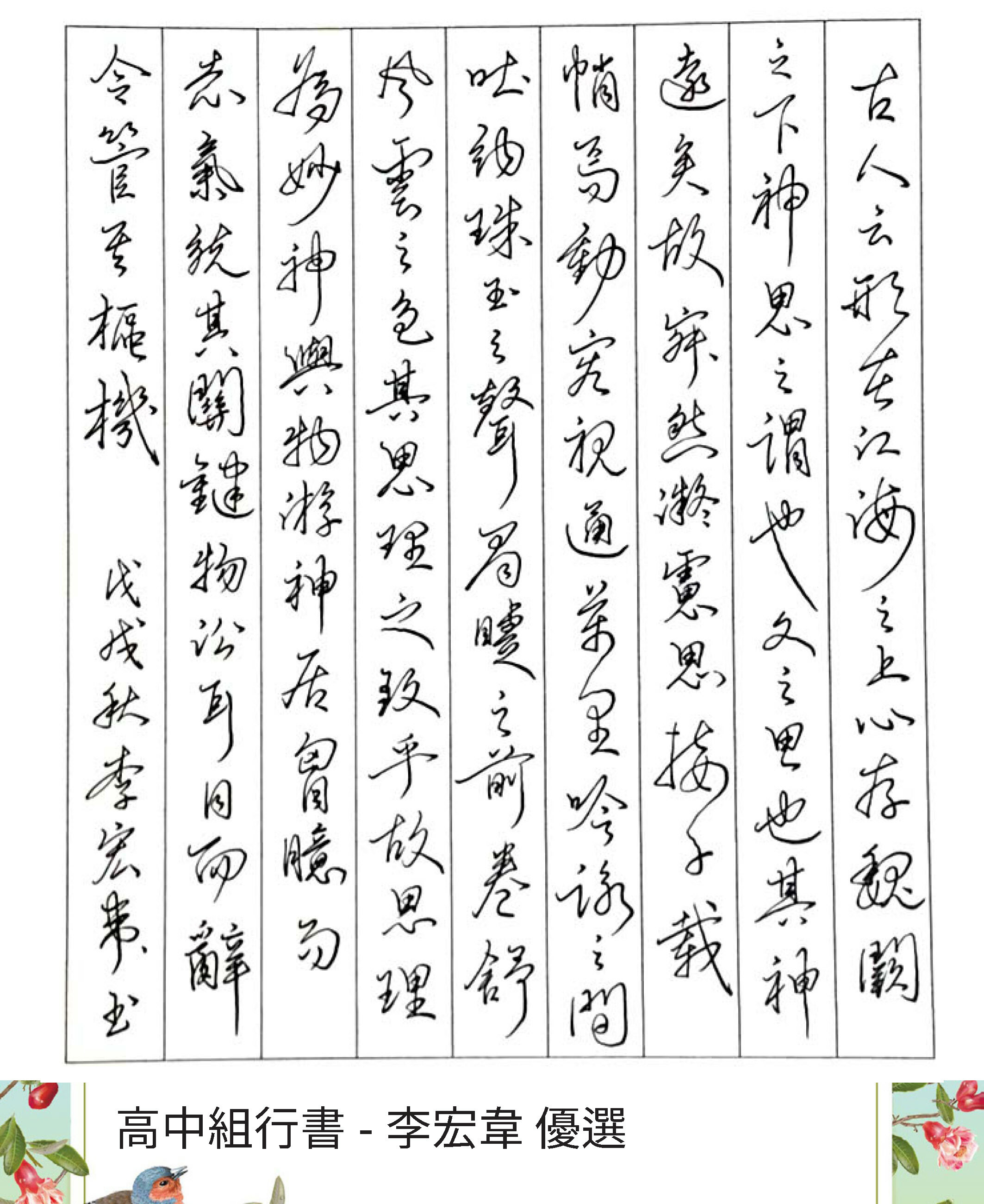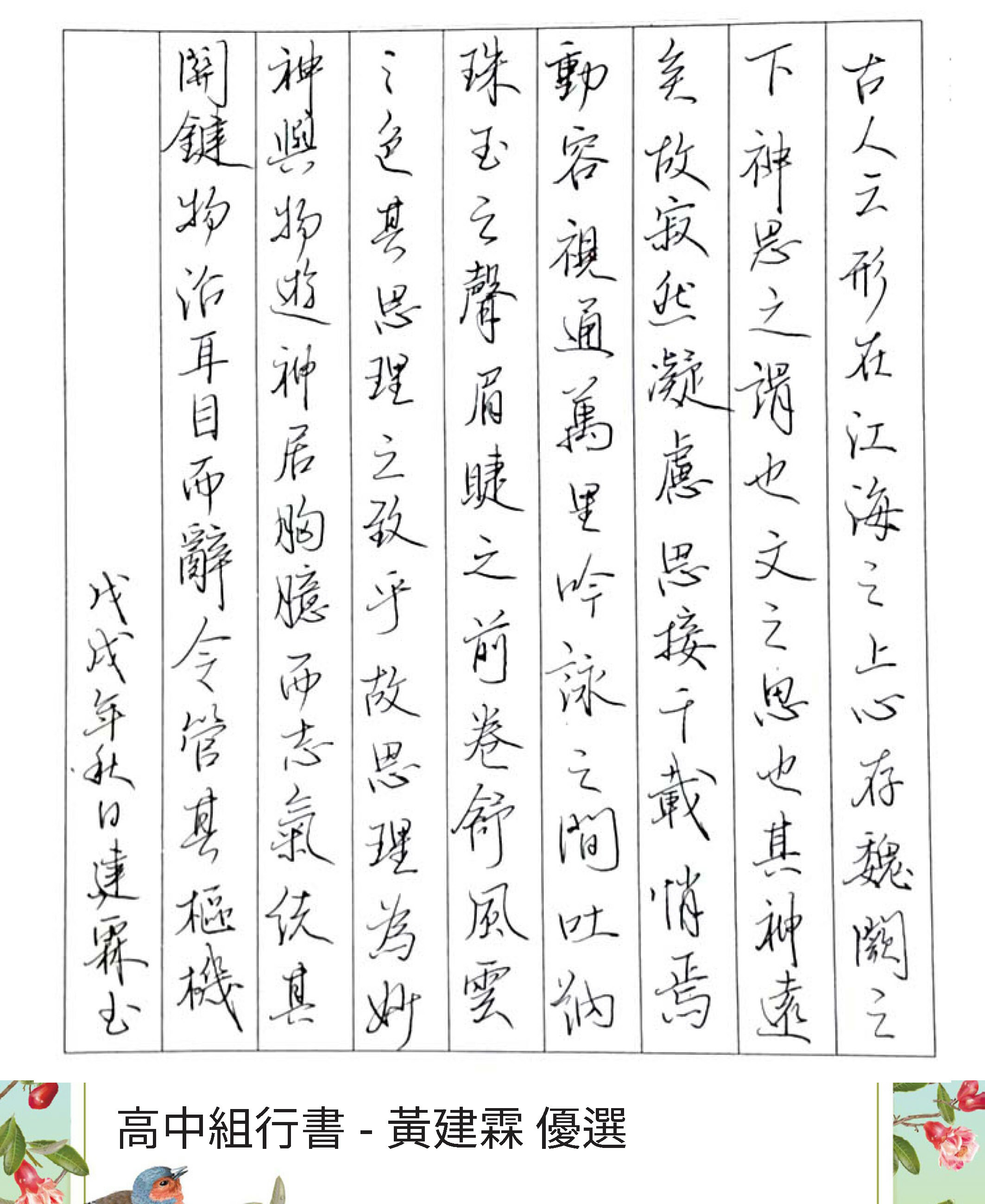 高中組行書