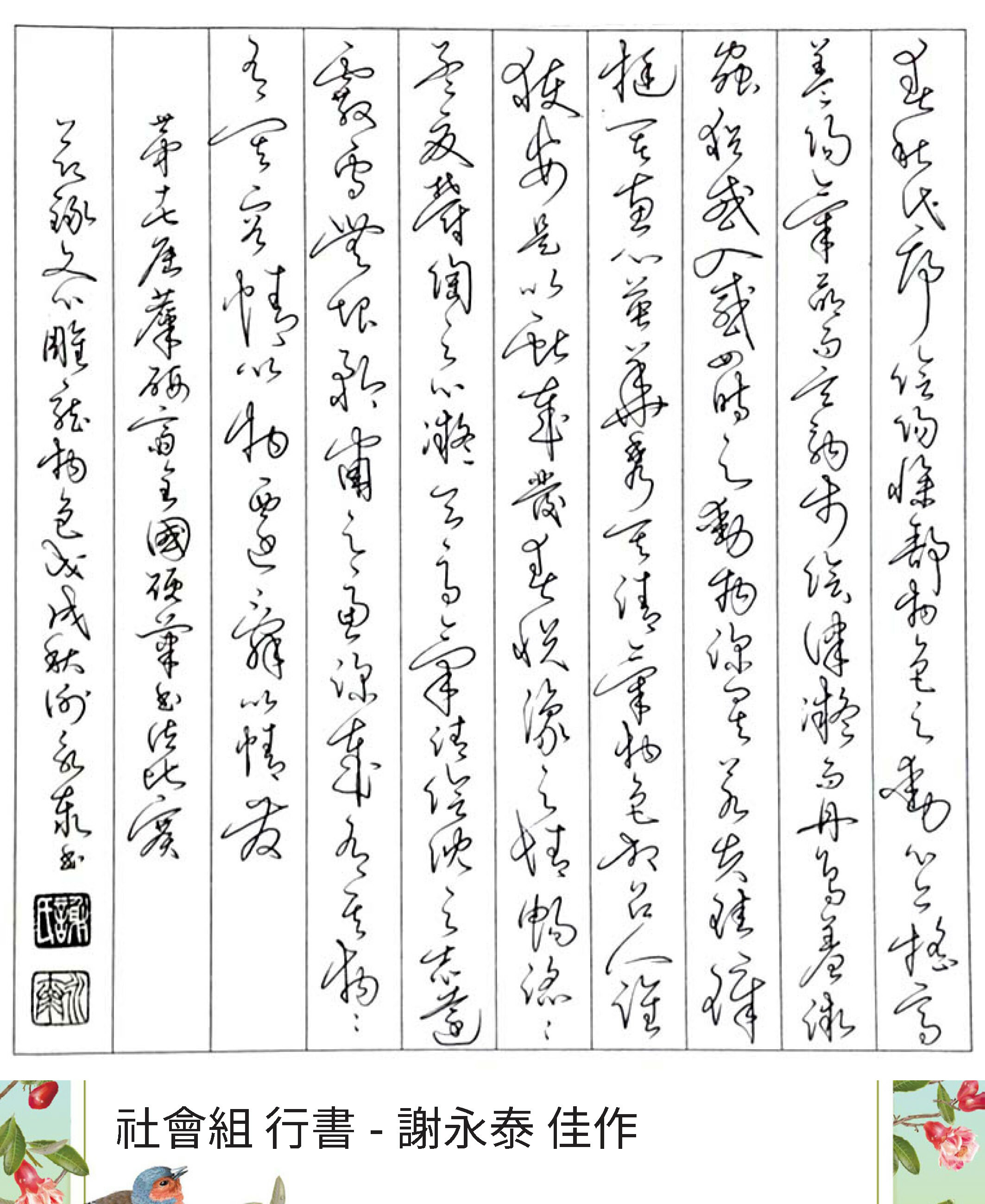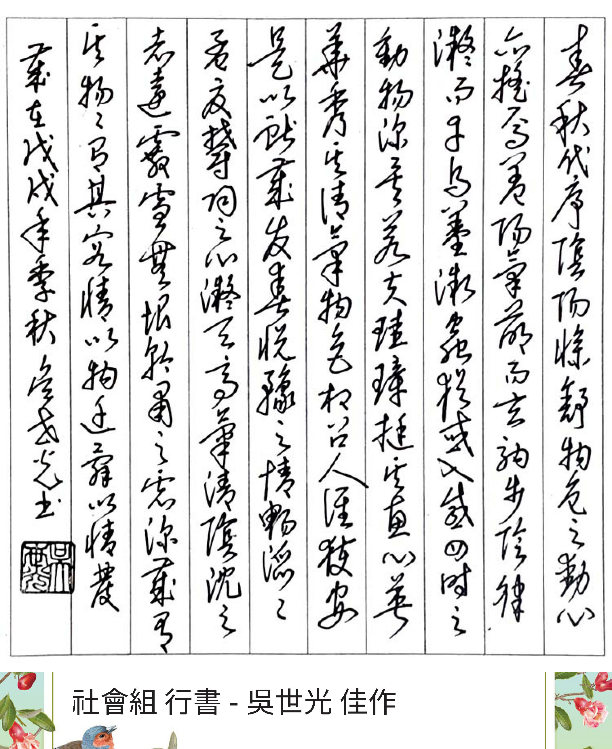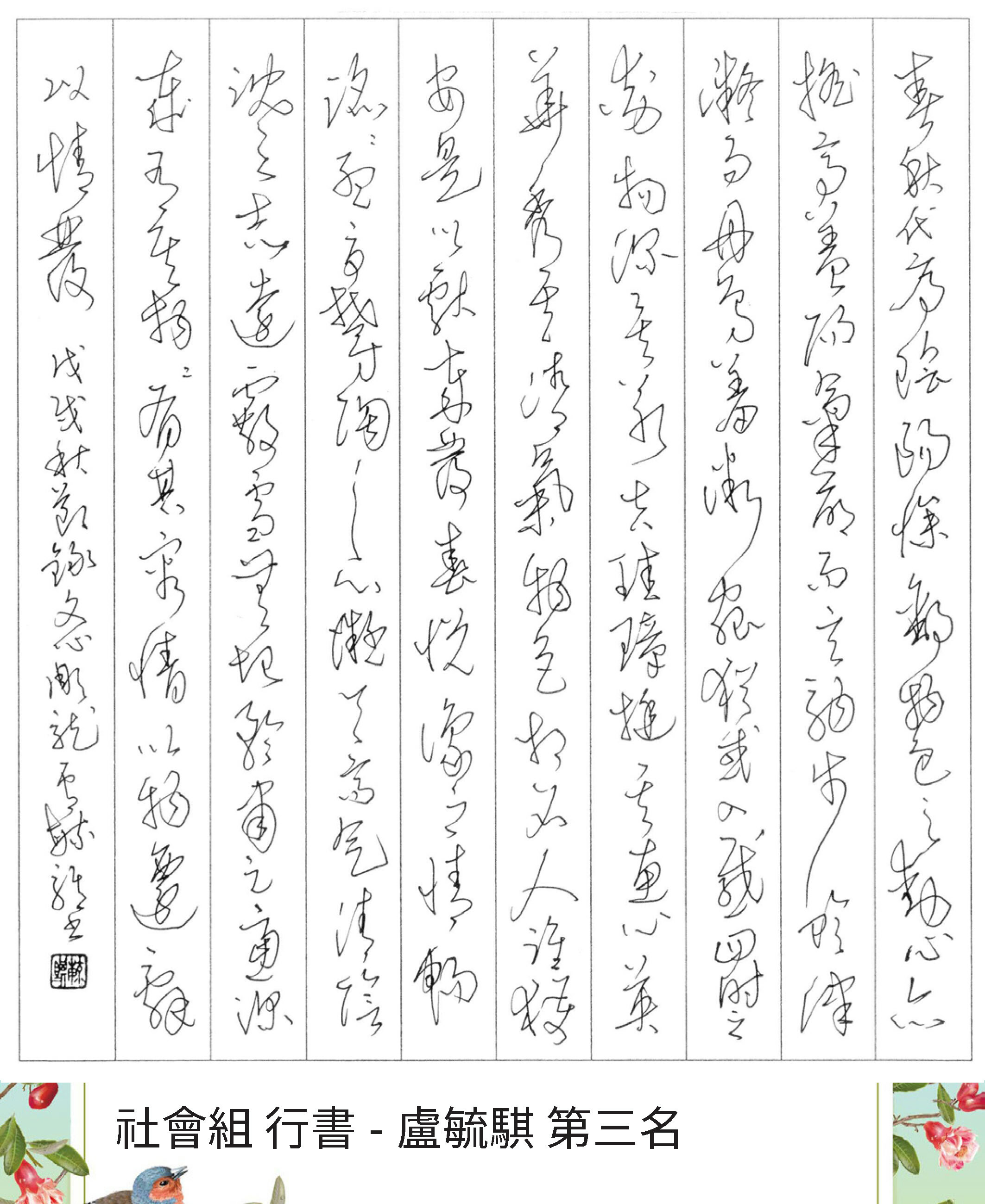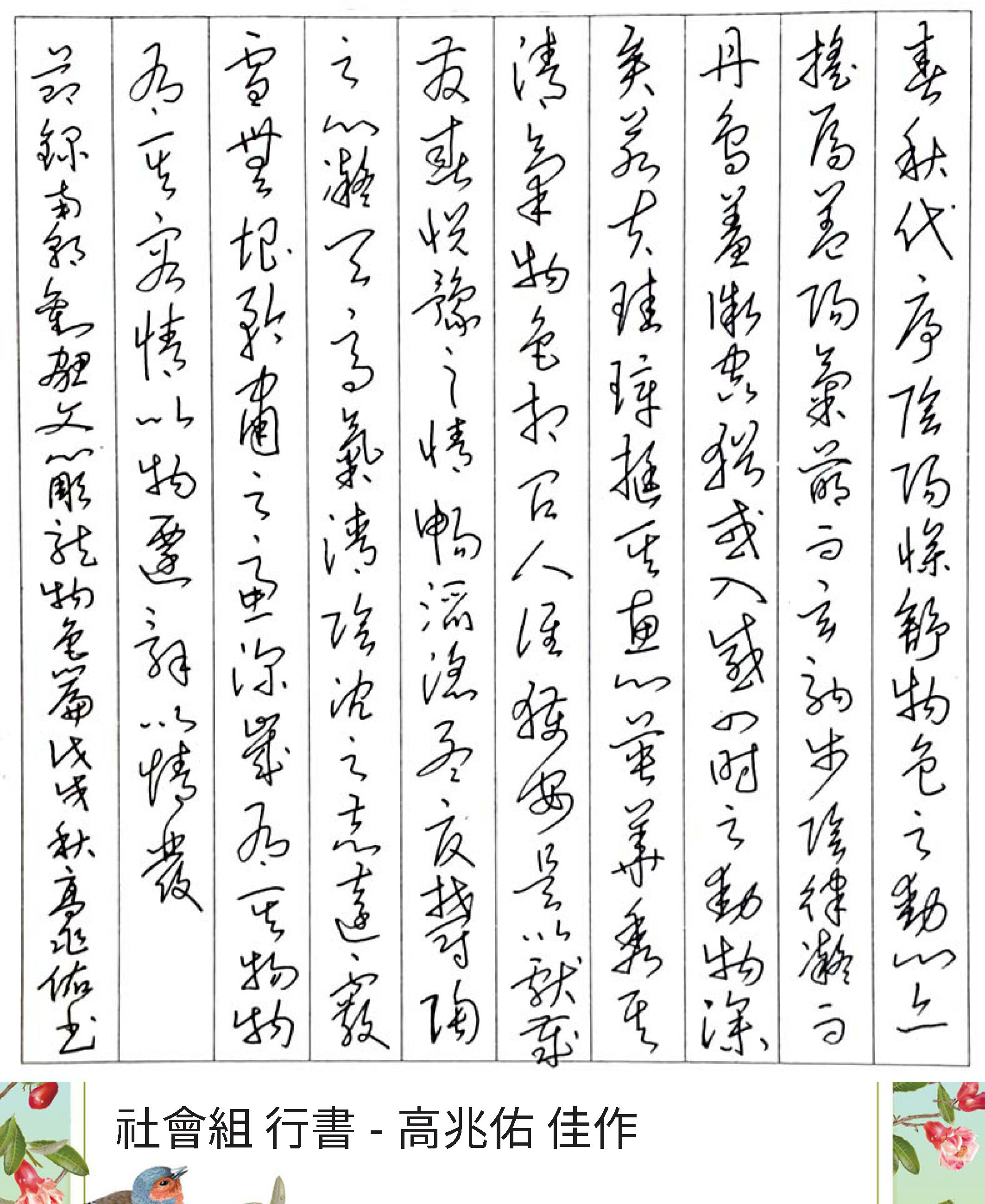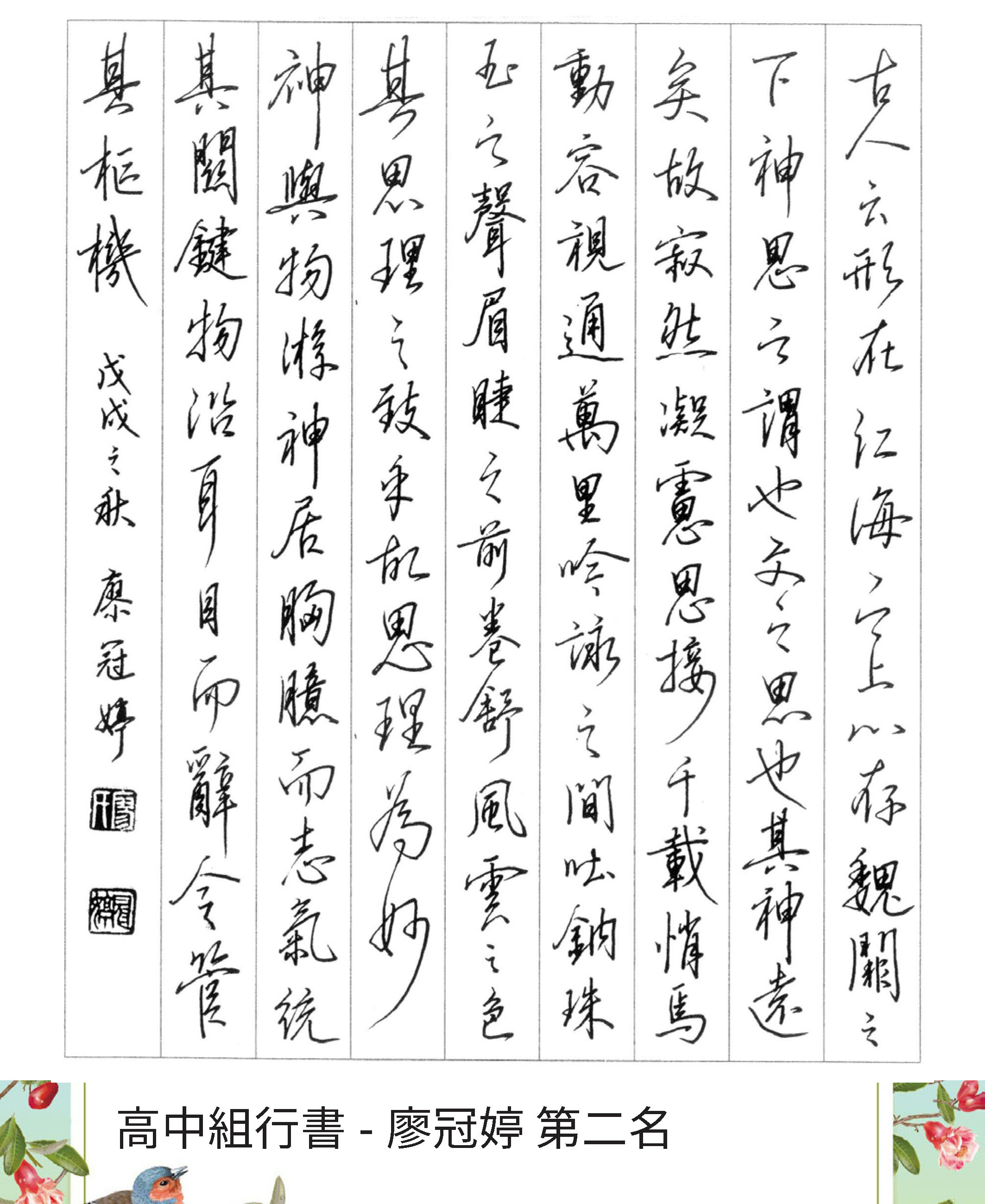 高中組行書