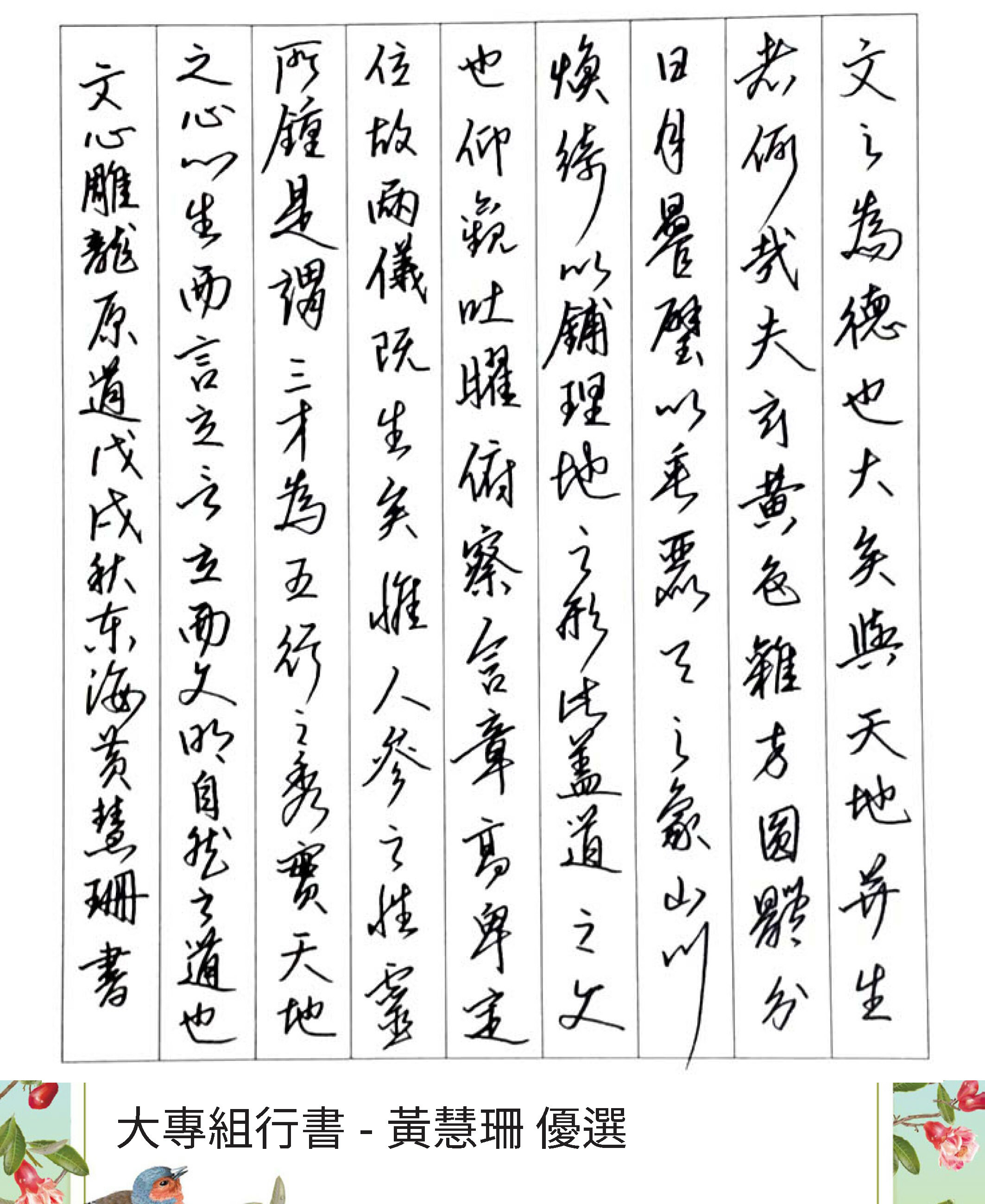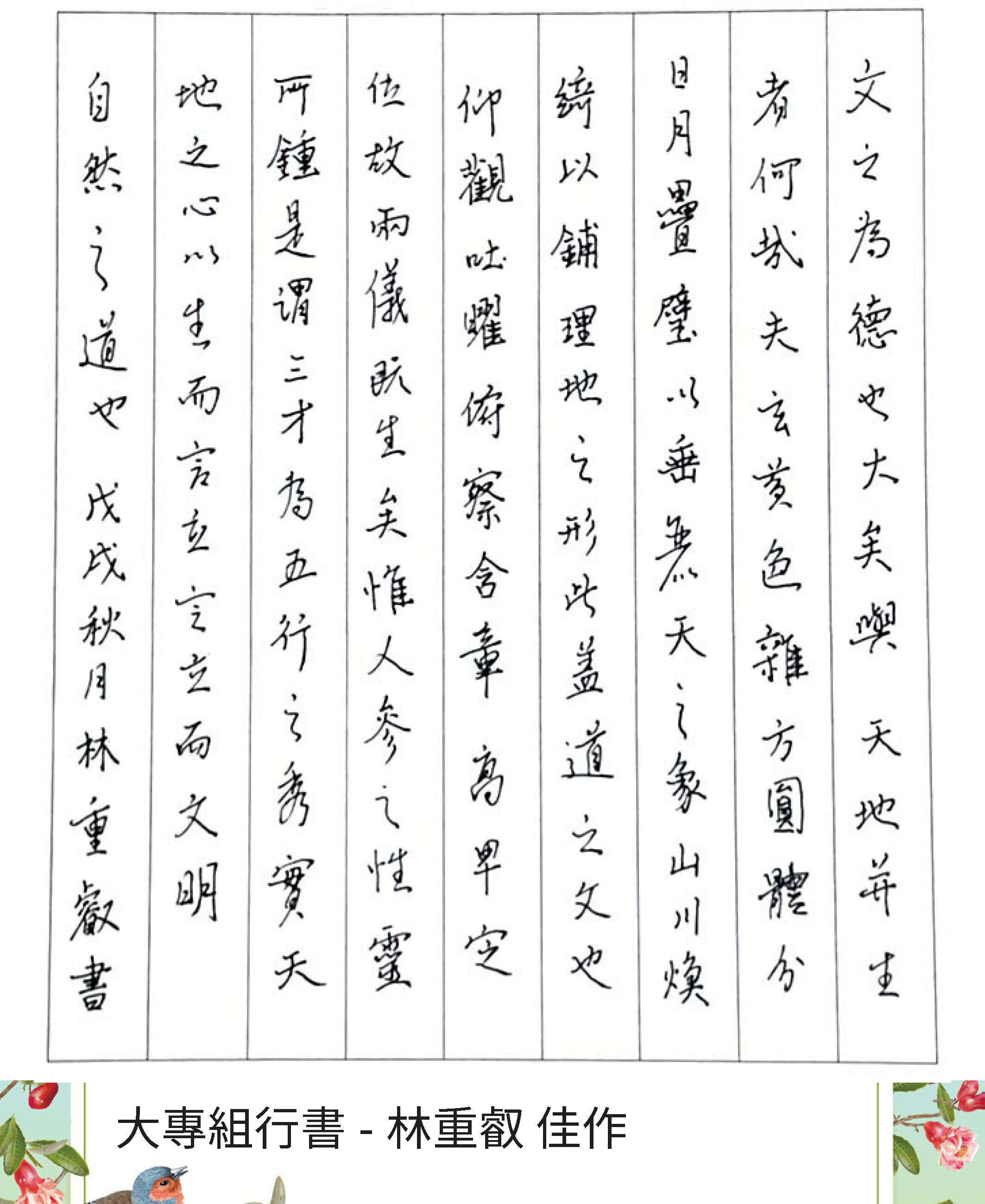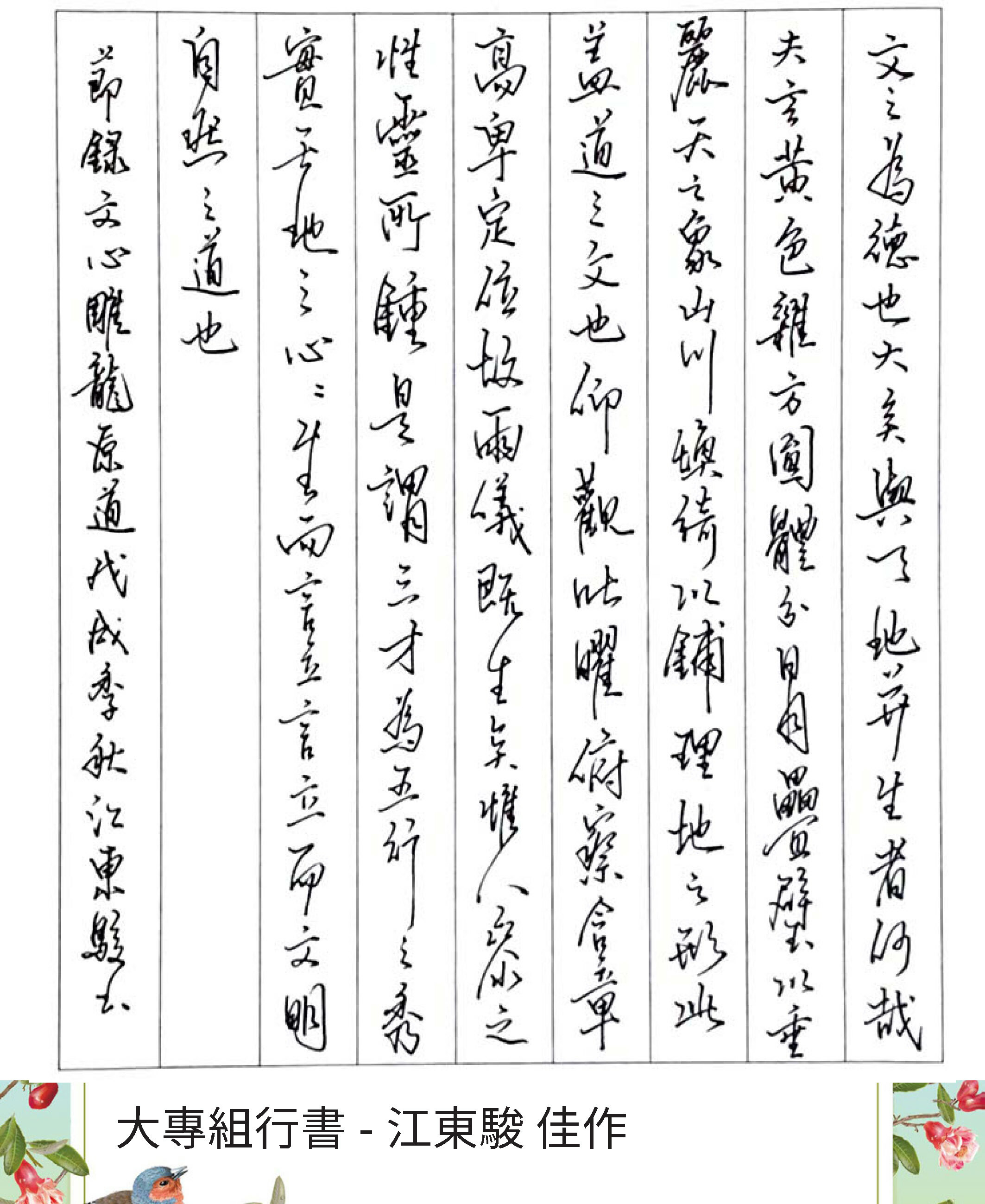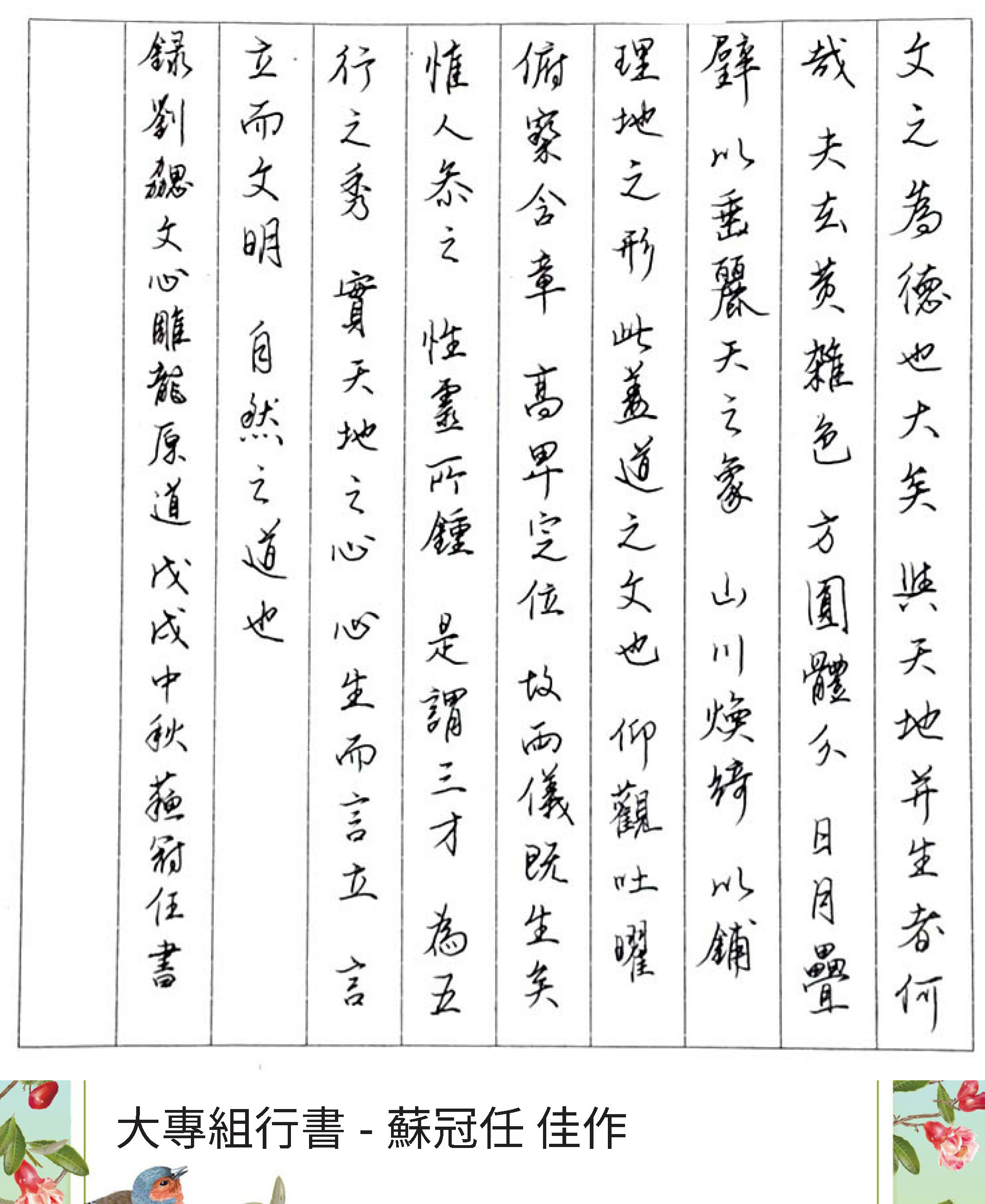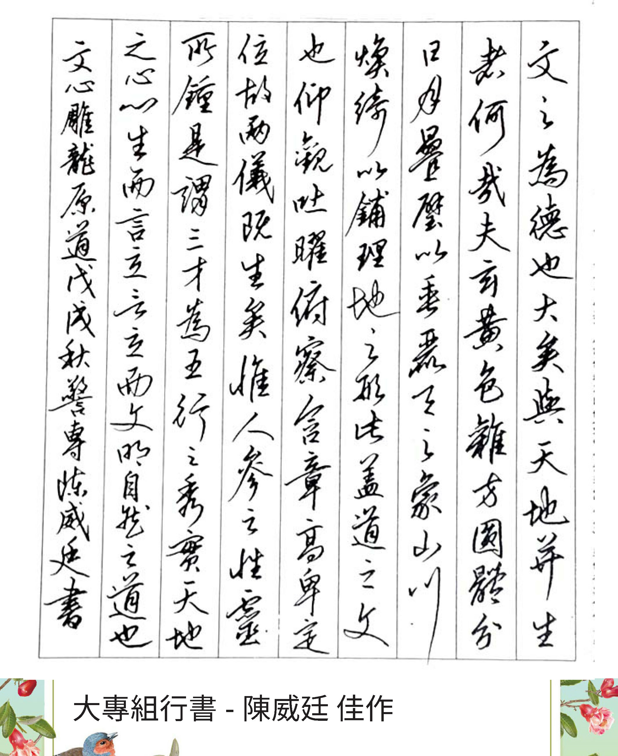大專組行書
