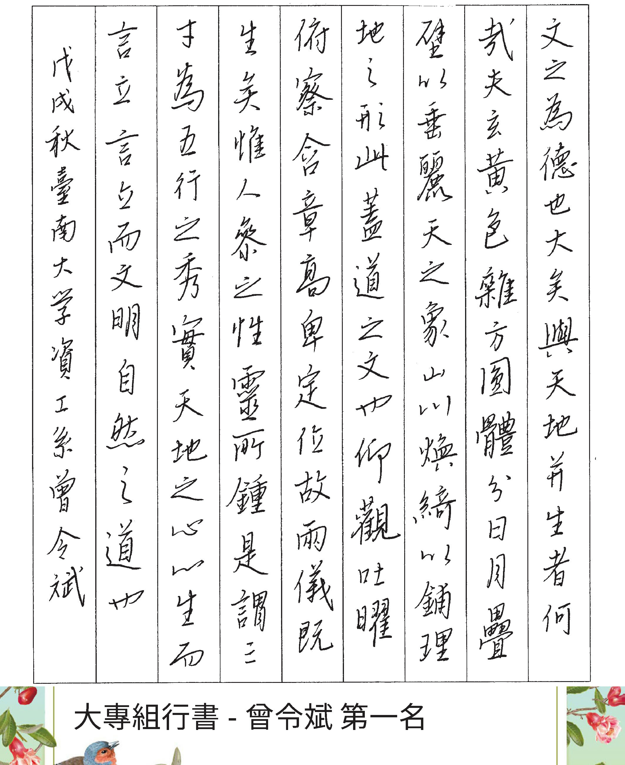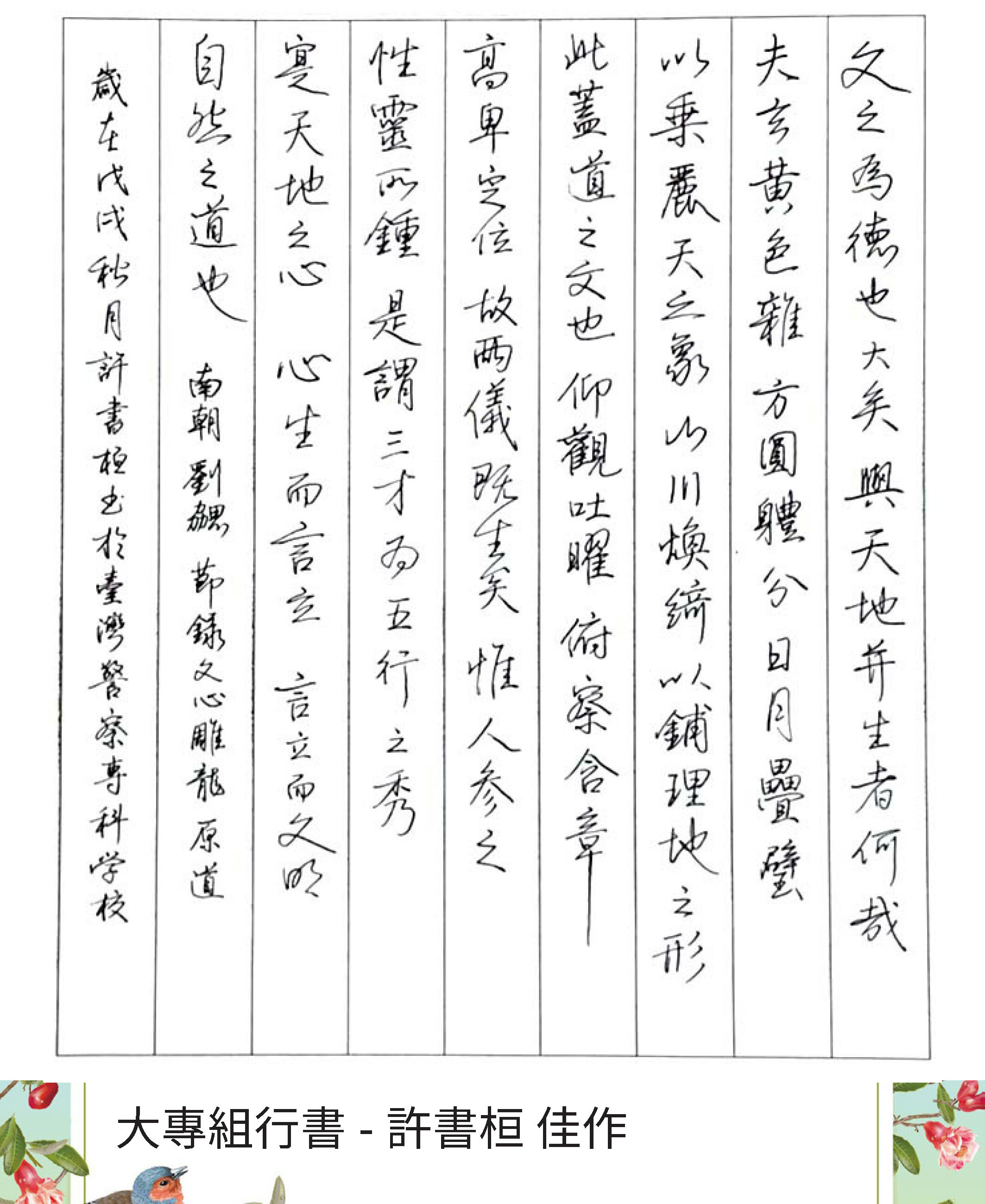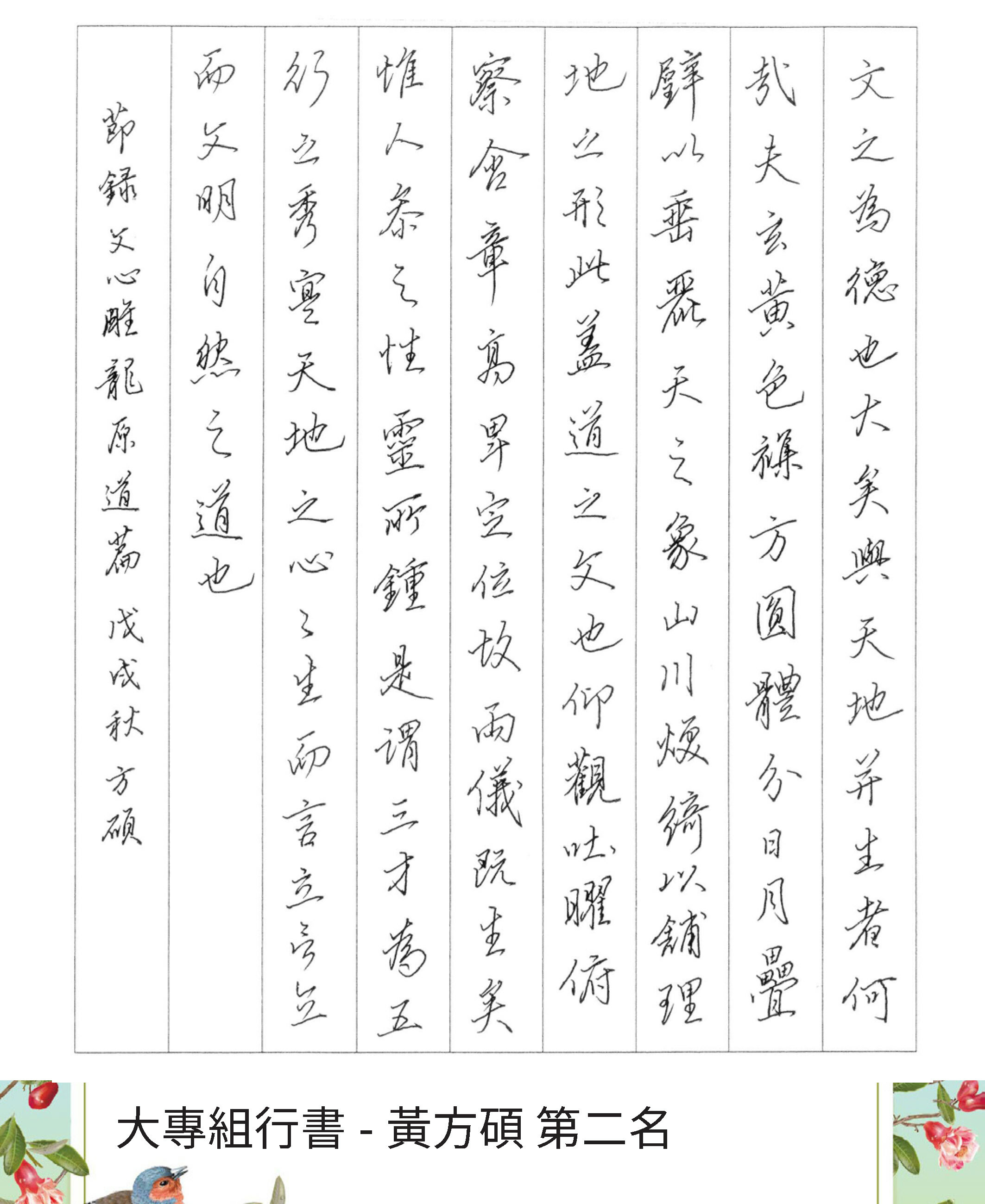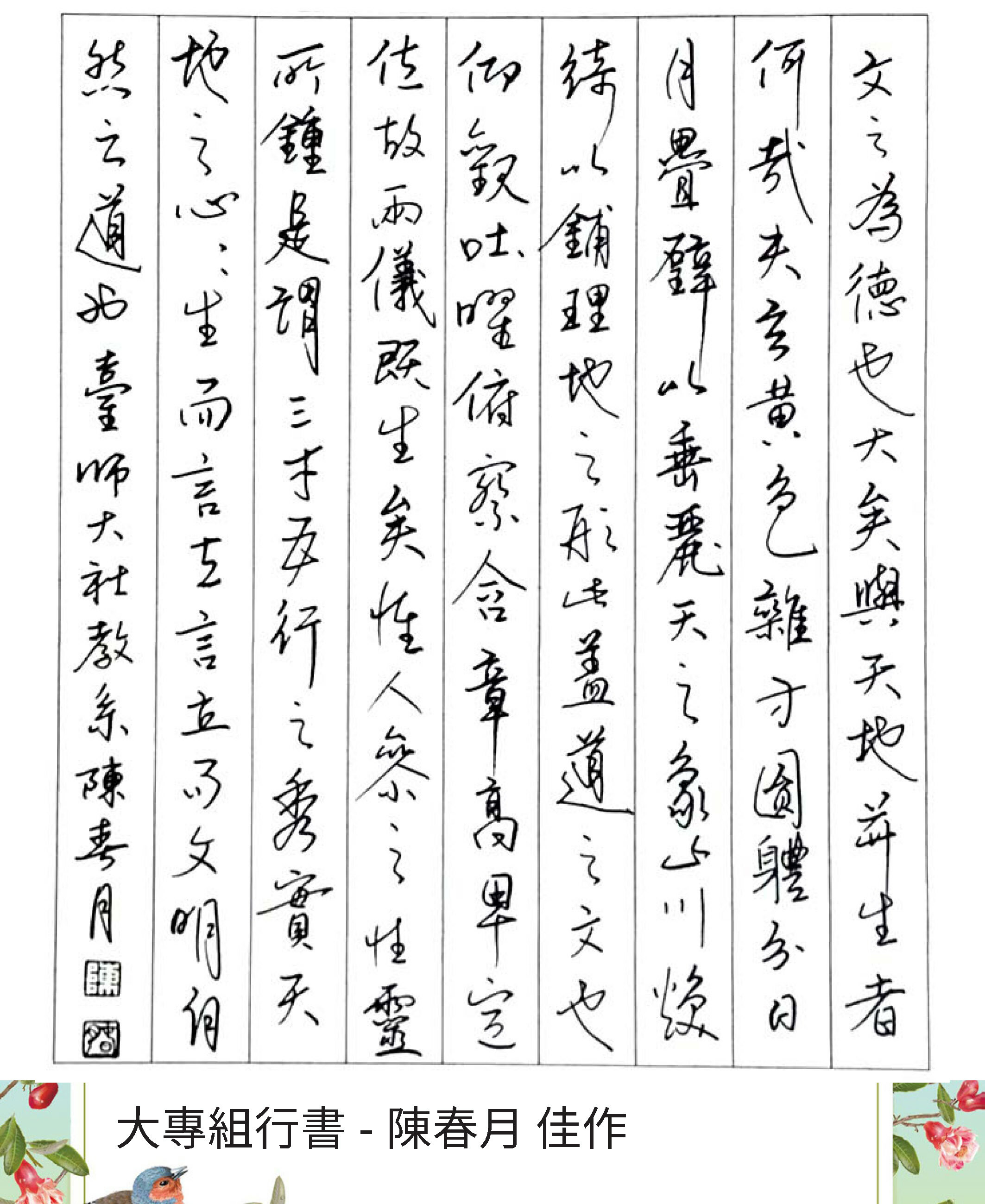 大專組行書