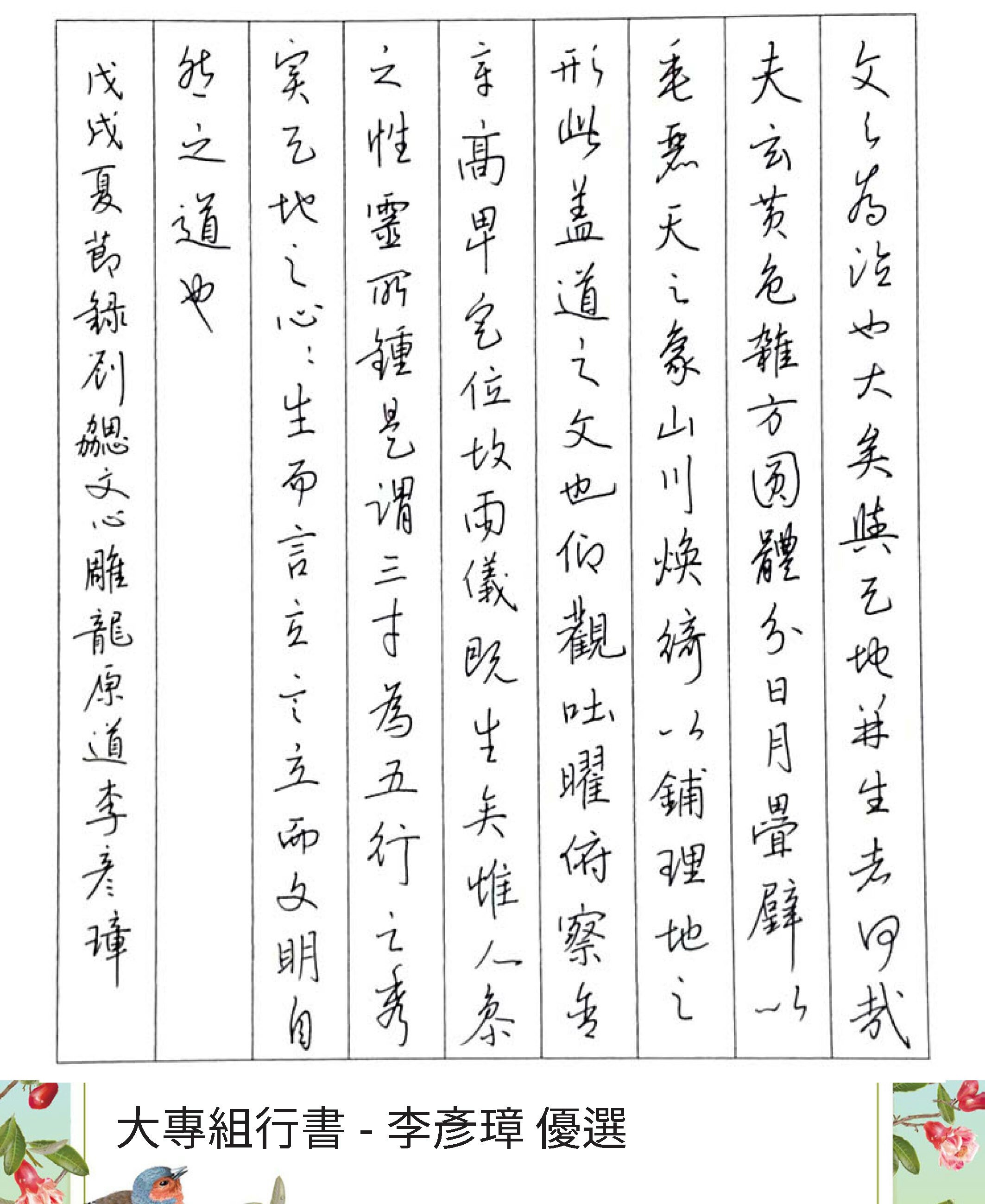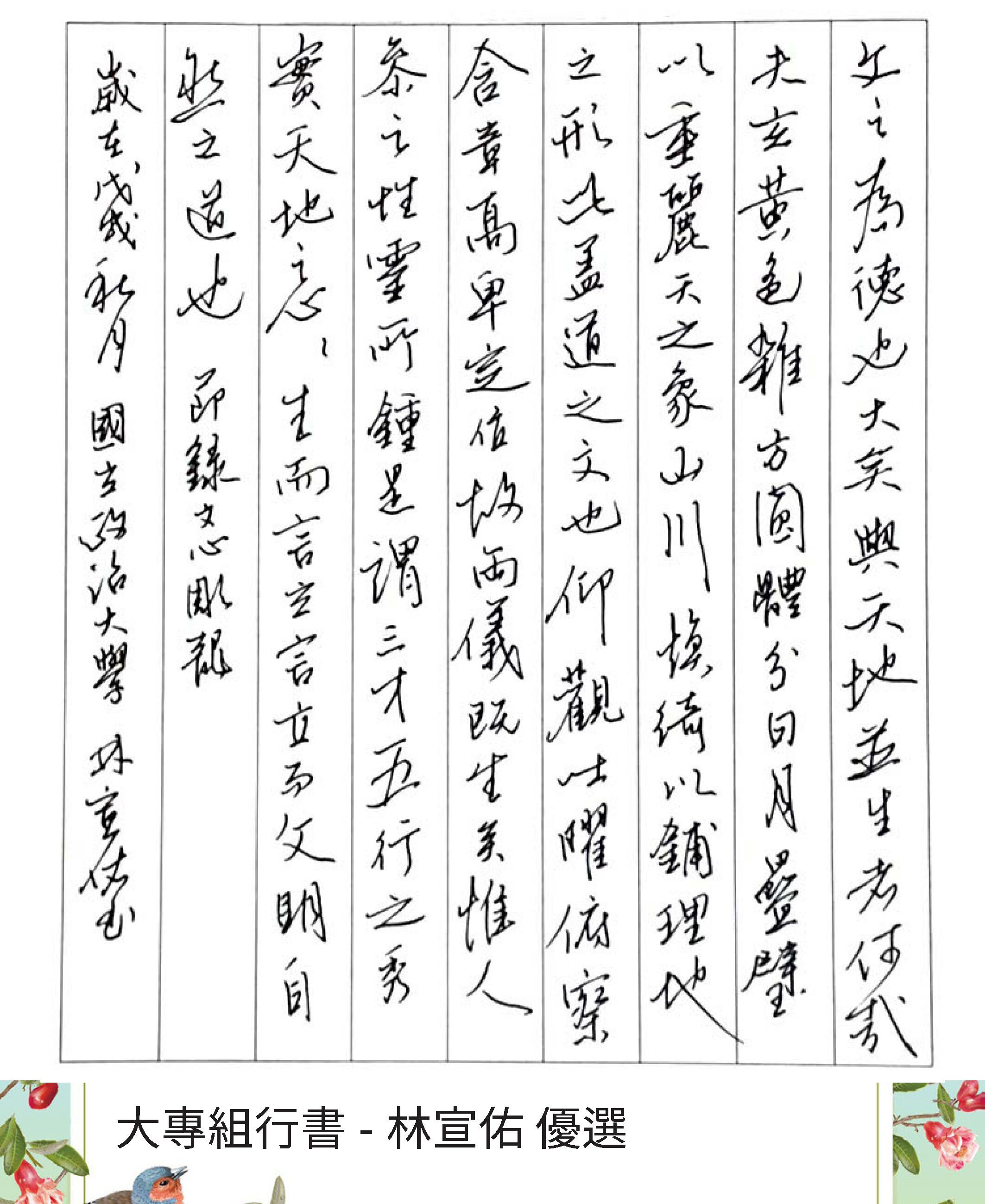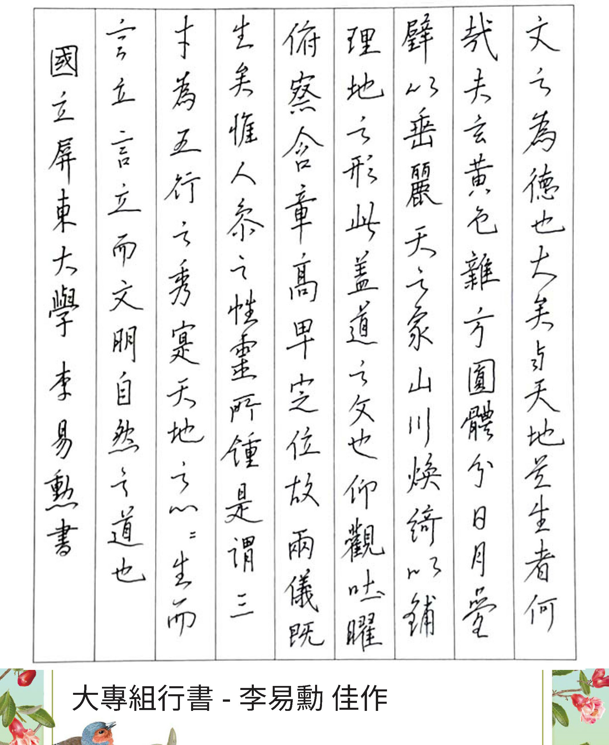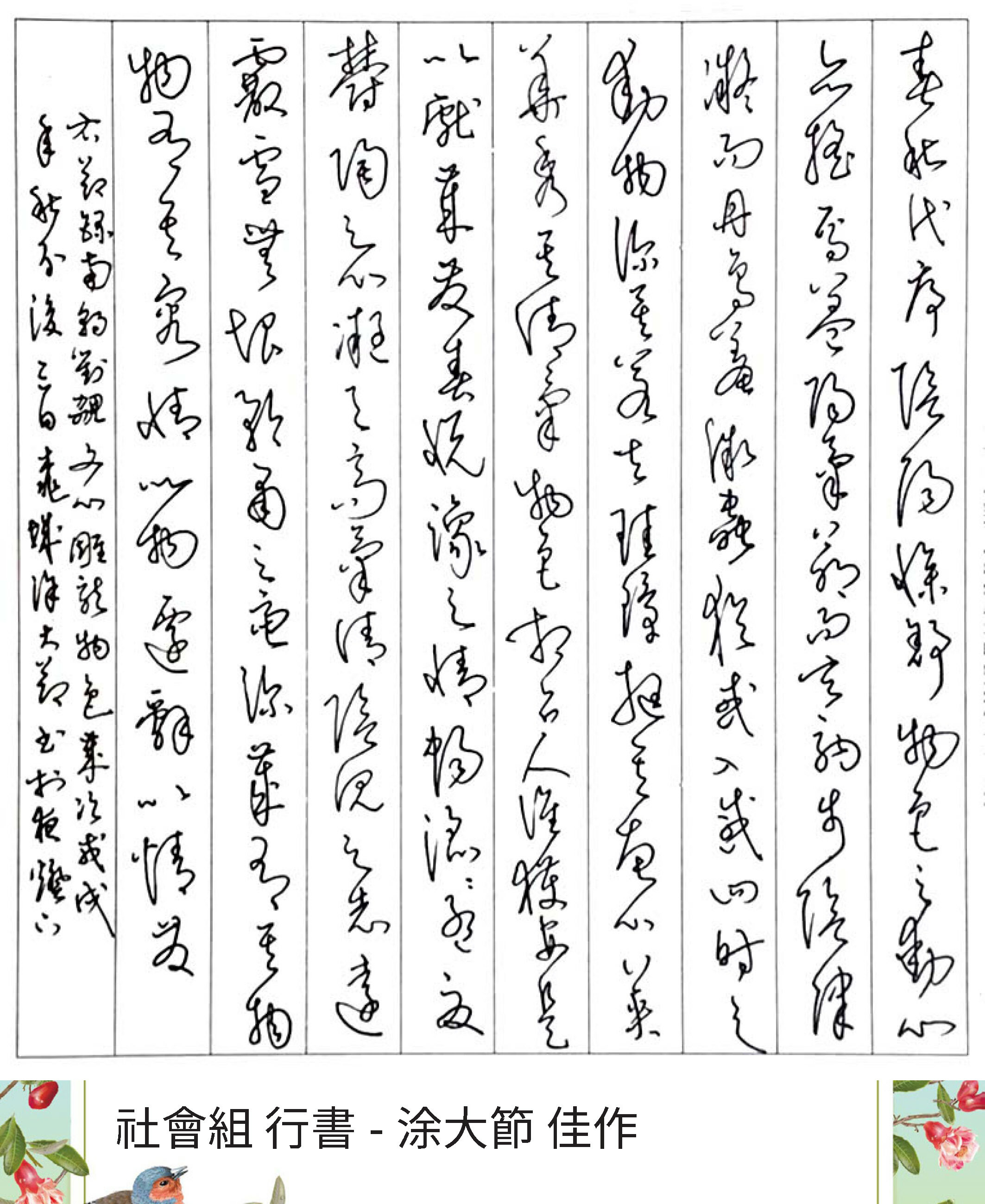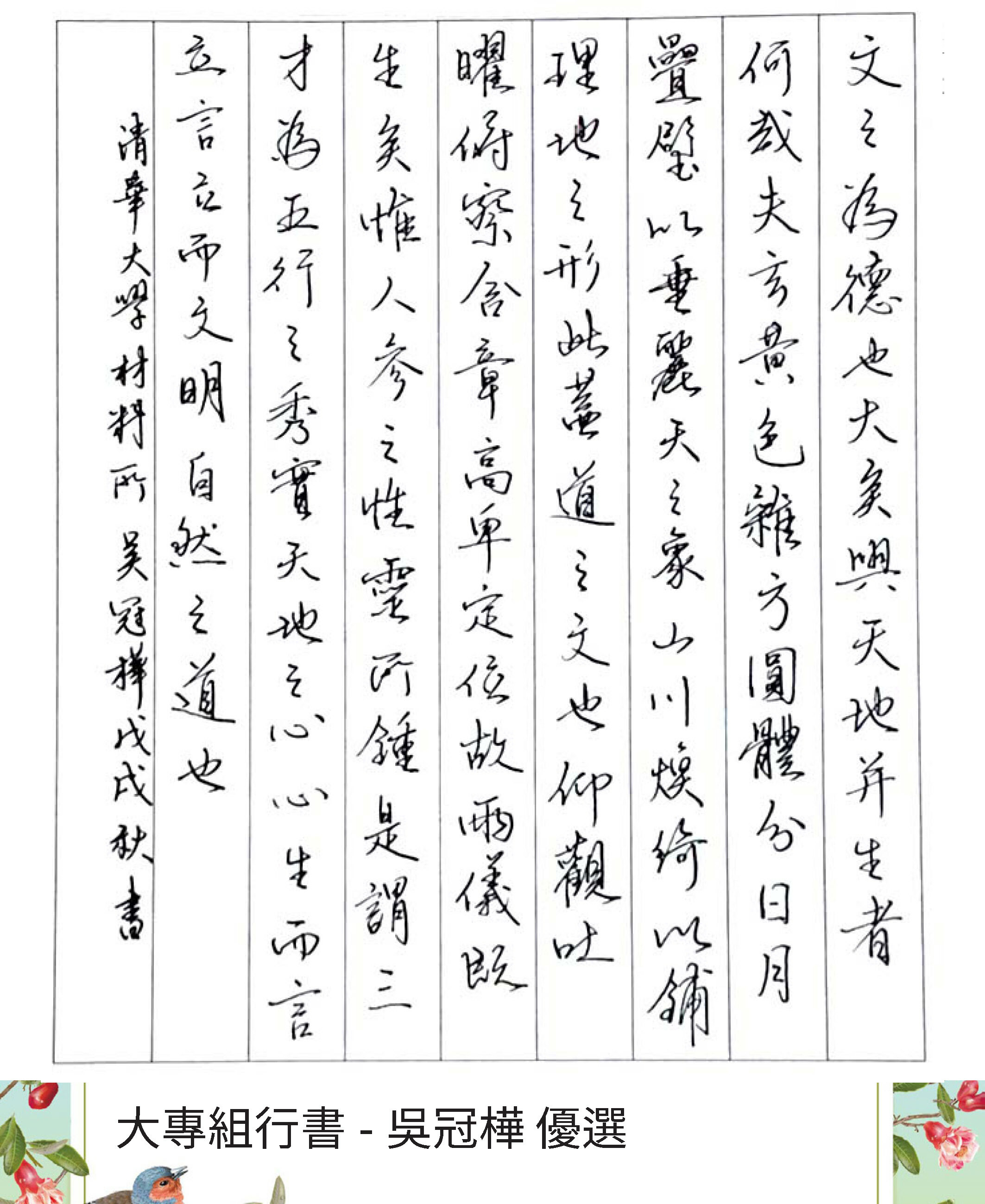 大專組行書