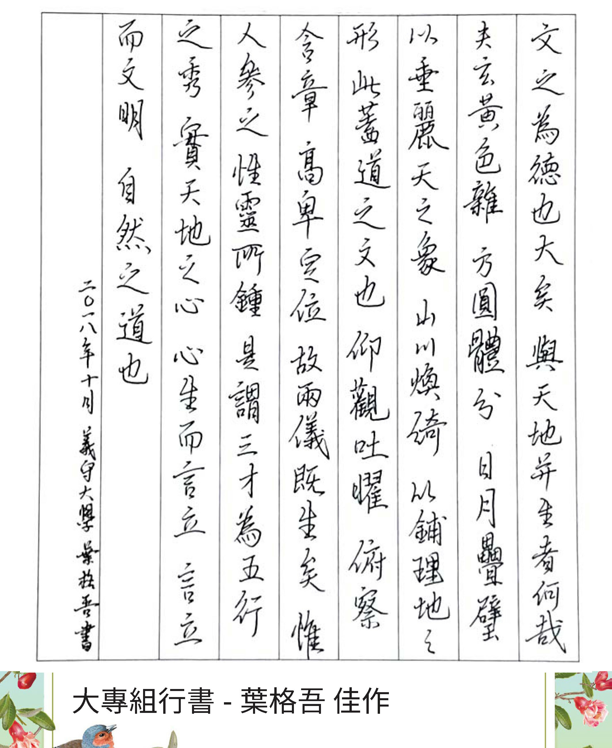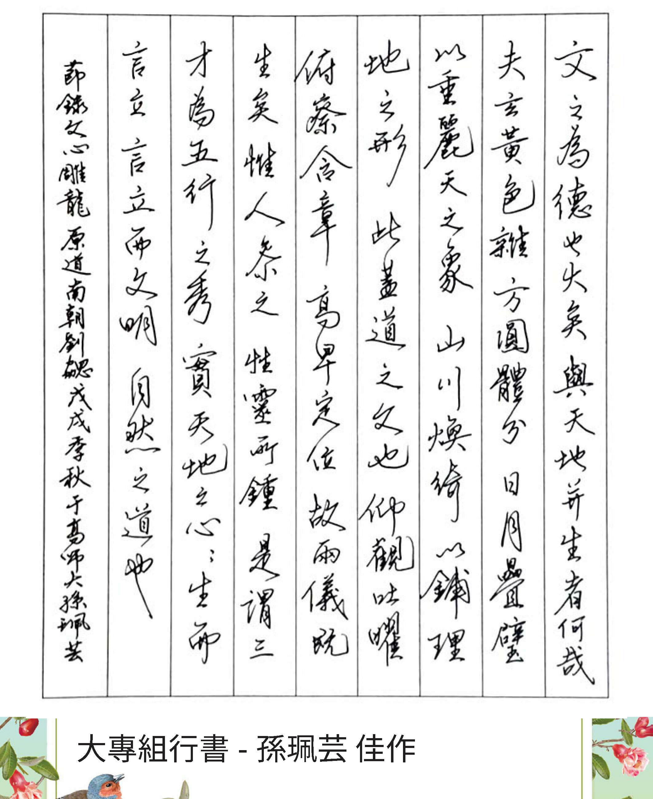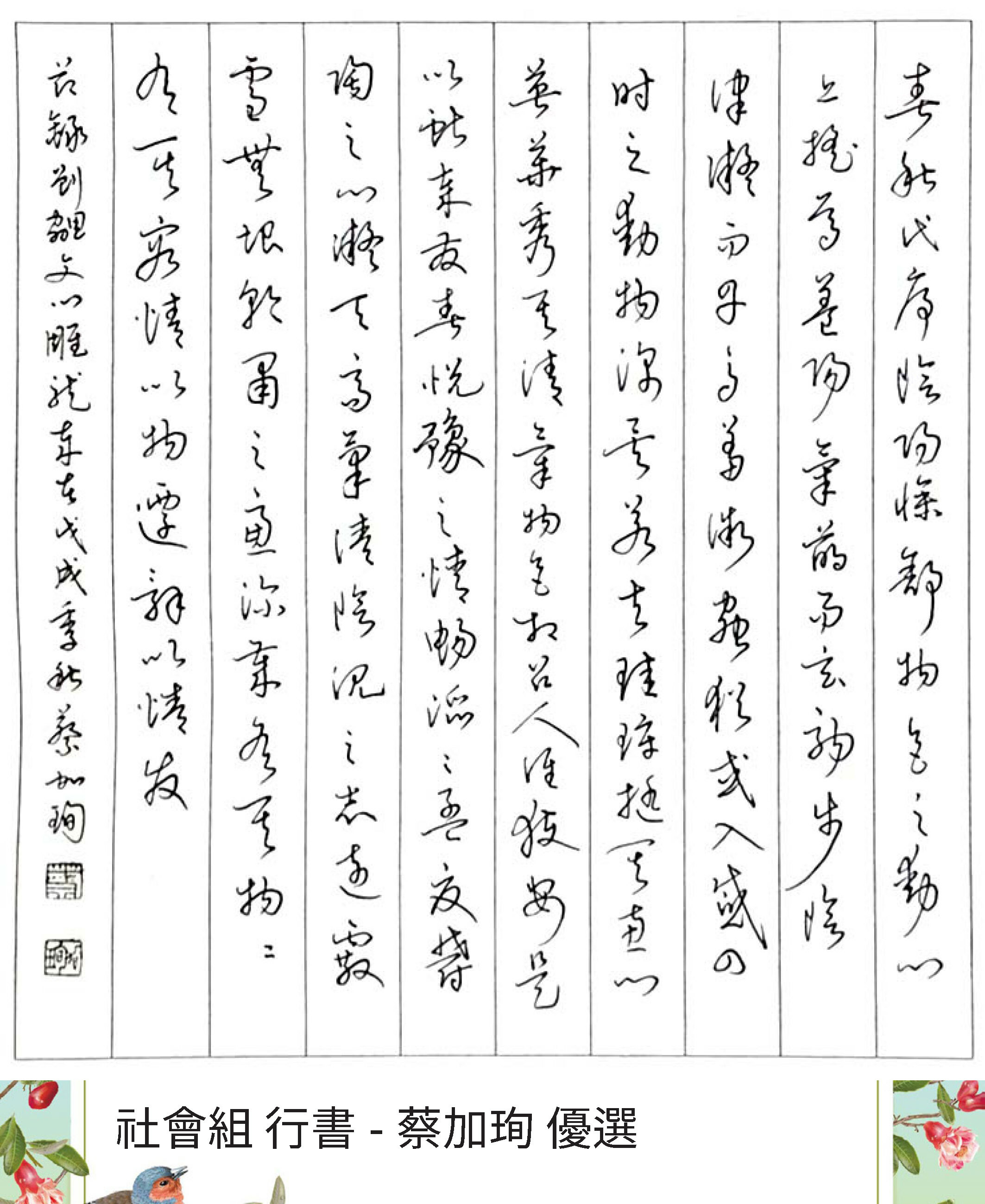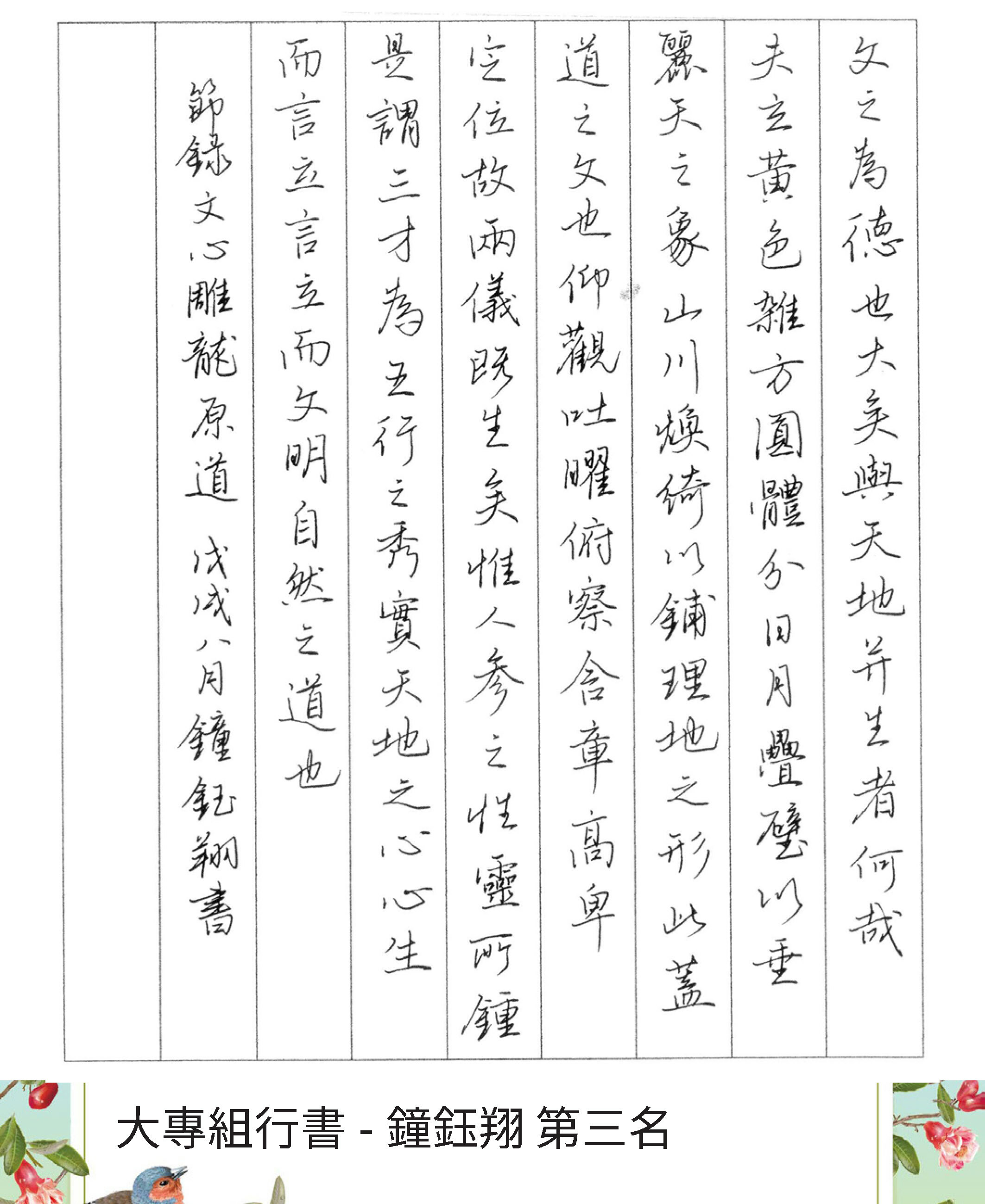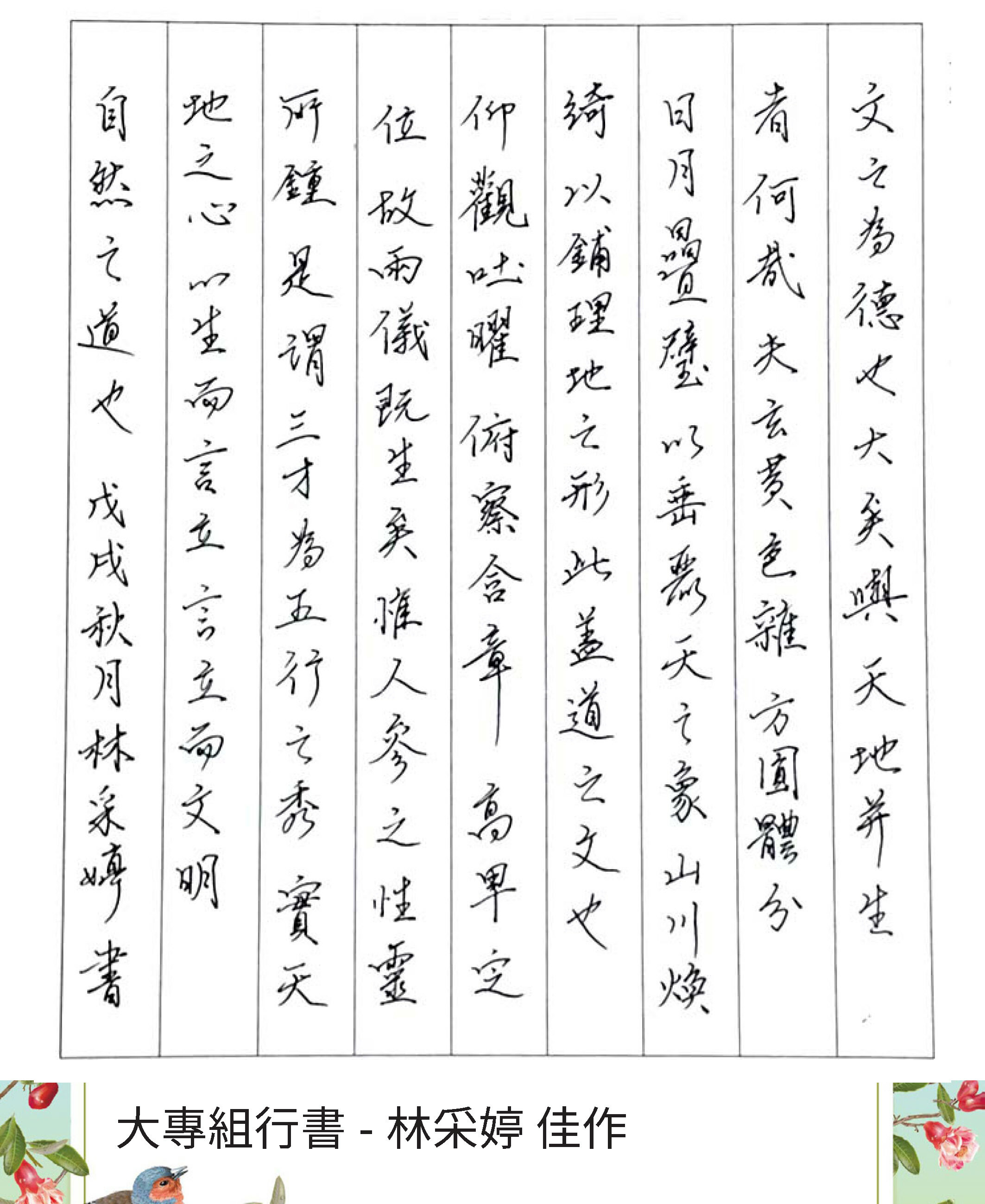 大專組行書