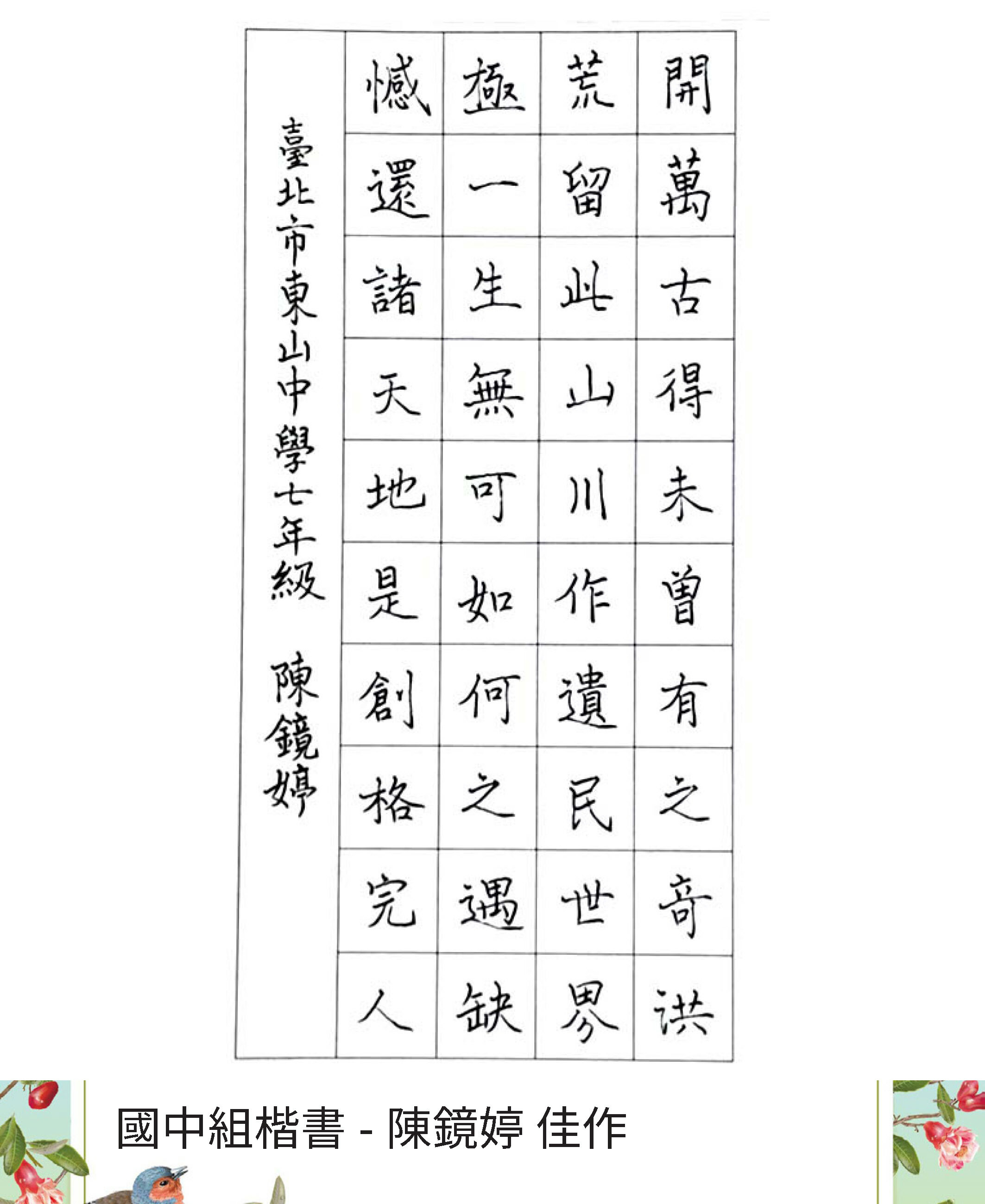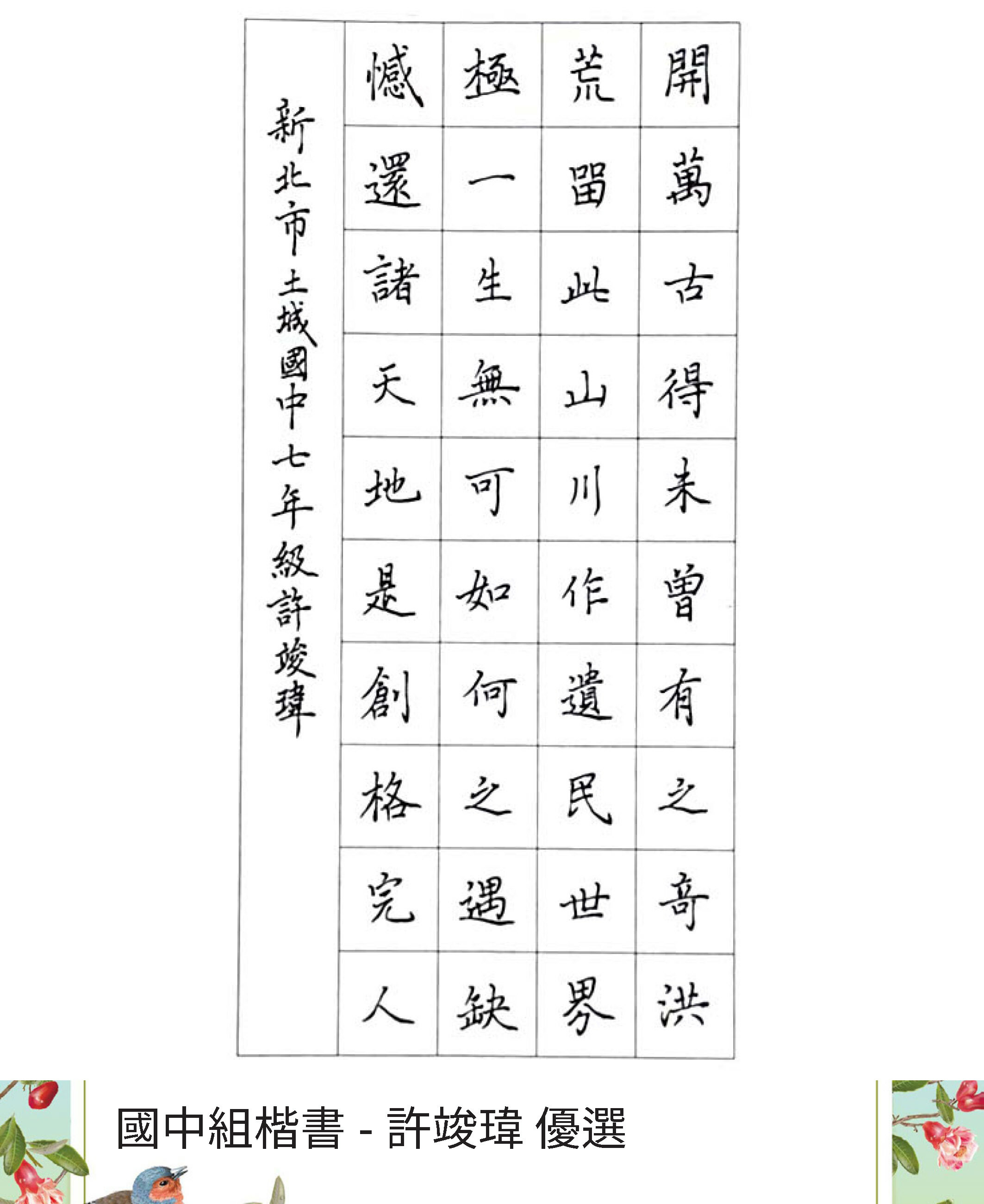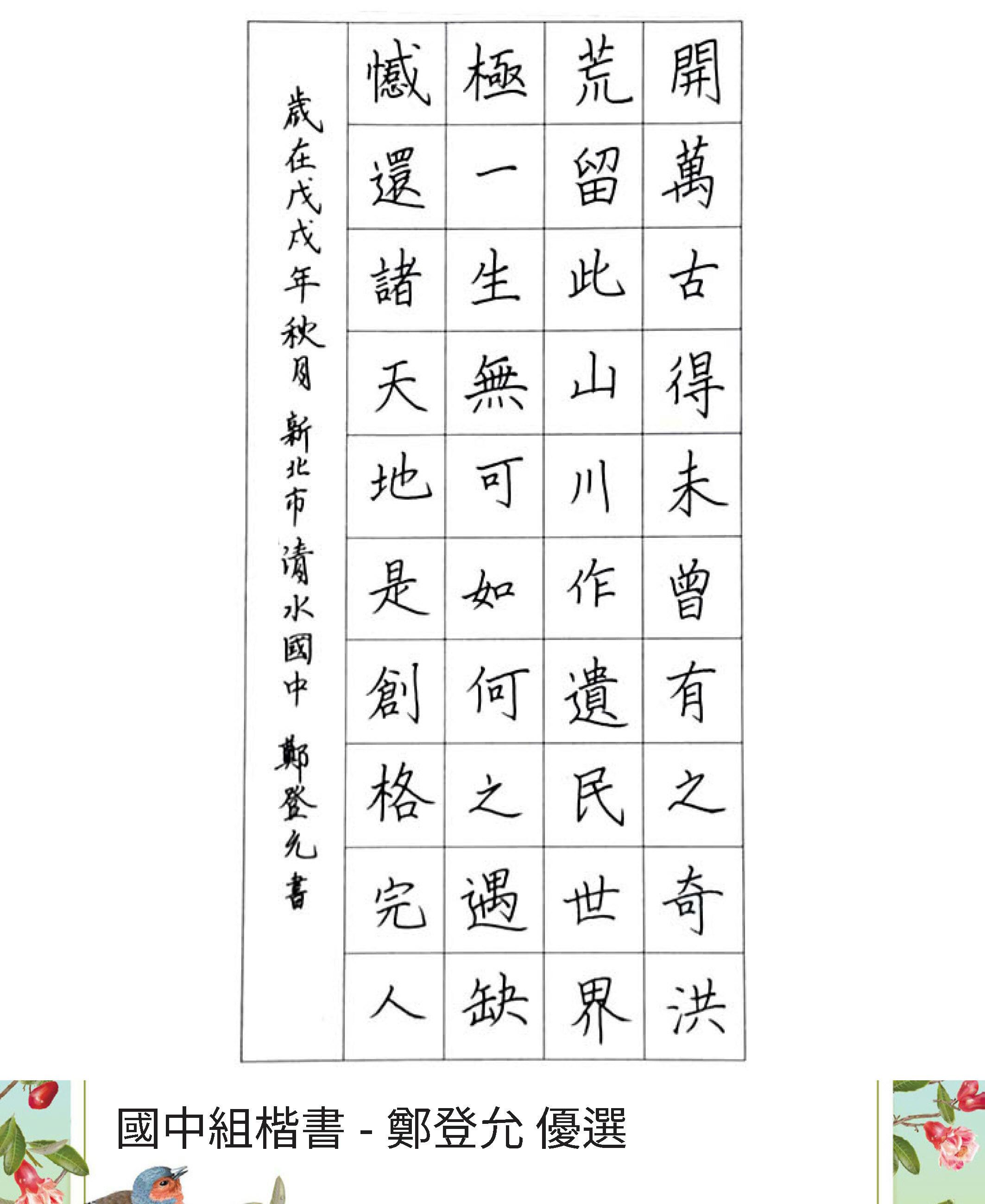 國中組楷書