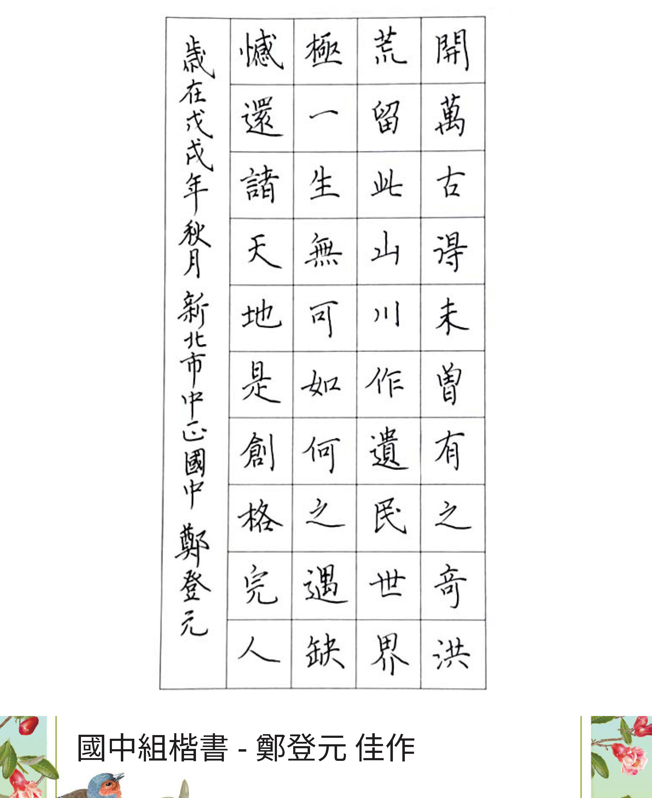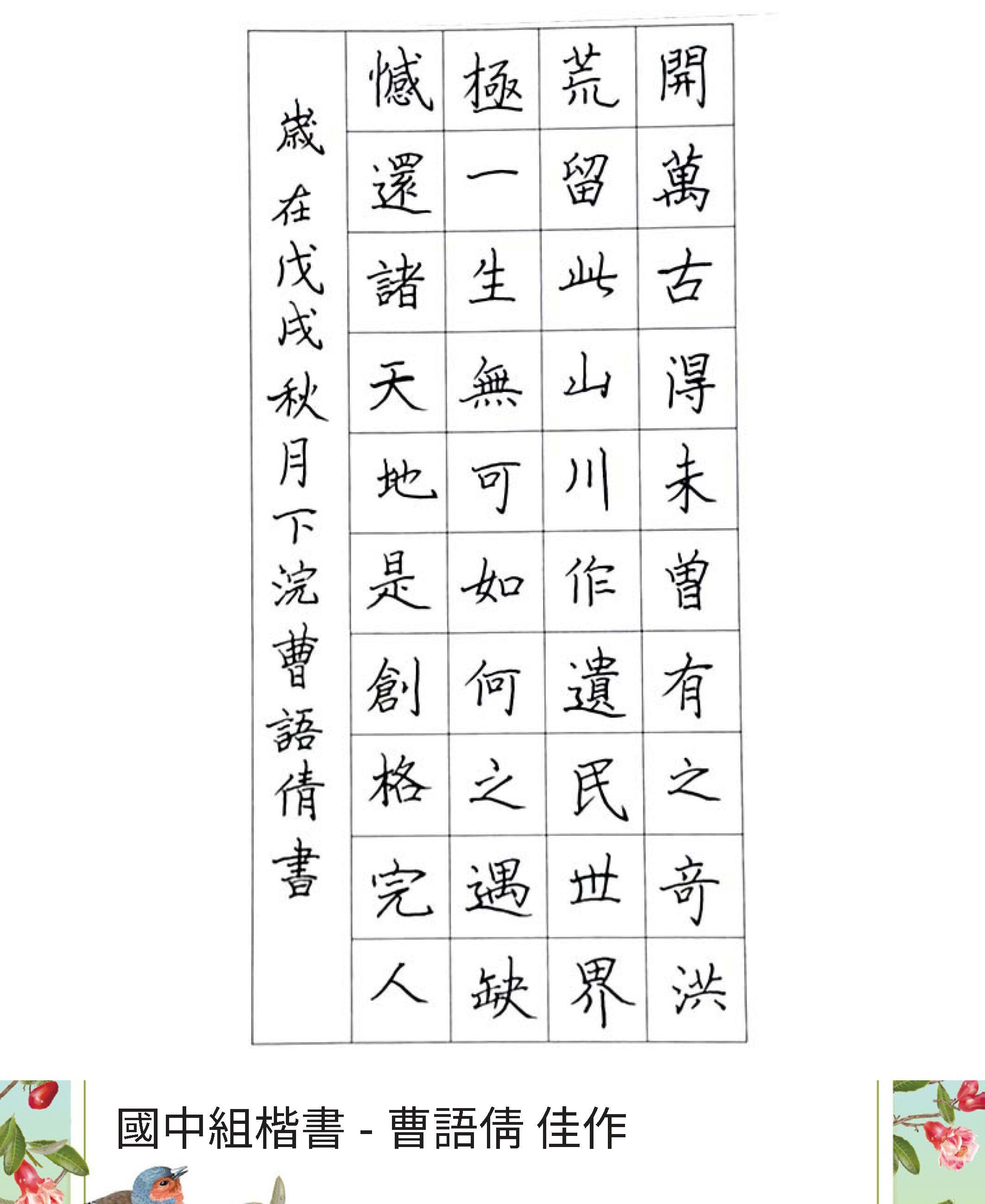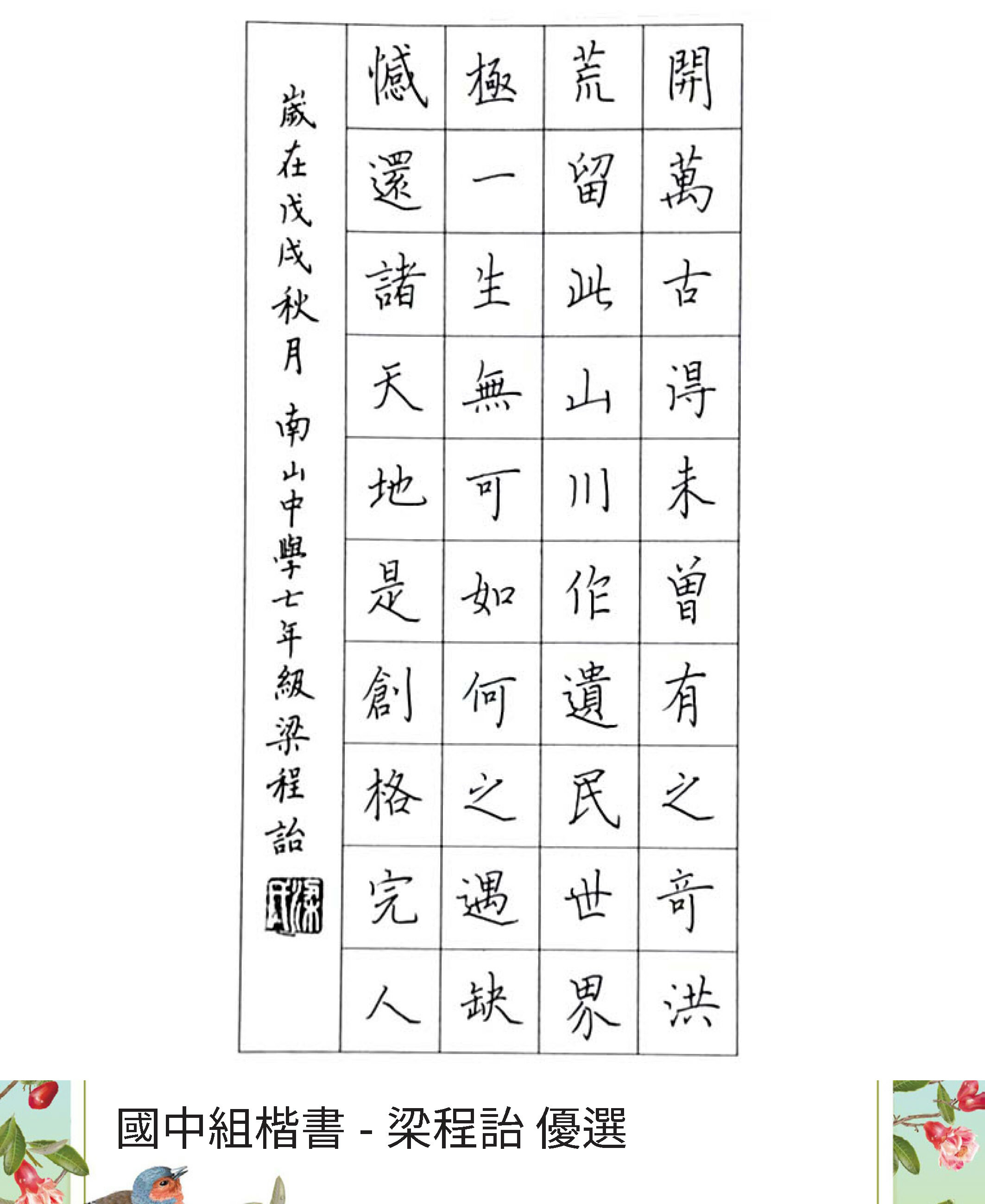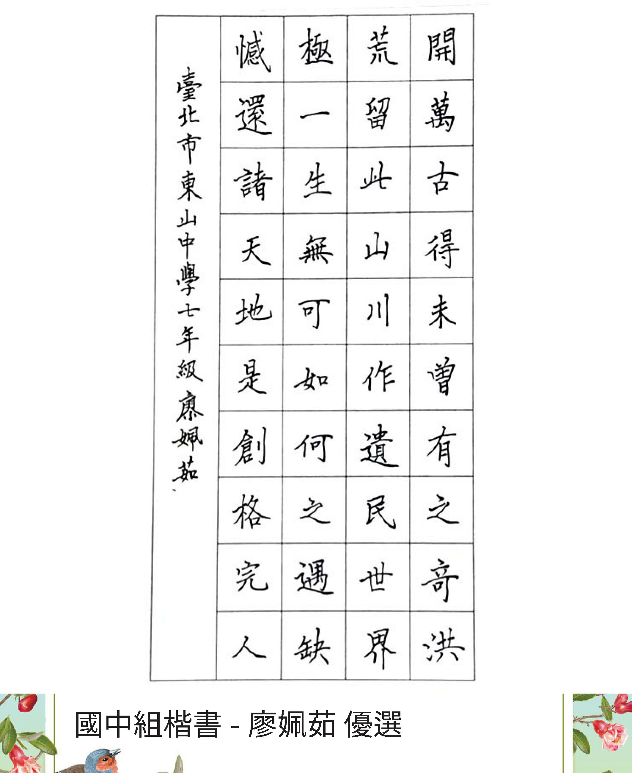 國中組楷書