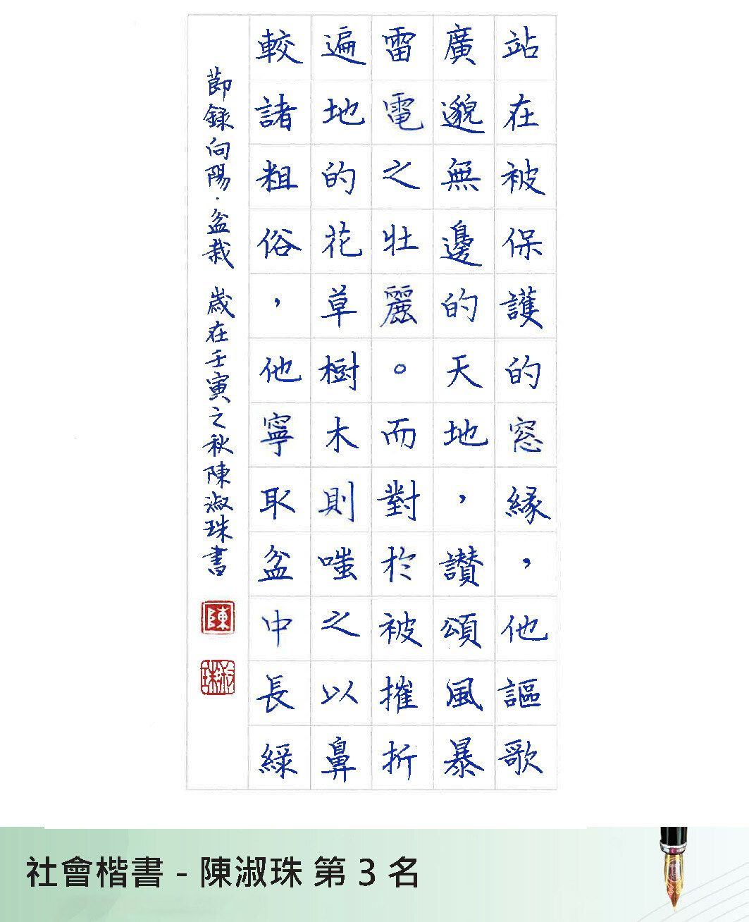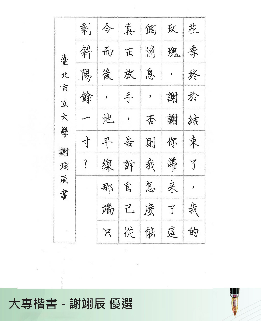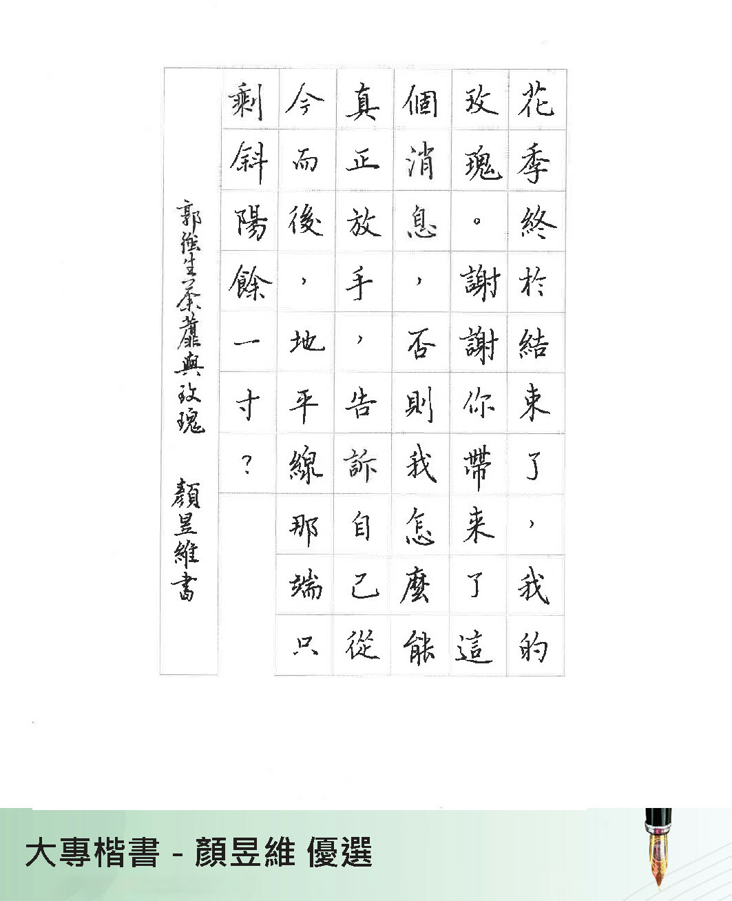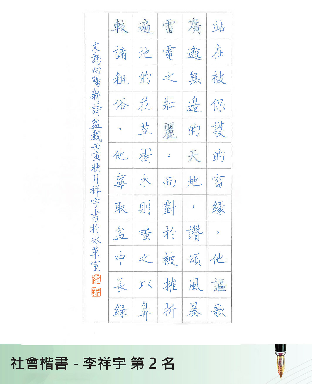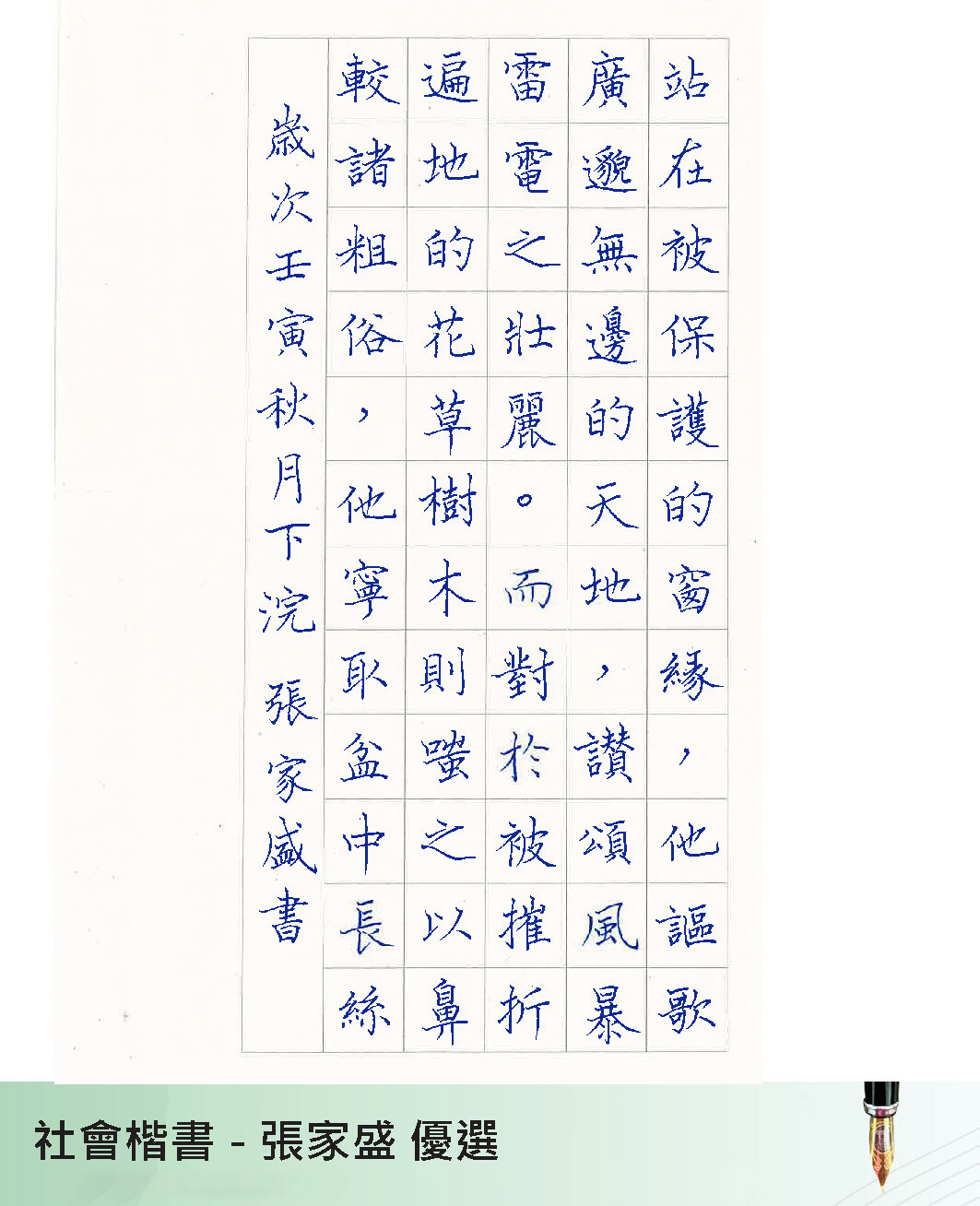 第20屆硬筆書法比賽得獎作品線上展出藝廊