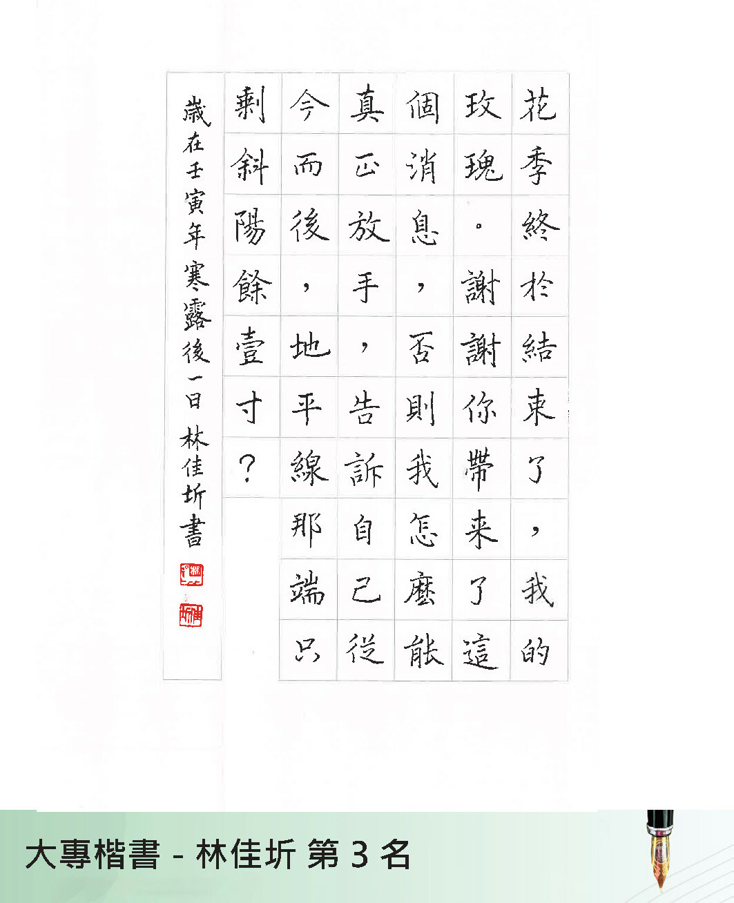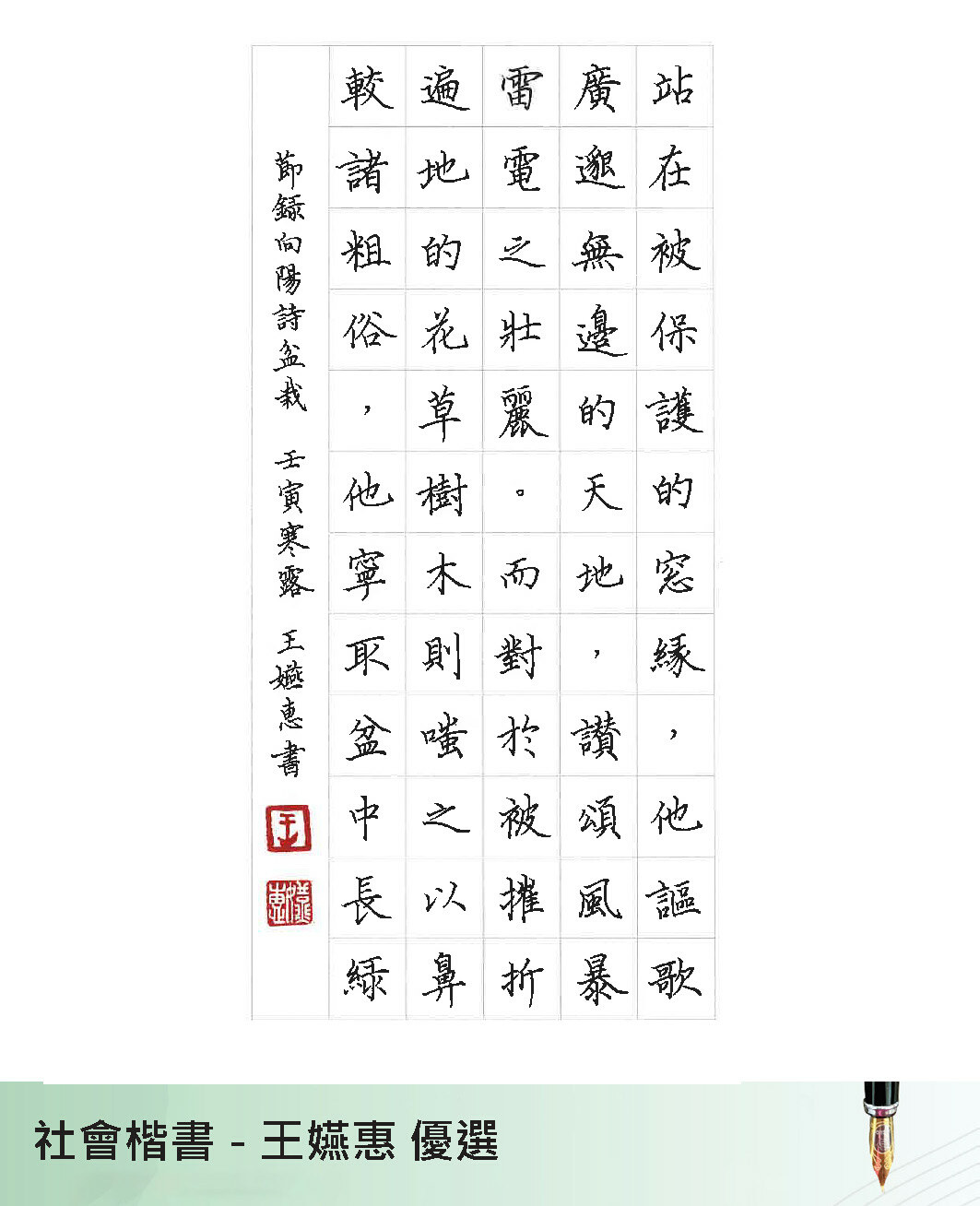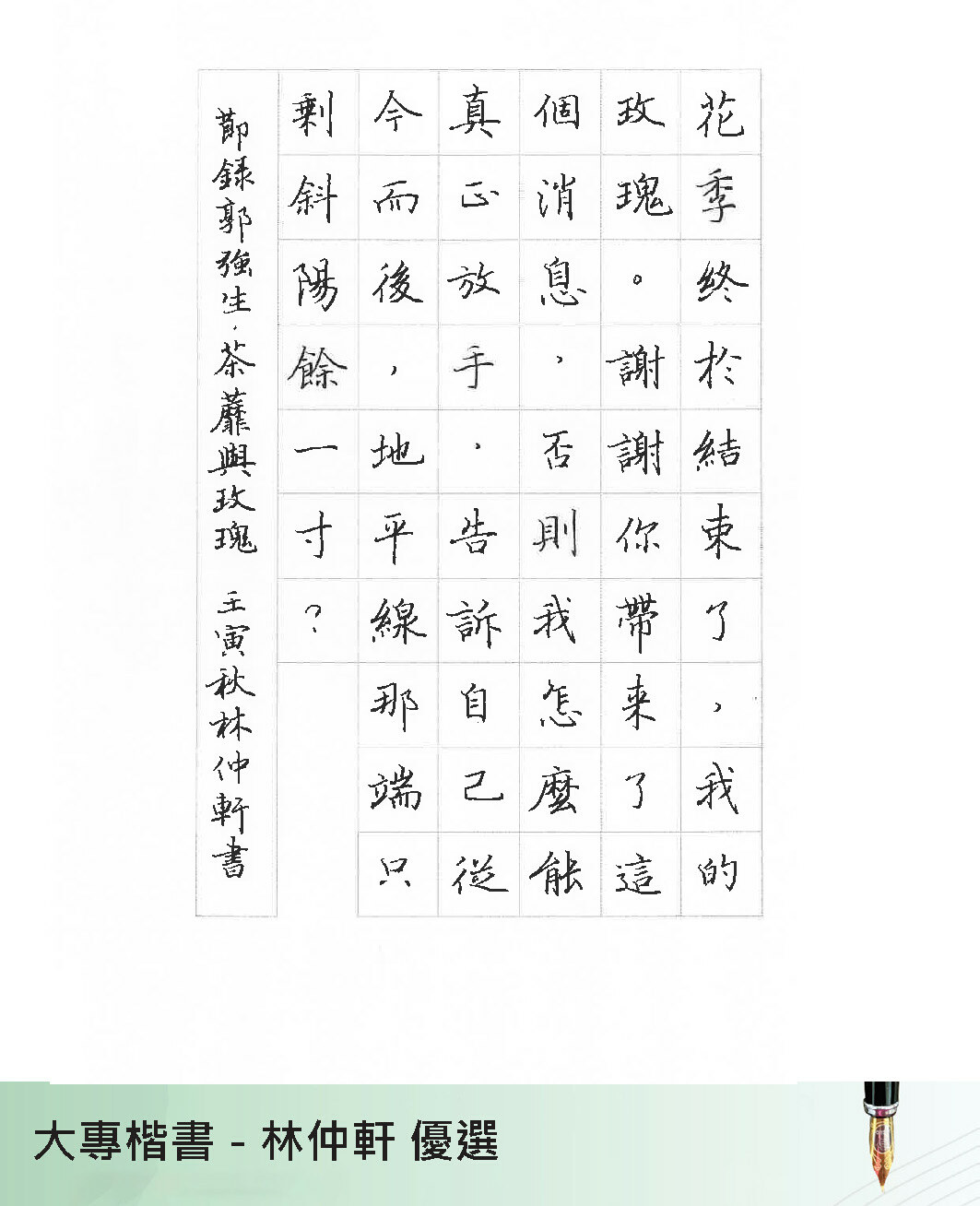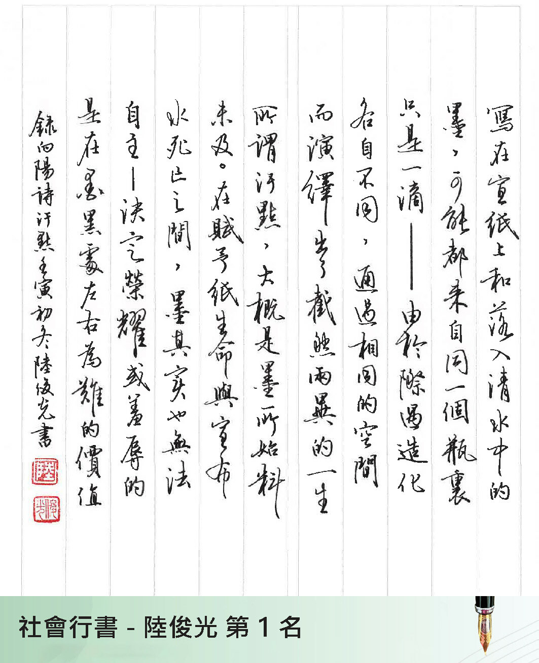 第20屆硬筆書法比賽得獎作品線上展出藝廊