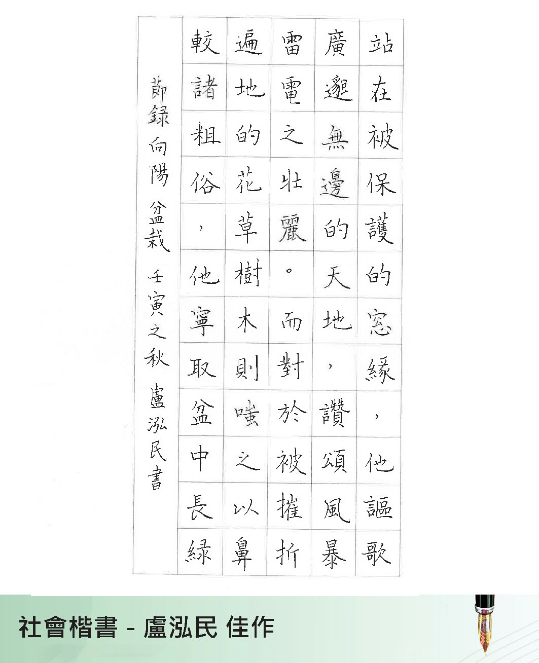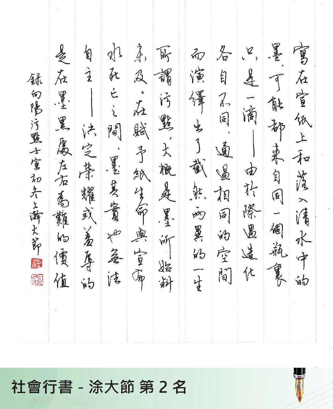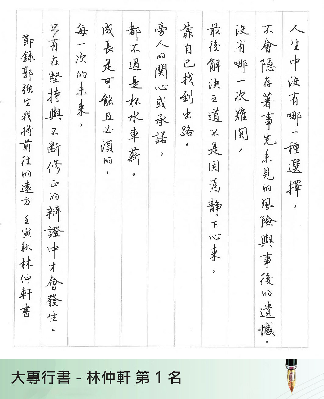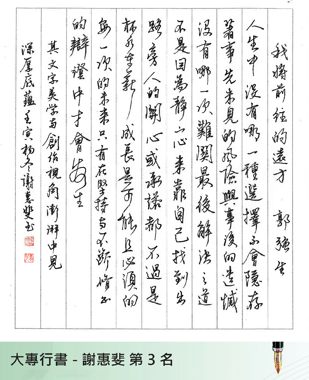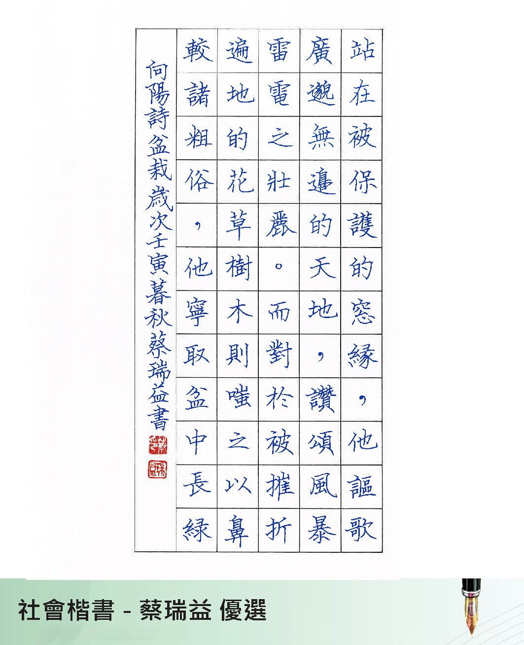 第20屆硬筆書法比賽得獎作品線上展出藝廊