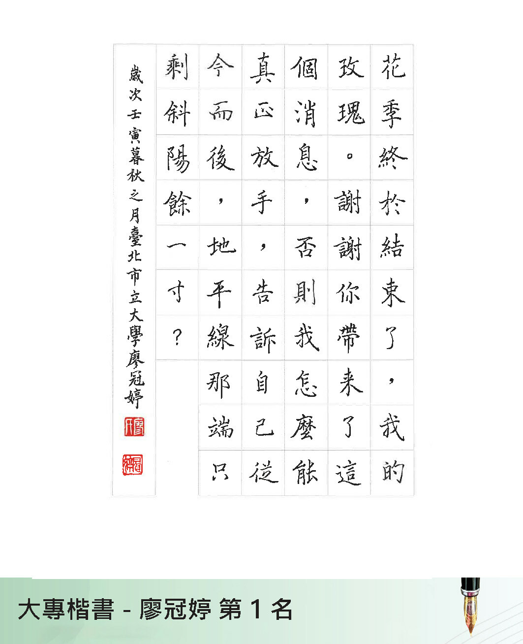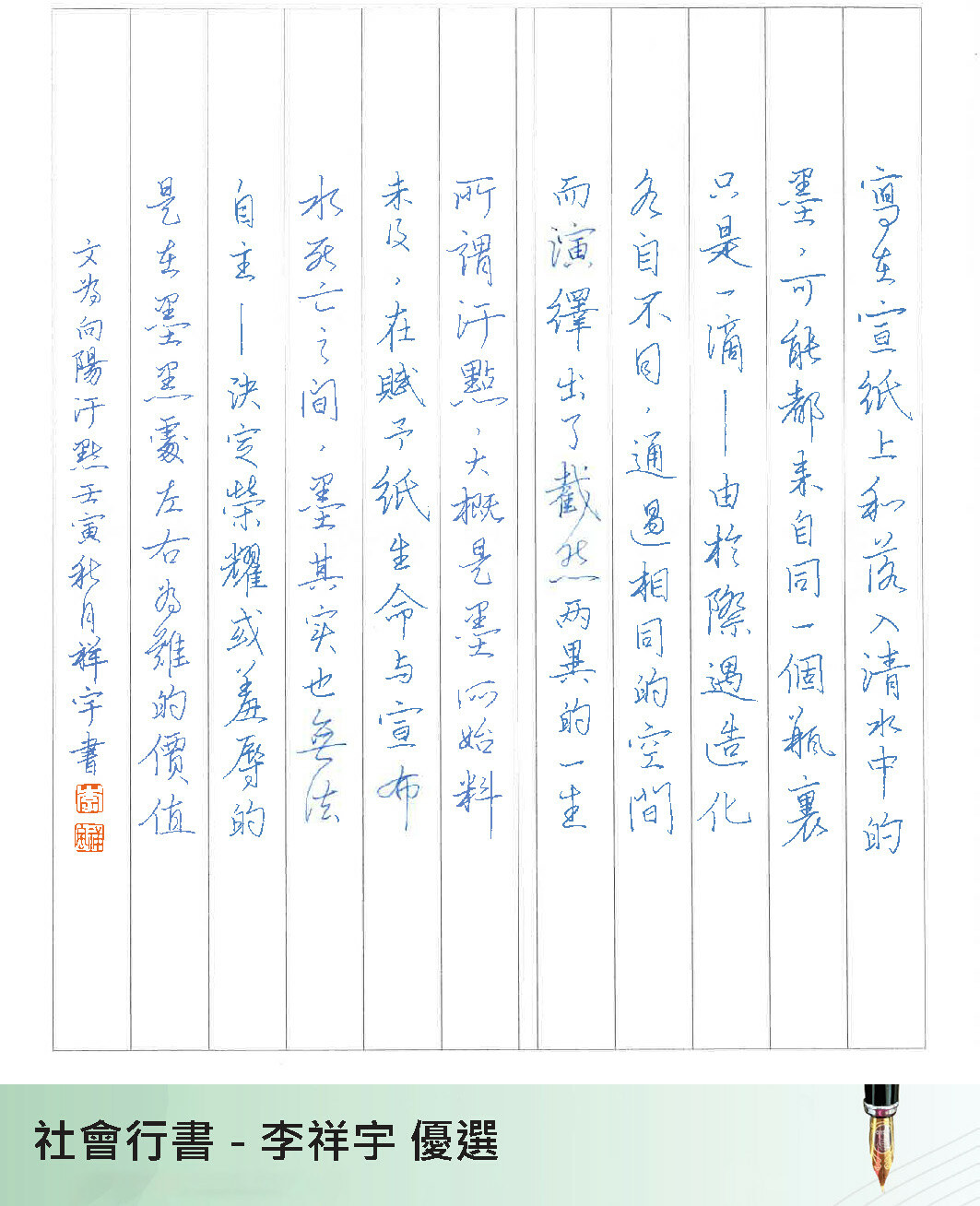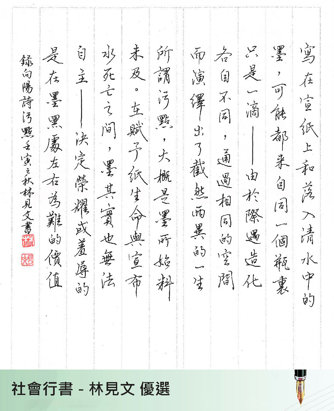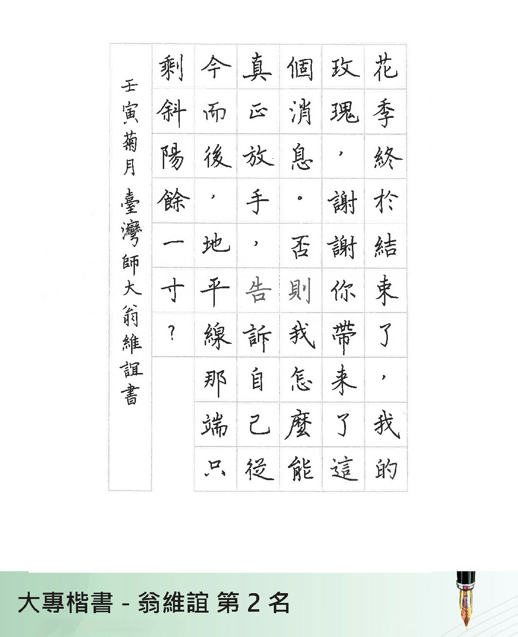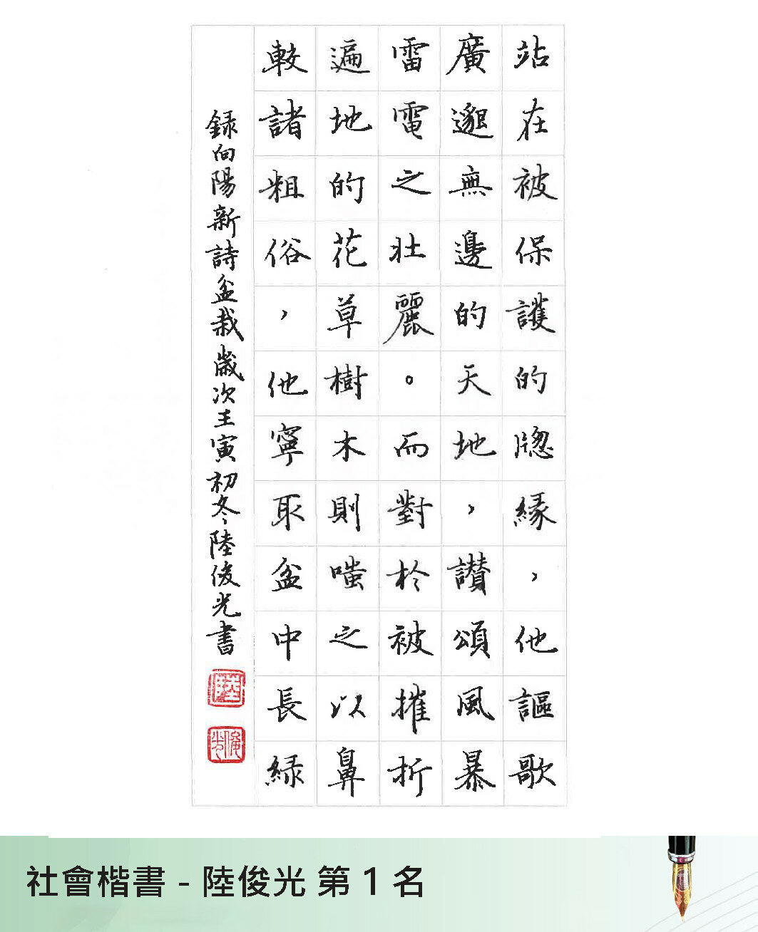 第20屆硬筆書法比賽得獎作品線上展出藝廊