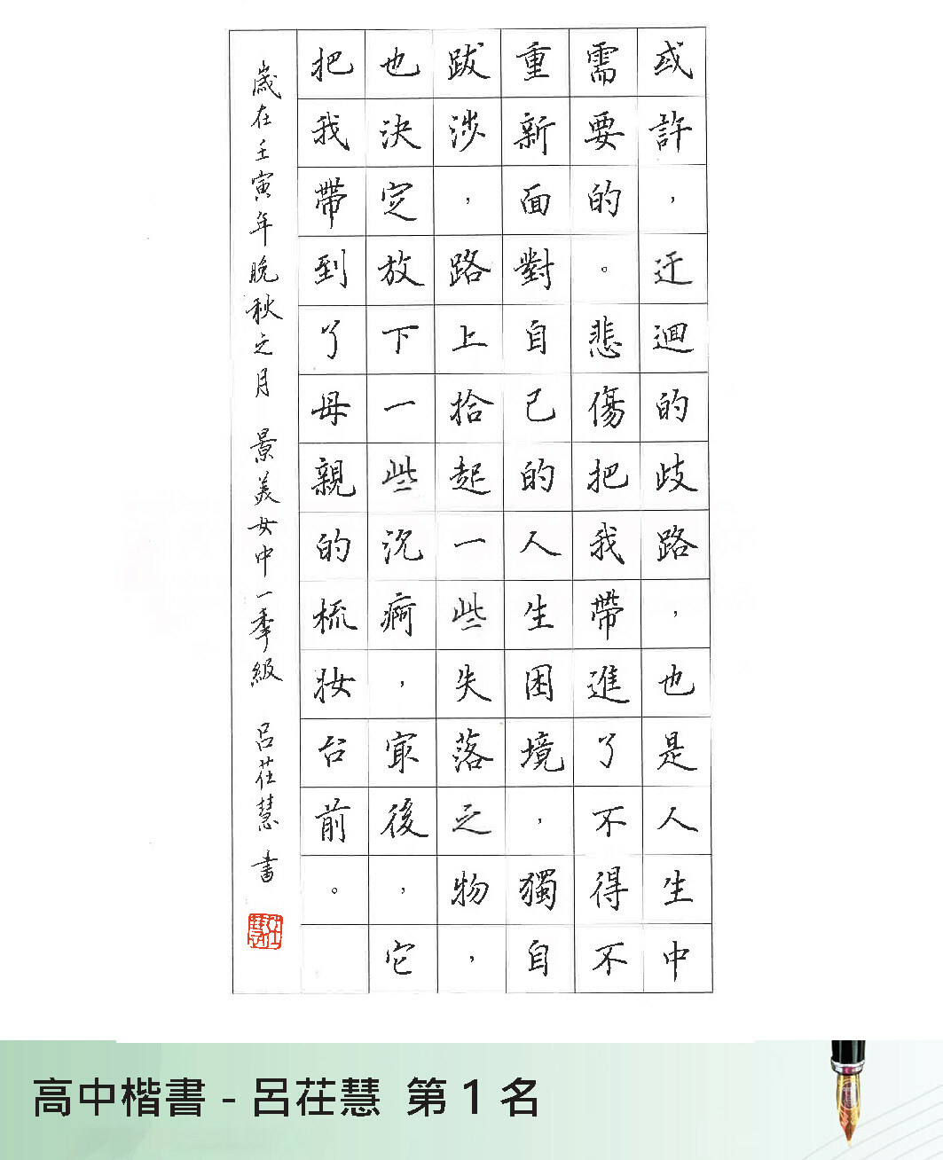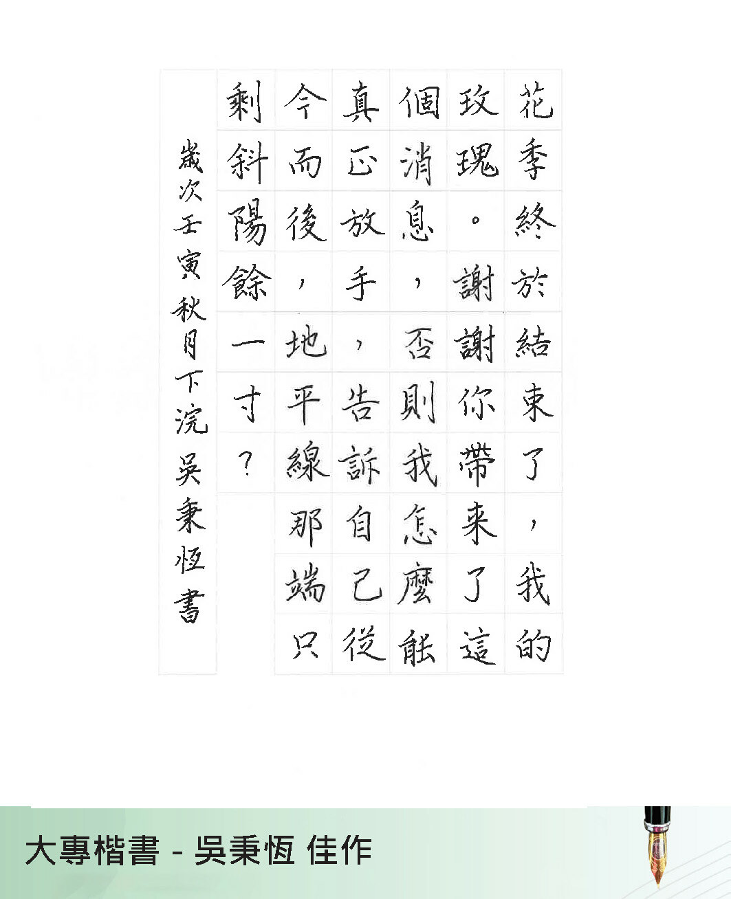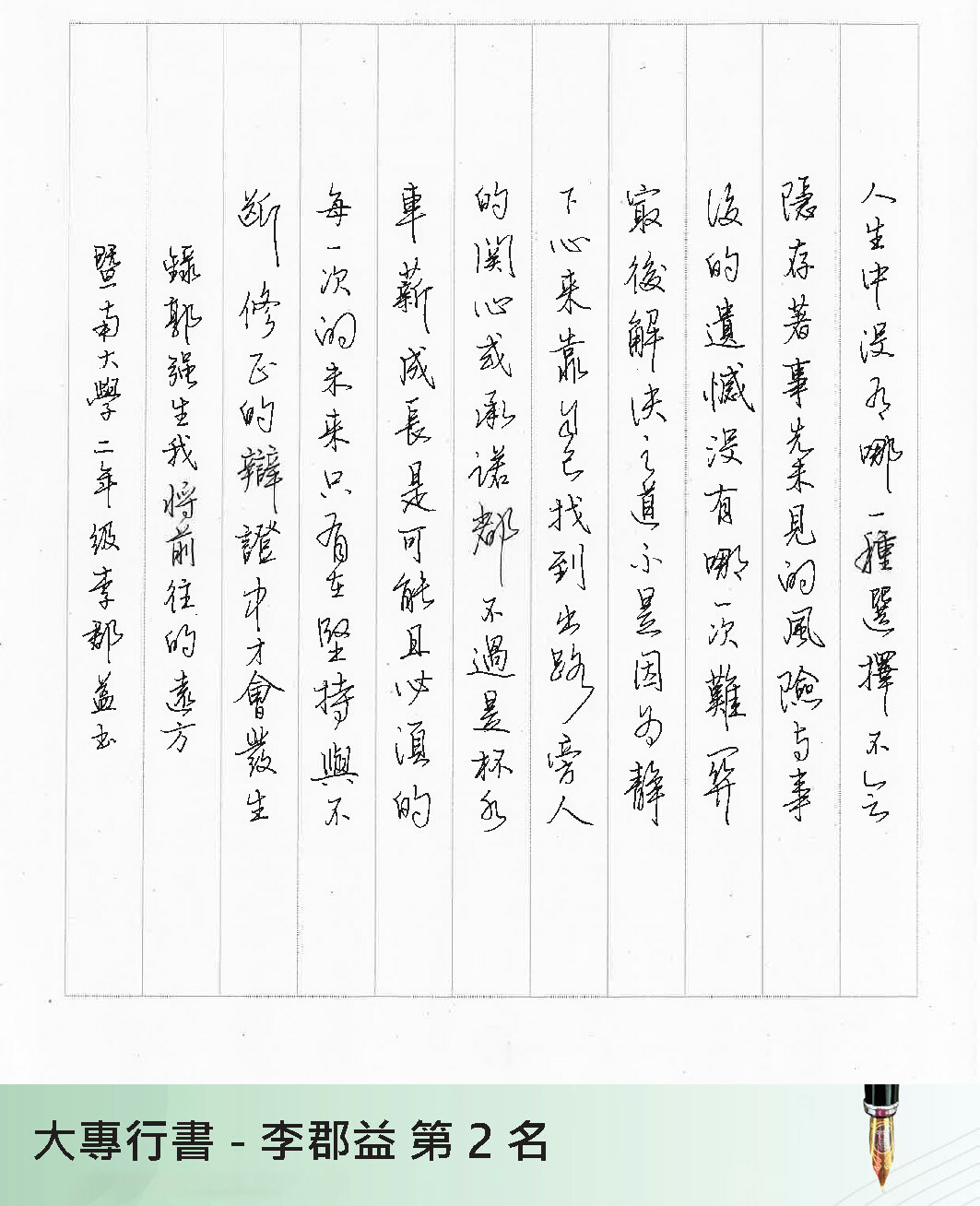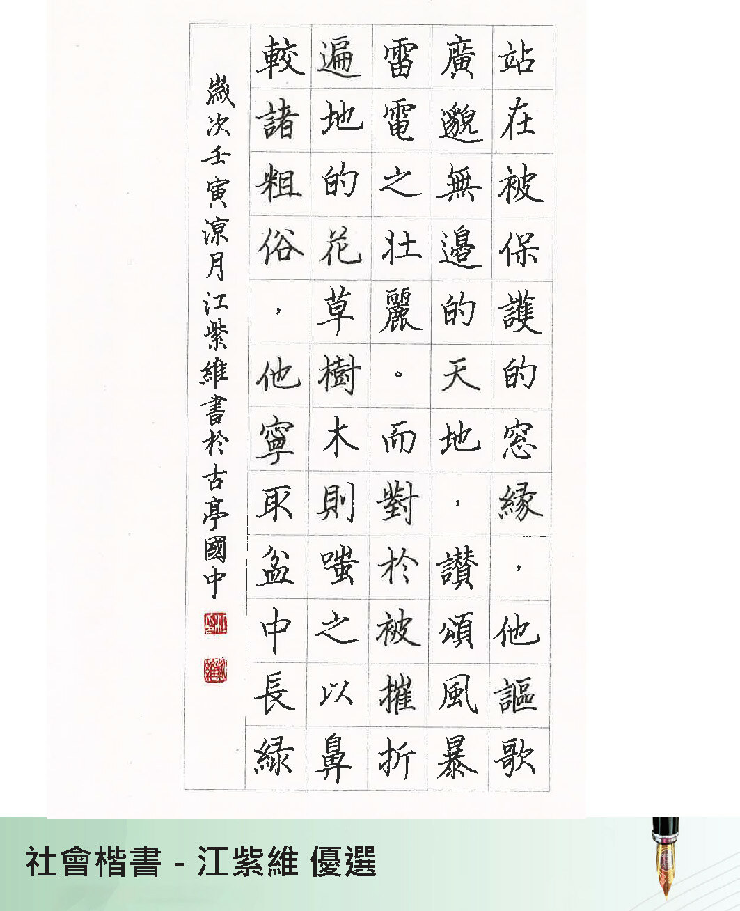 第20屆硬筆書法比賽得獎作品線上展出藝廊