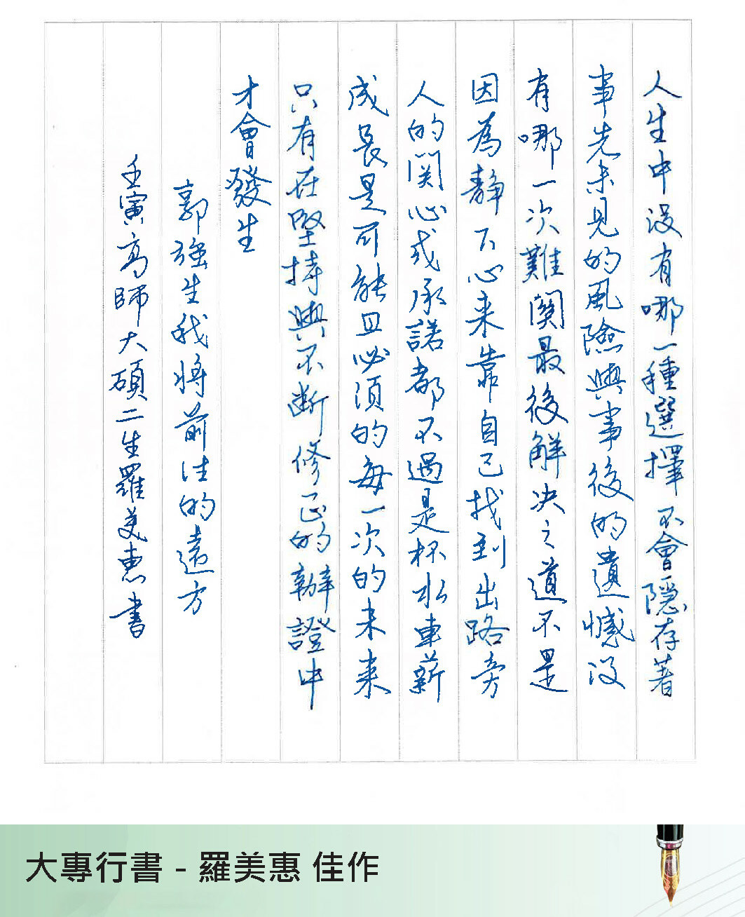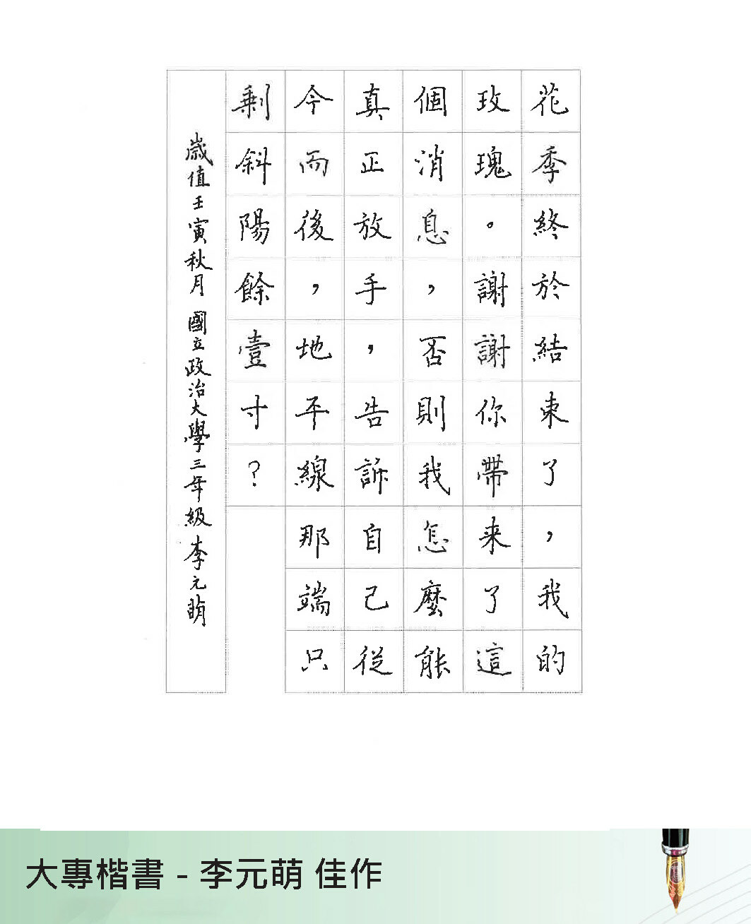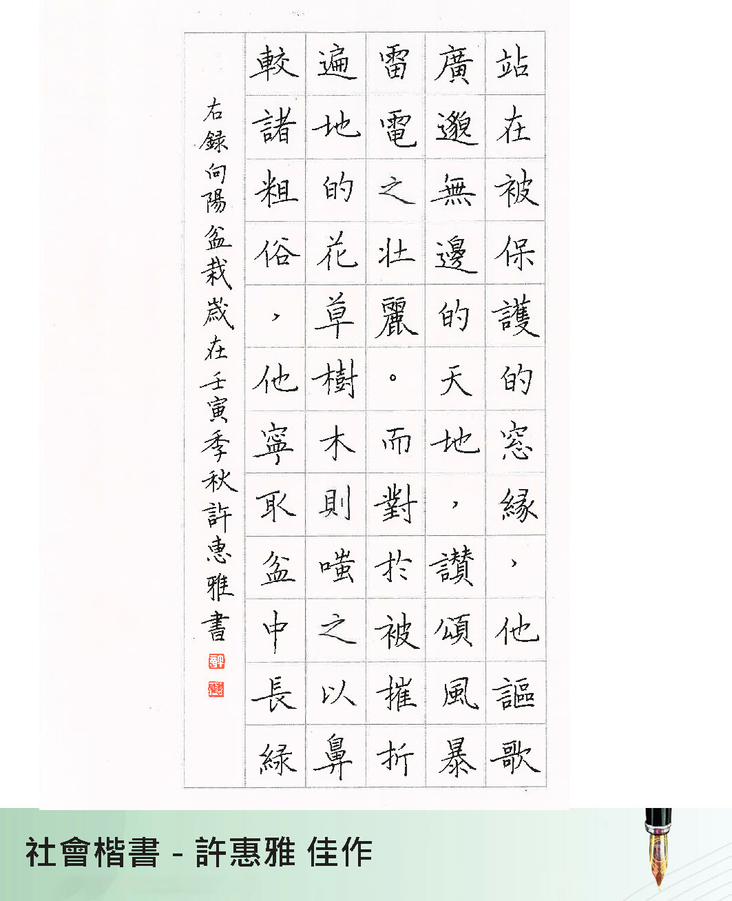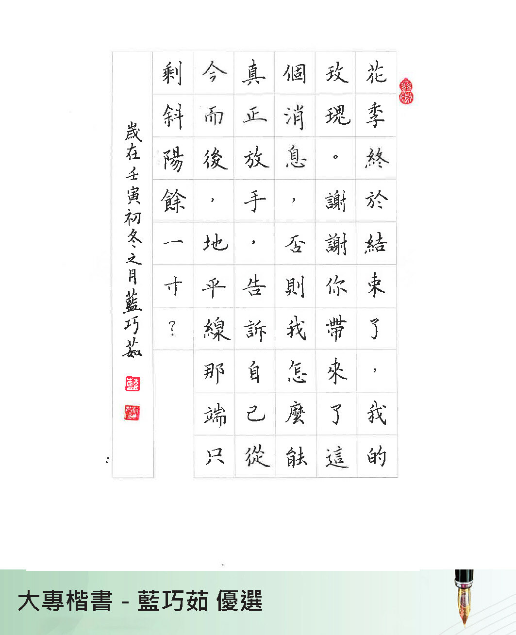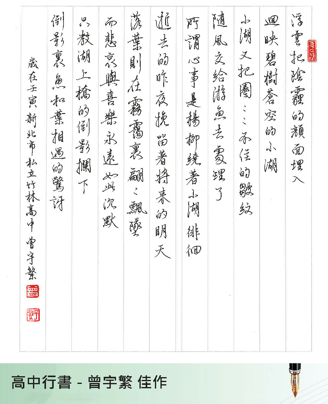 第20屆硬筆書法比賽得獎作品線上展出藝廊