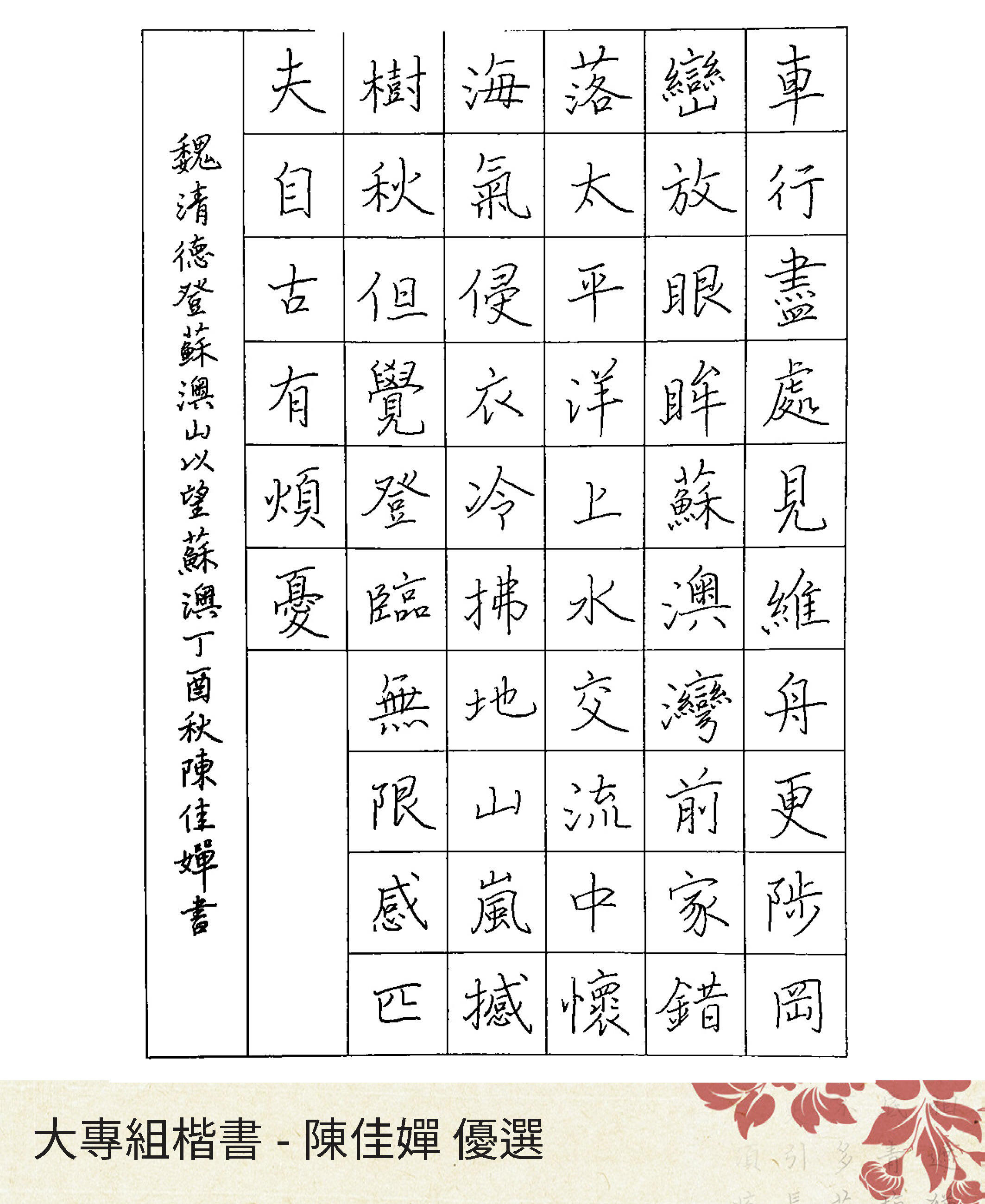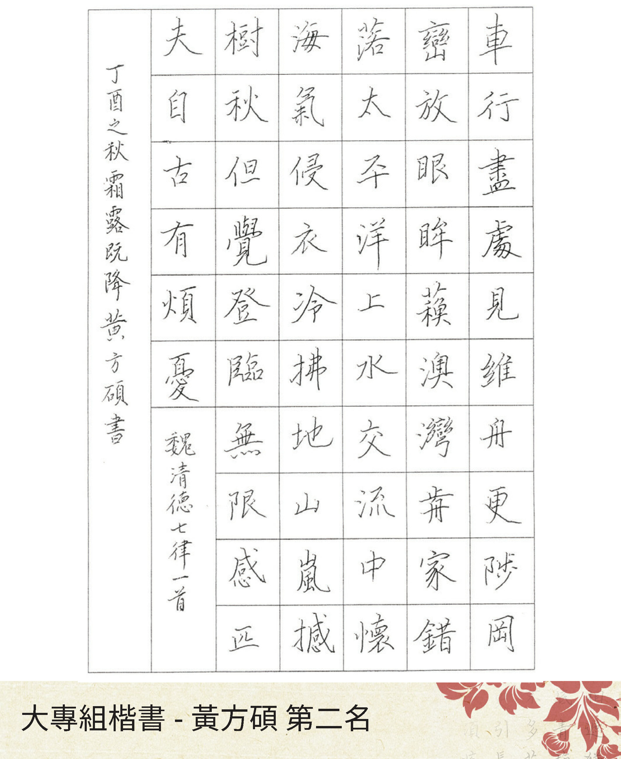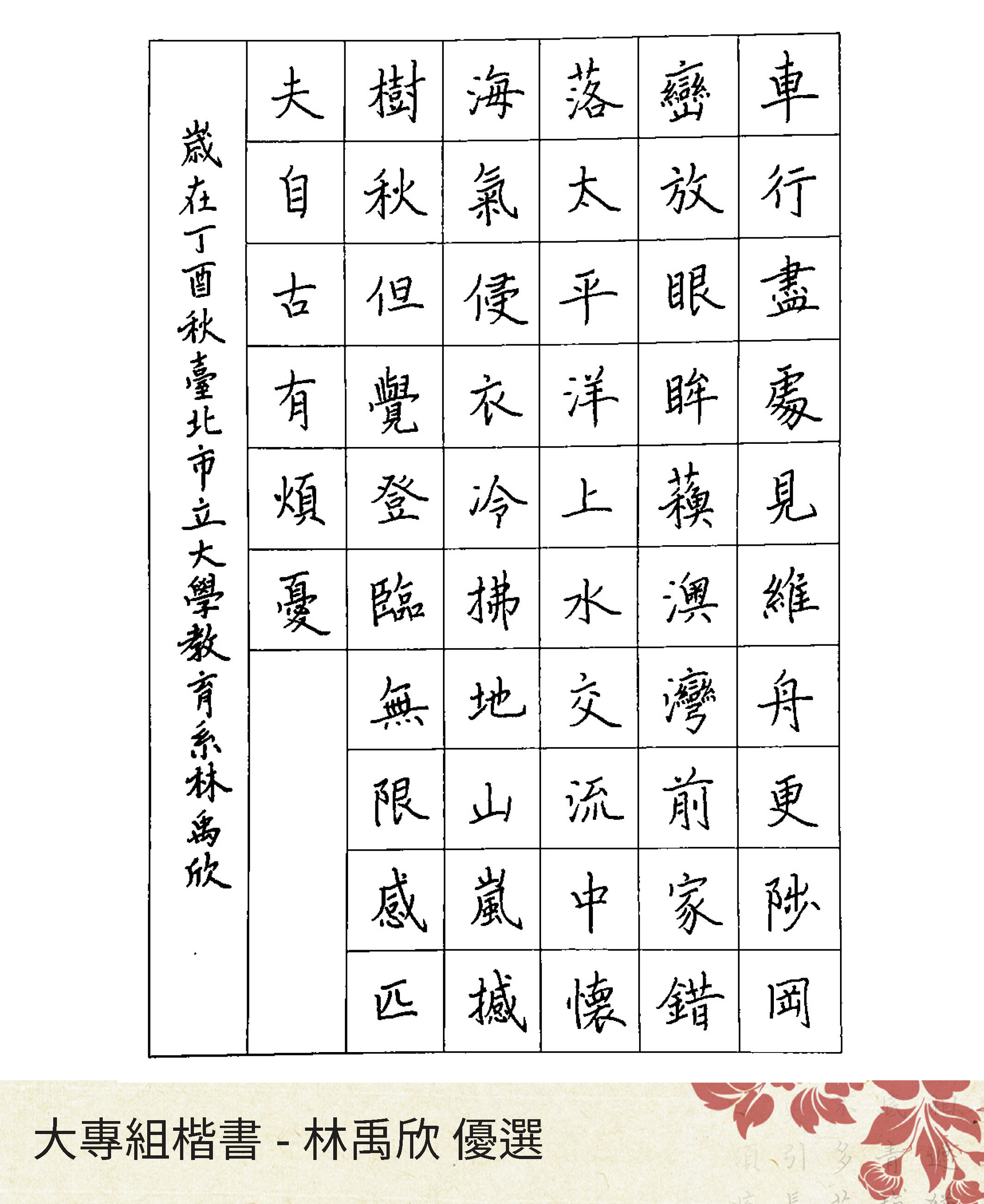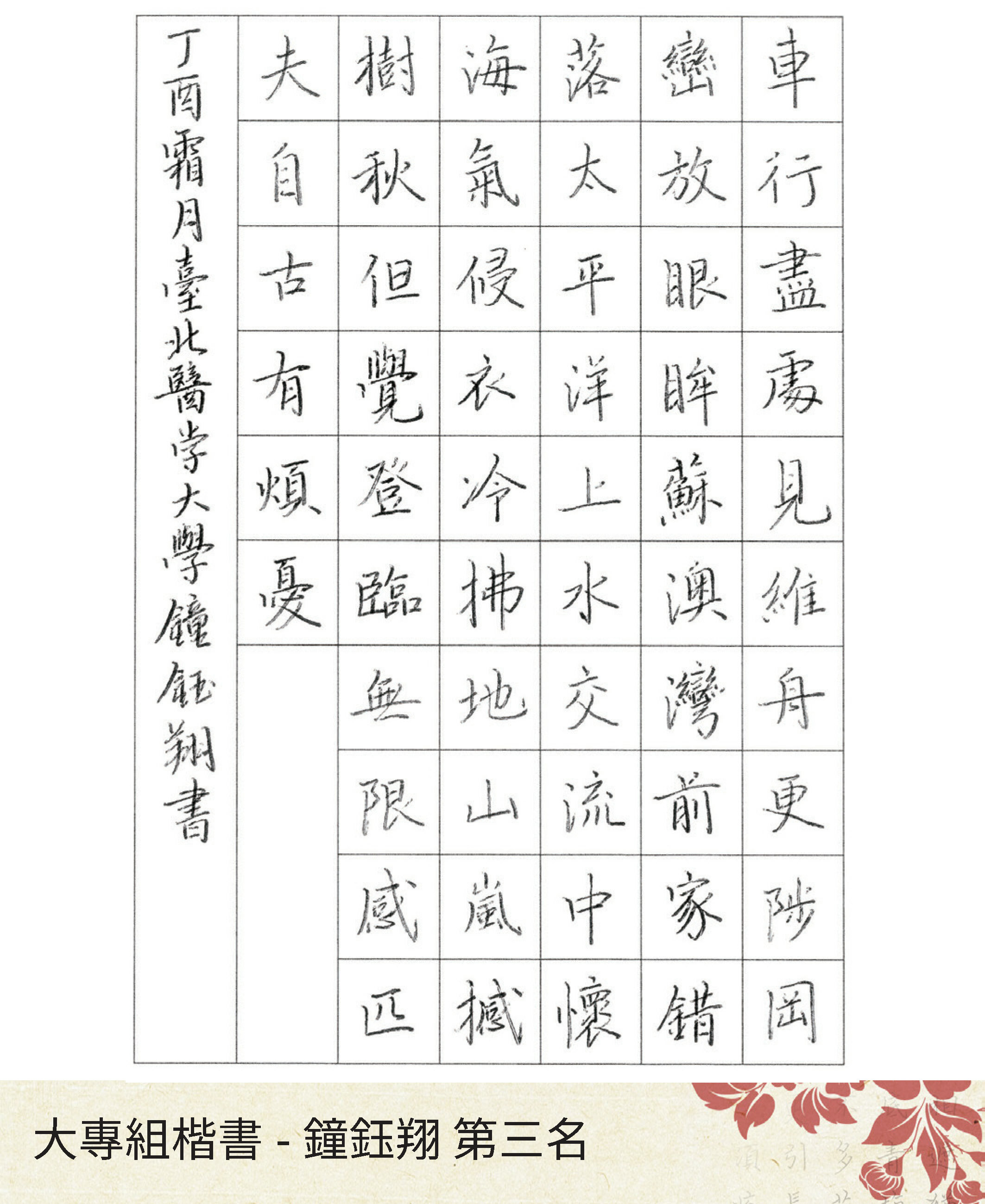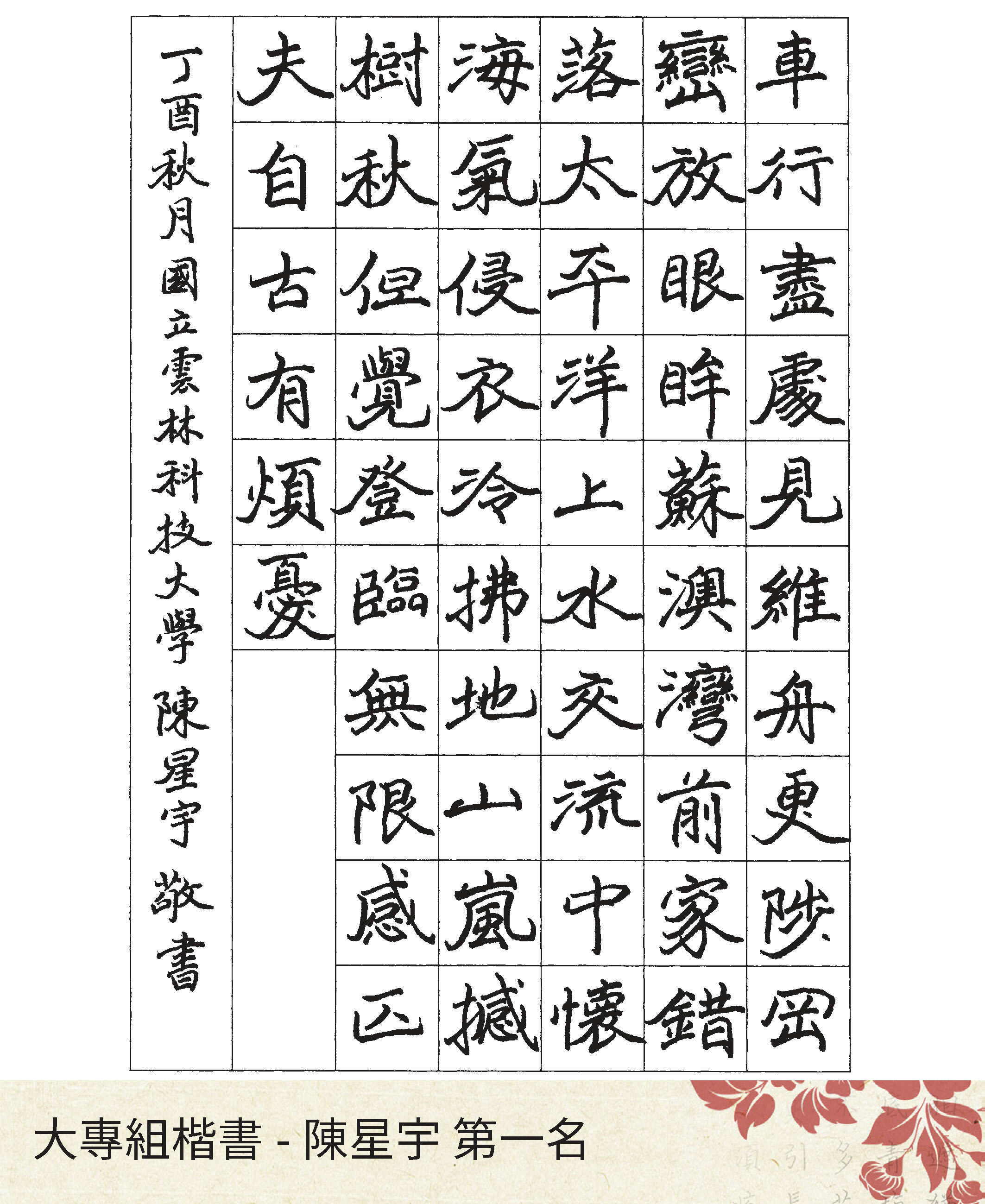 大專組楷書