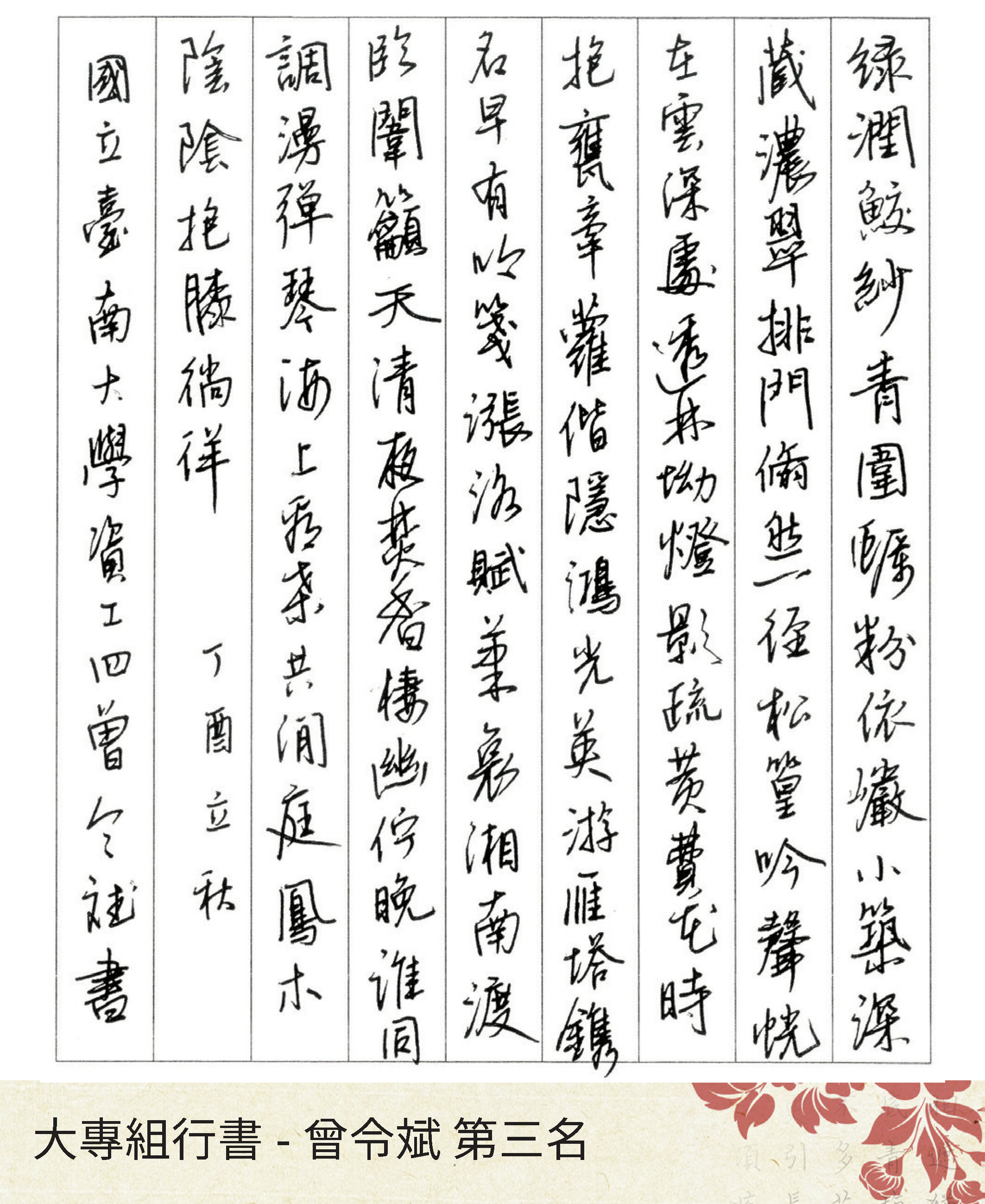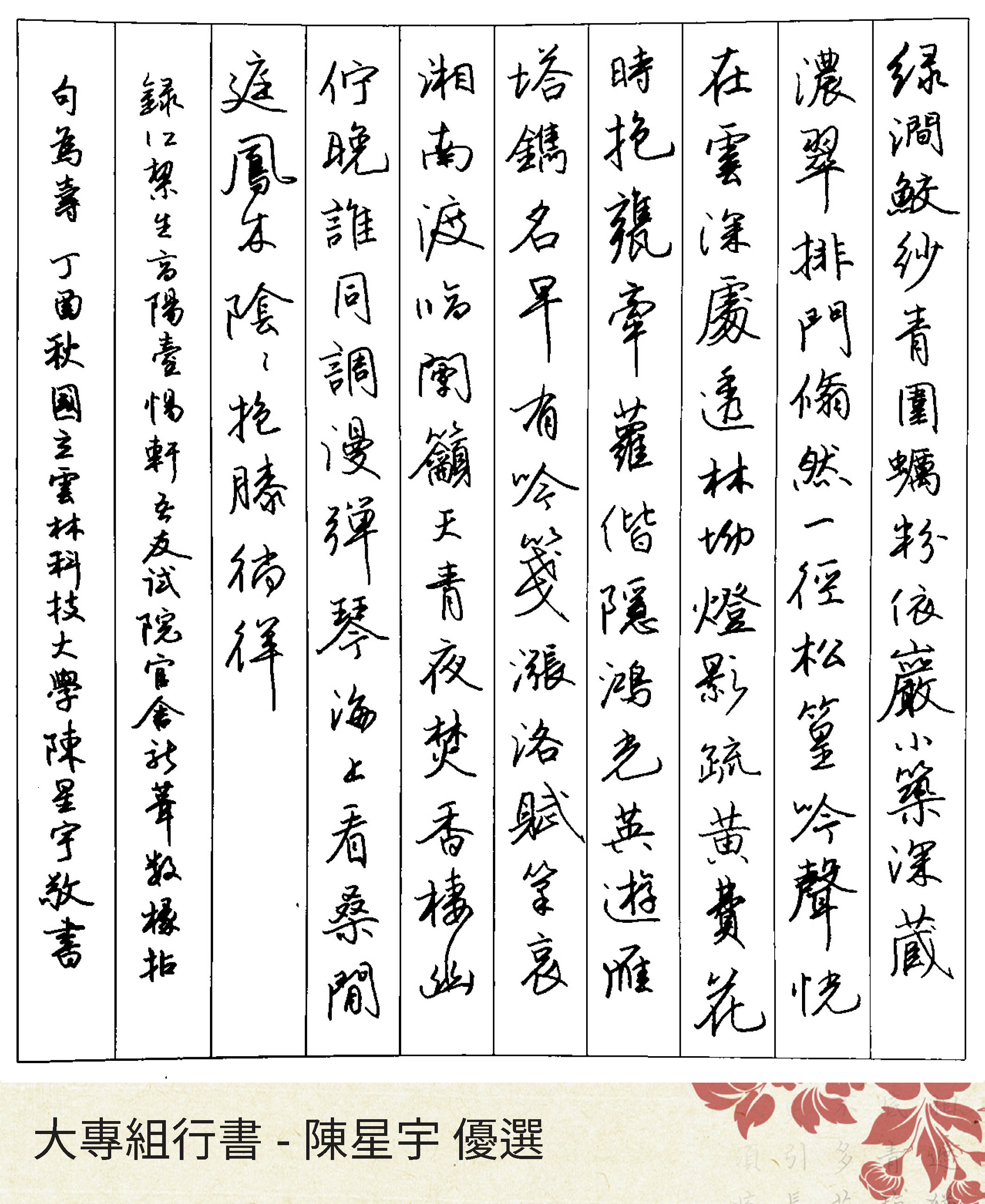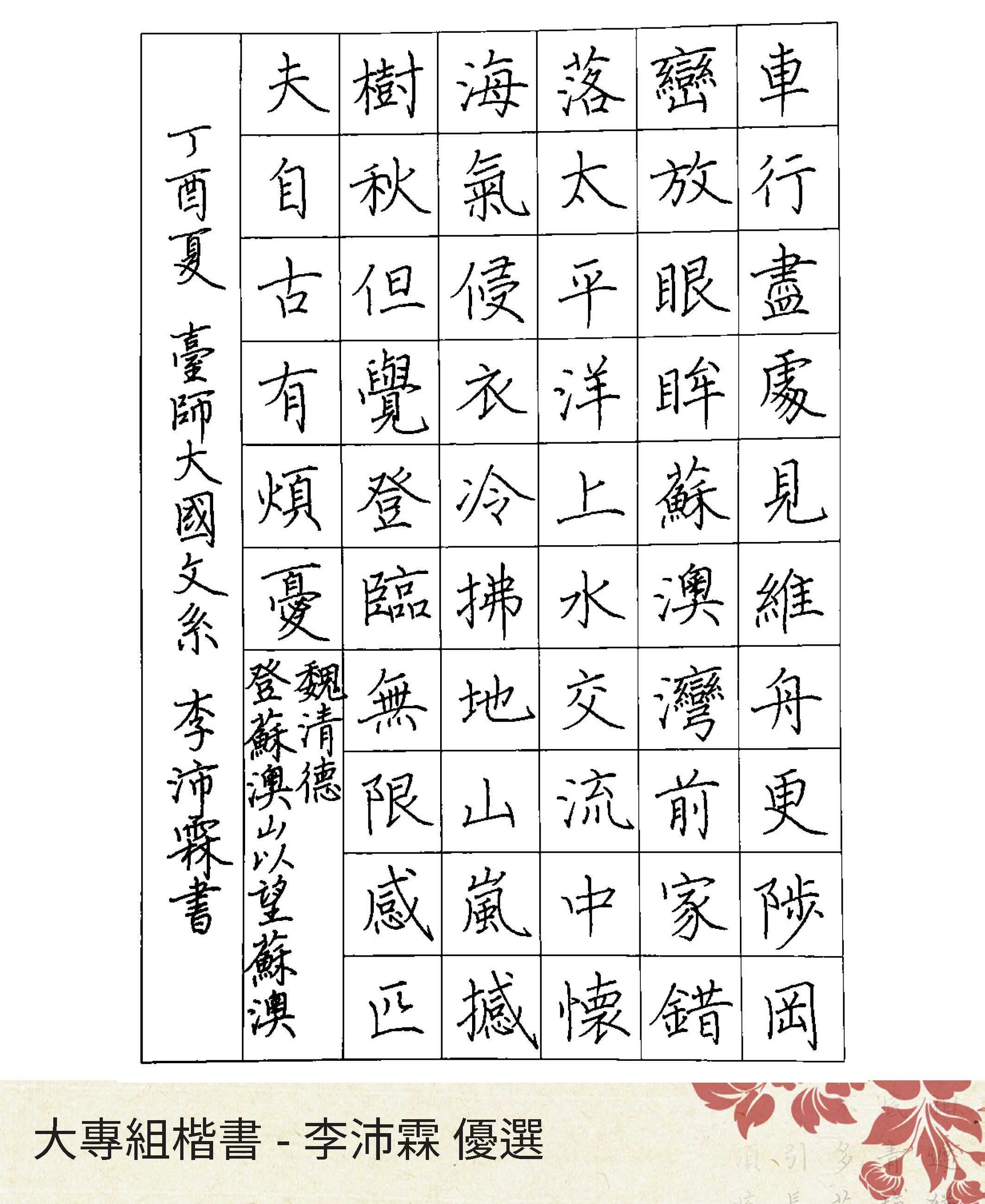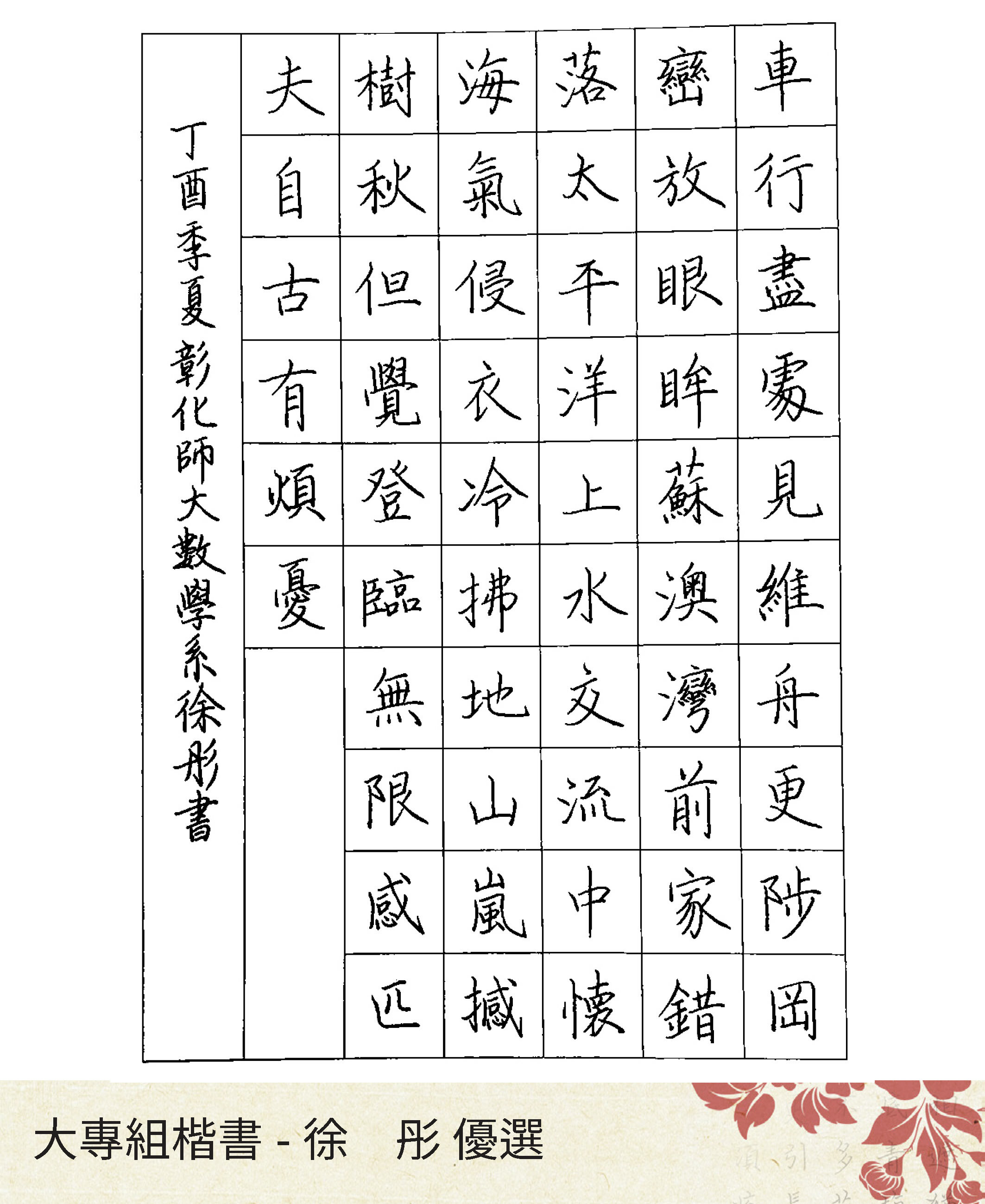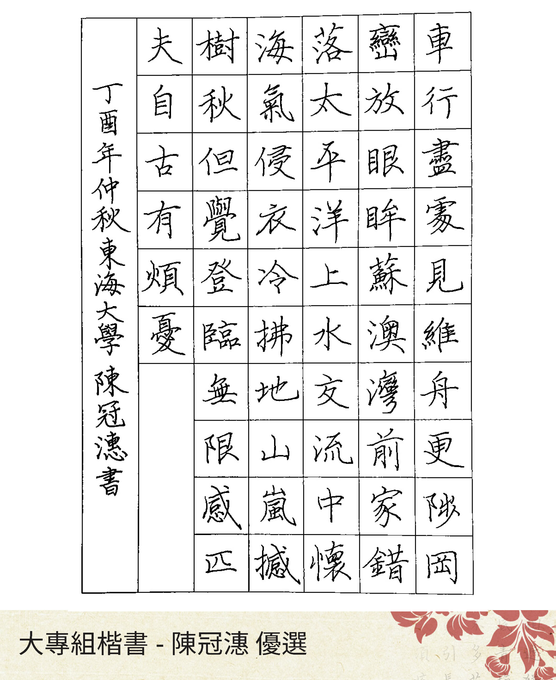 大專組楷書