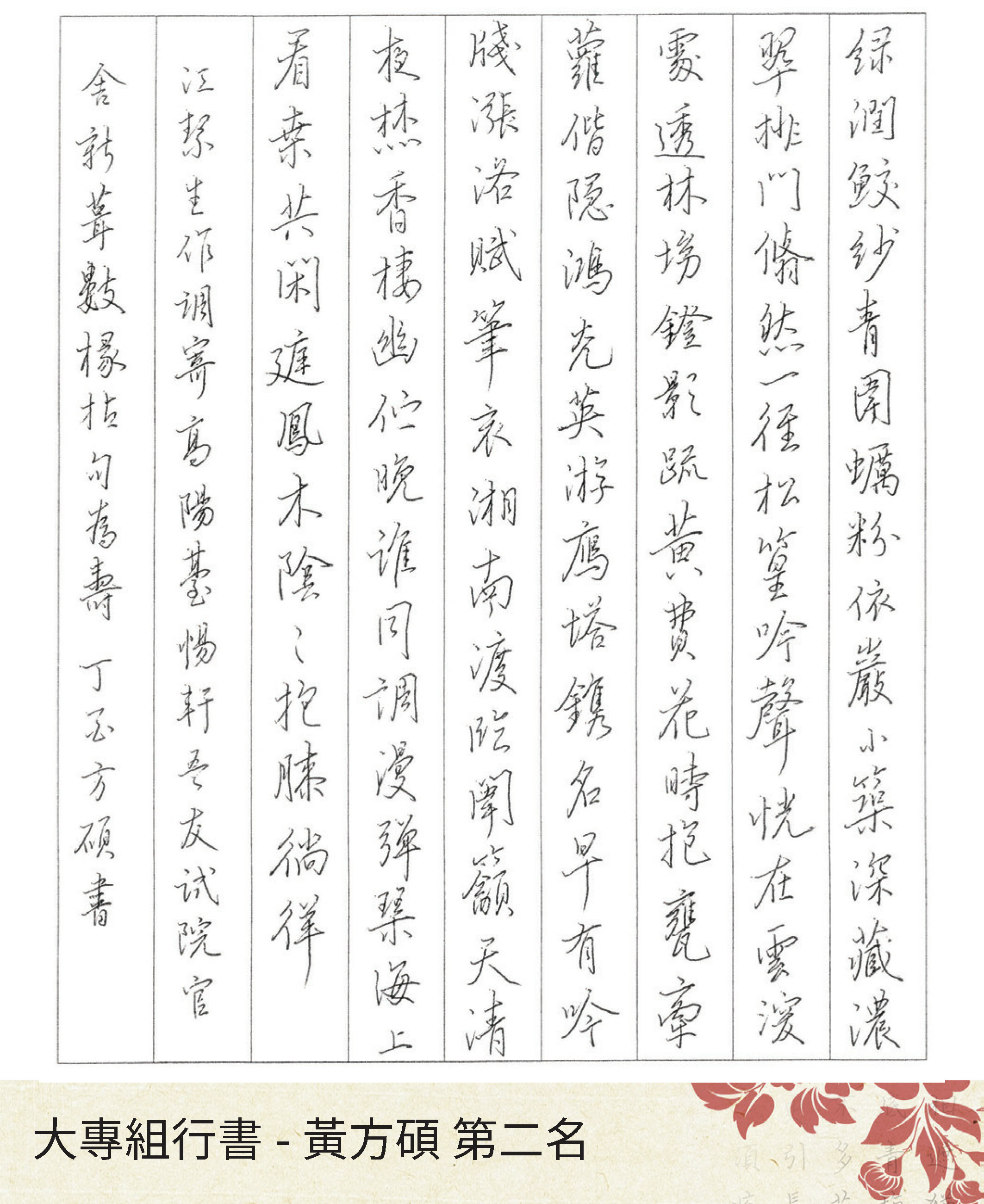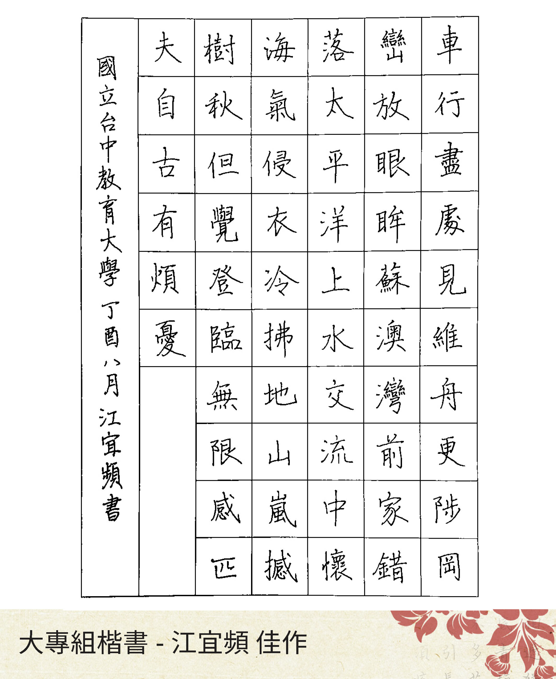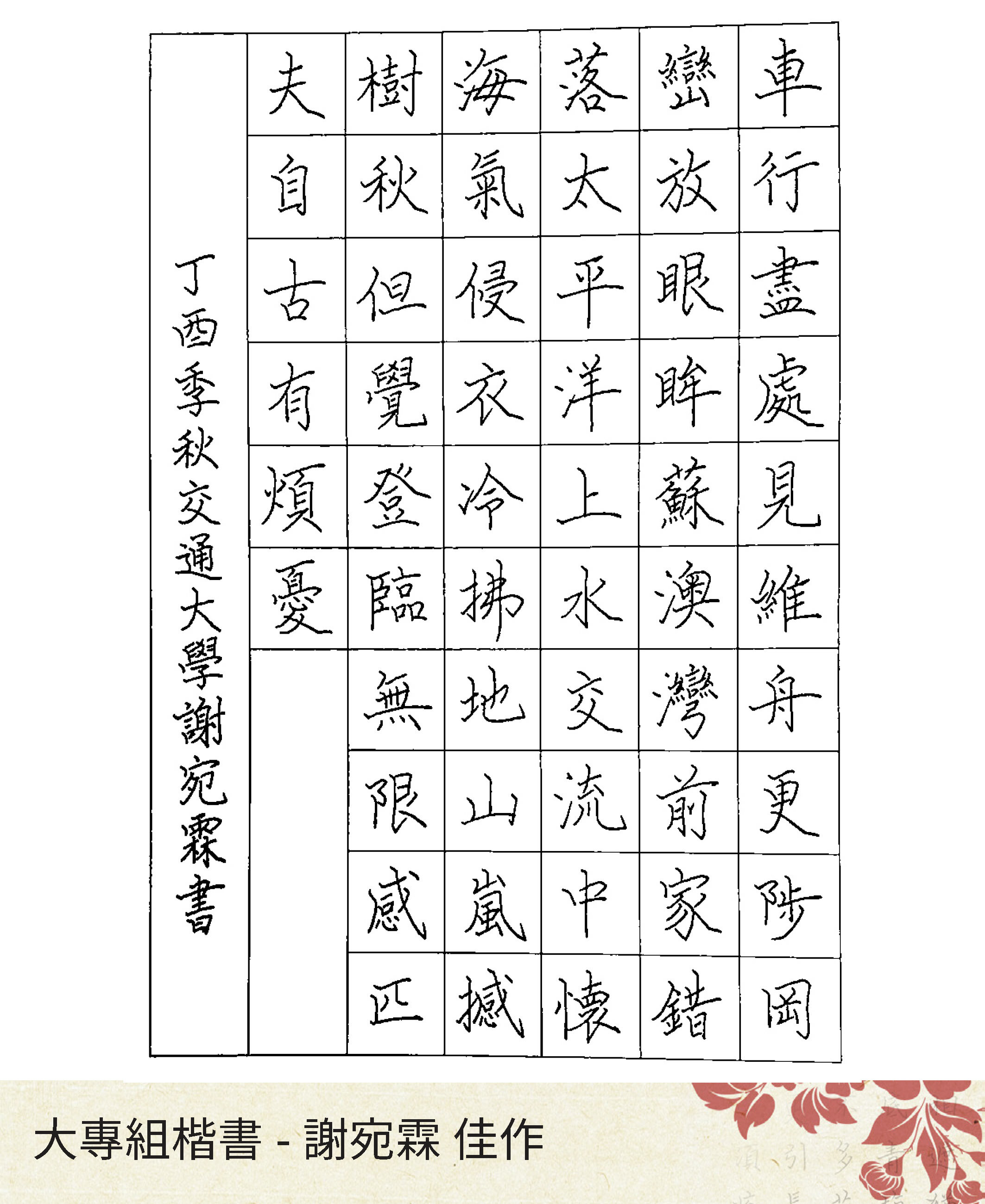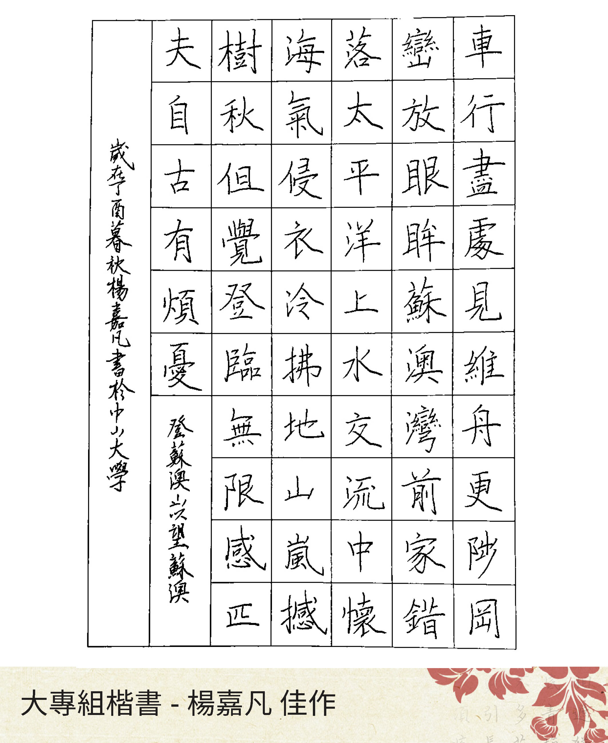 大專組楷書