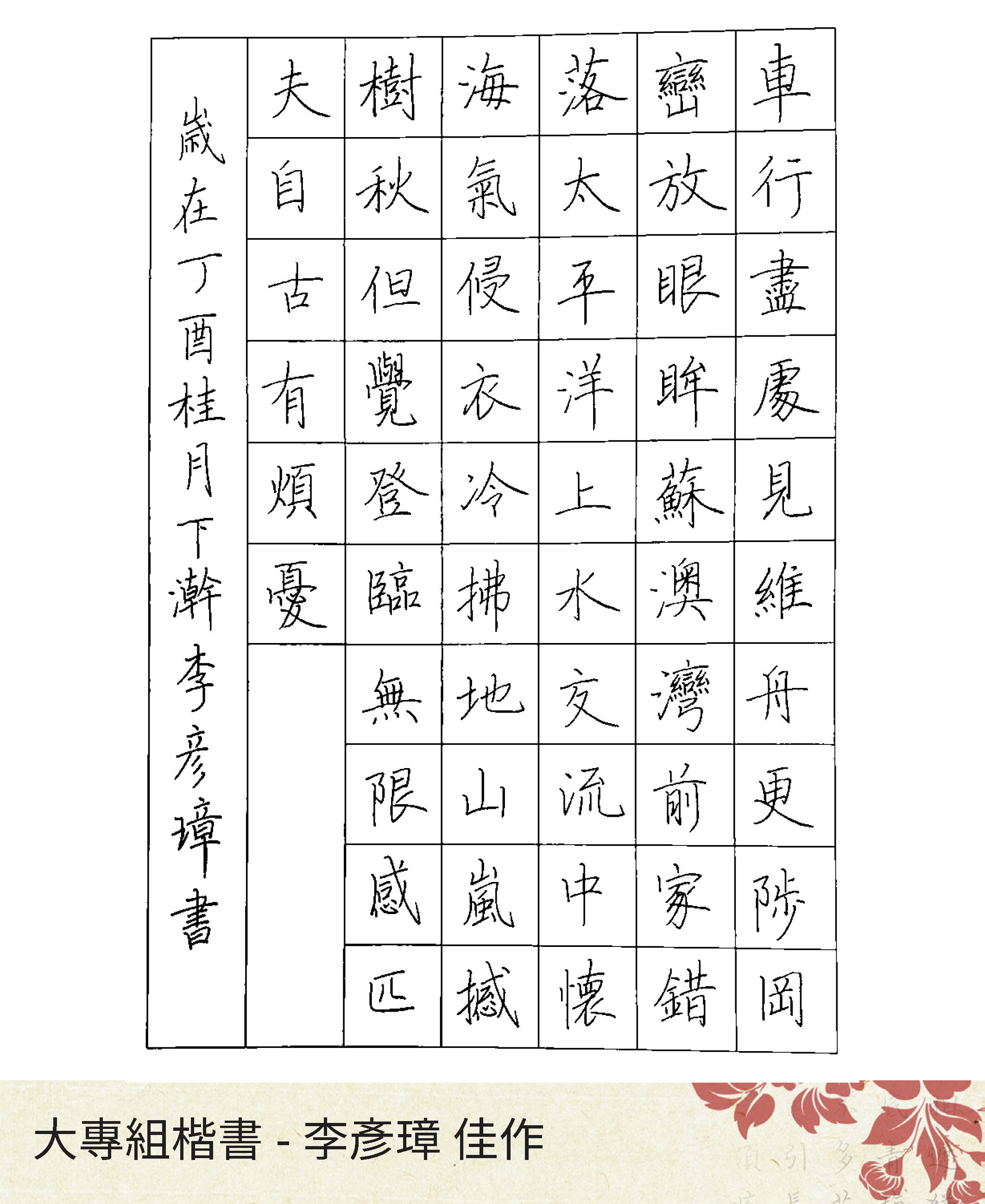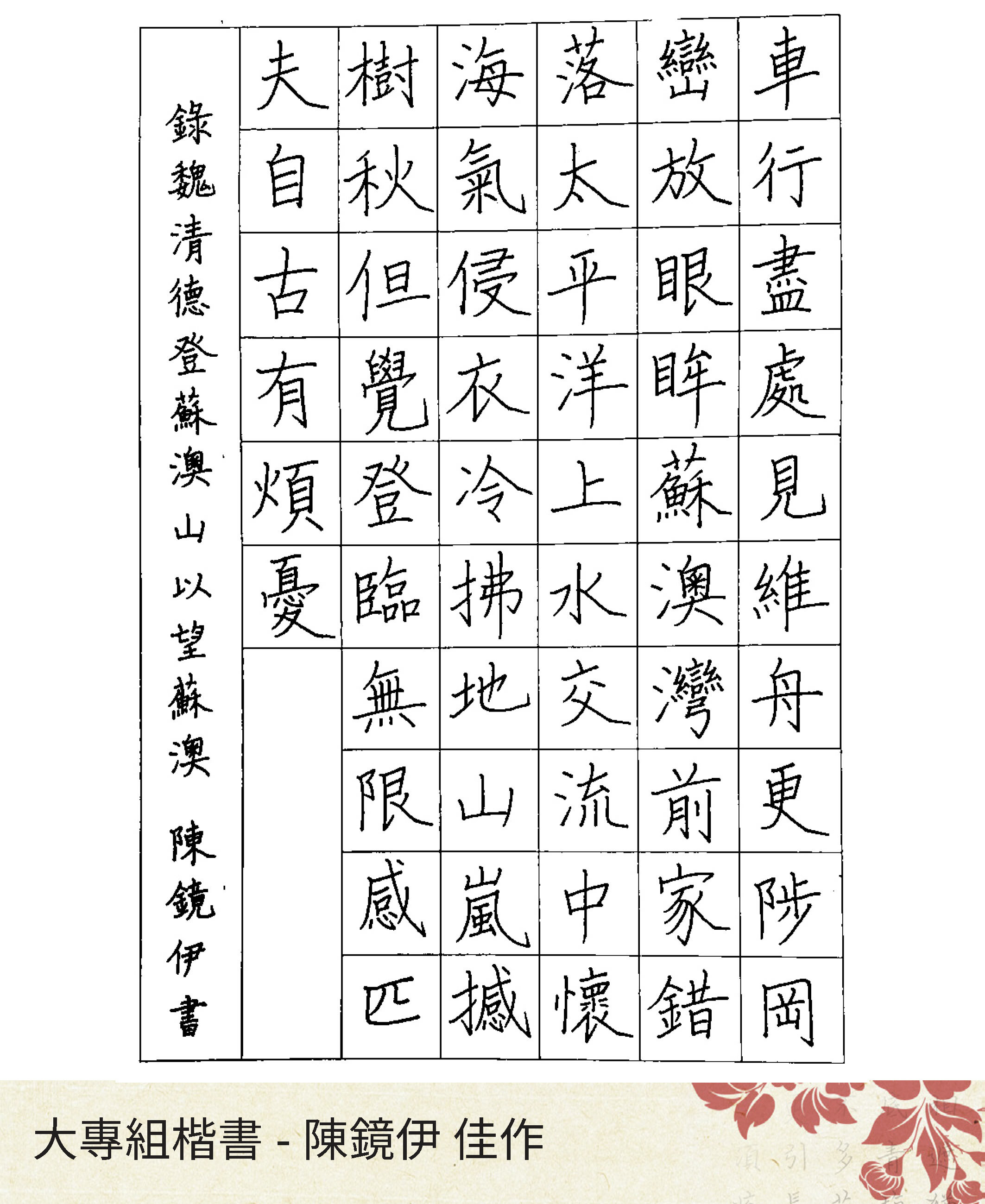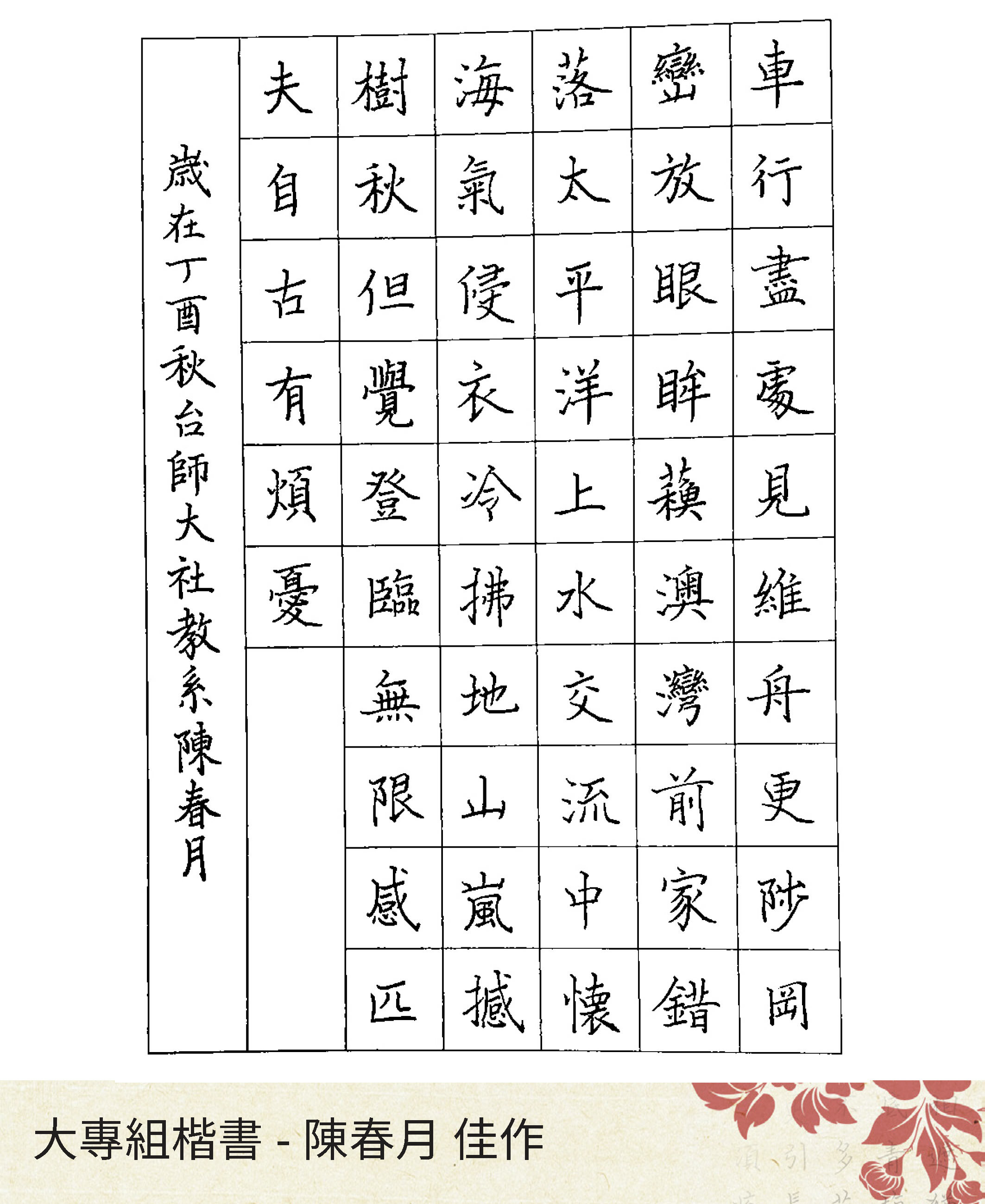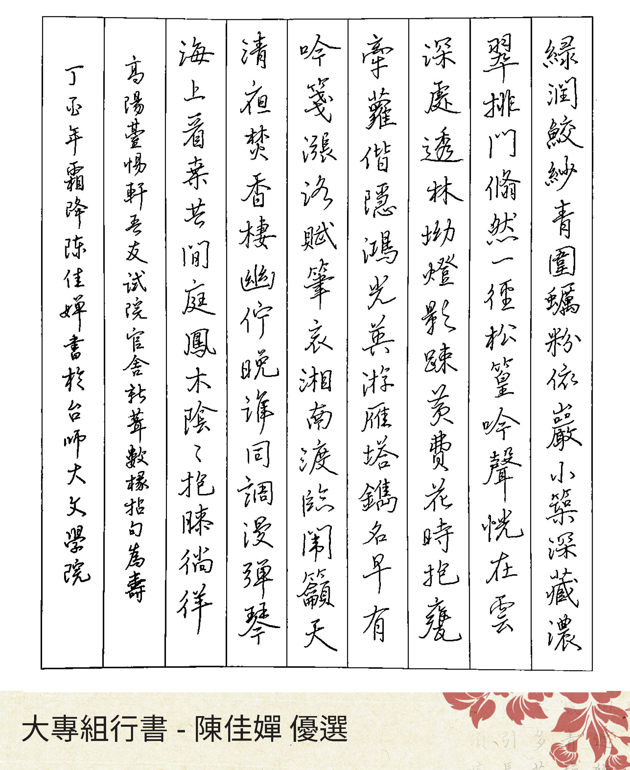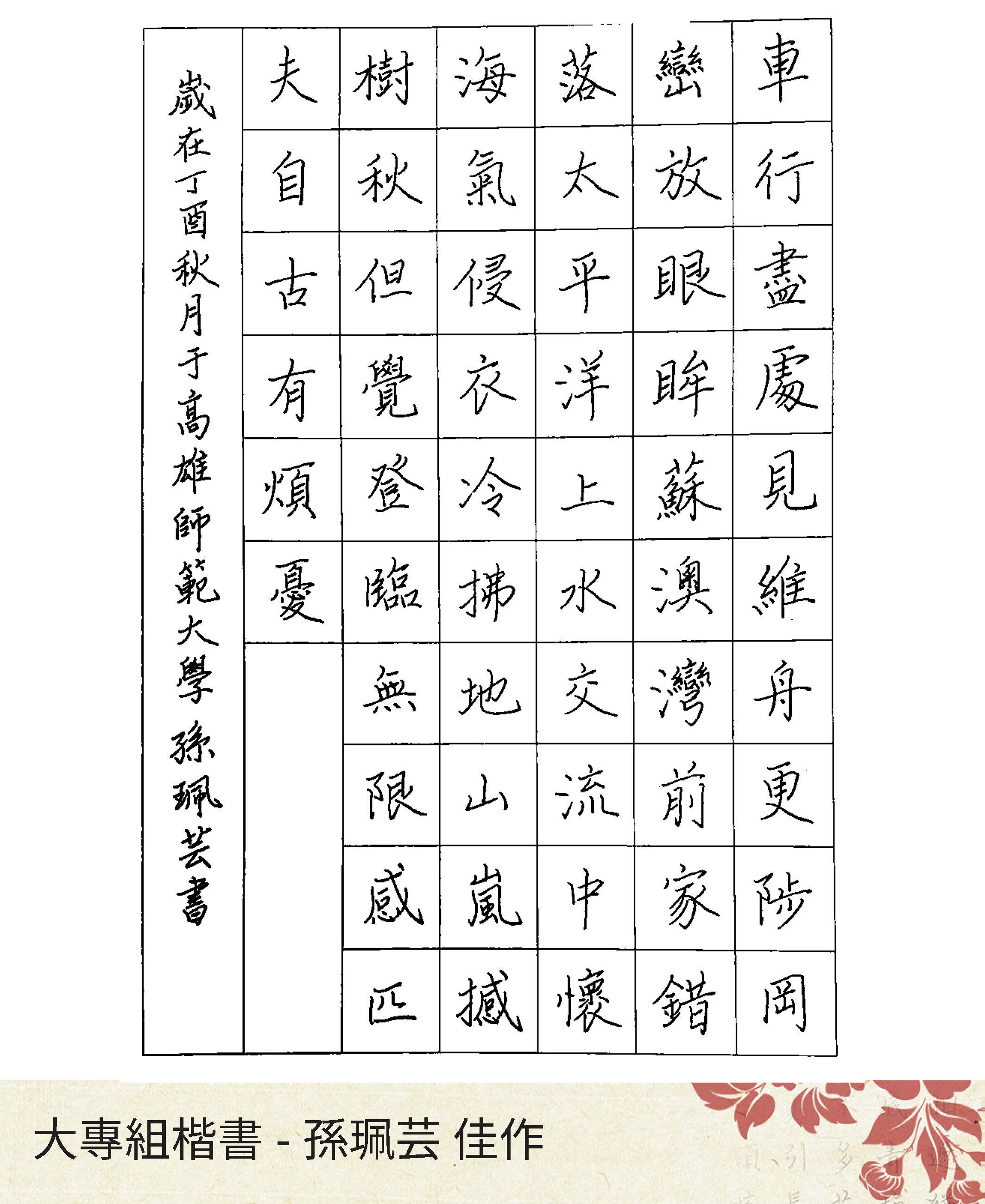 大專組楷書