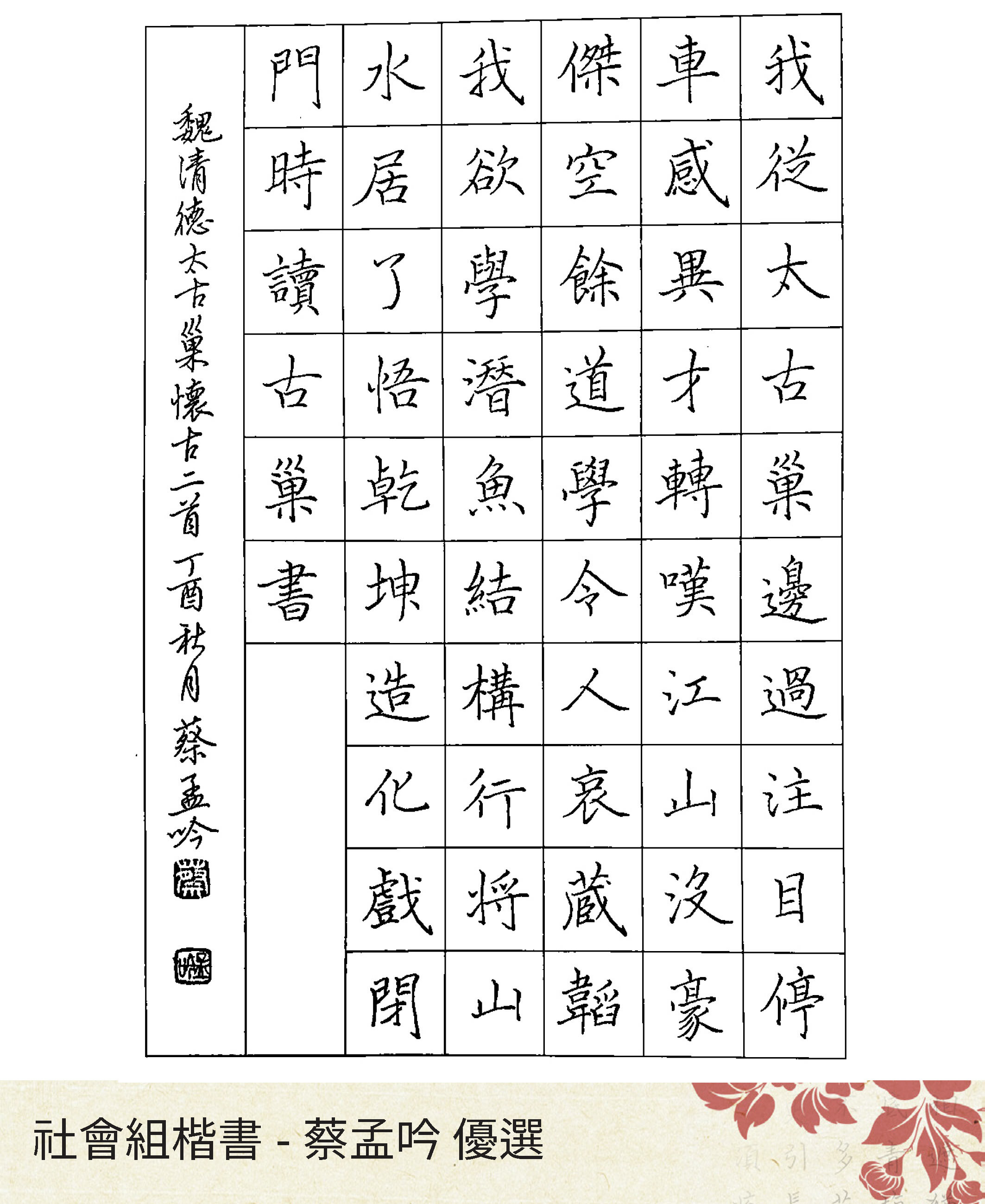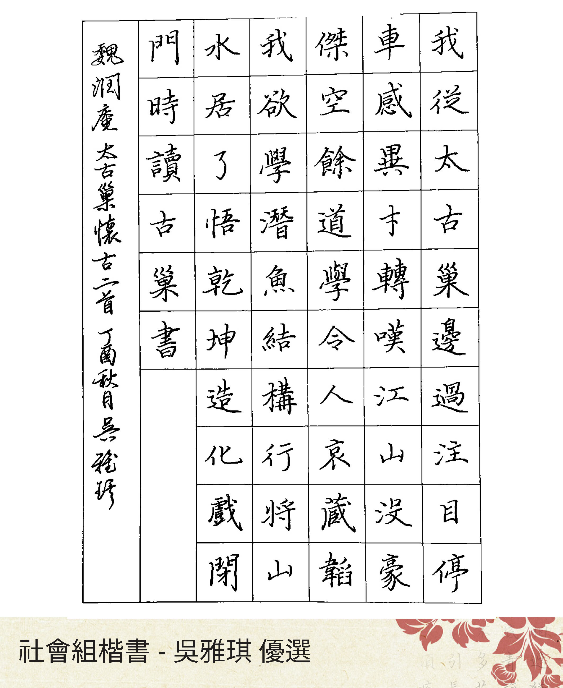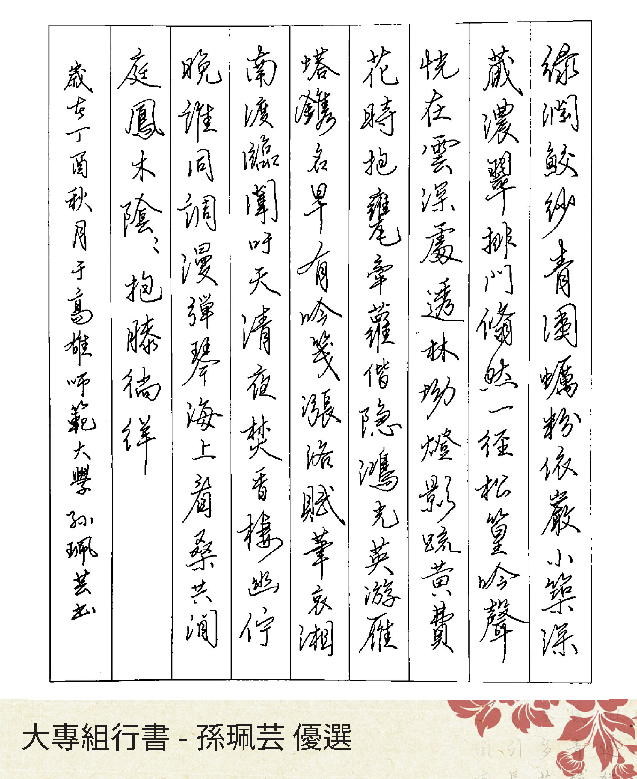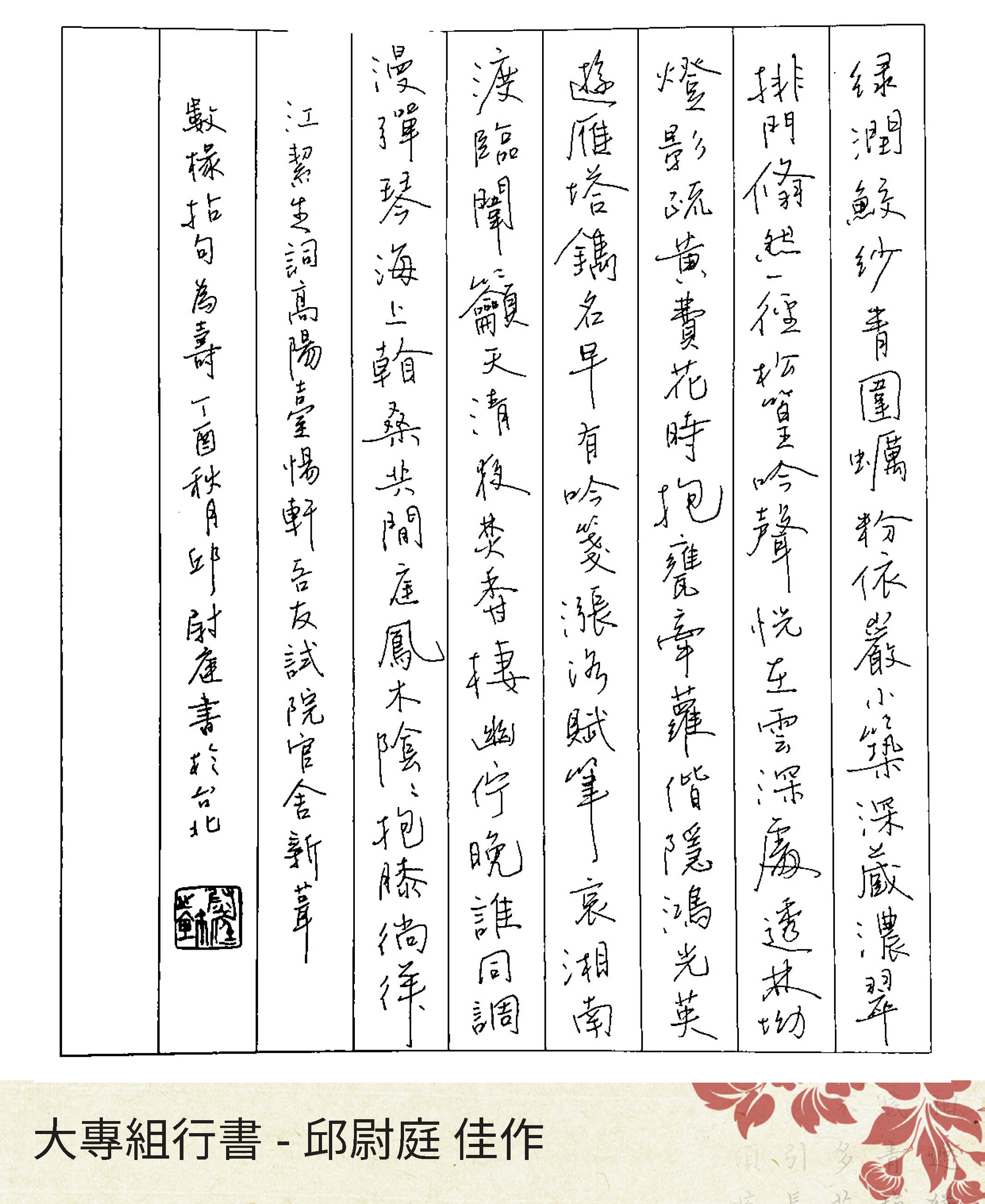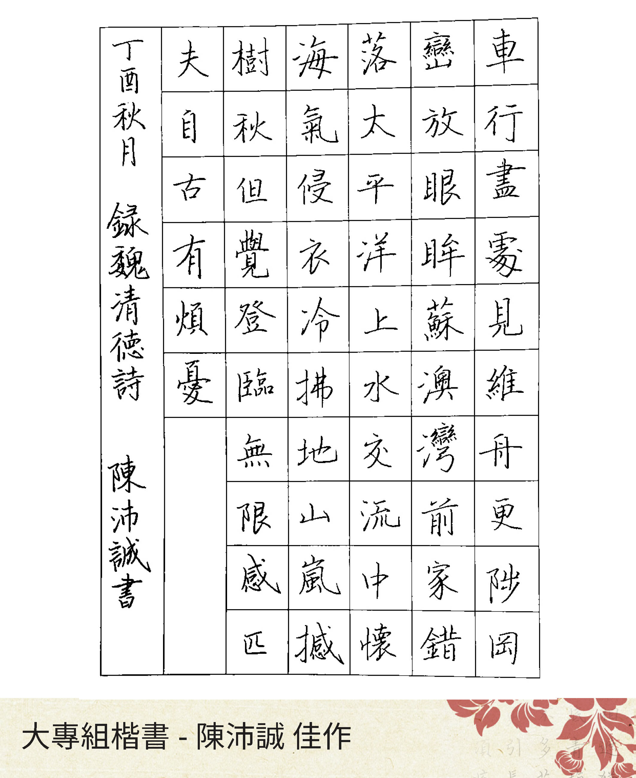 大專組楷書