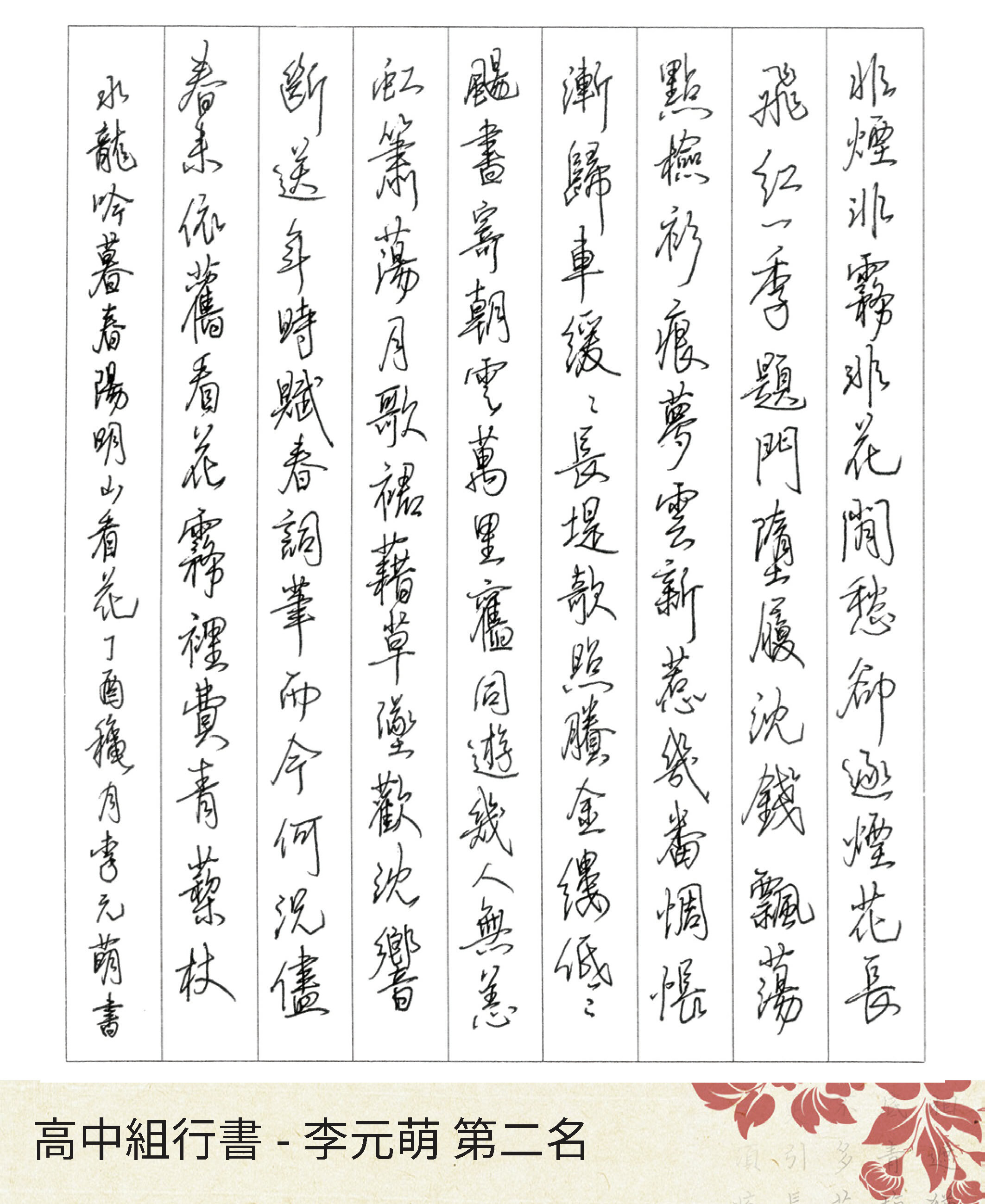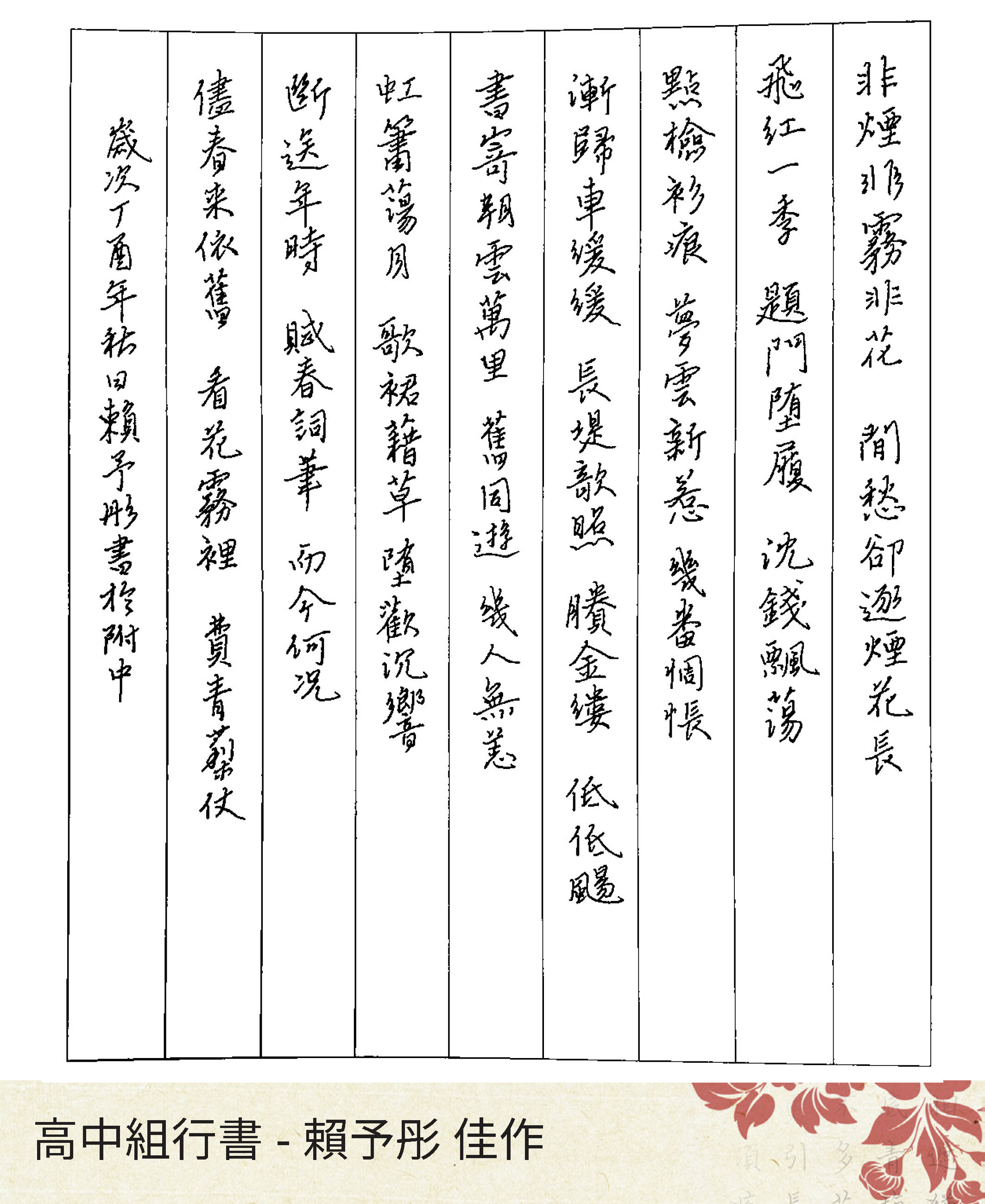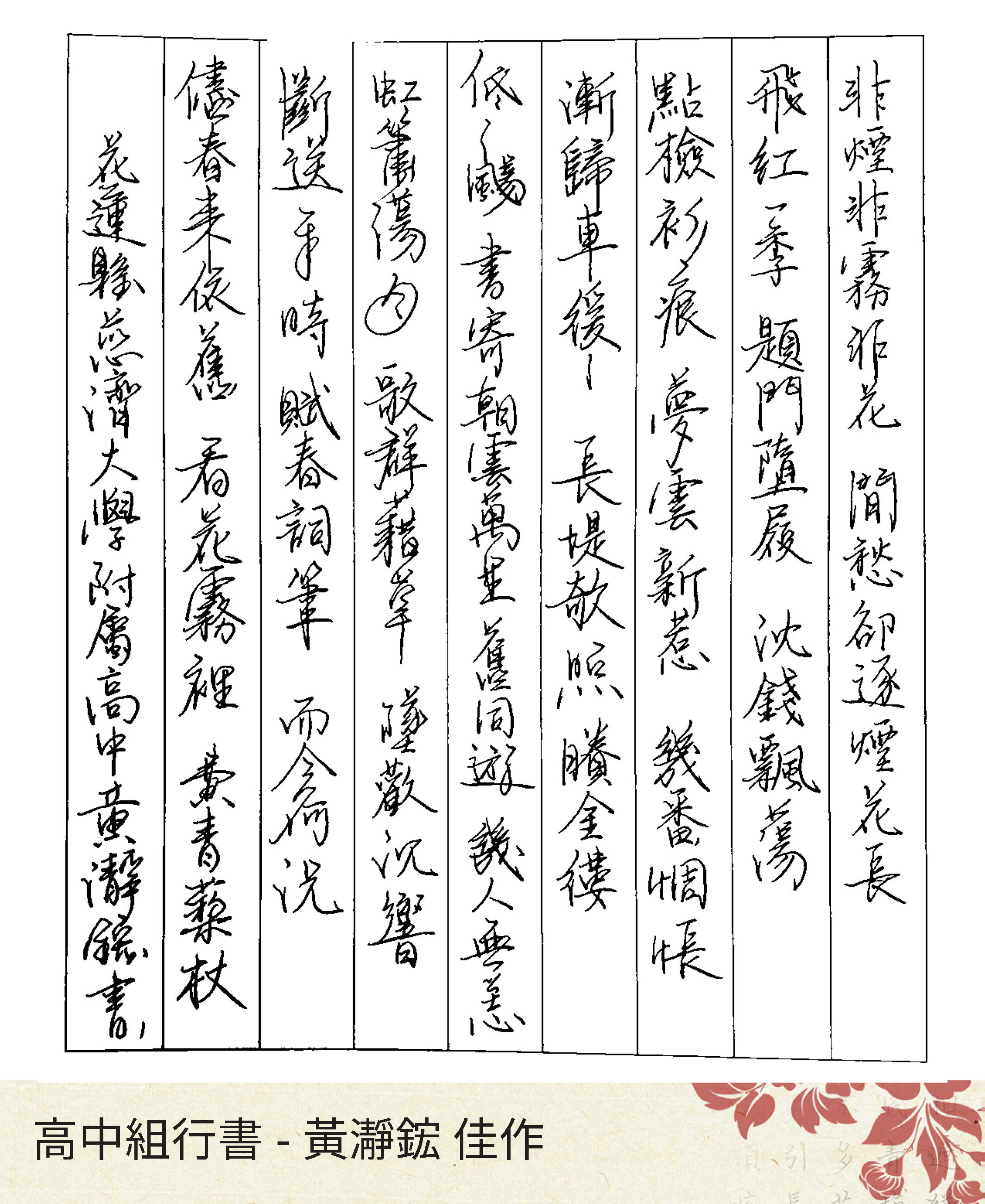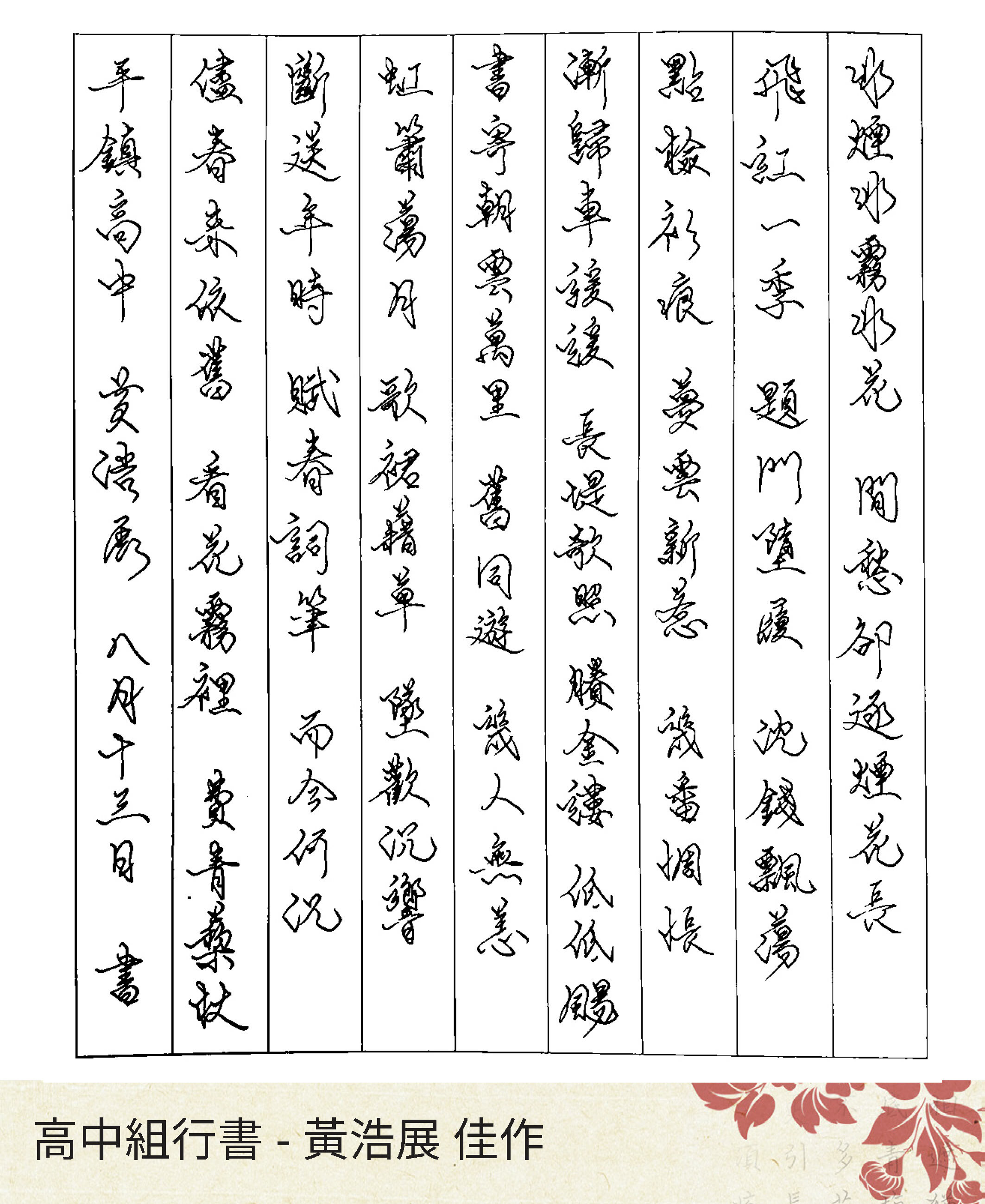 高中組行書