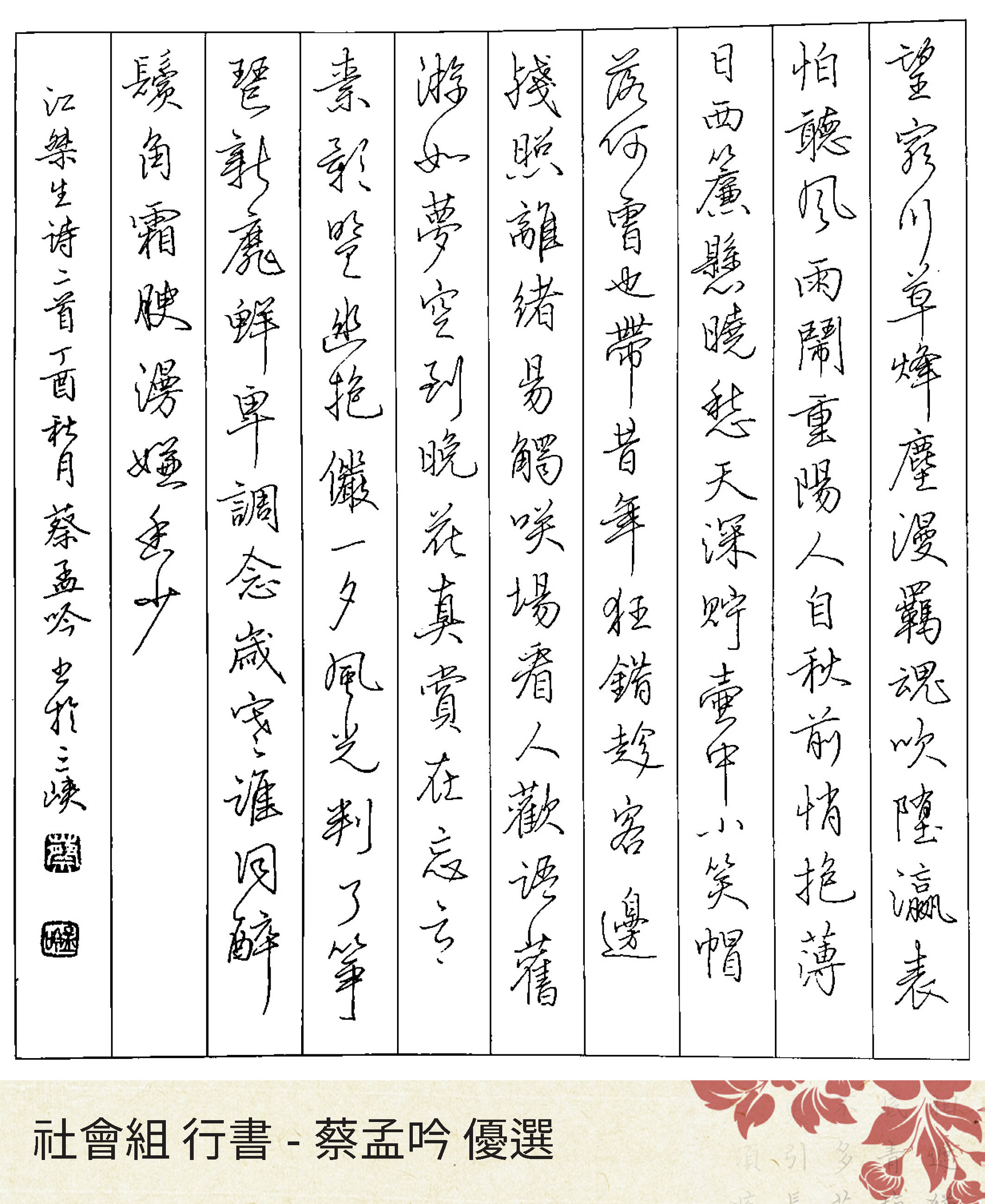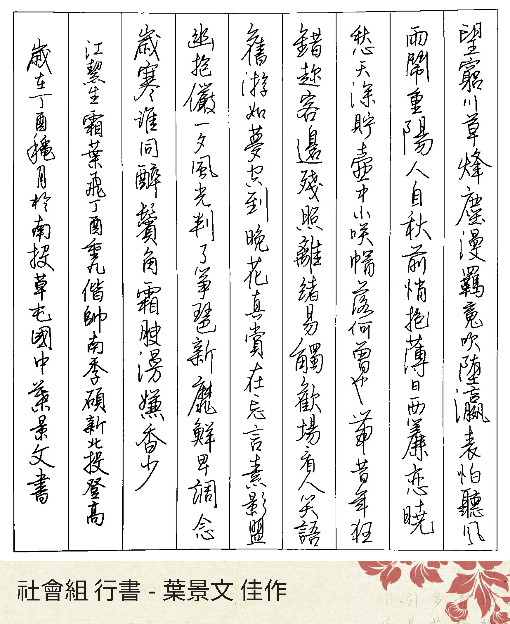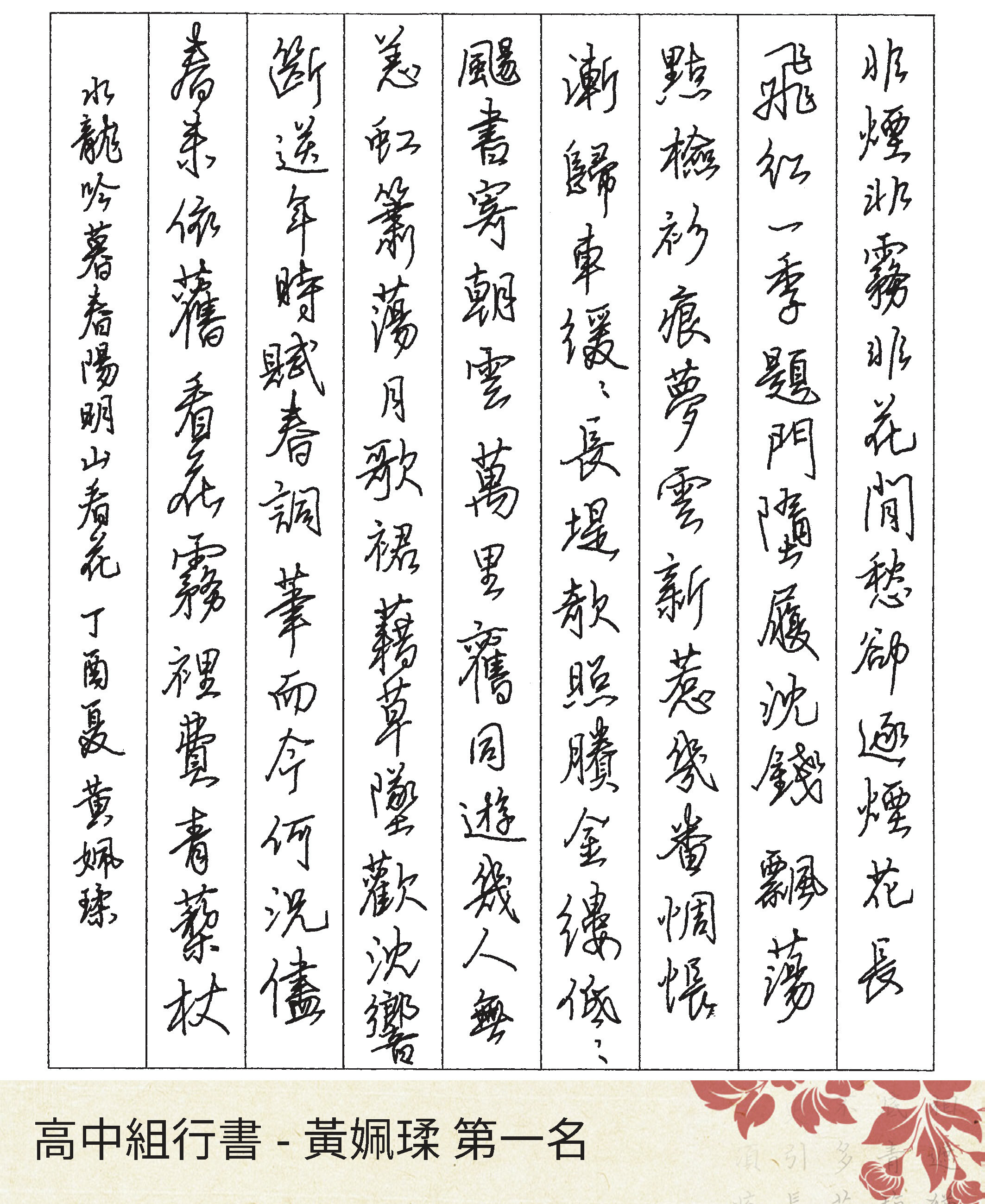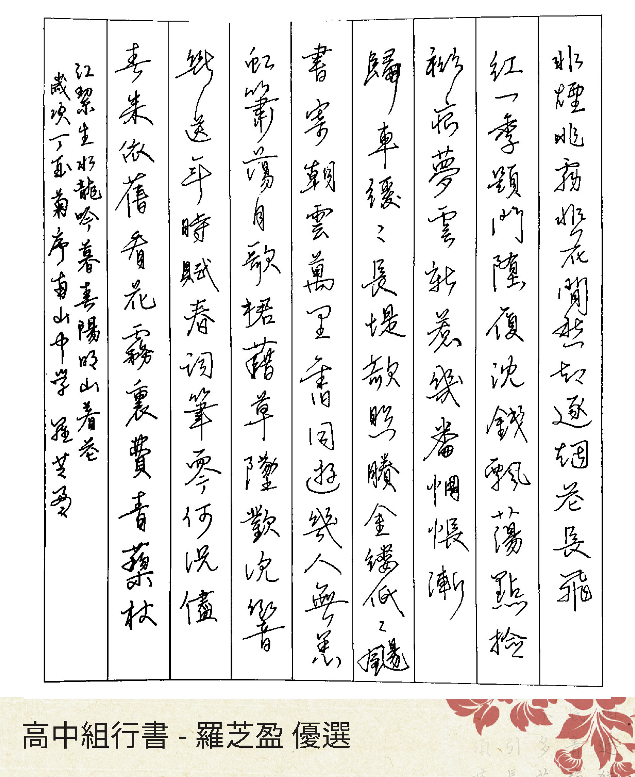 高中組行書