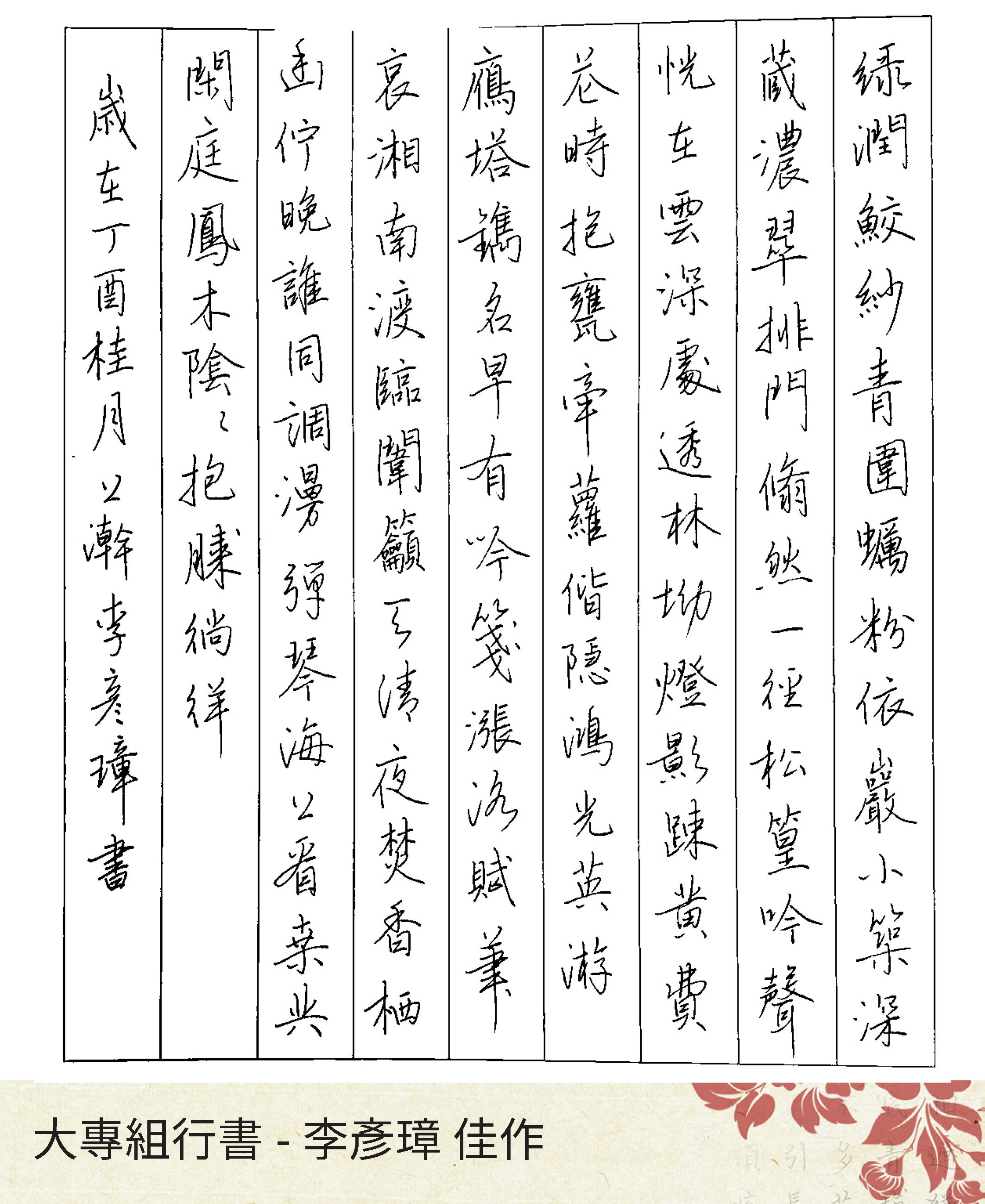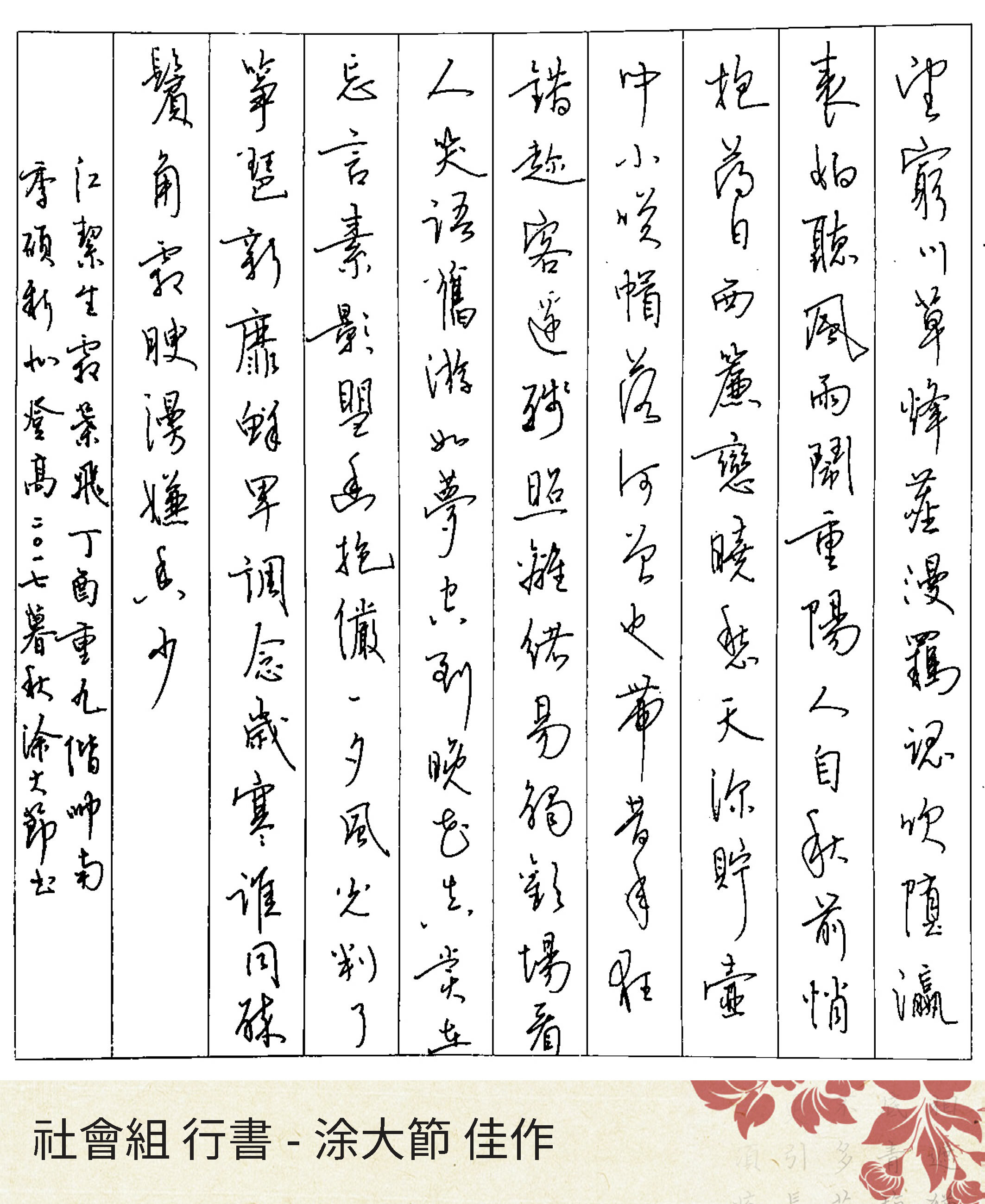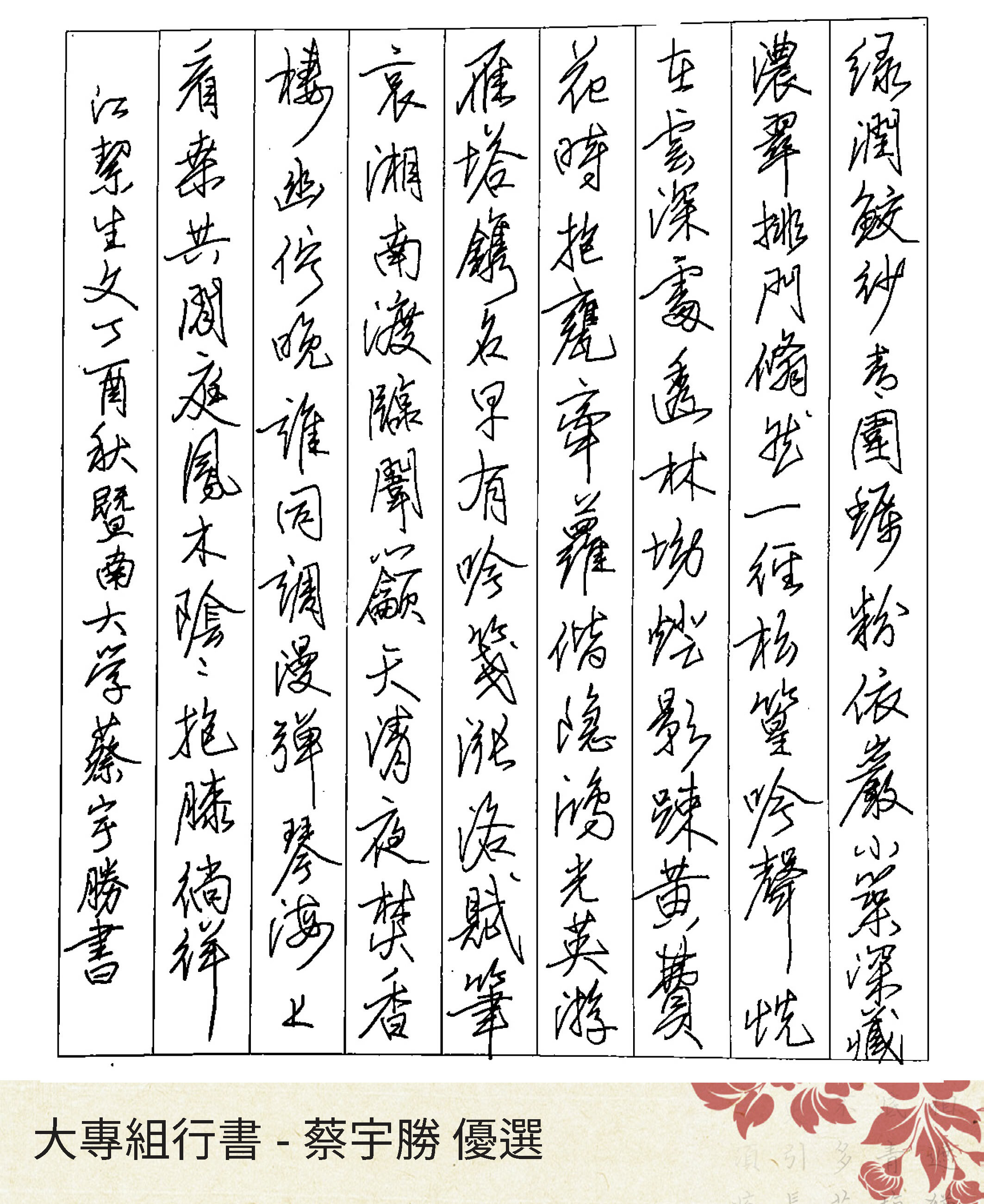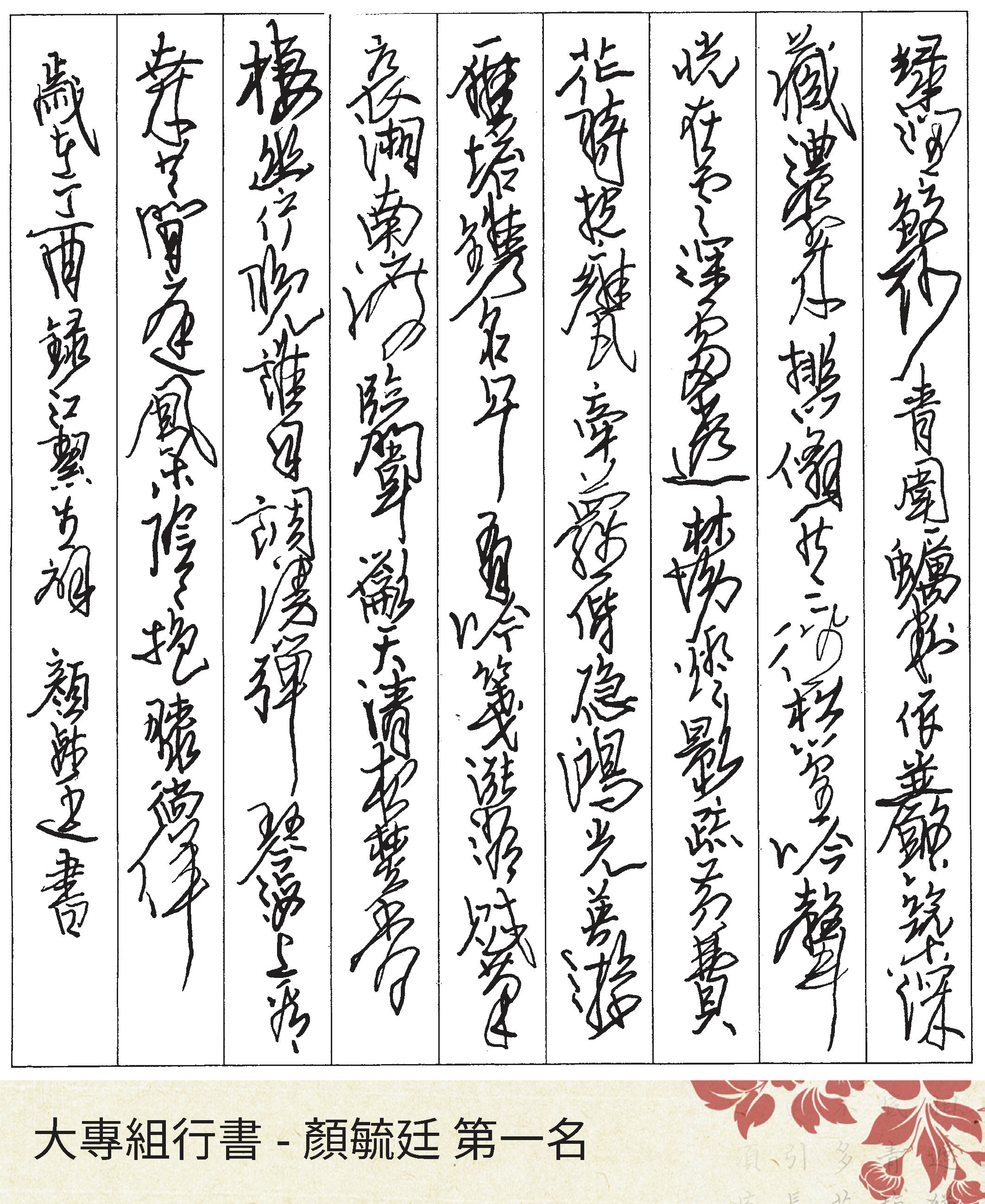 大專組行書