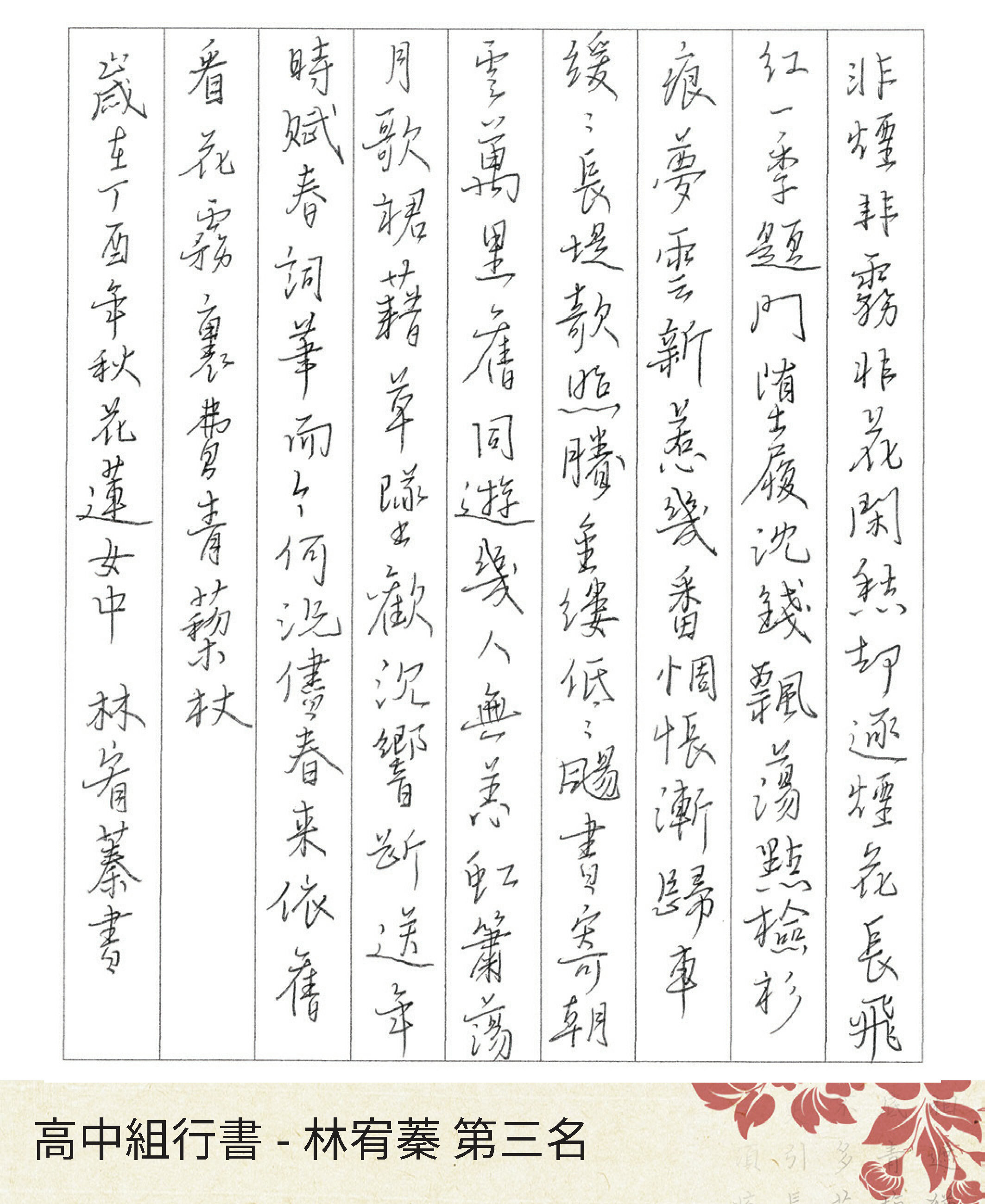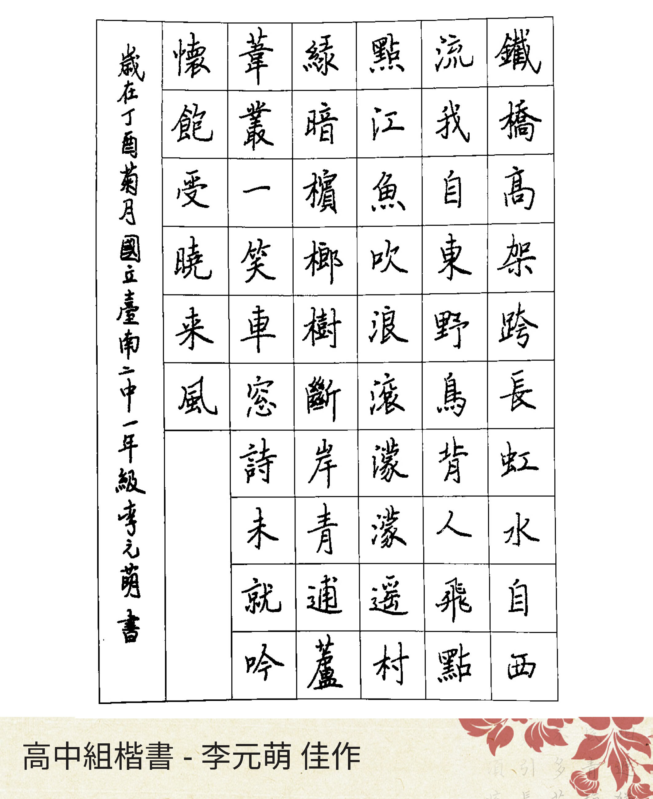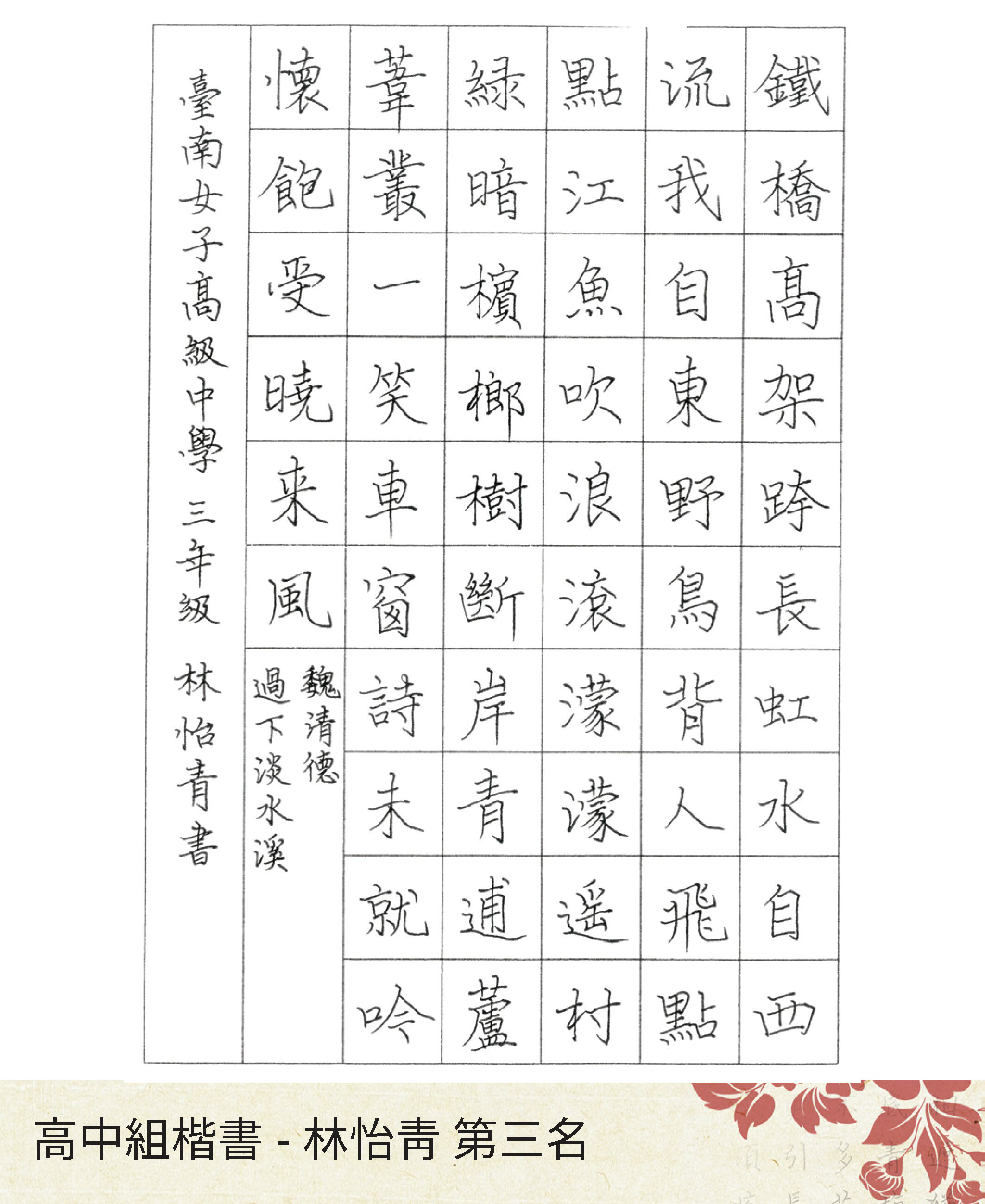 高中組楷書