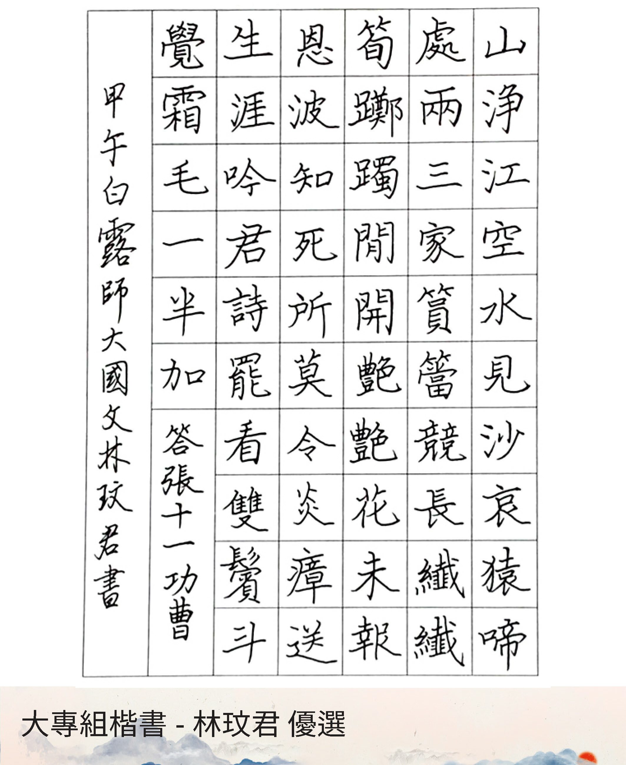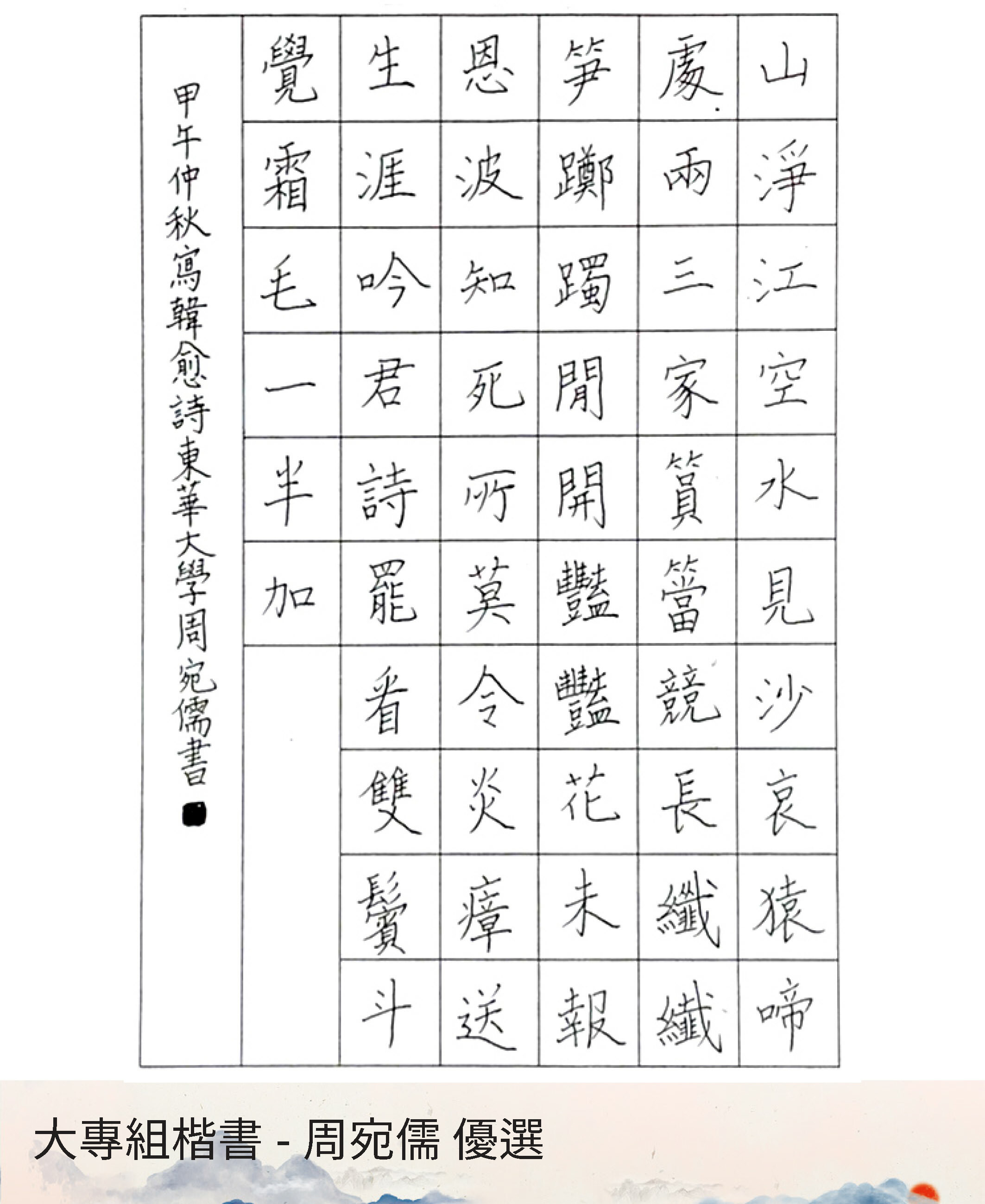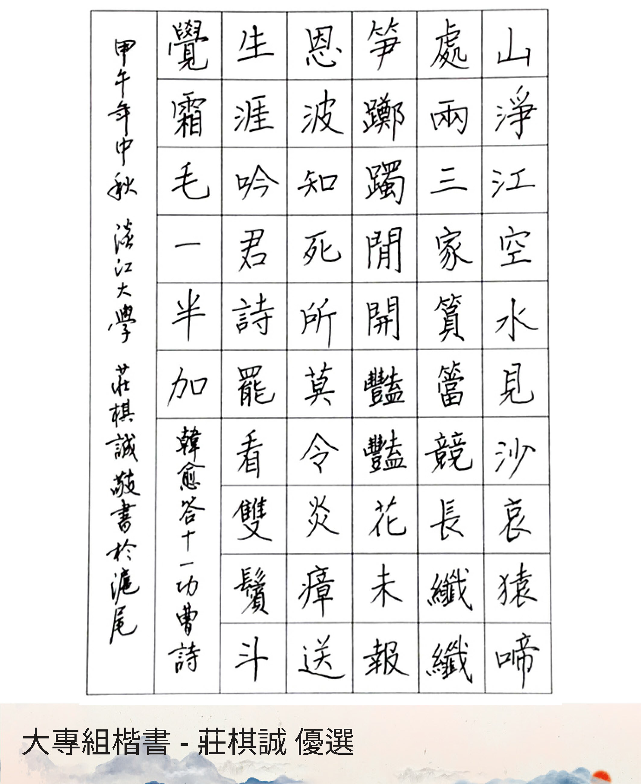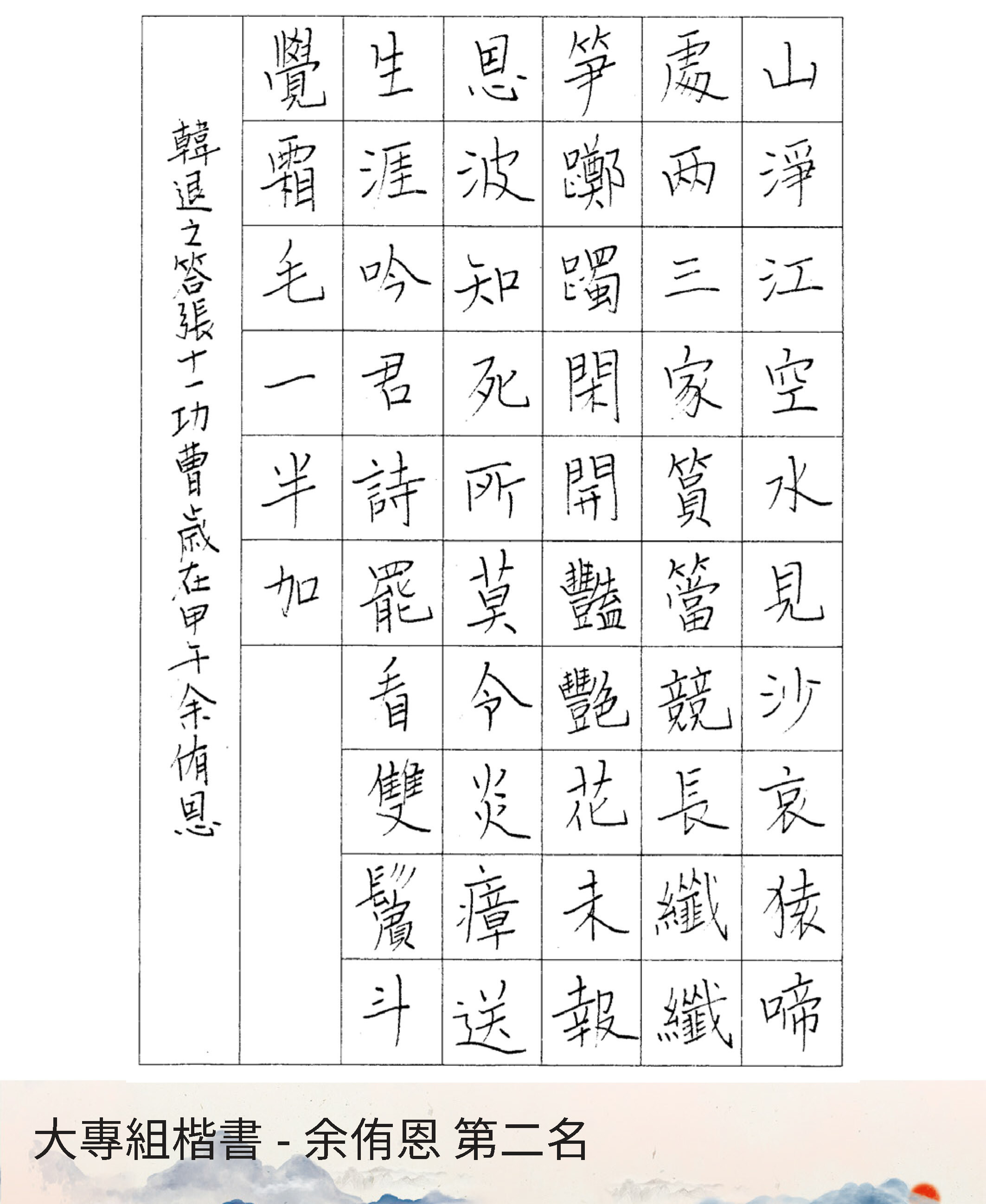 大專組楷書