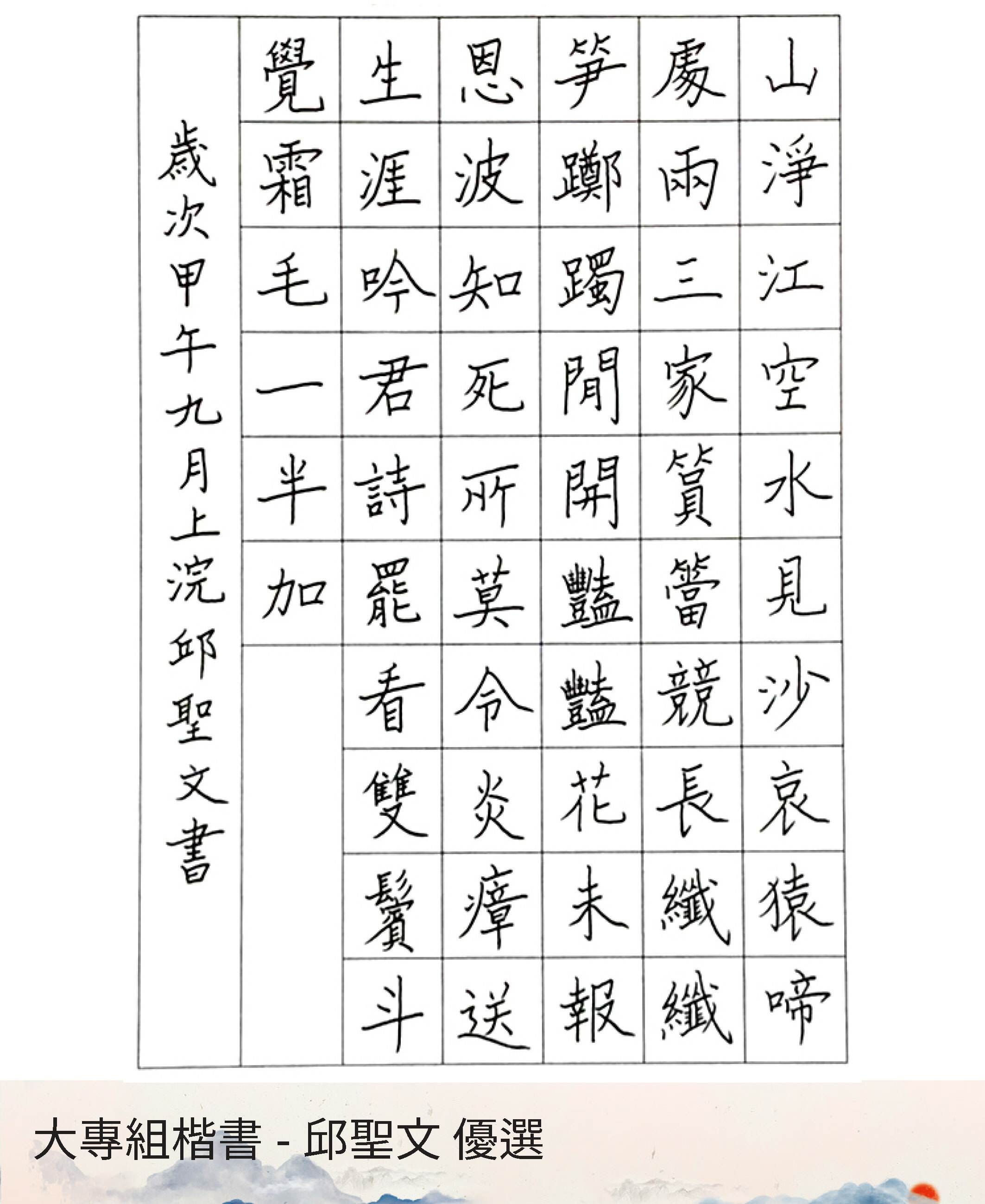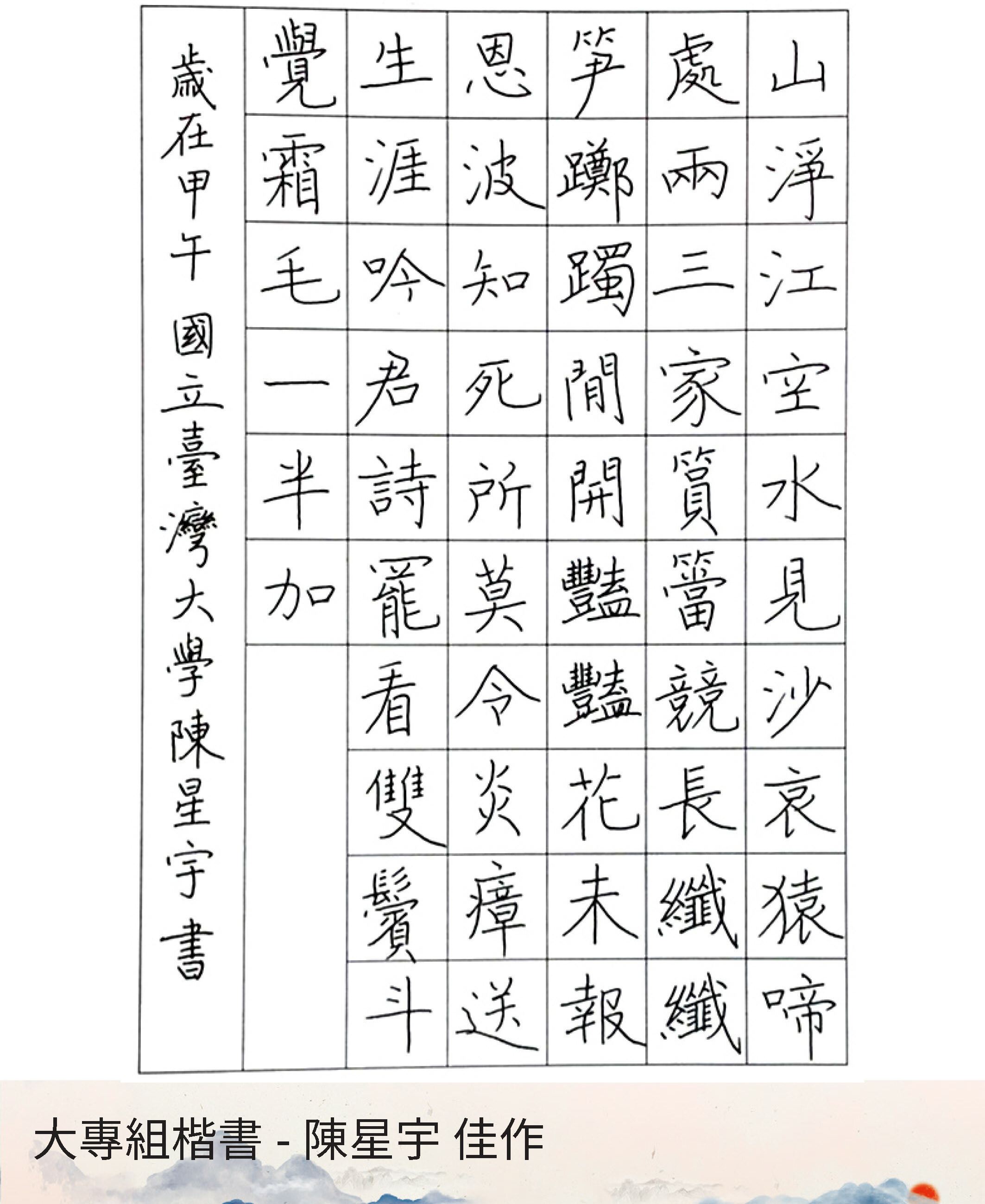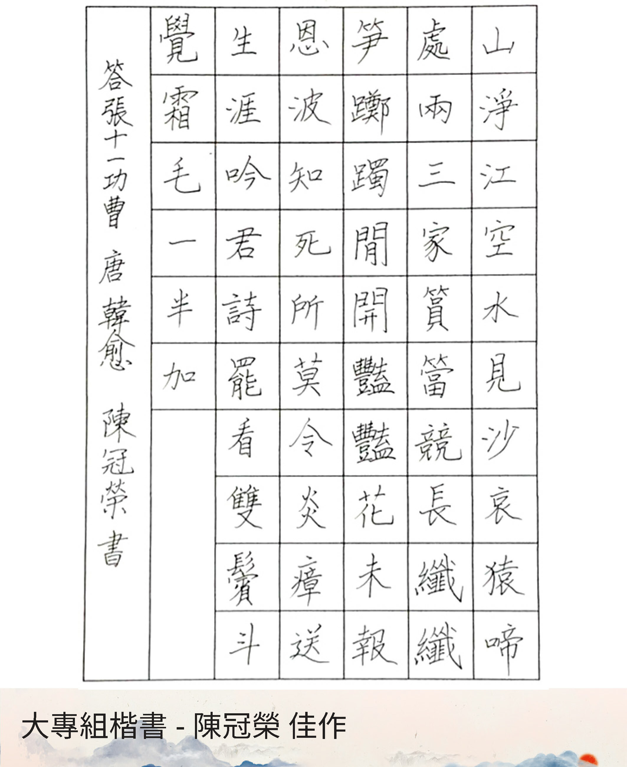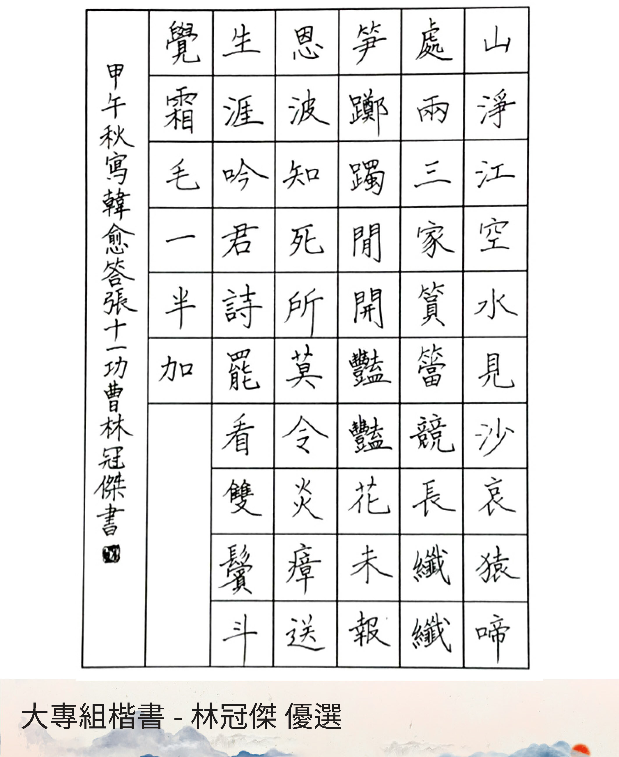 大專組楷書
