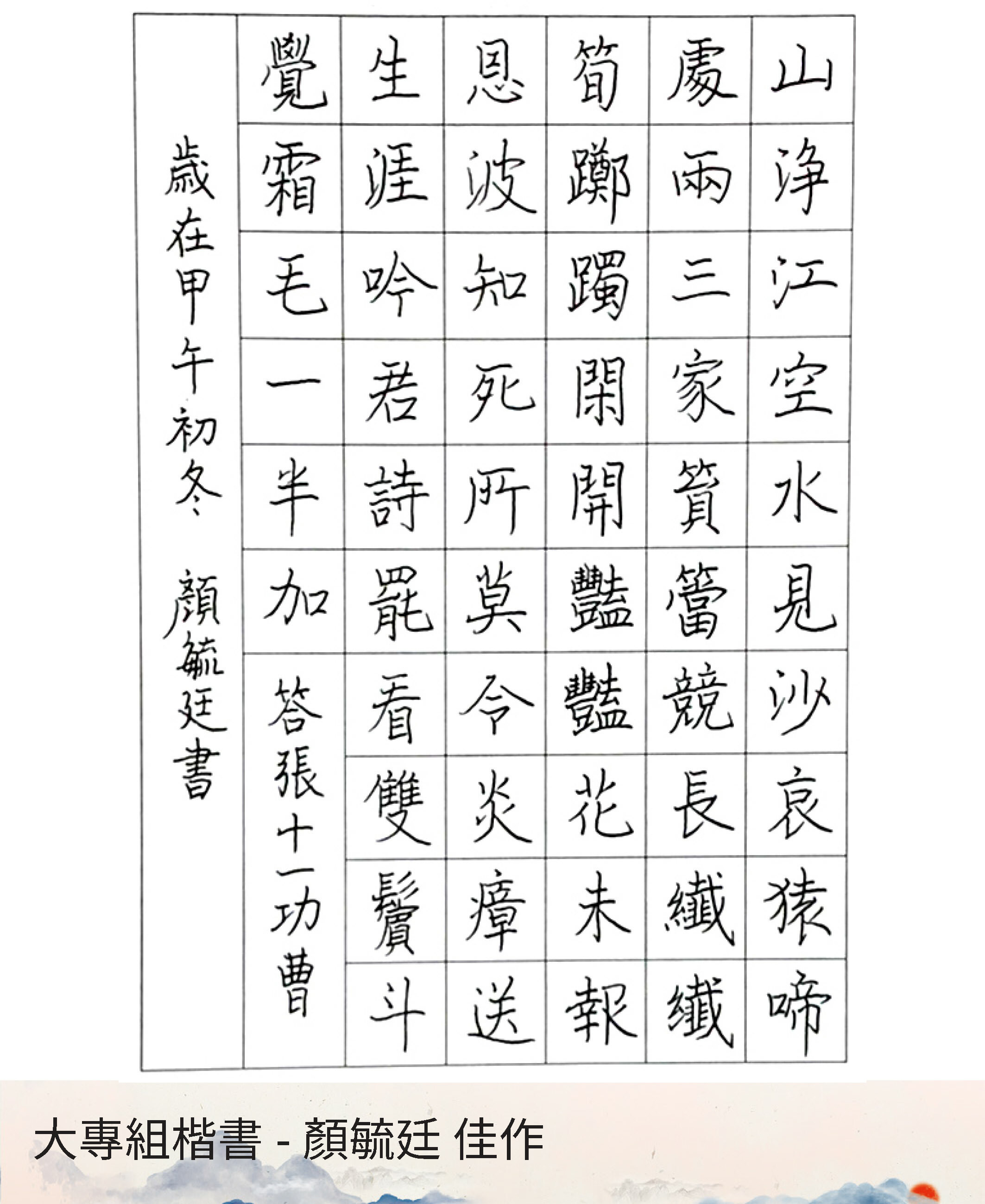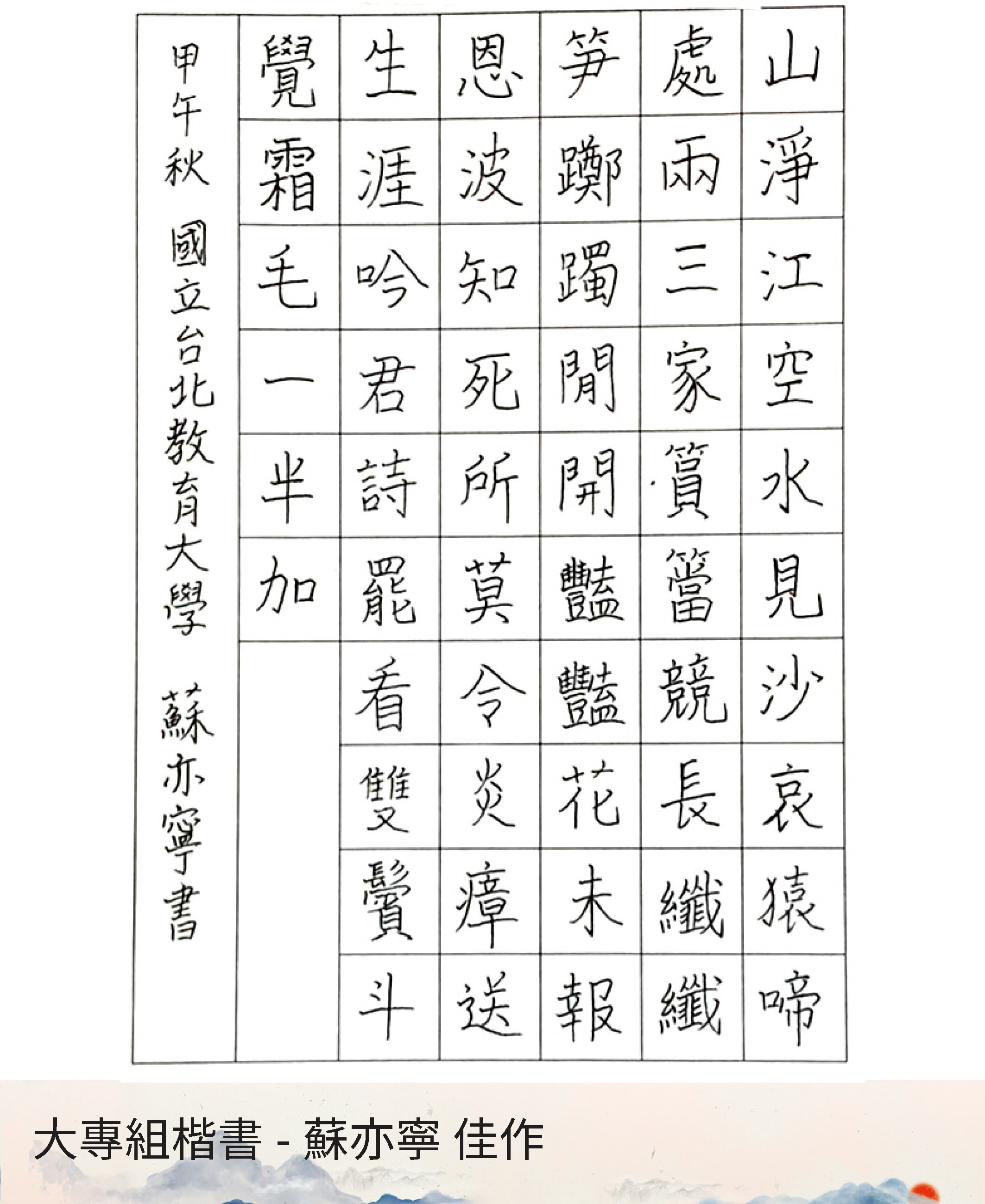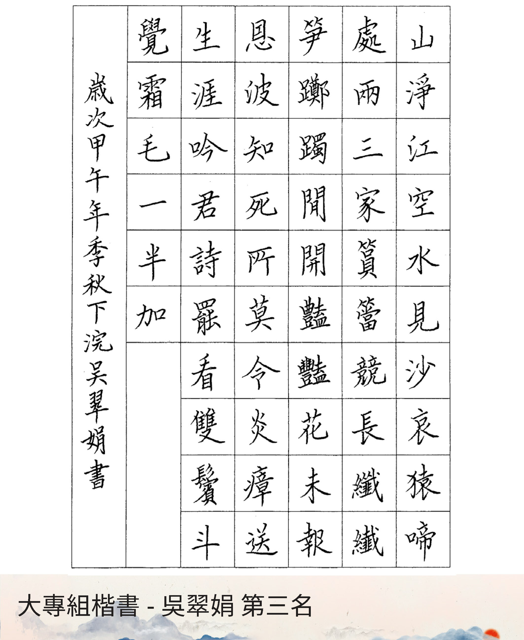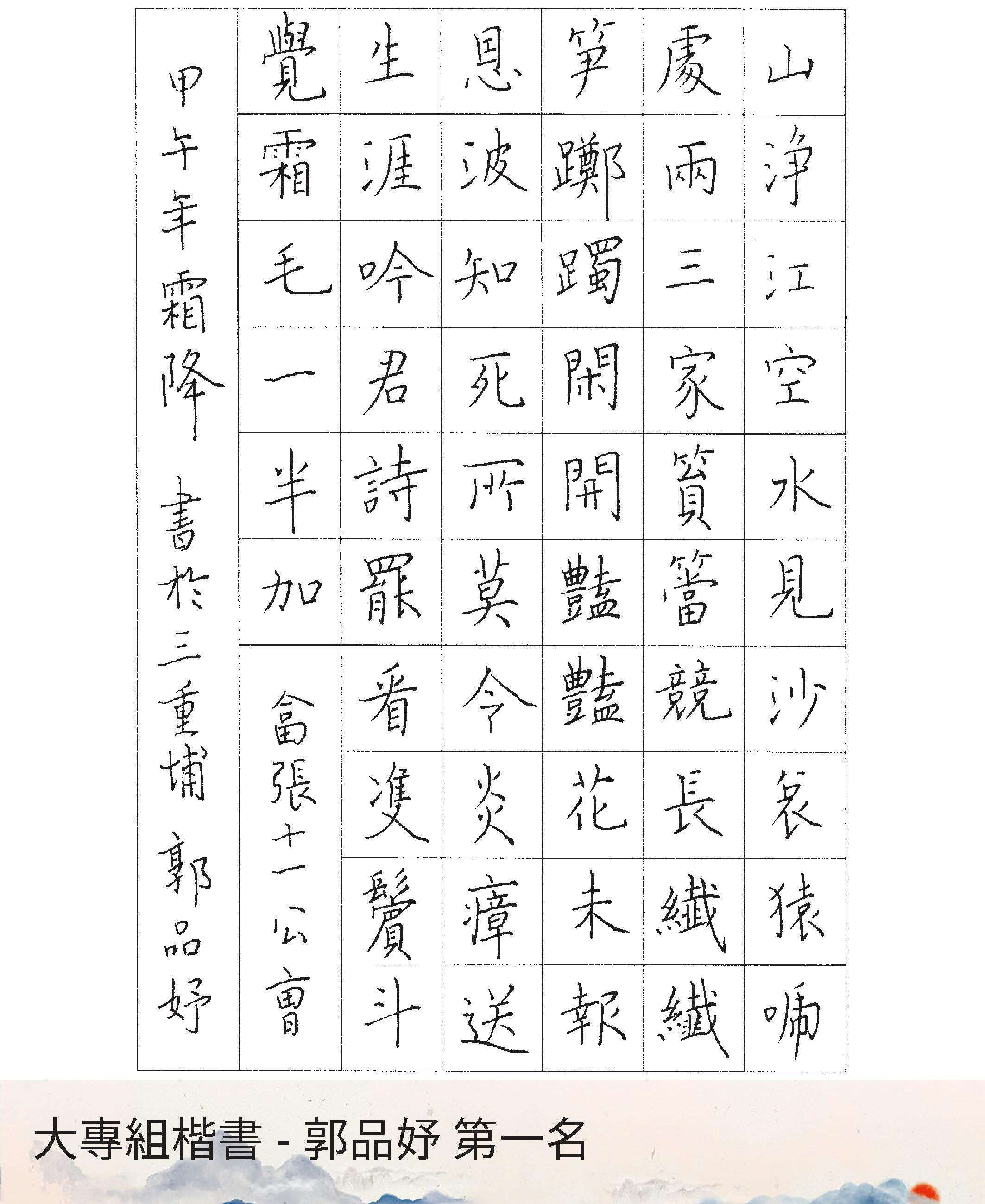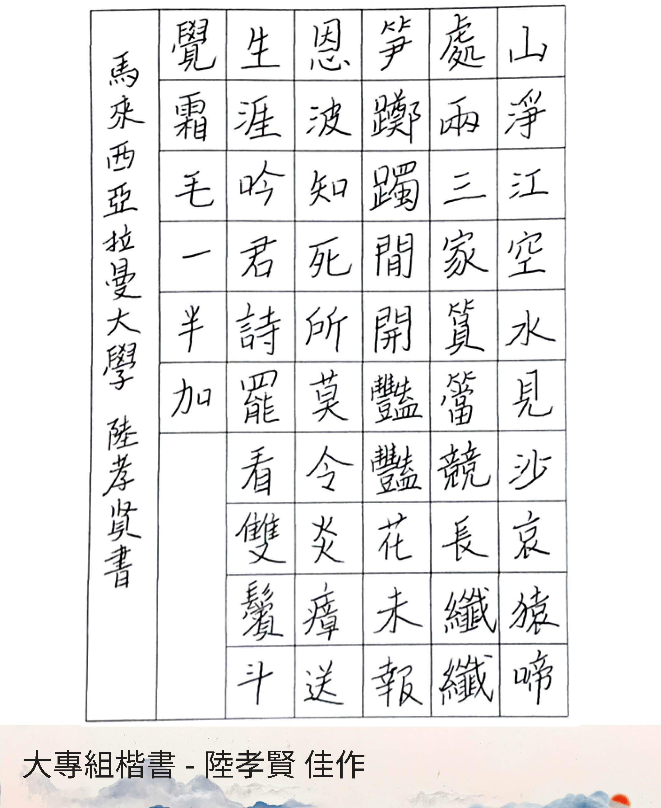 大專組楷書