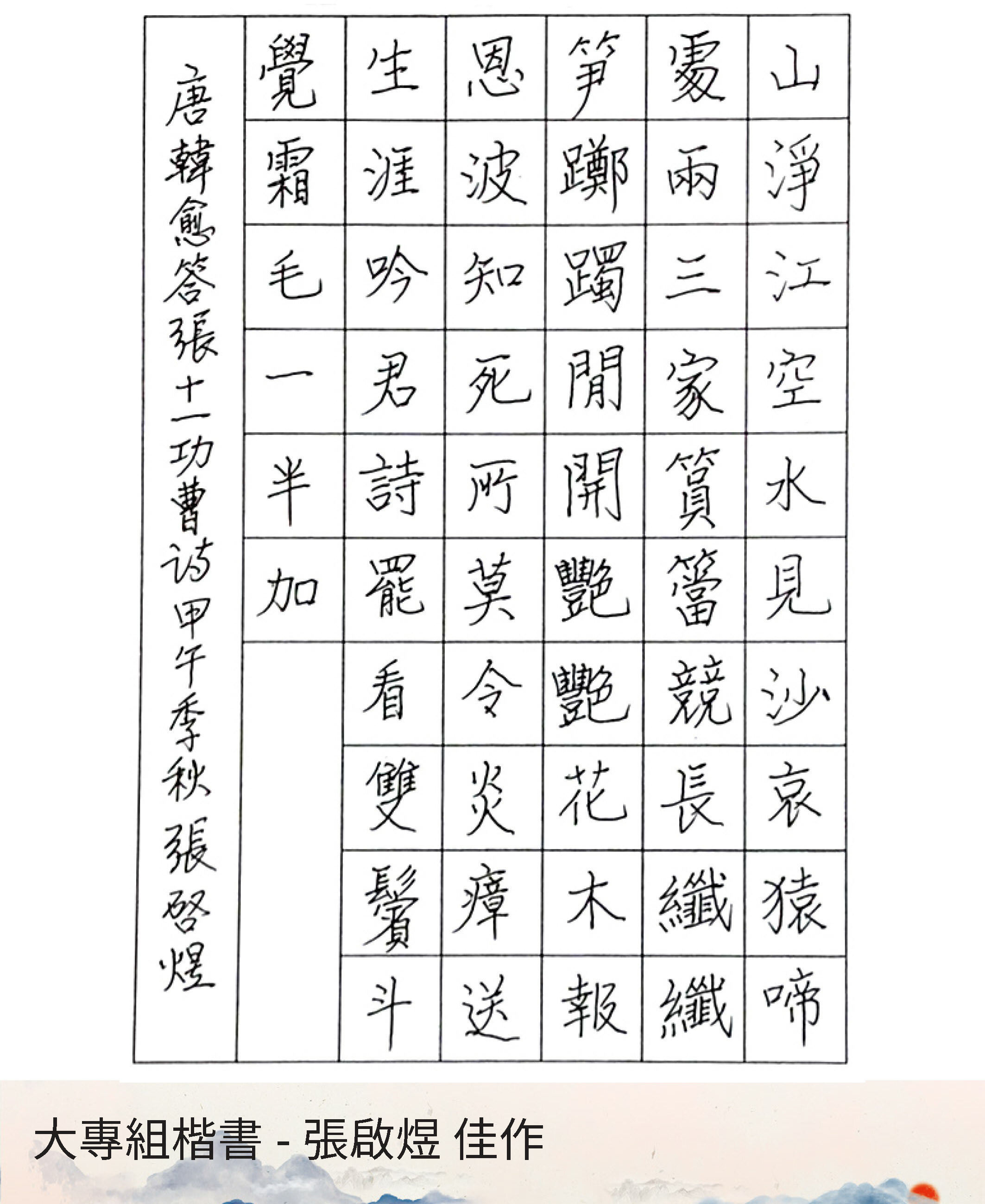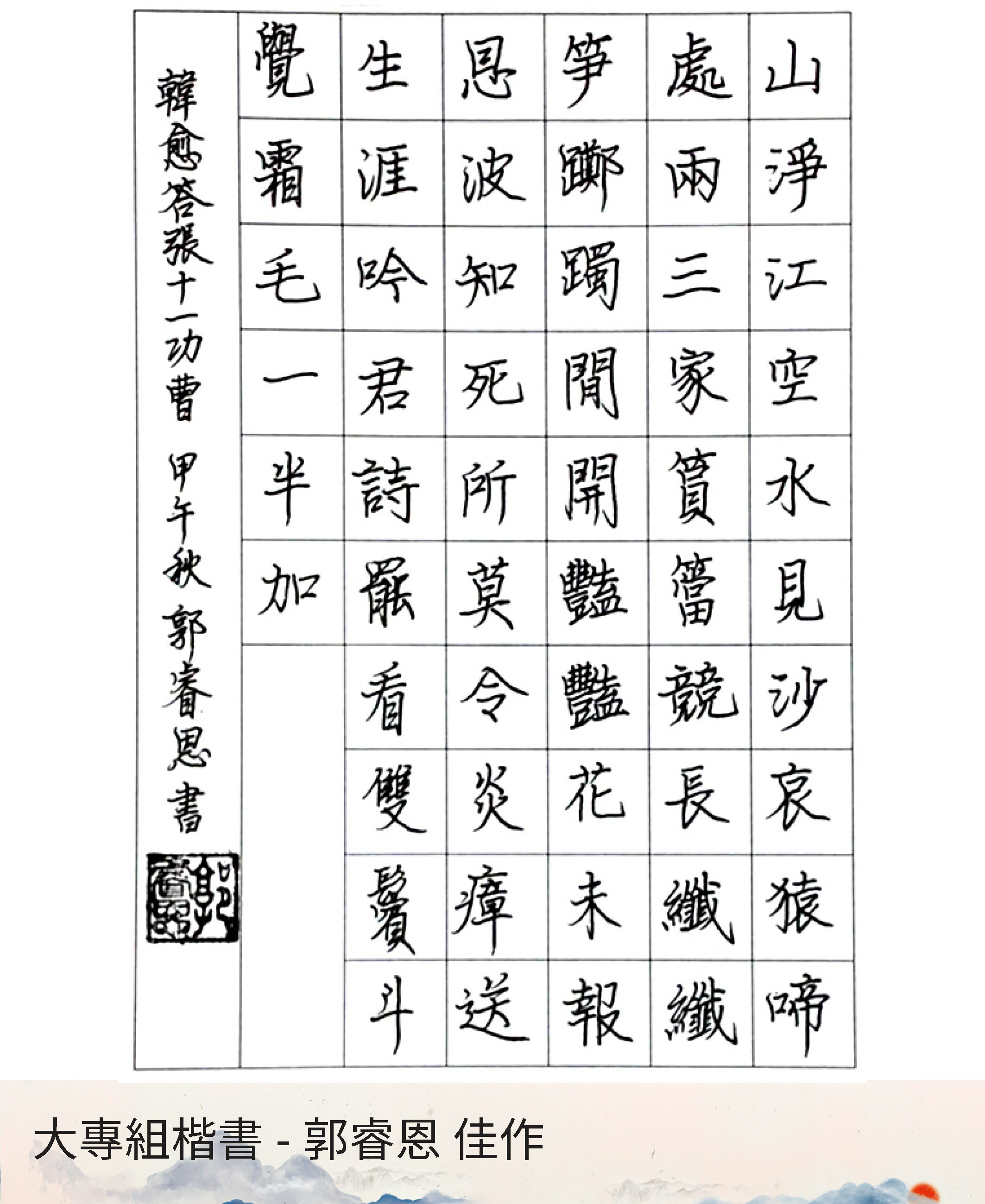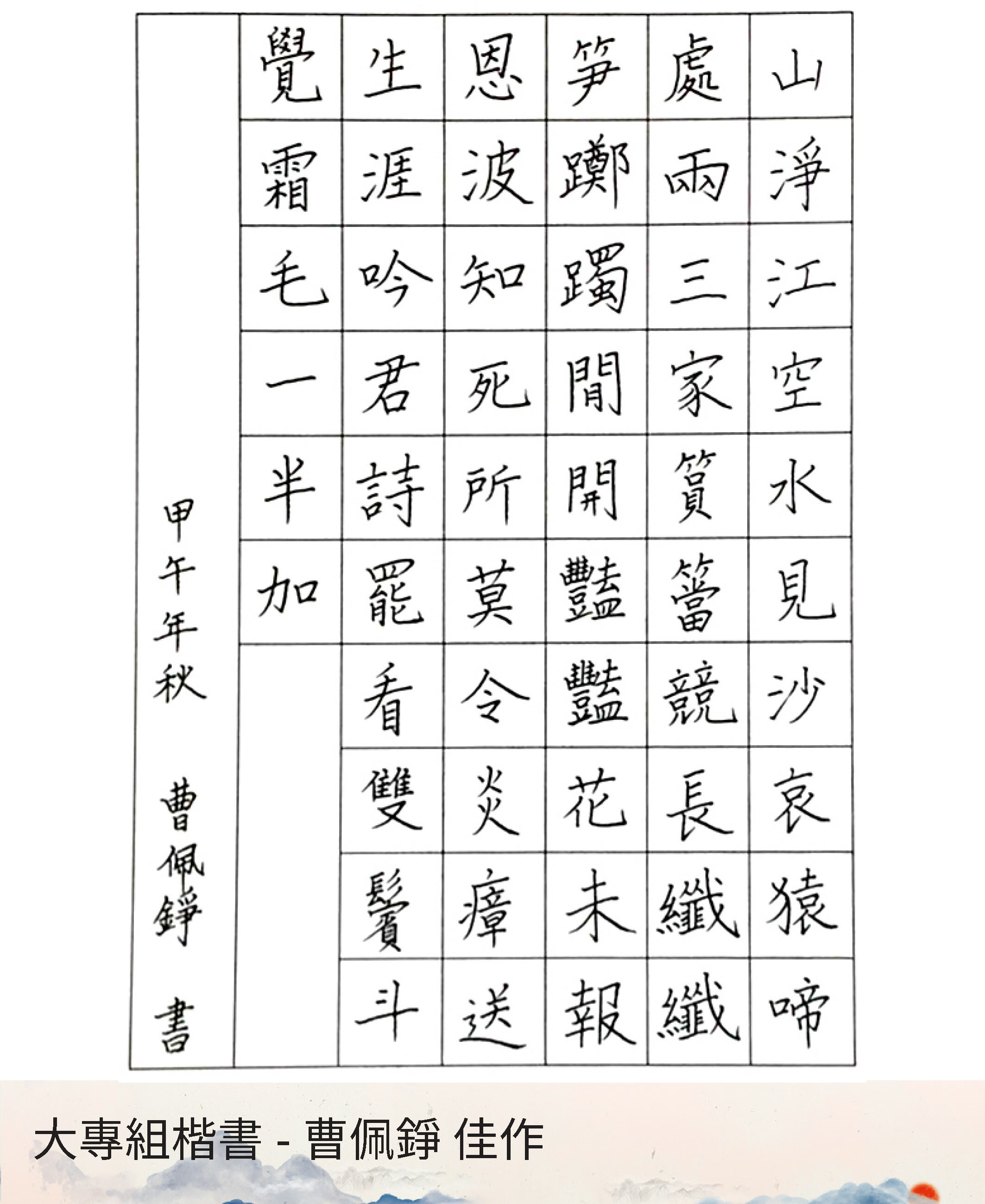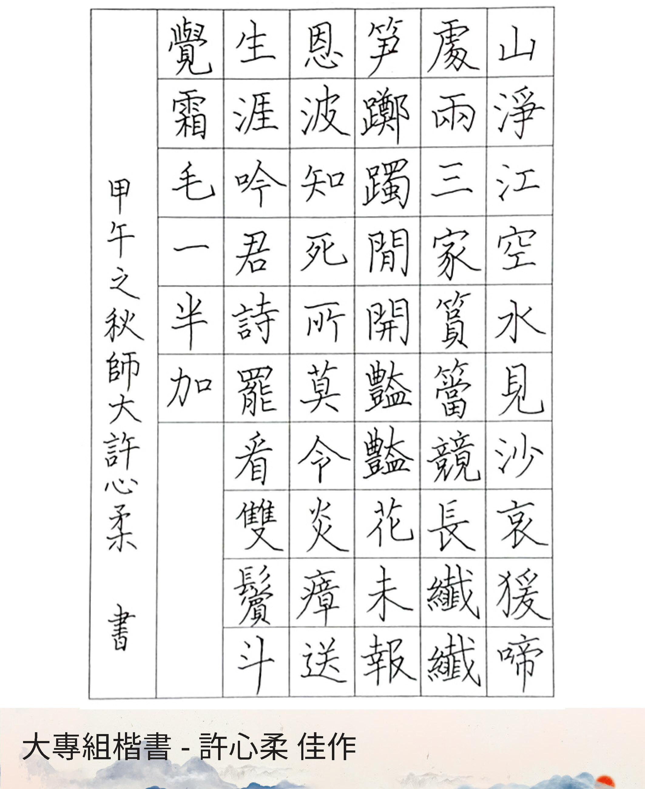 大專組楷書