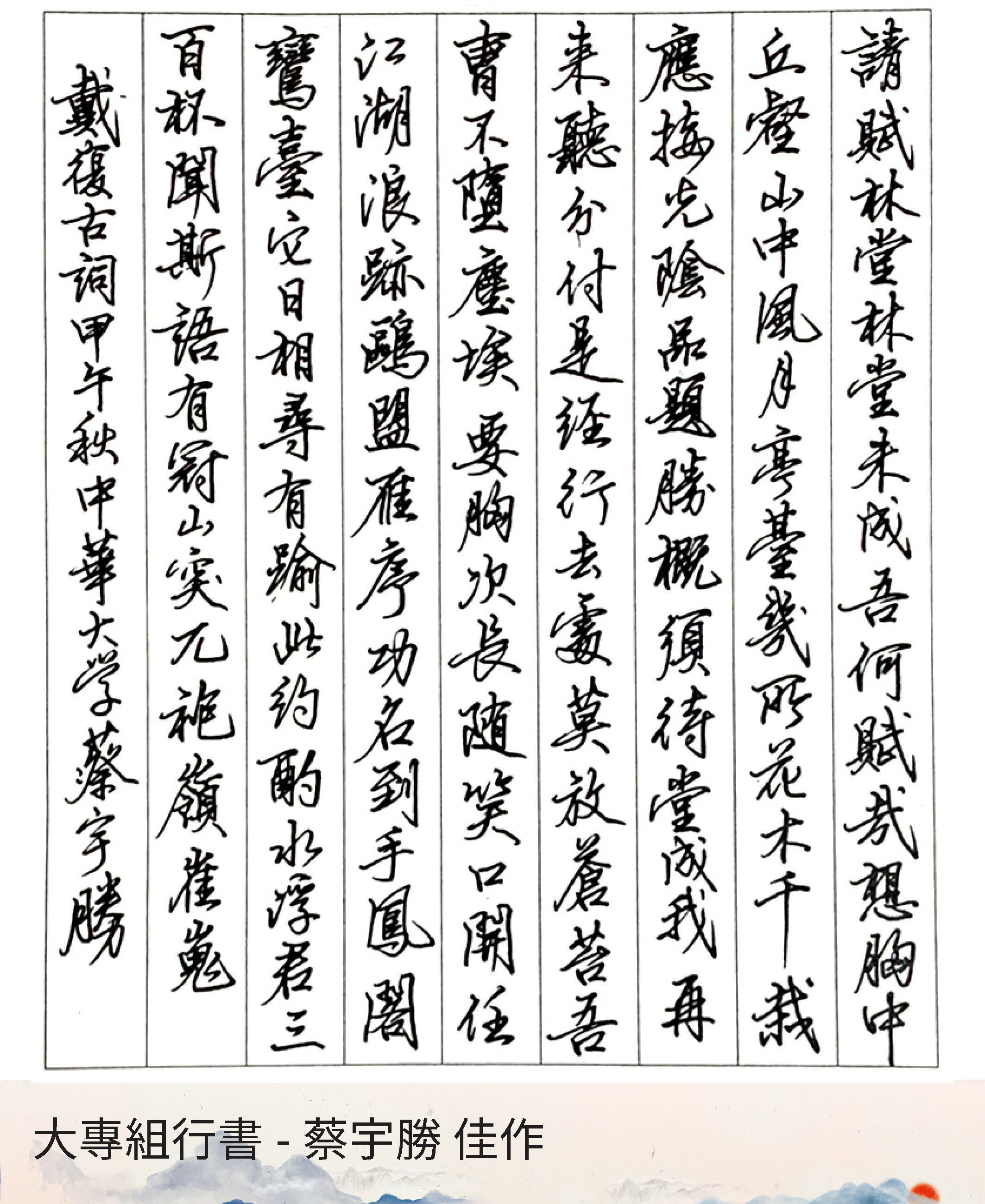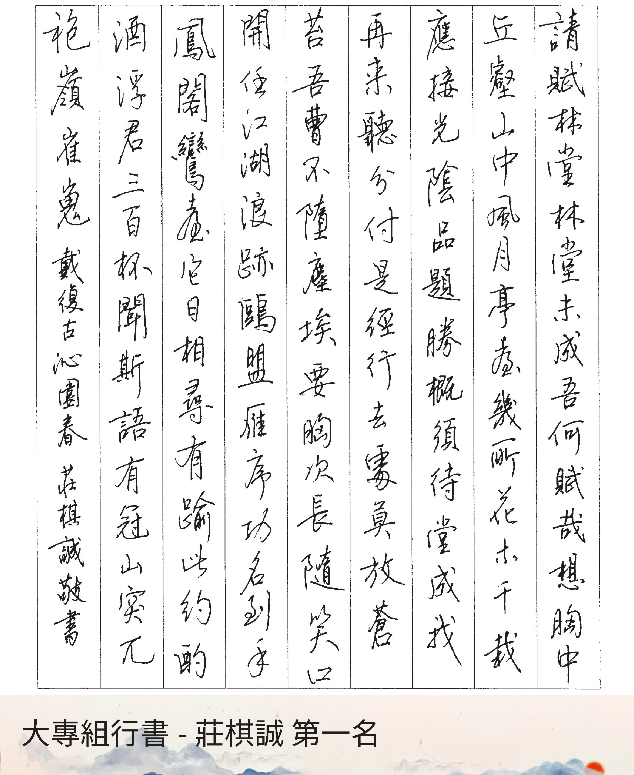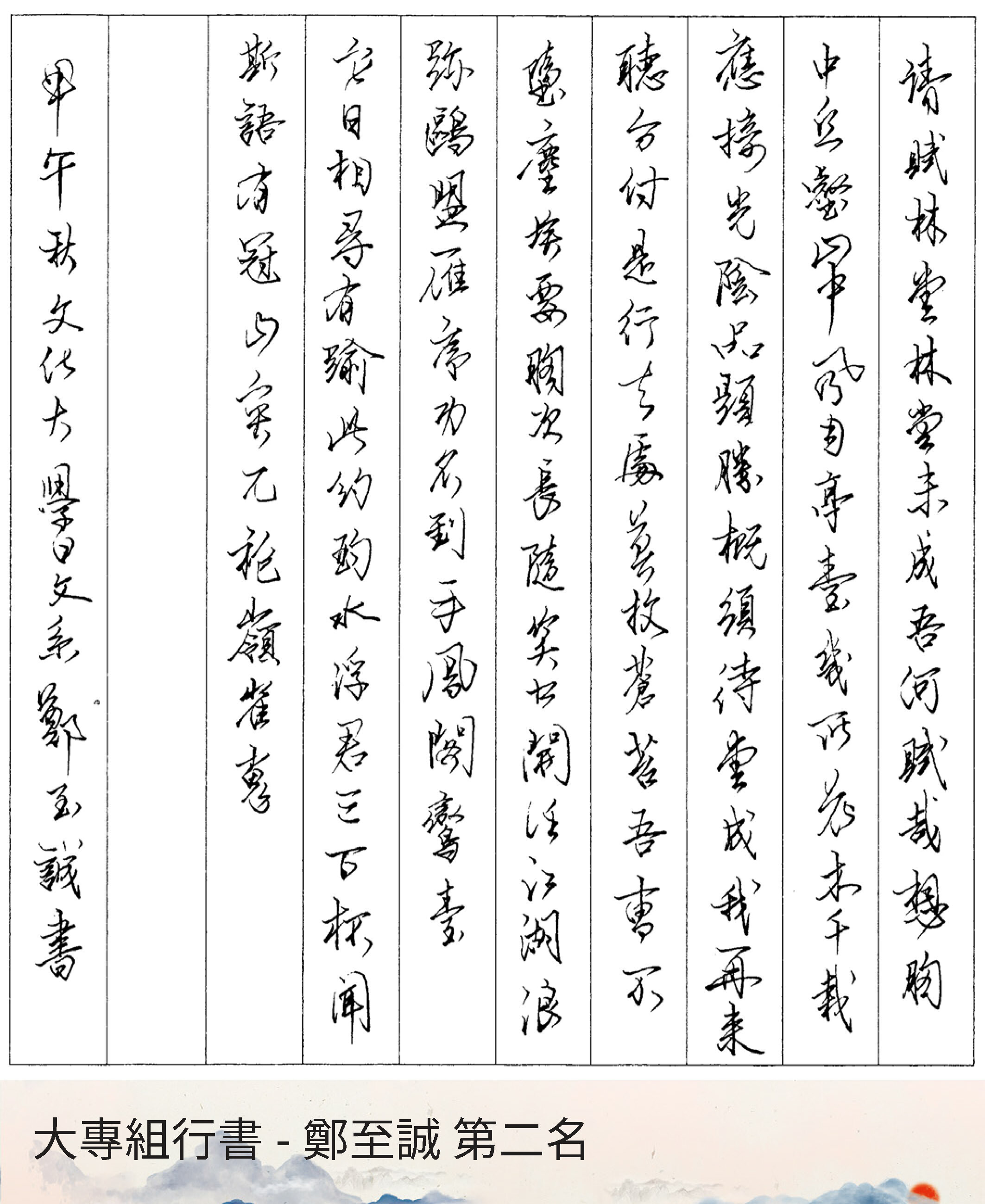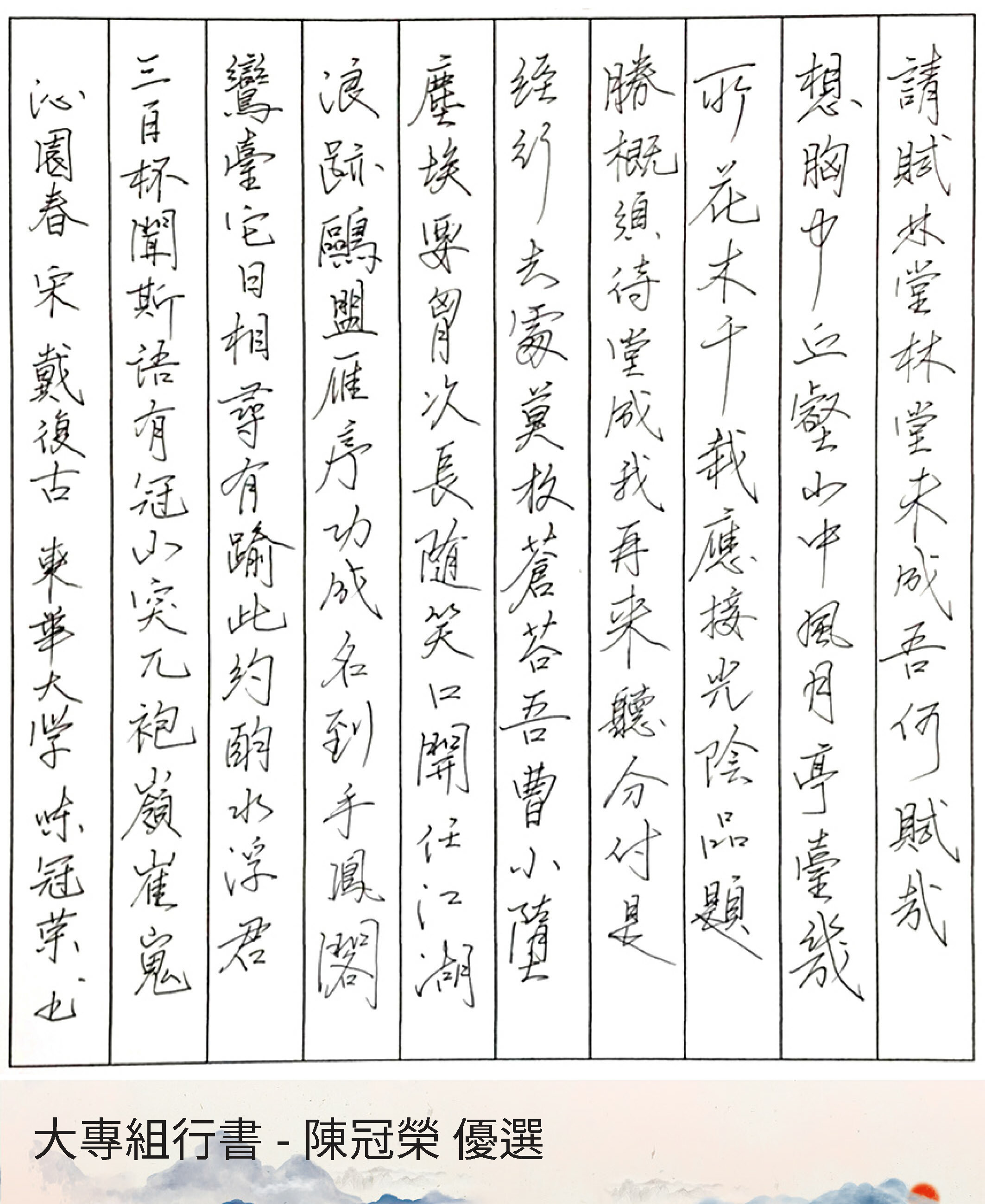 大專組行書