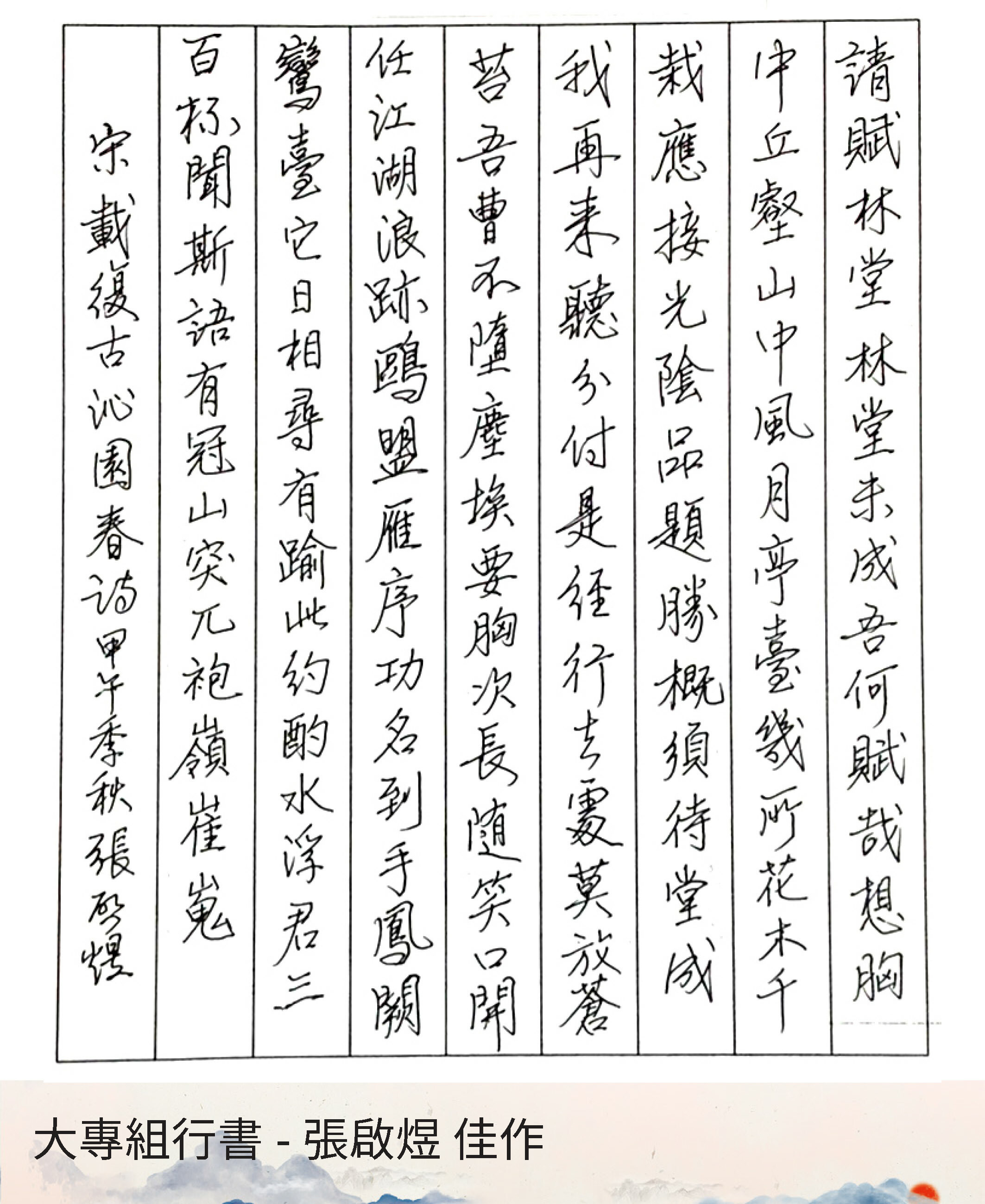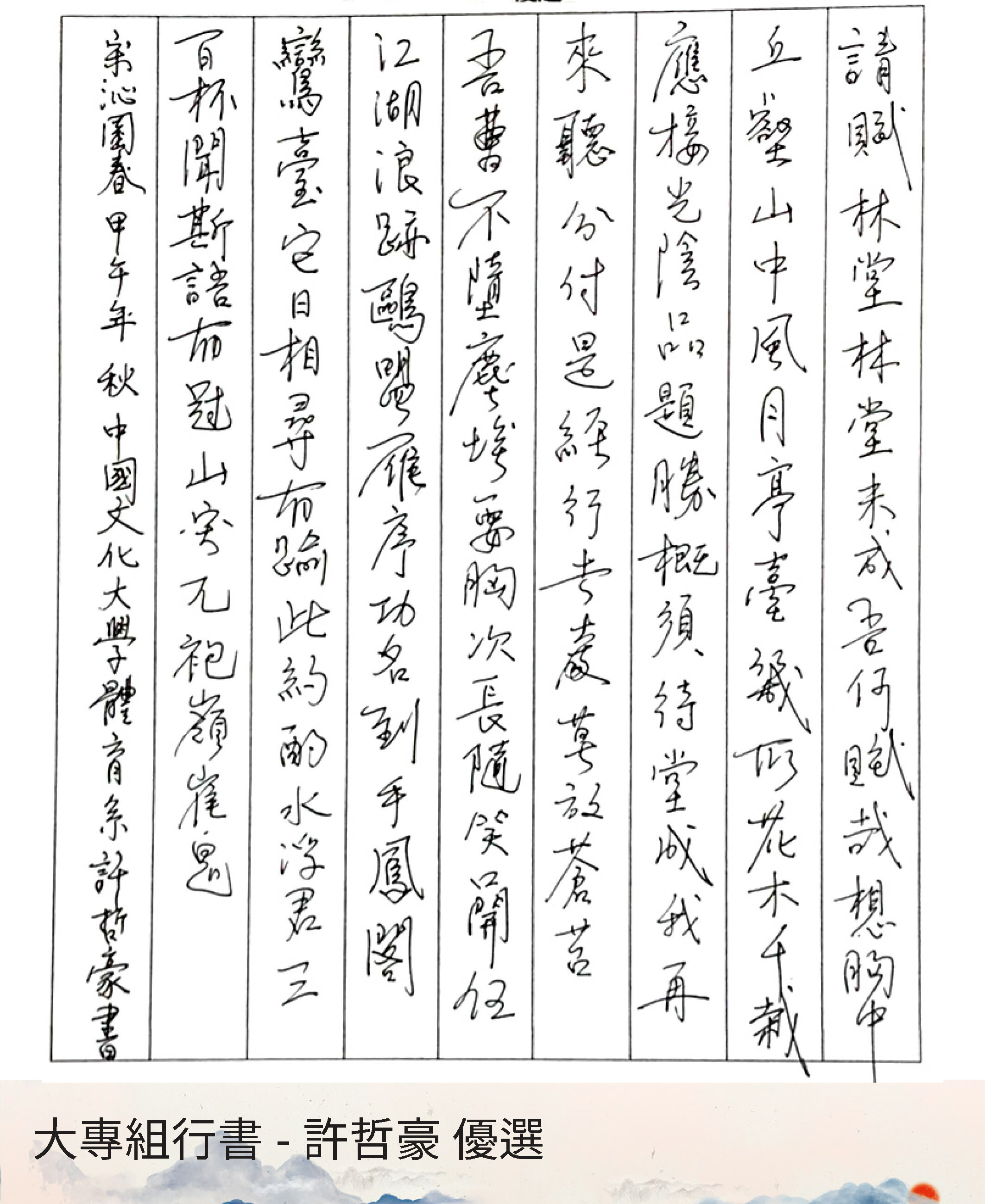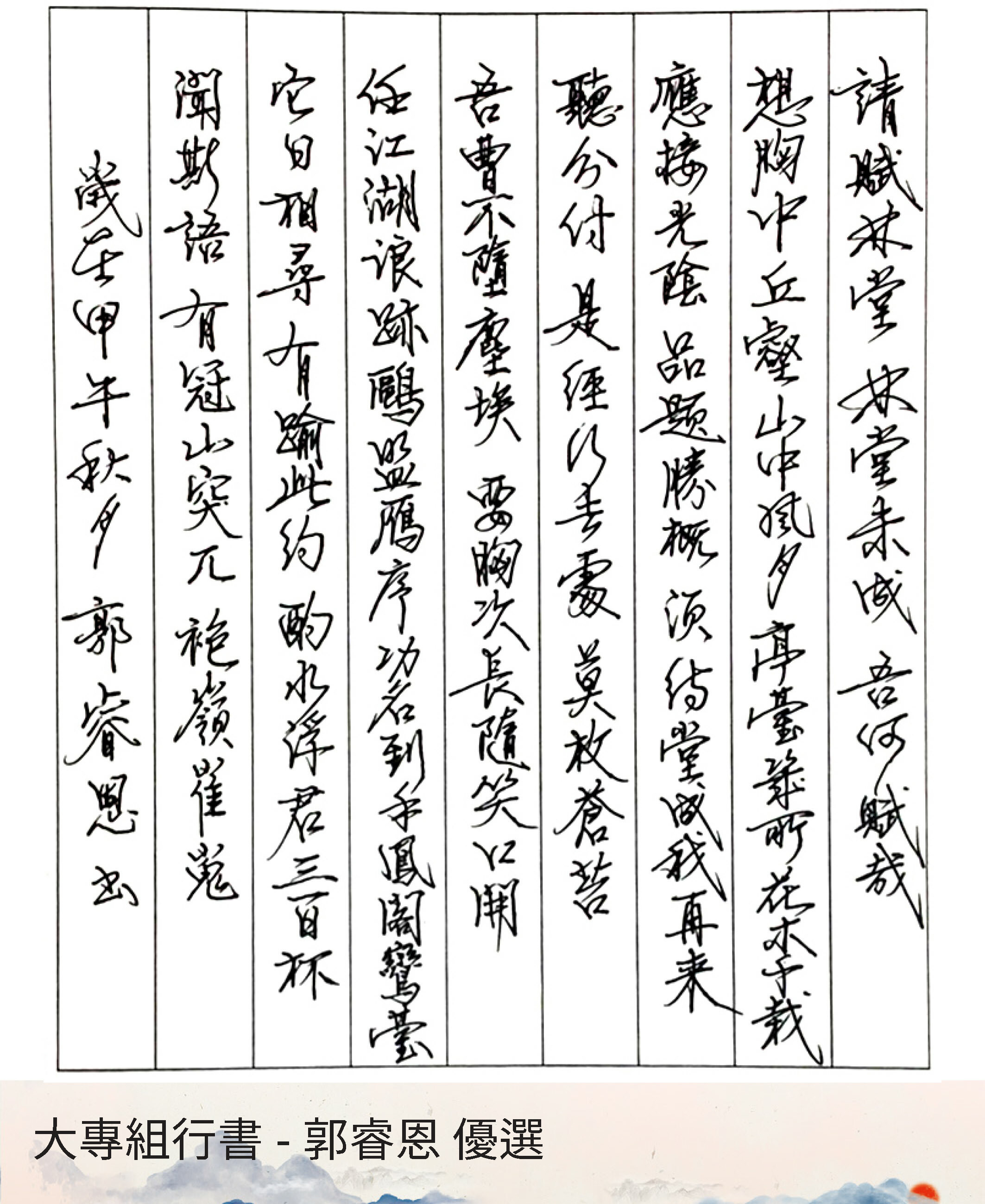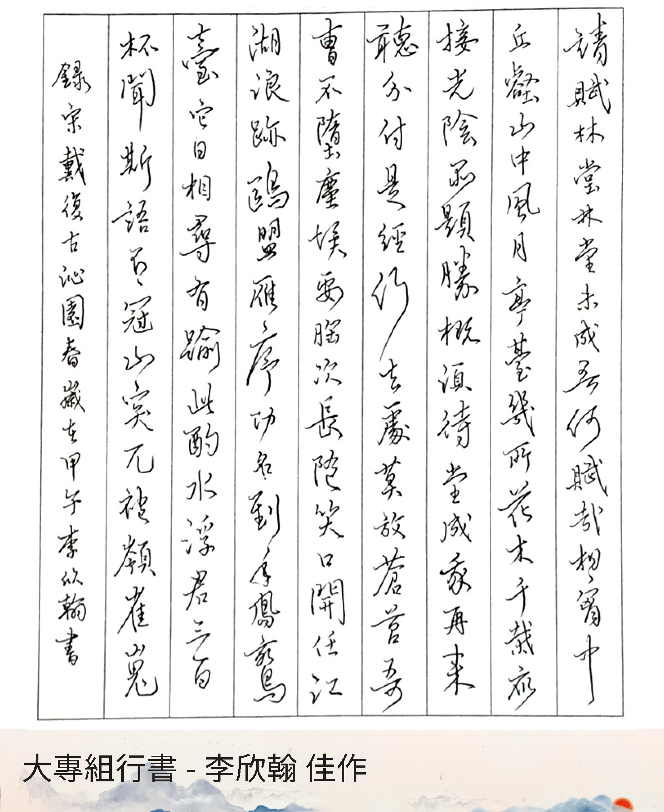大專組行書