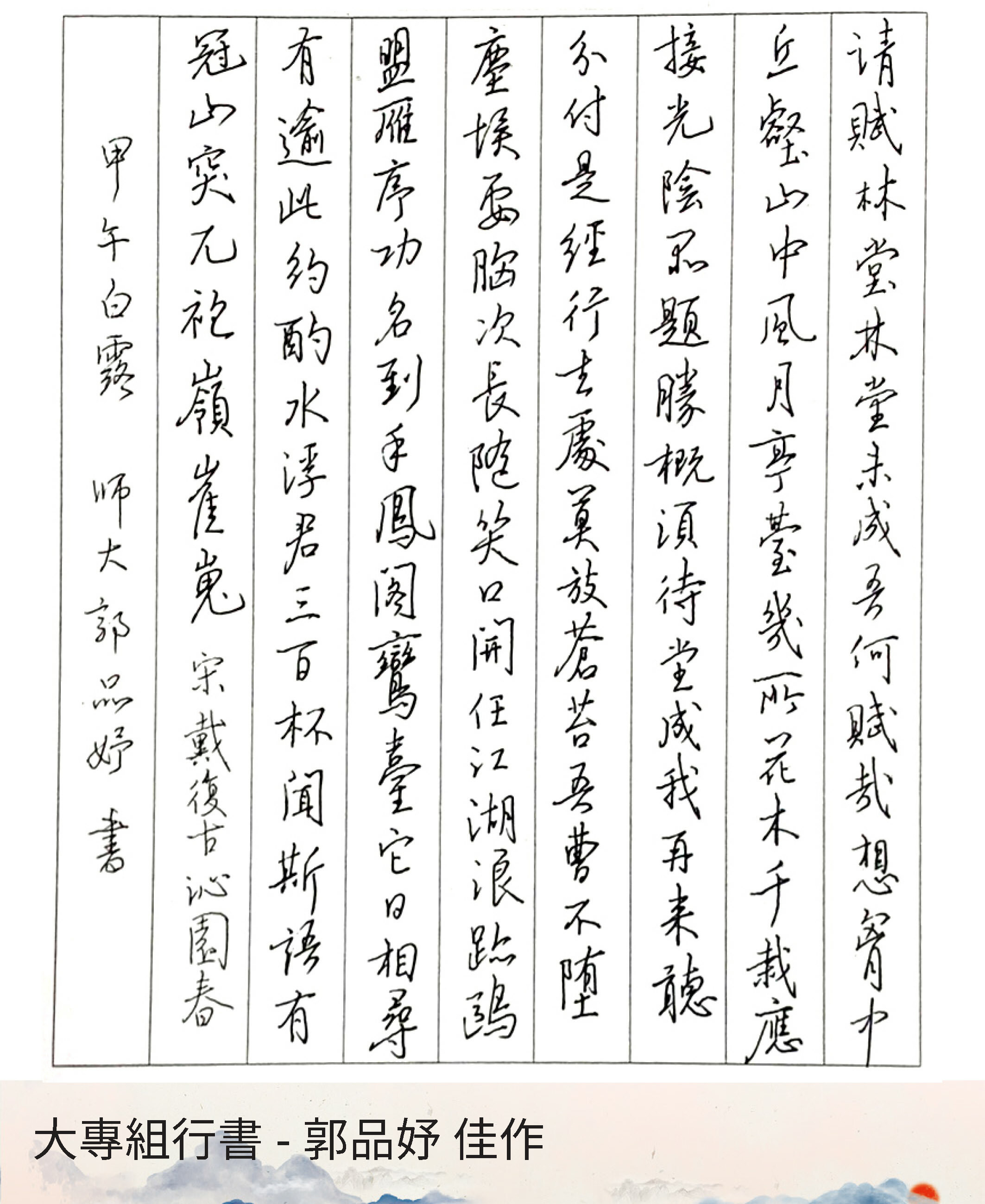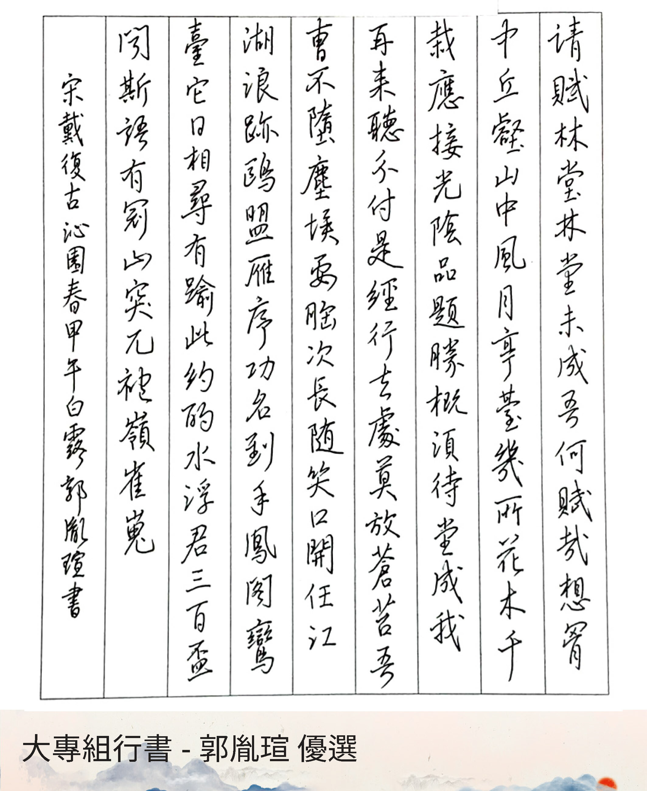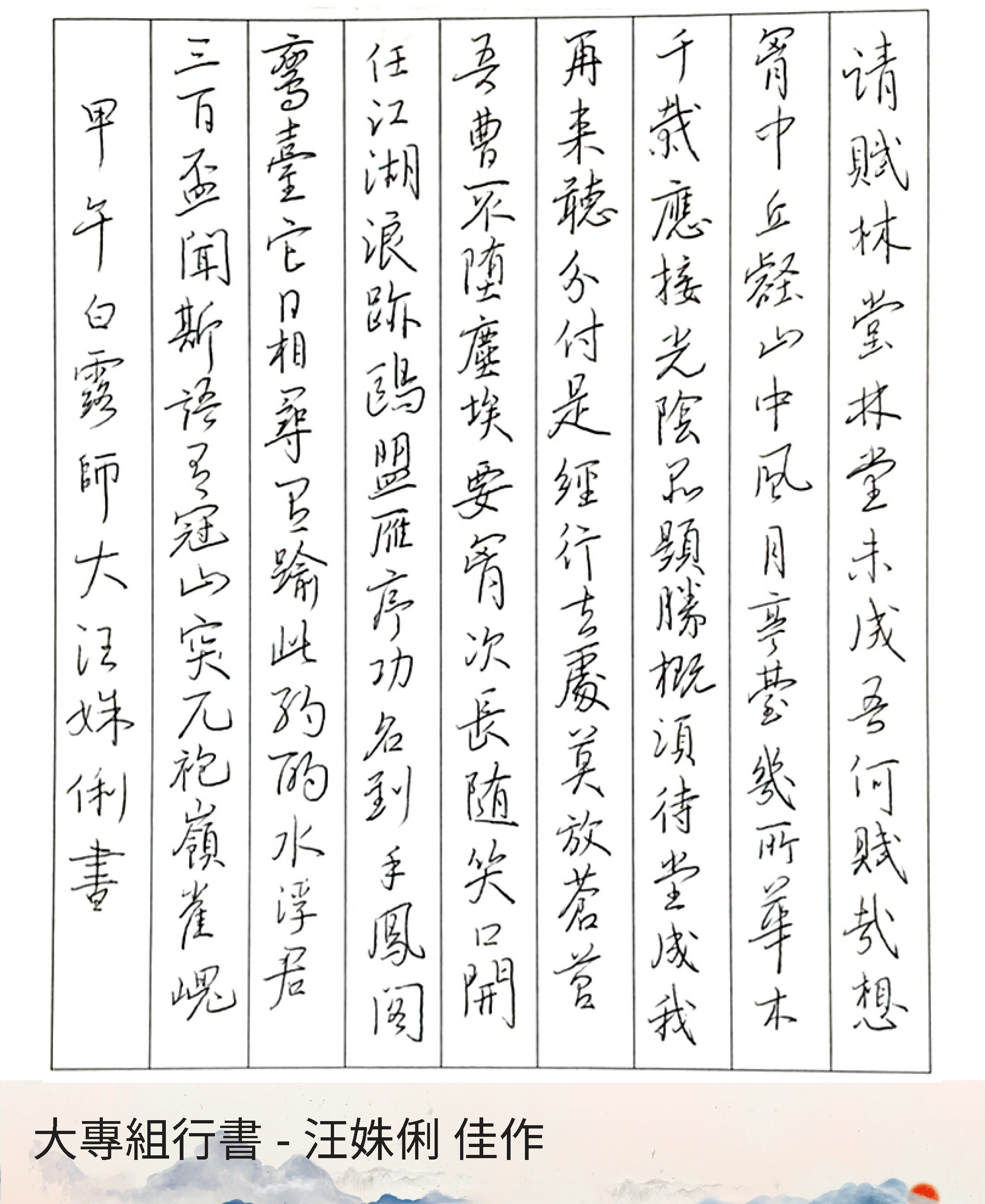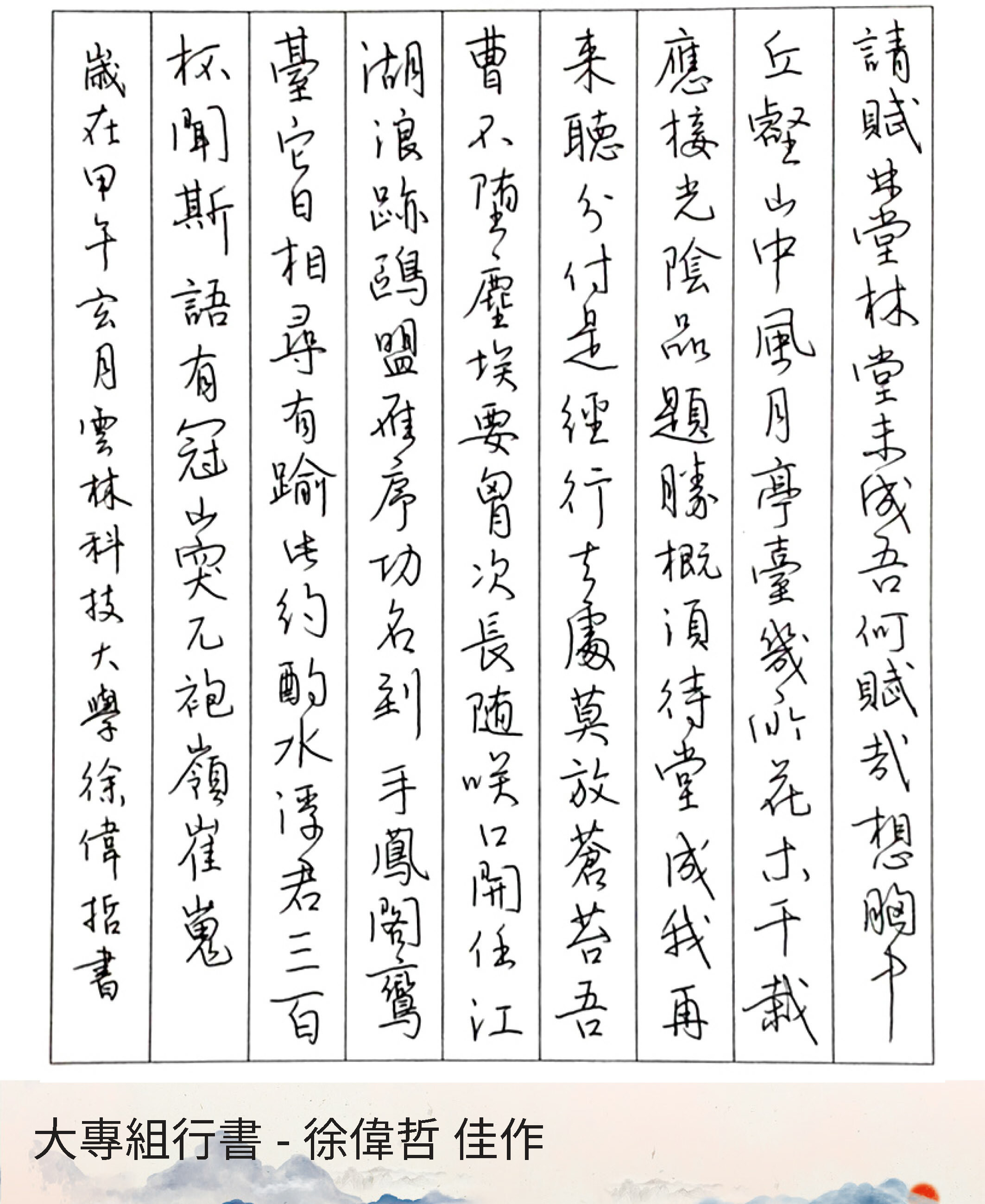 大專組行書