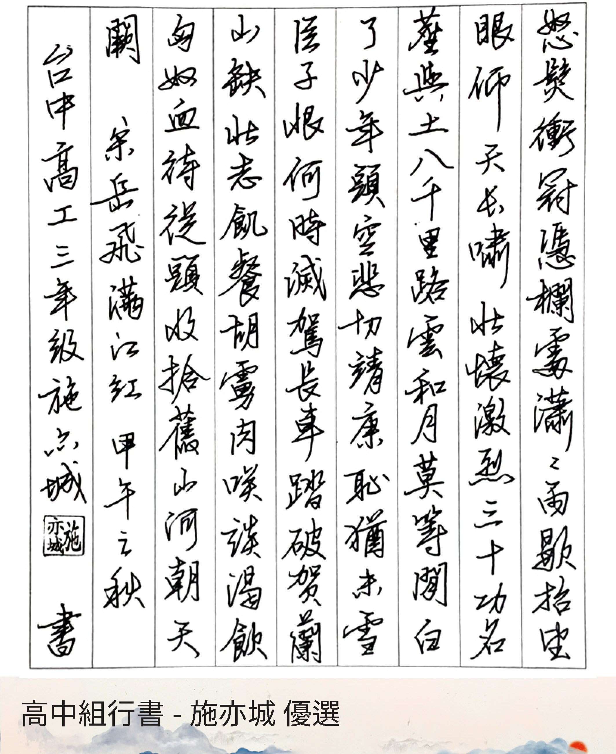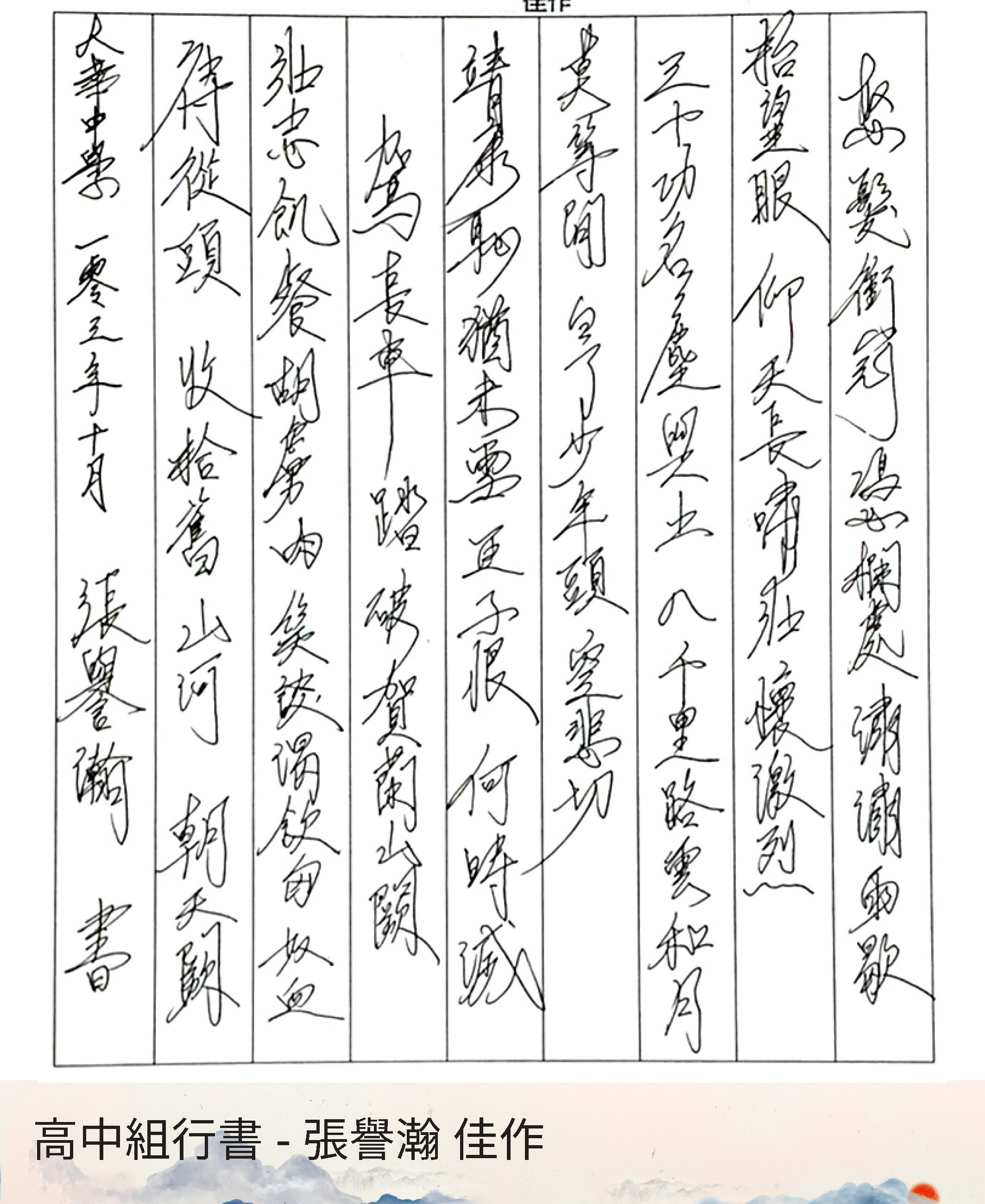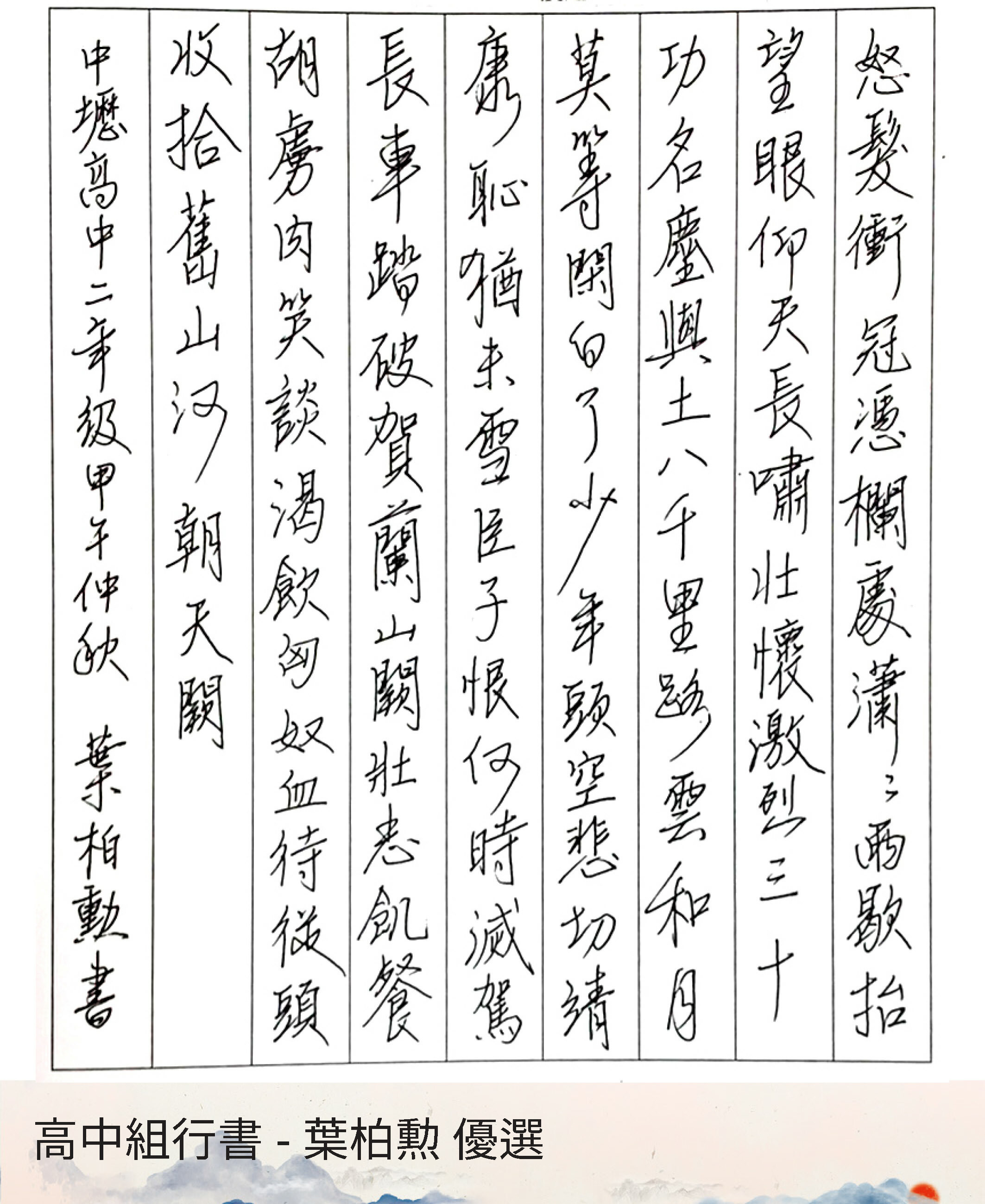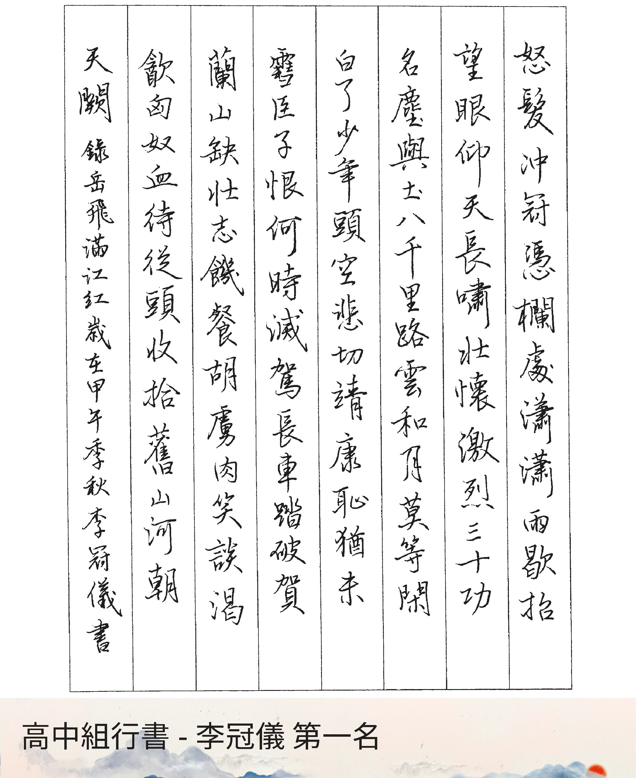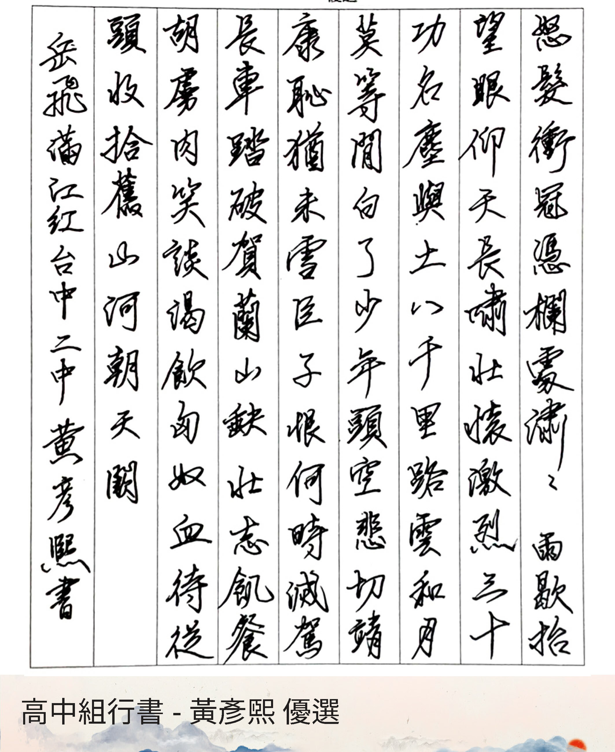 高中組行書