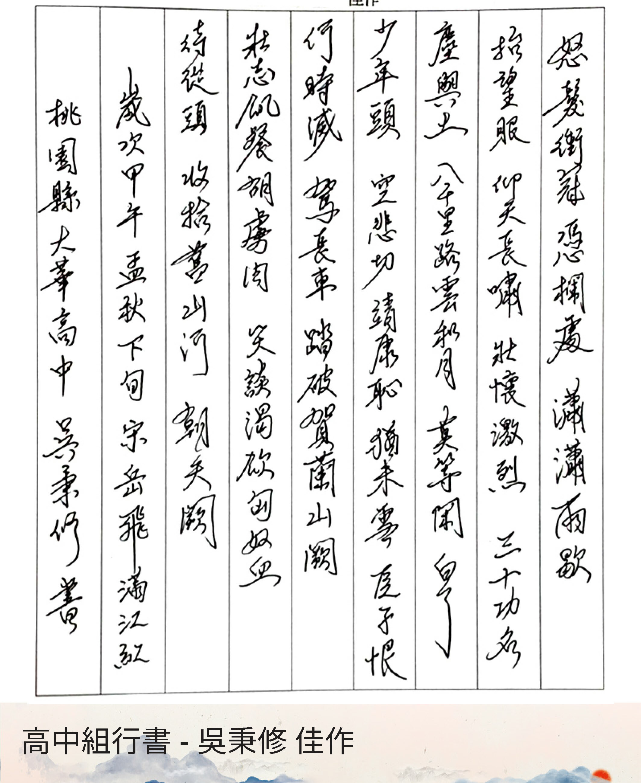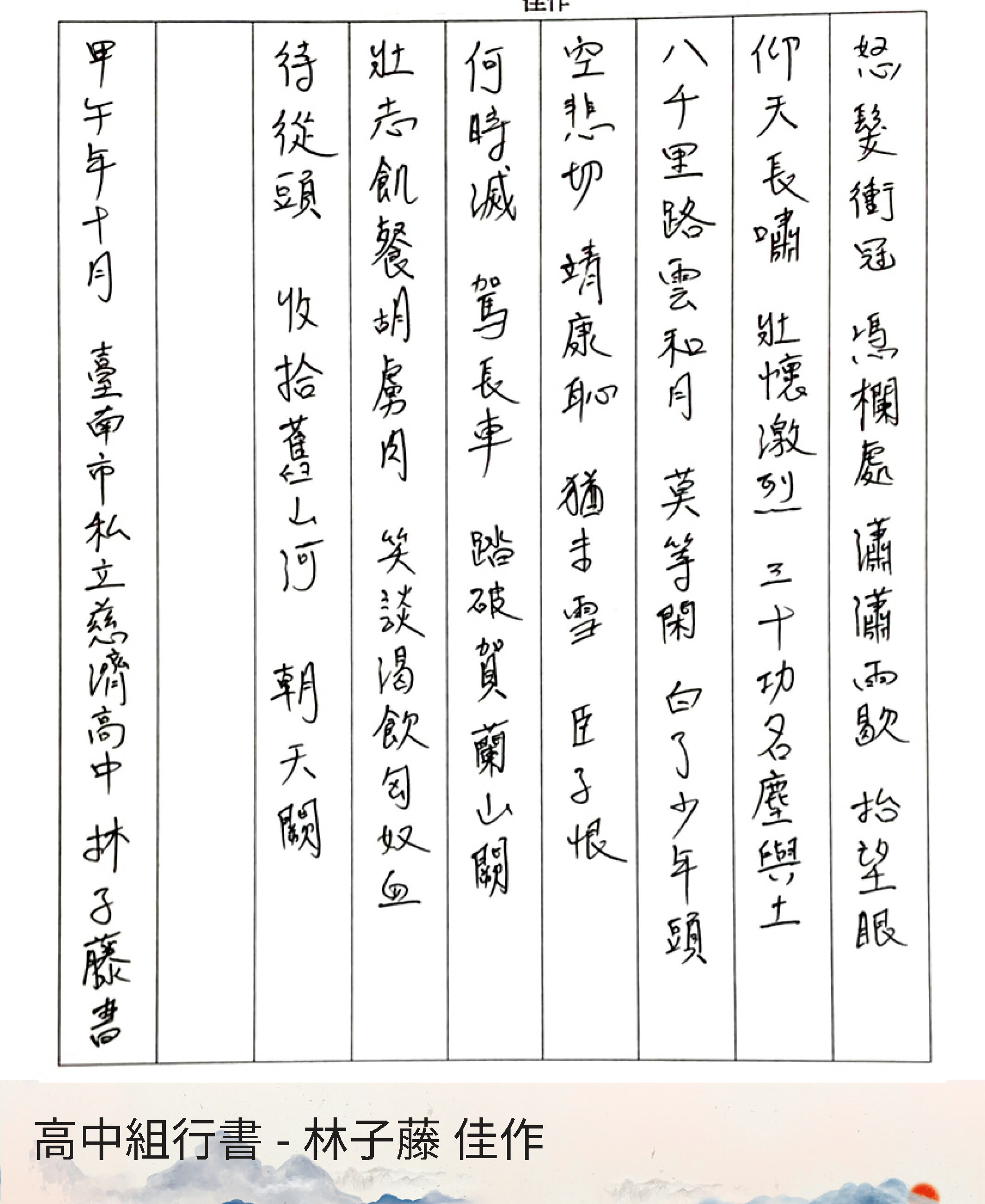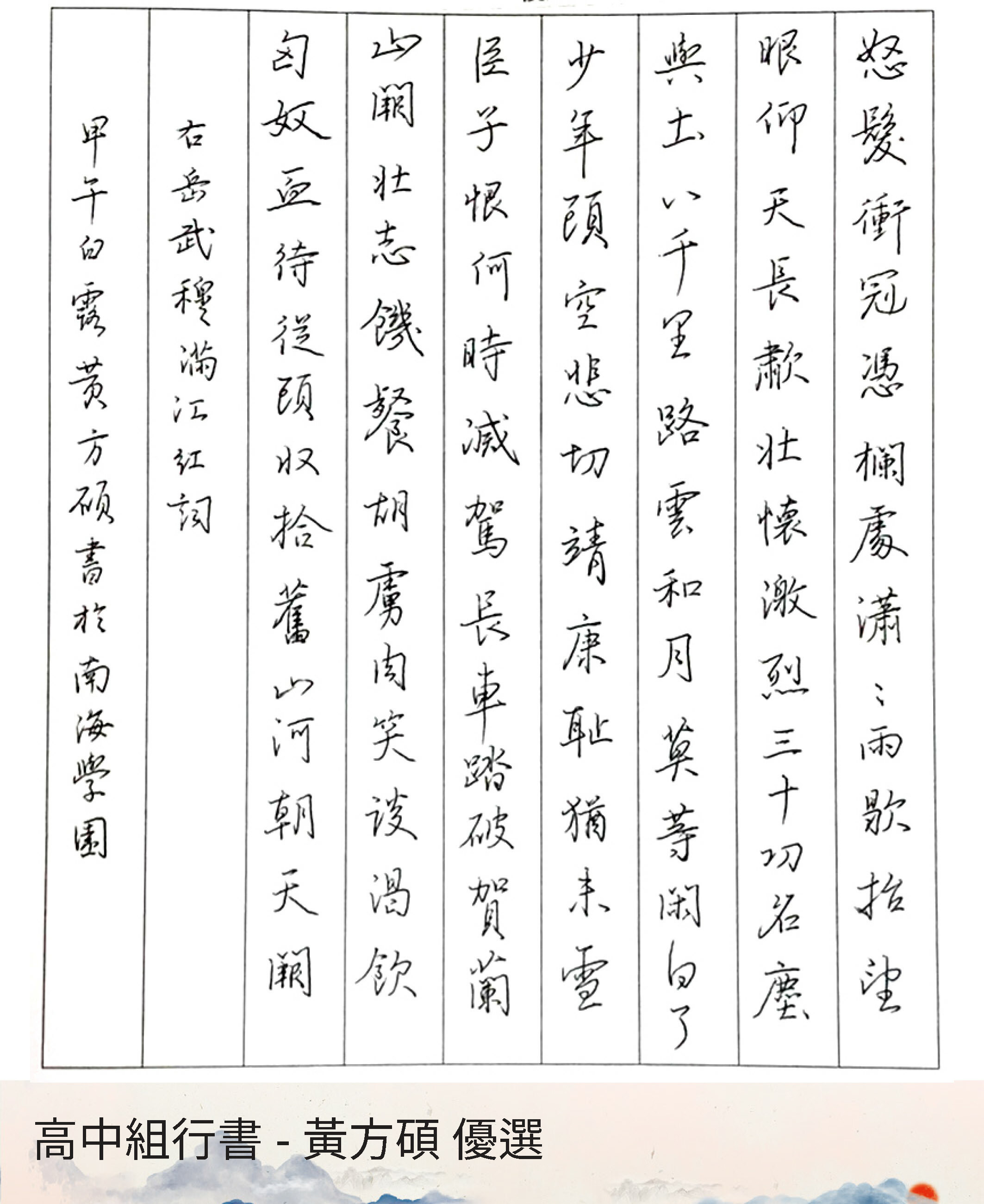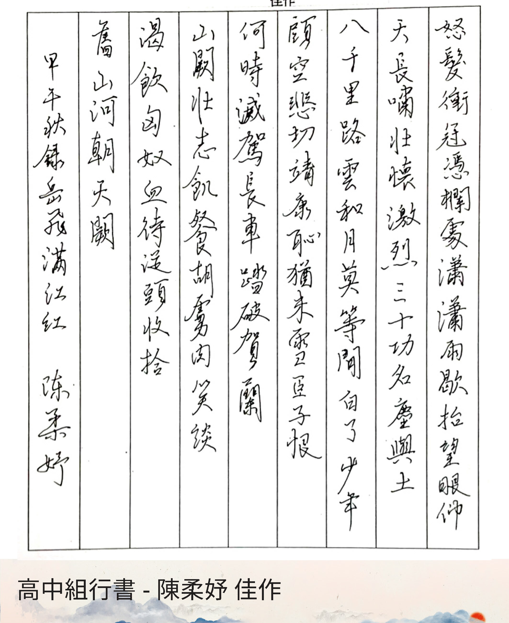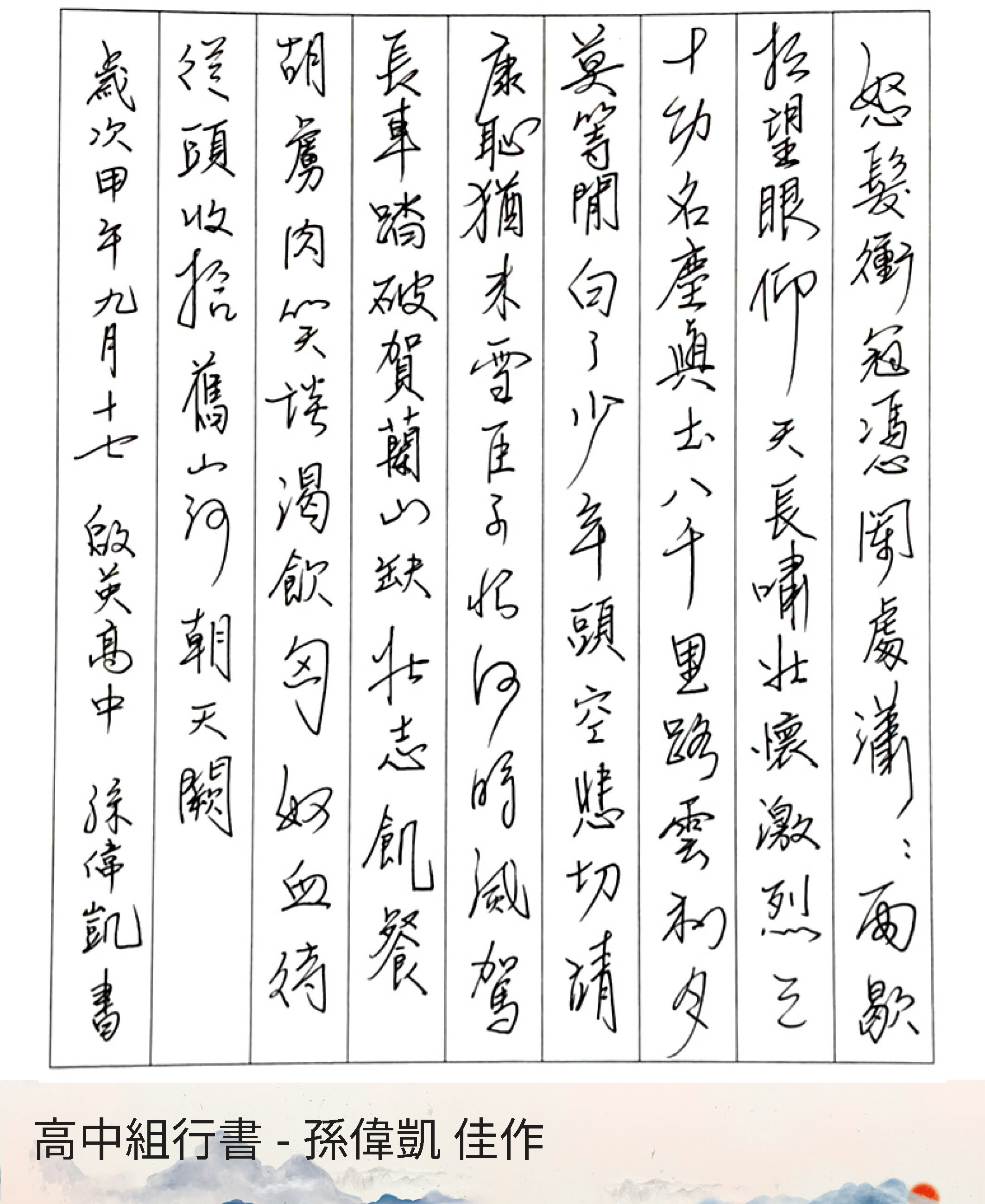 高中組行書