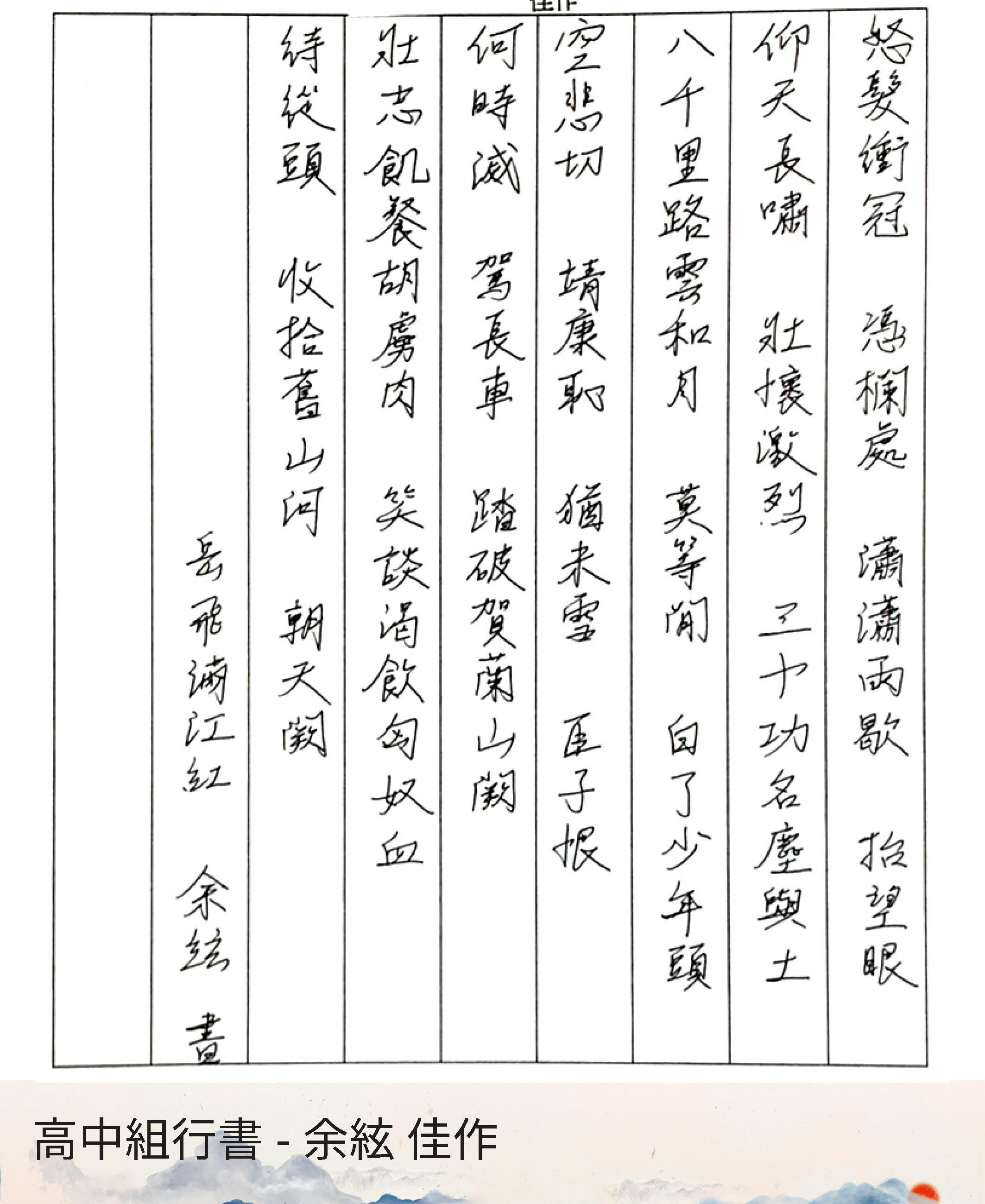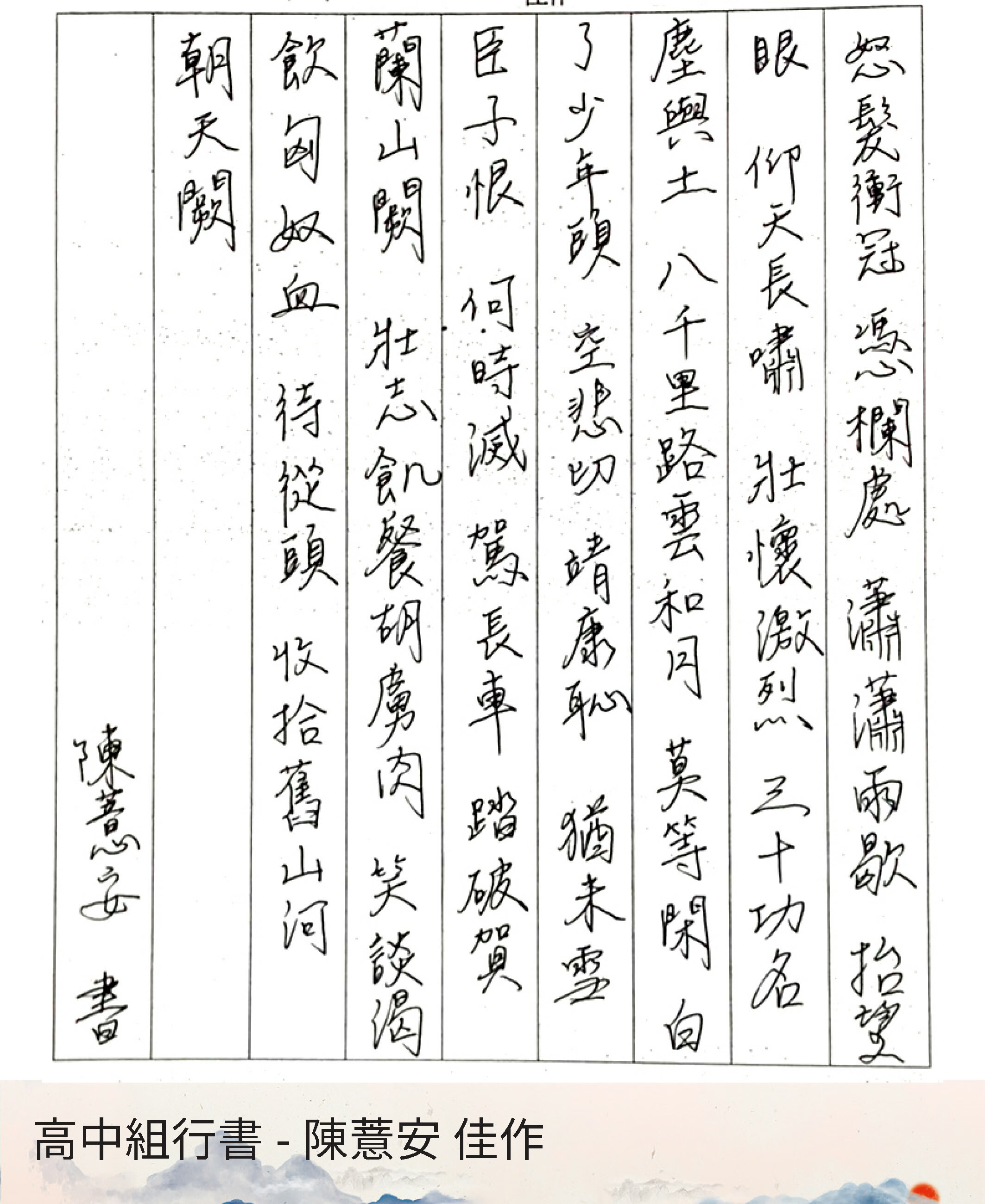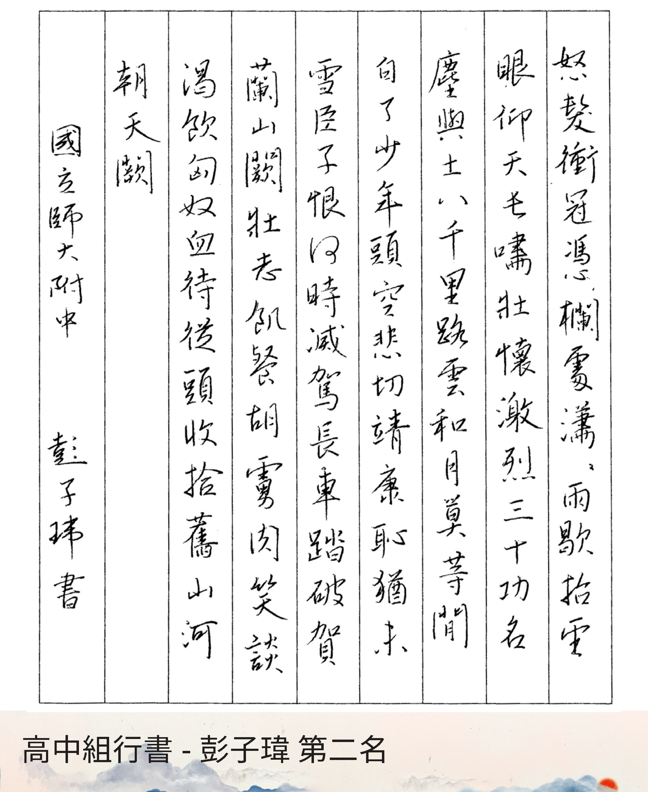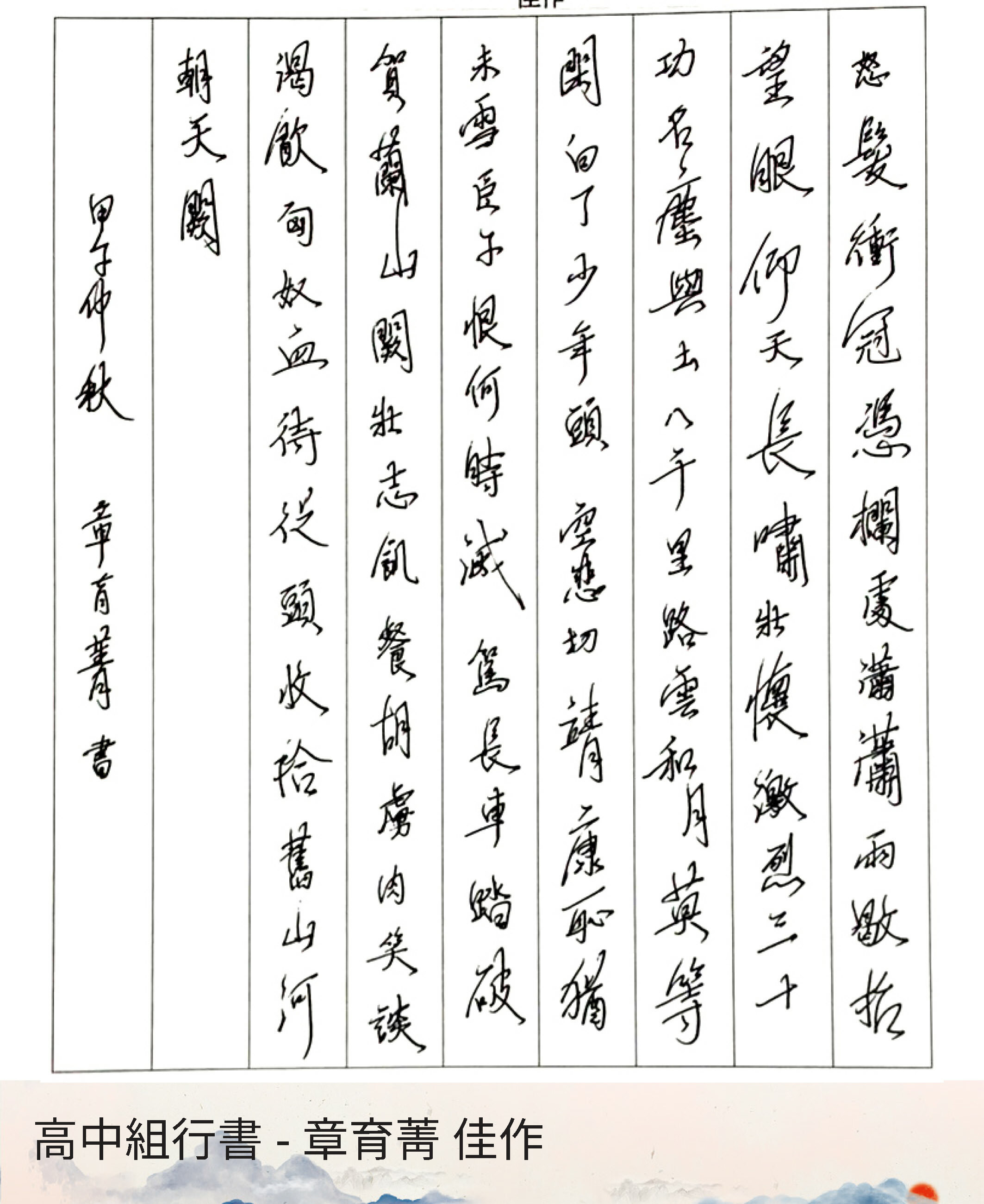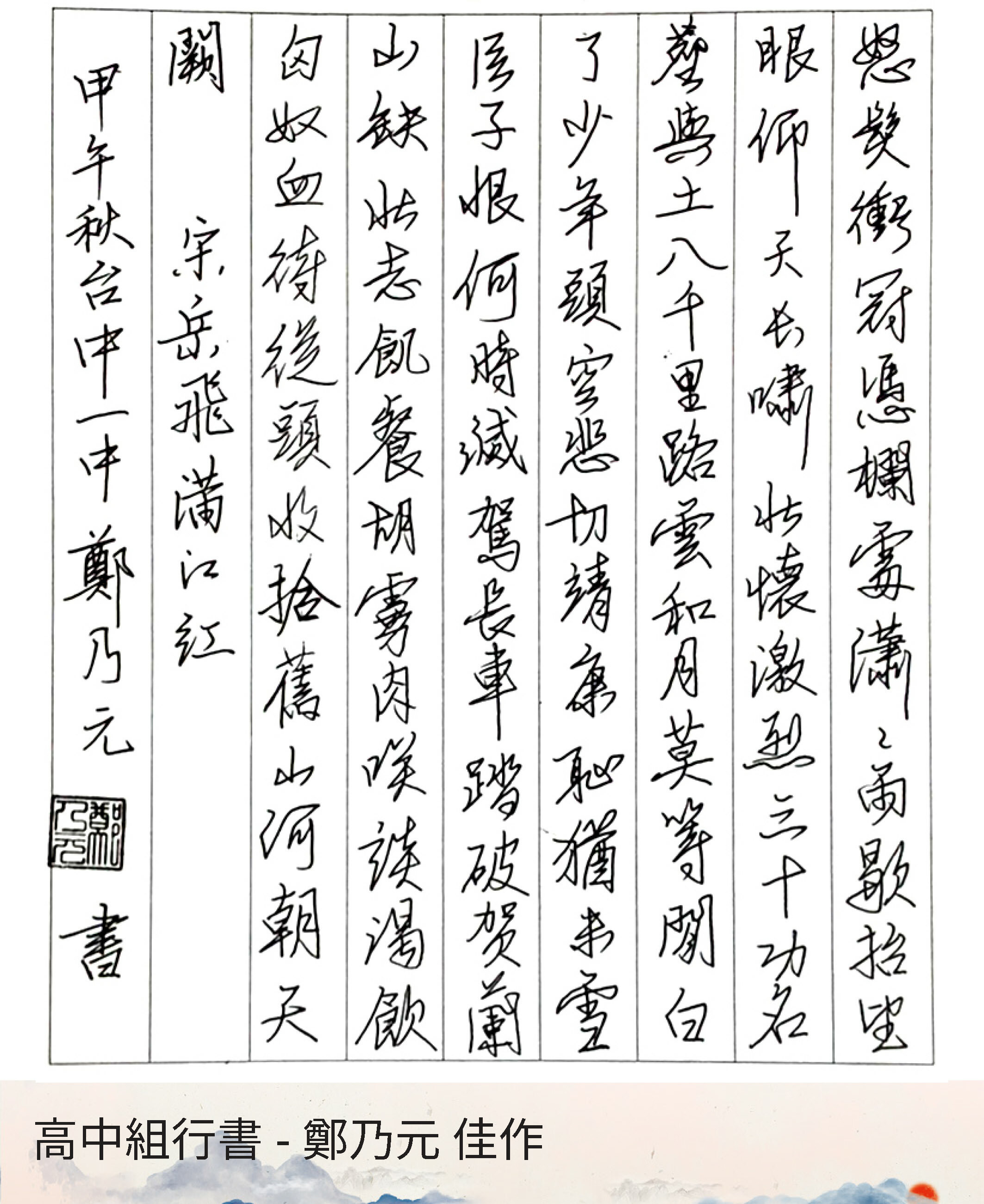 高中組行書