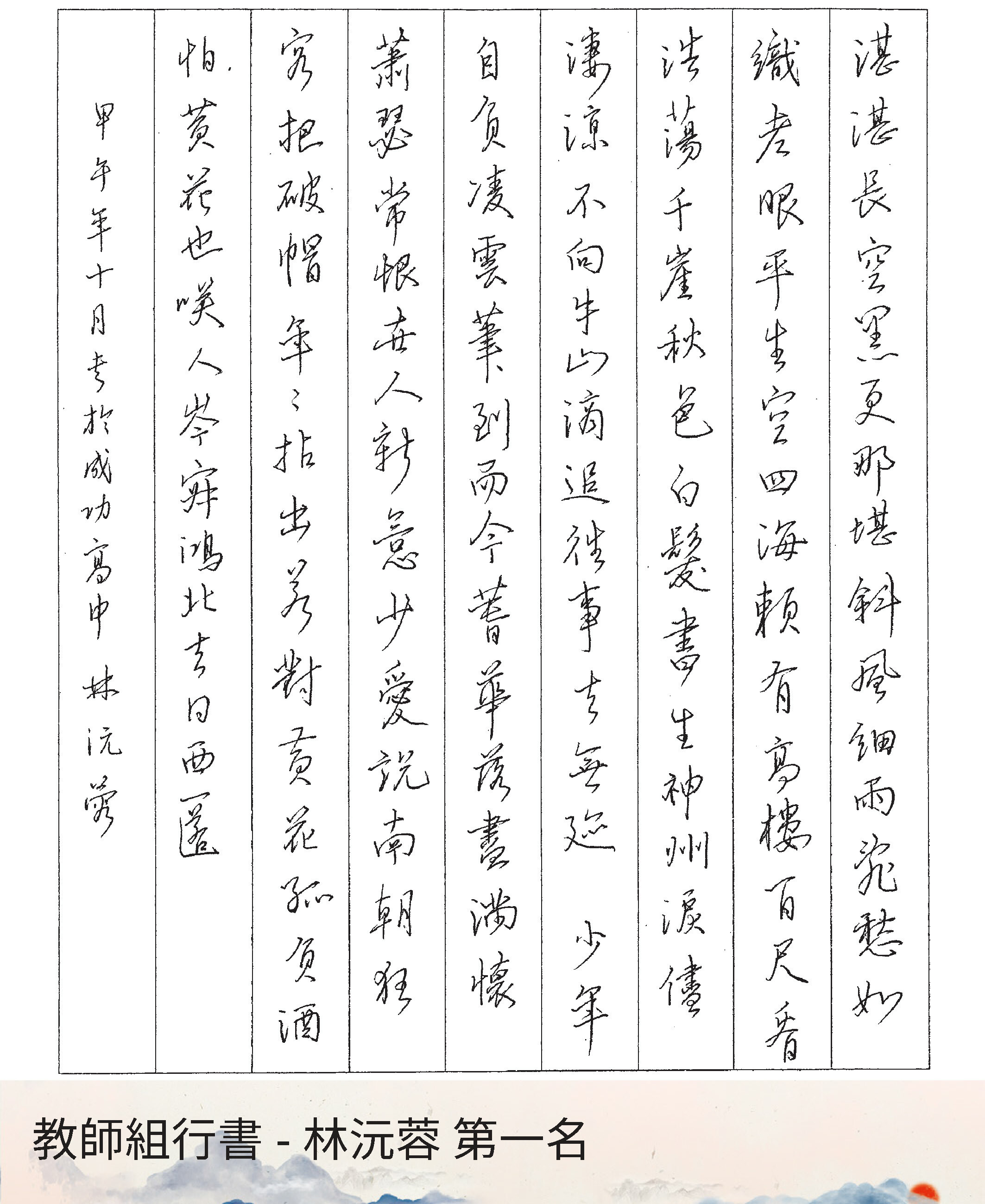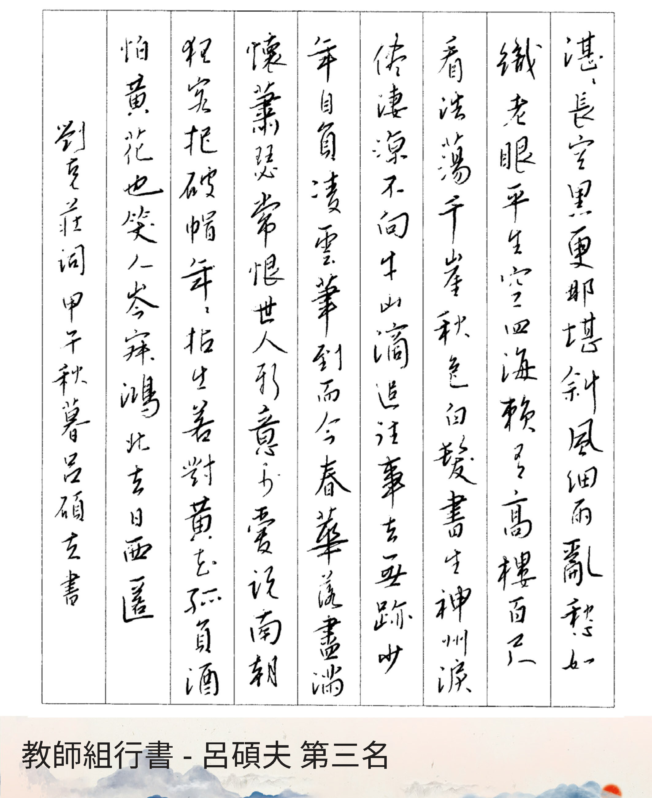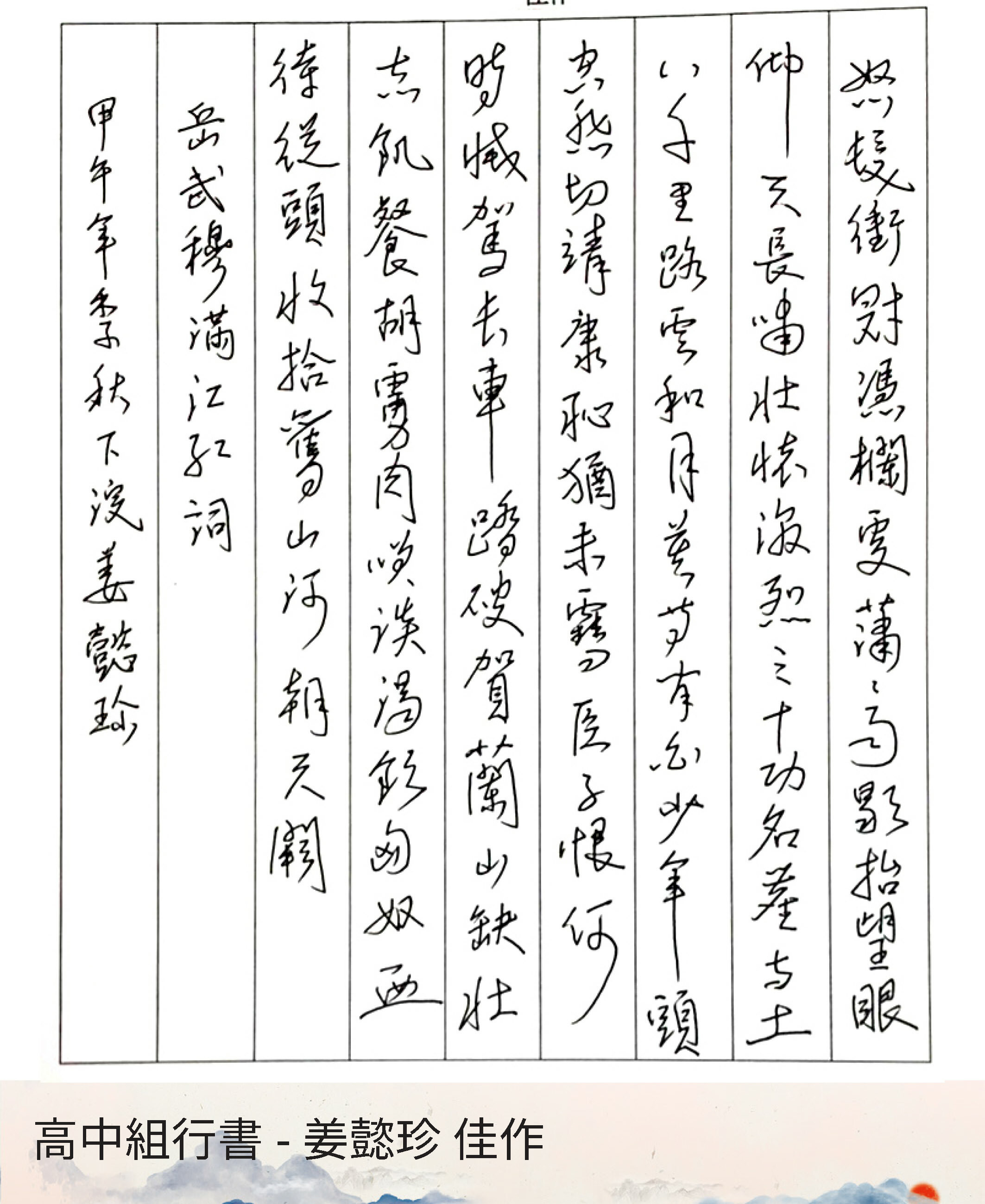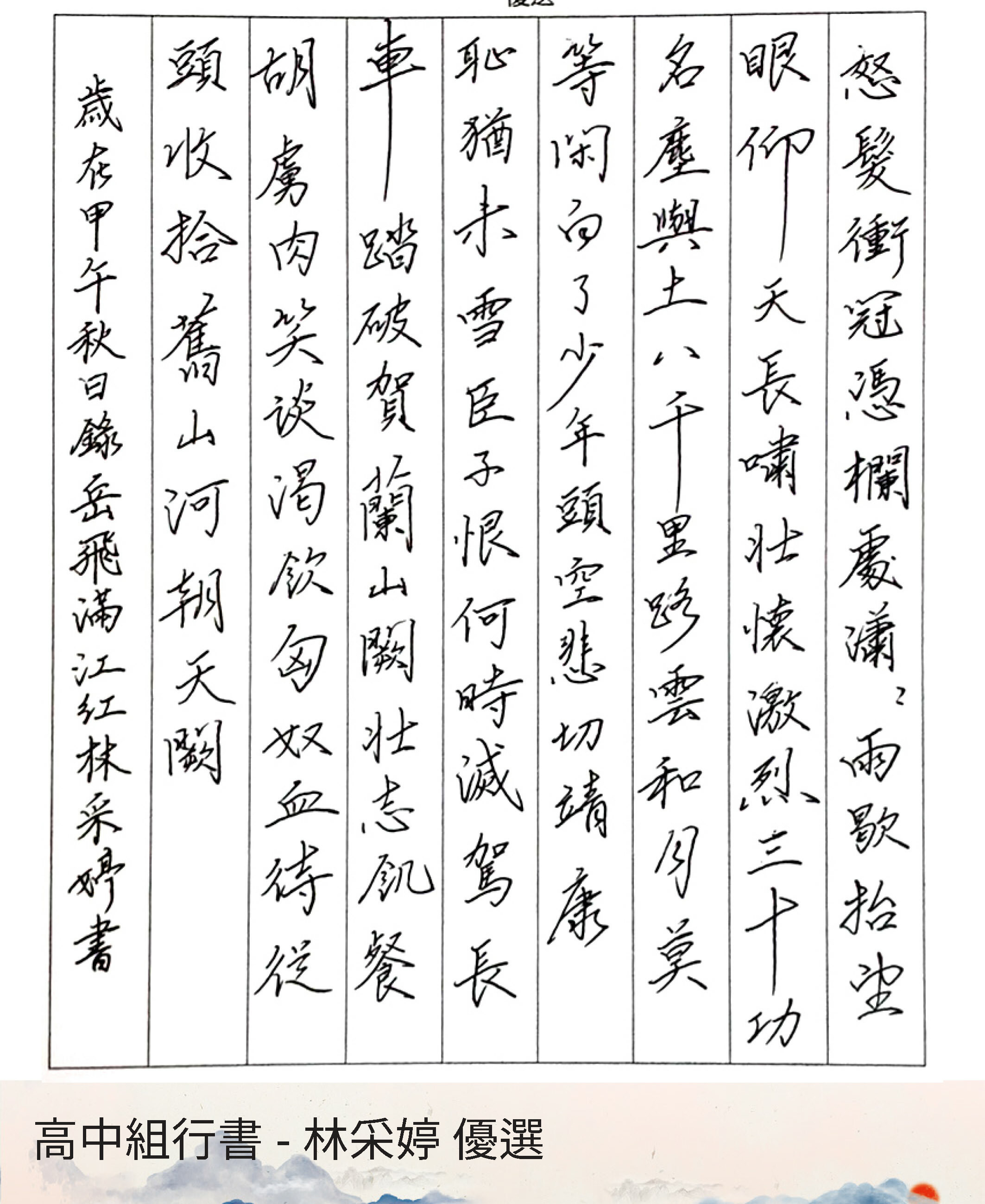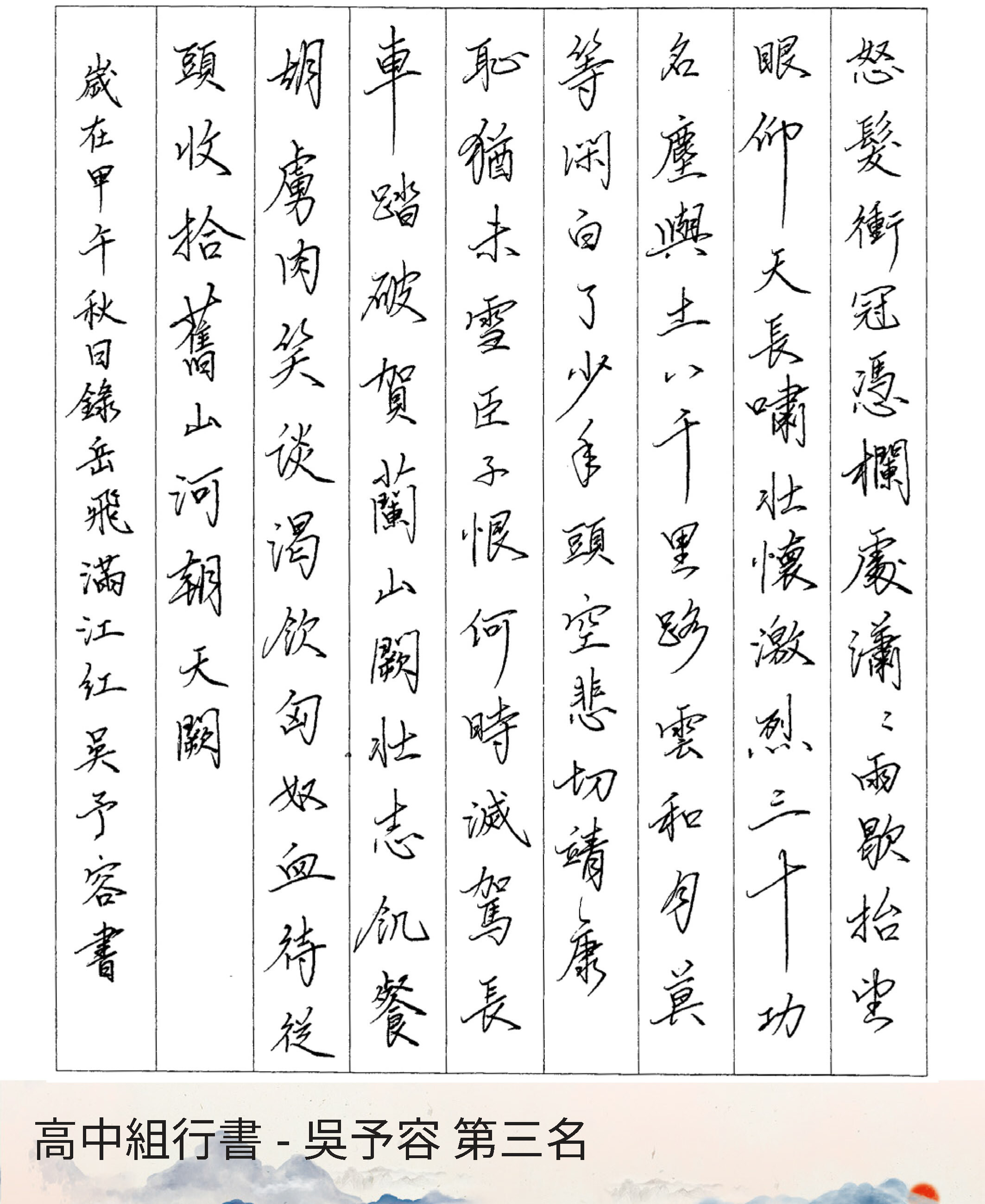 高中組行書