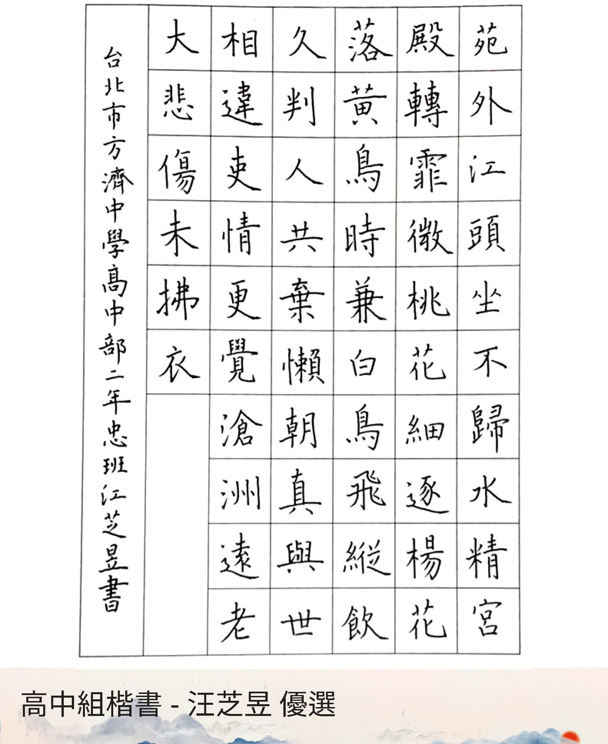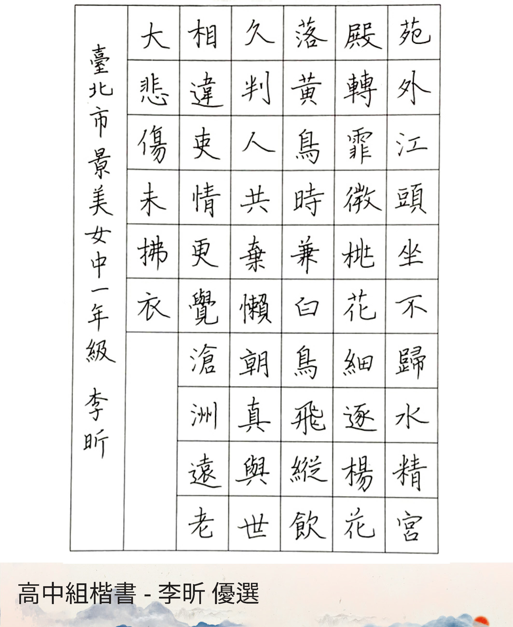 高中組楷書