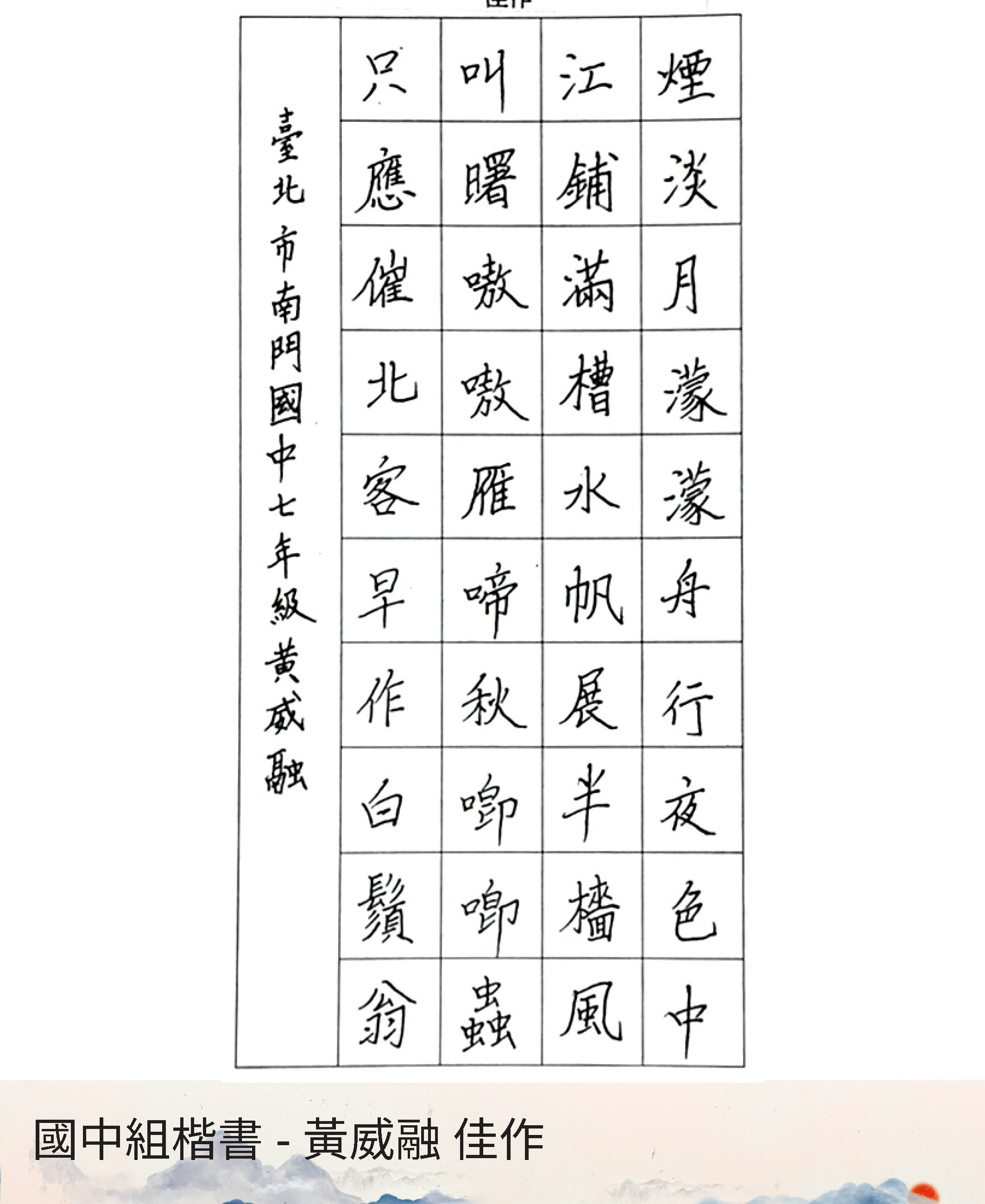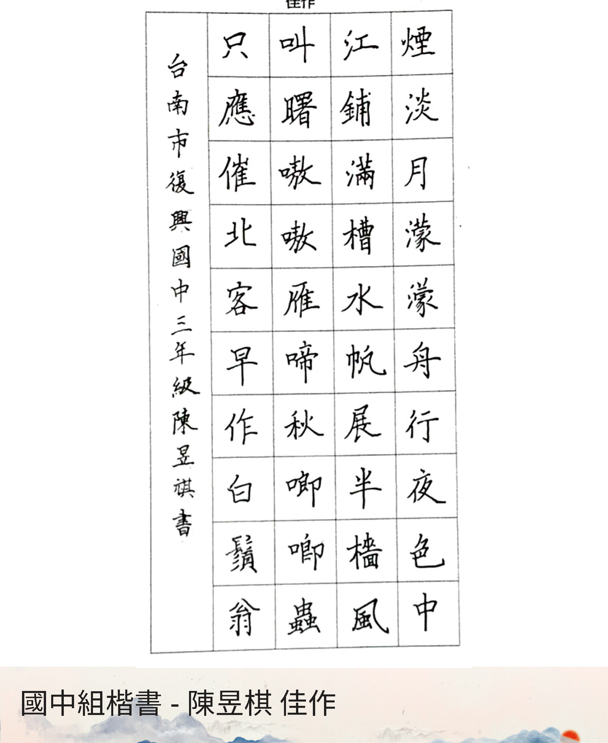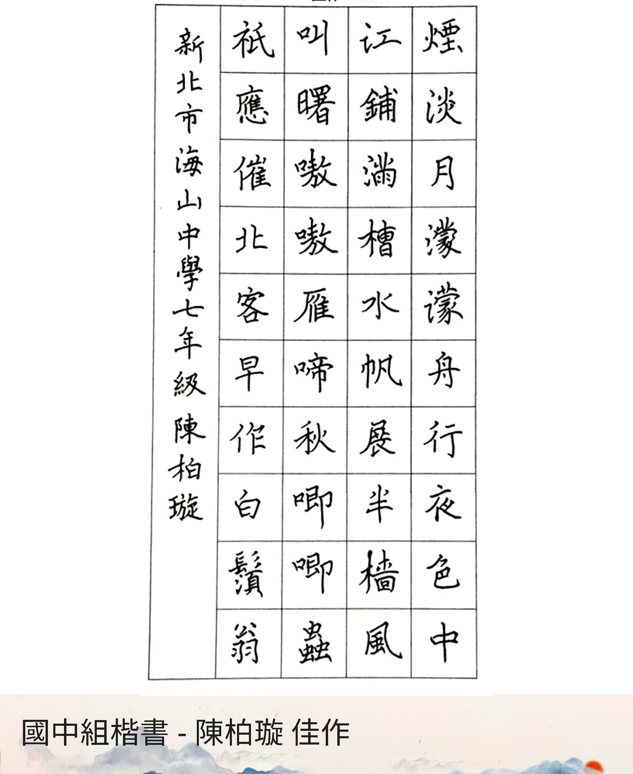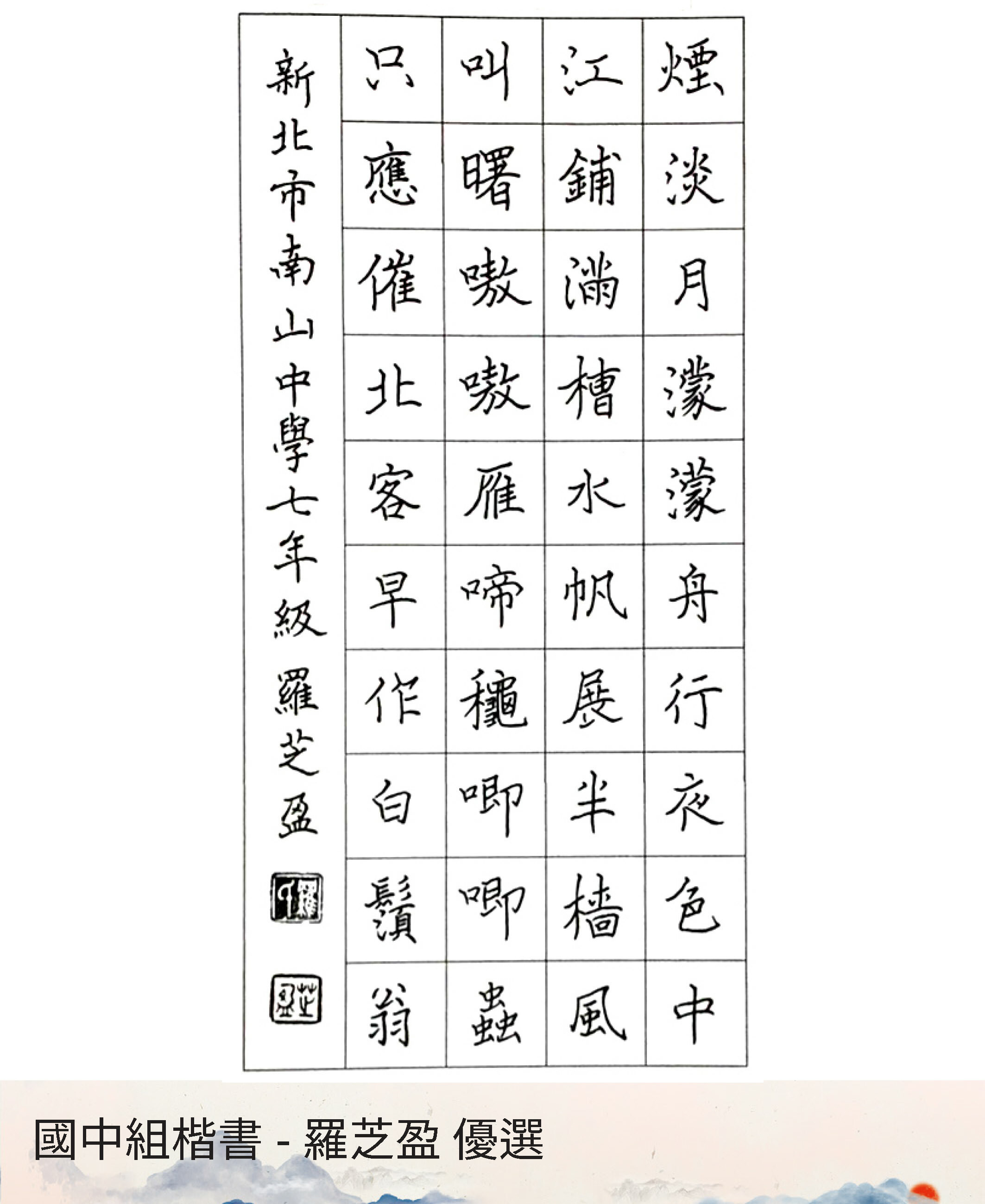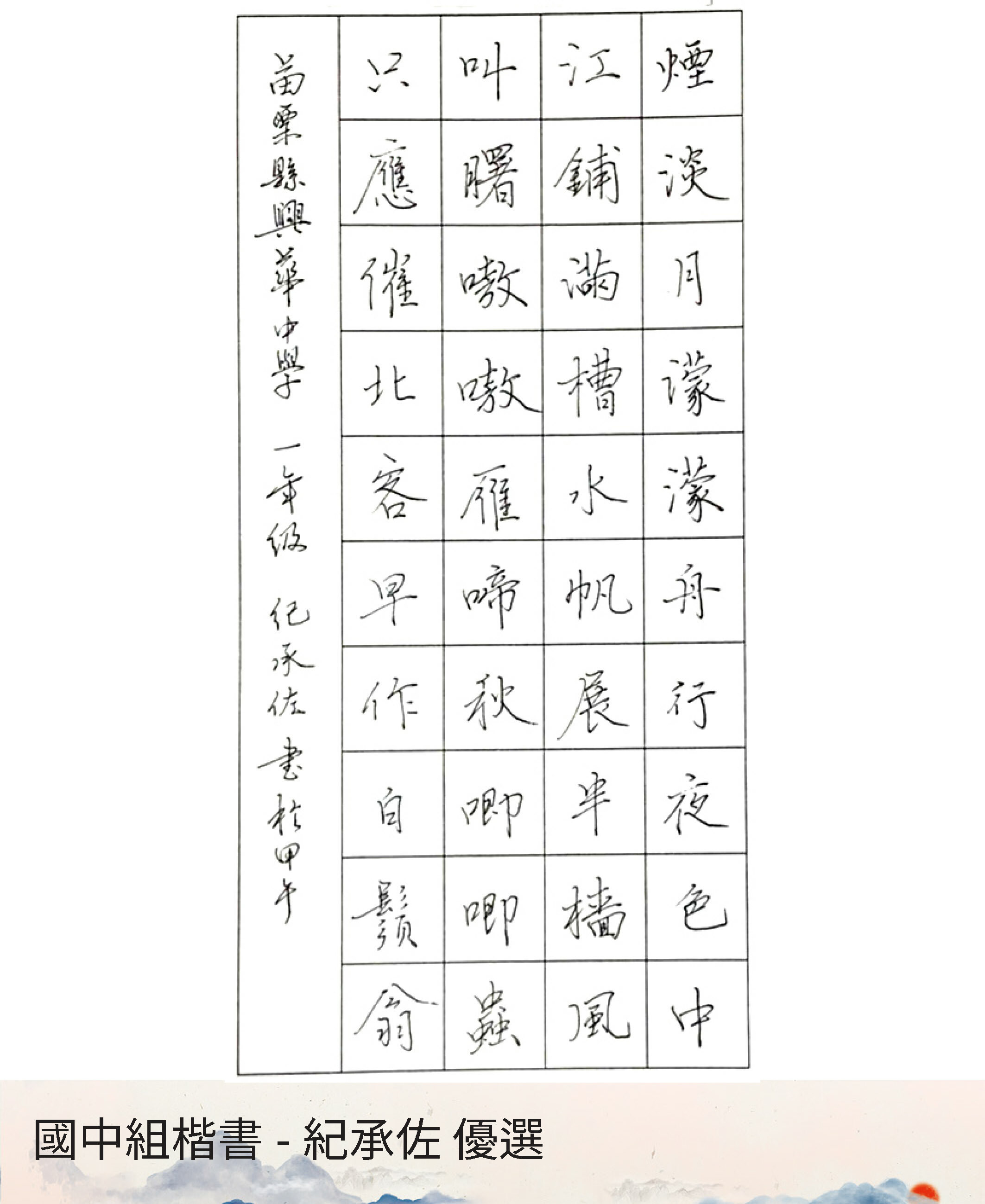 國中組楷書